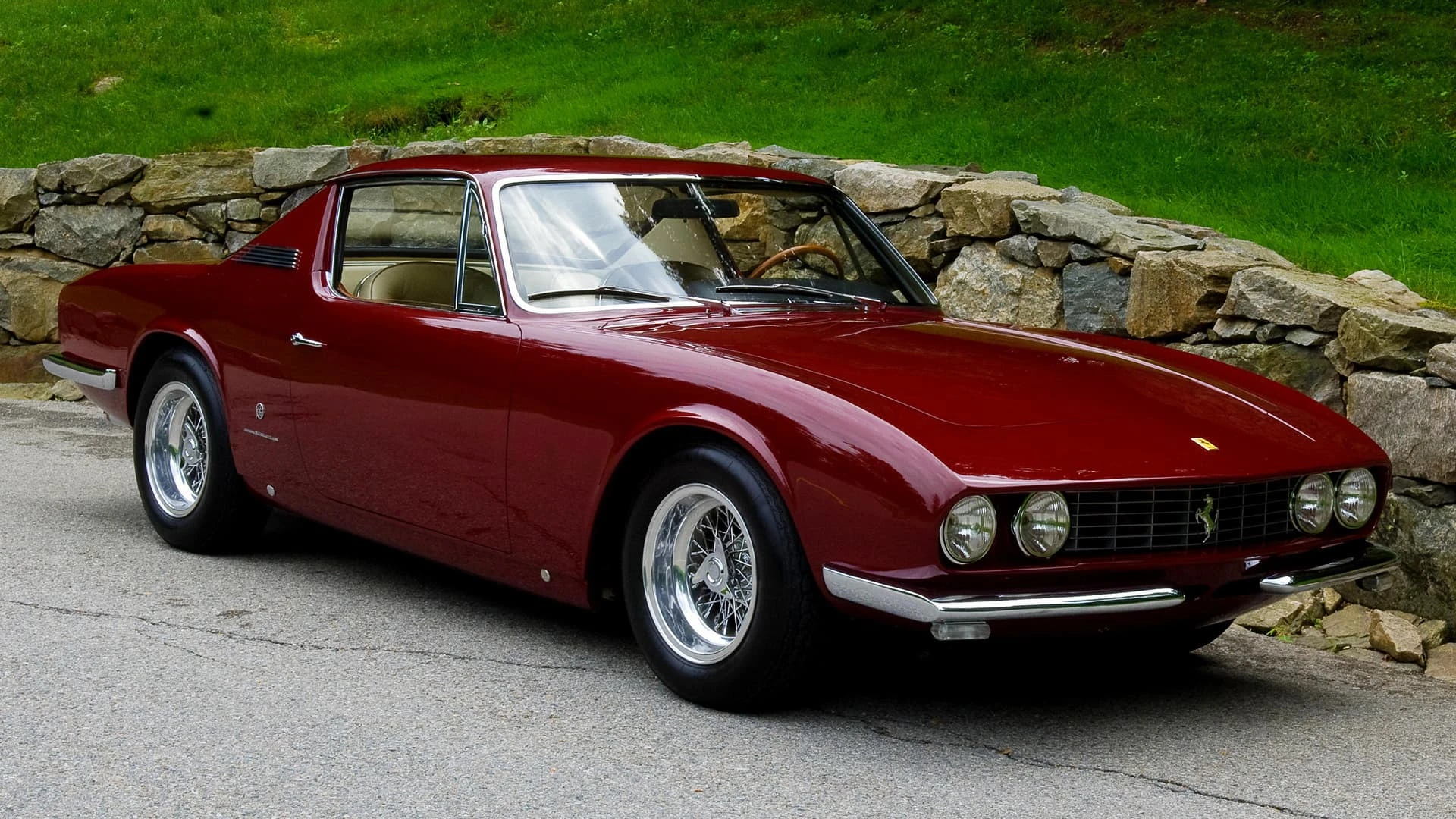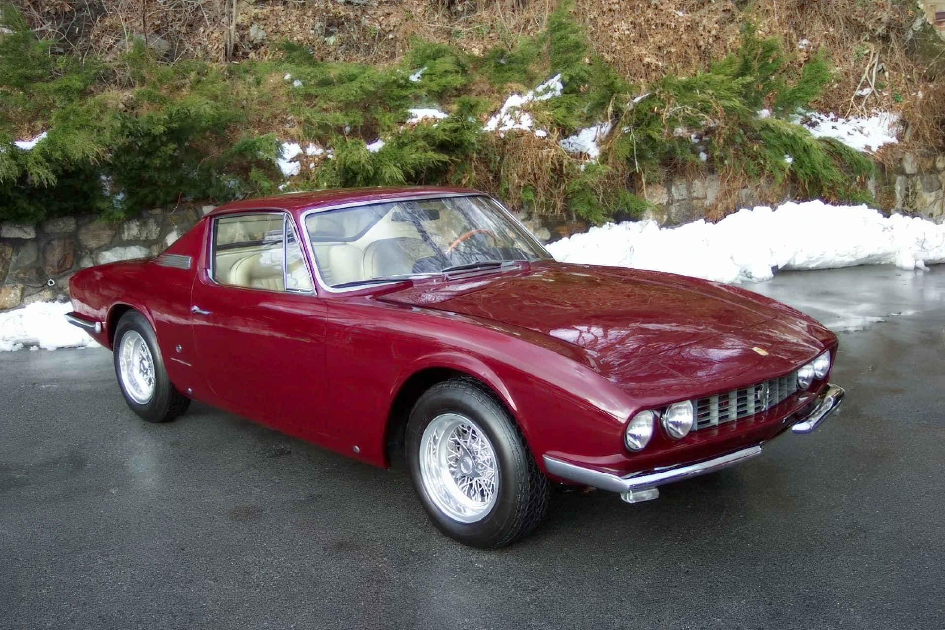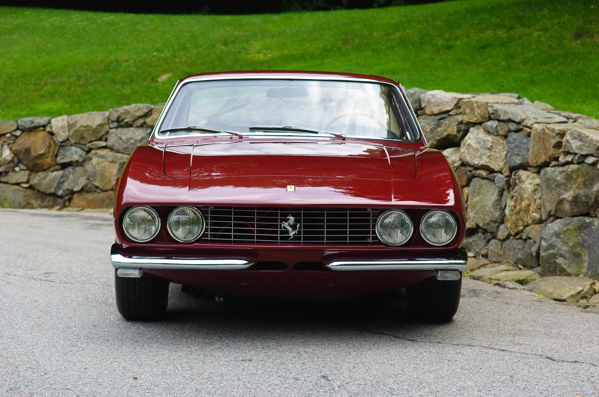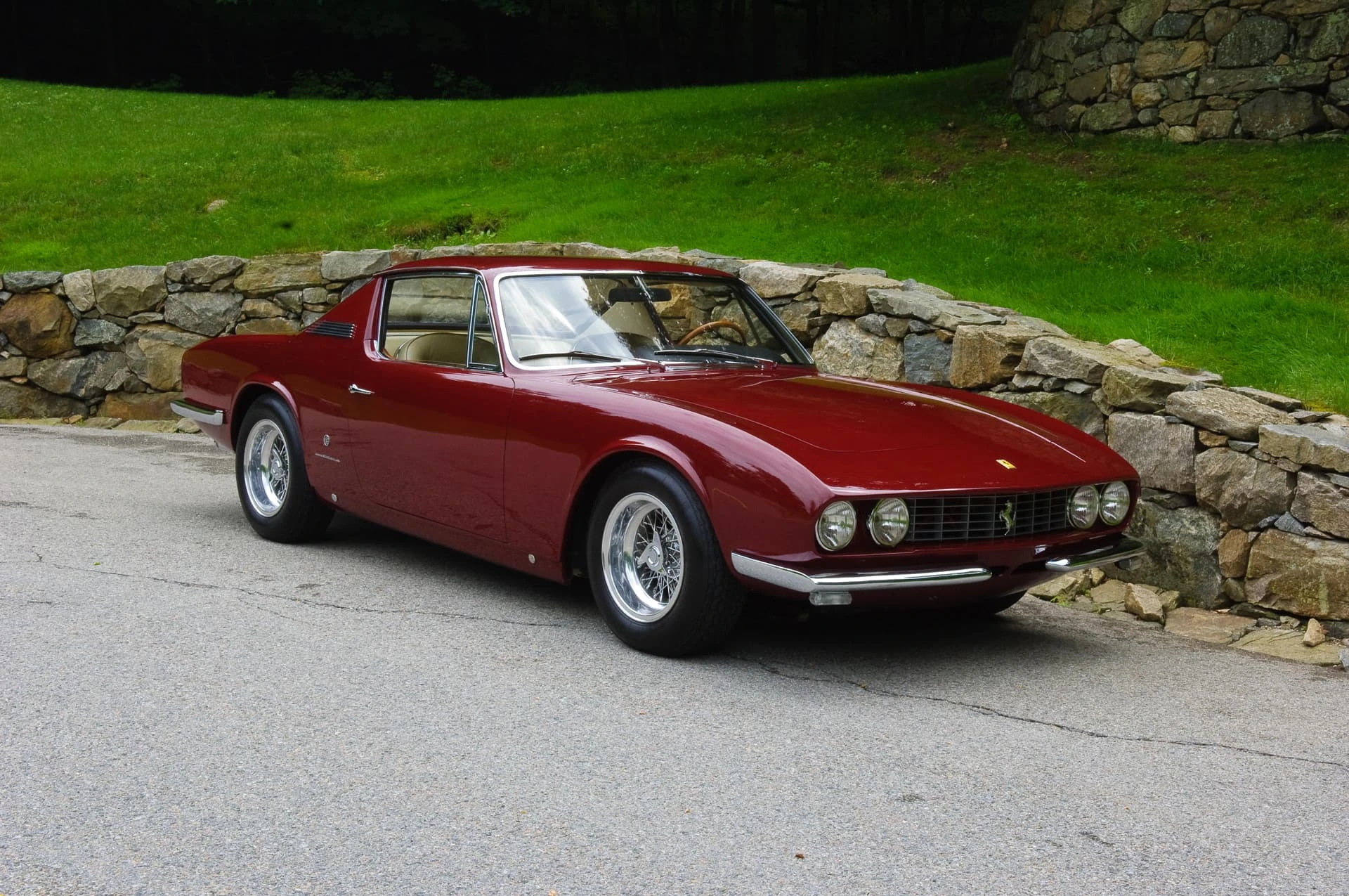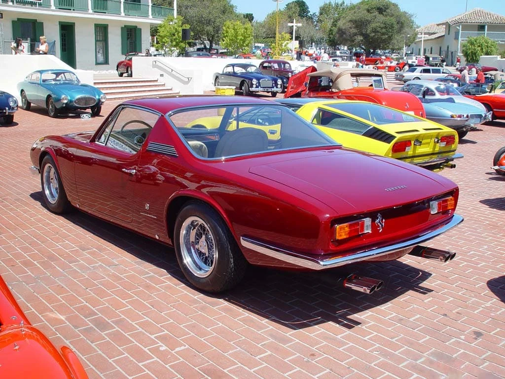 Initialement, « 9083 » livrée neuve à un certain M. Eckert de New York via Chinetti, fut peinte en Grigio Fumo avec intérieur en cuir rouge, air conditionné et direction assistée. Elle revint chez Chinetti en 1968 après que son deuxième propriétaire, James Gear de Long Island, eût endommagé la carrosserie dans un accident, lequel ne fut probablement pas grave car la voiture a conservé jusqu’à aujourd’hui tout son groupe motopropulseur et son châssis. Chinetti renvoya la voiture en Italie chez Michelotti où le styliste l’habilla de cette carrosserie unique de coupé. Cet intéressant modèle ne fut pas seulement d’avant-garde en son temps, mais il offrit un habitacle spacieux et aéré avec du volume pour les bagages et mieux que la configuration standard 2+2. Ce fut la deuxième des deux Ferrari que Michelotti allait réaliser sur des lignes semblables, l’autre étant une version spyder presque identique qui s’en distinguait par les moulures latérales.