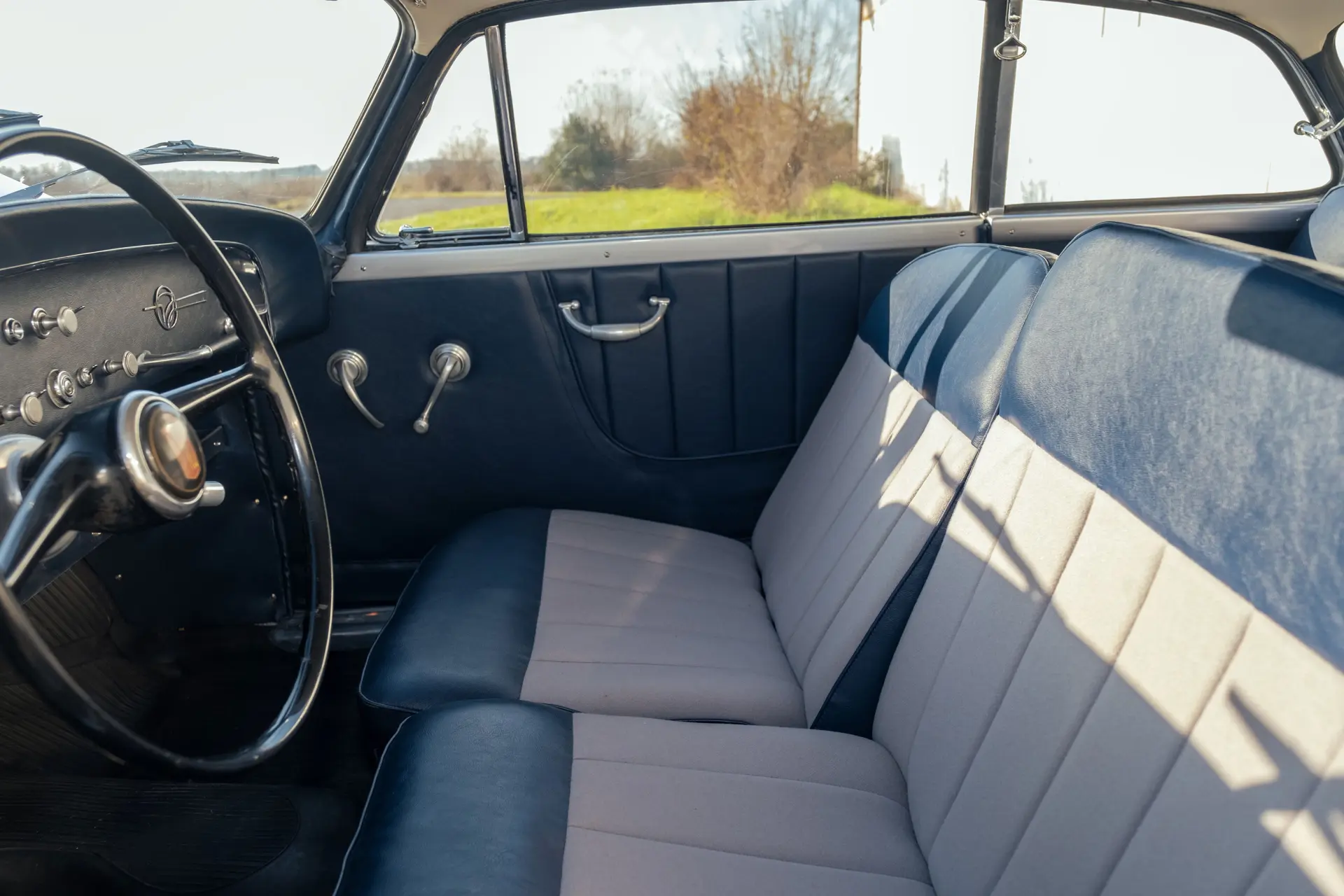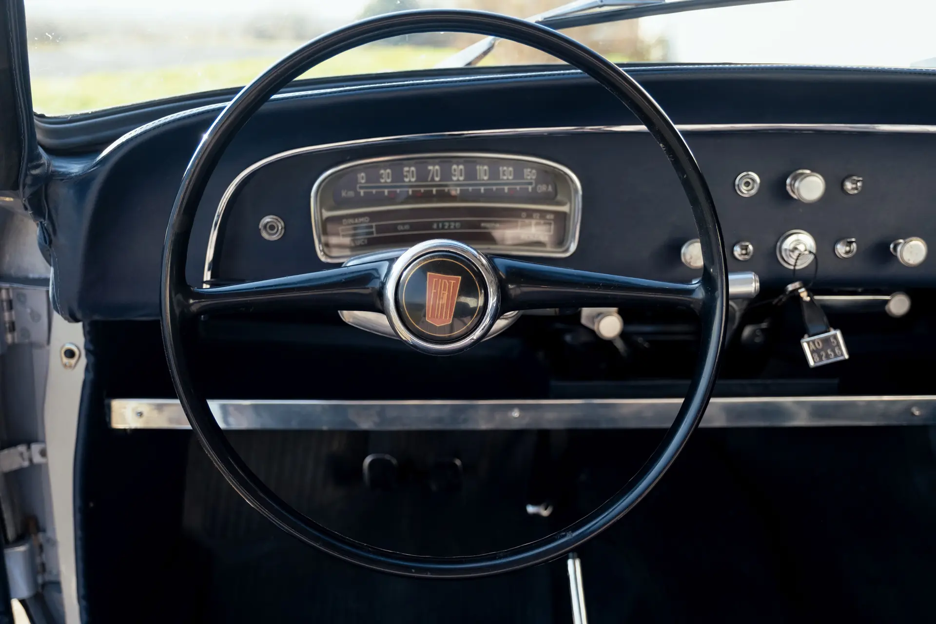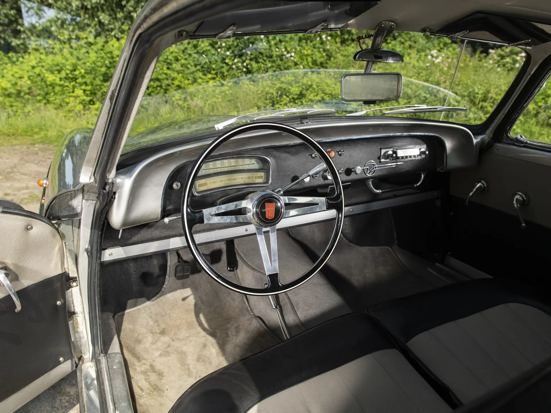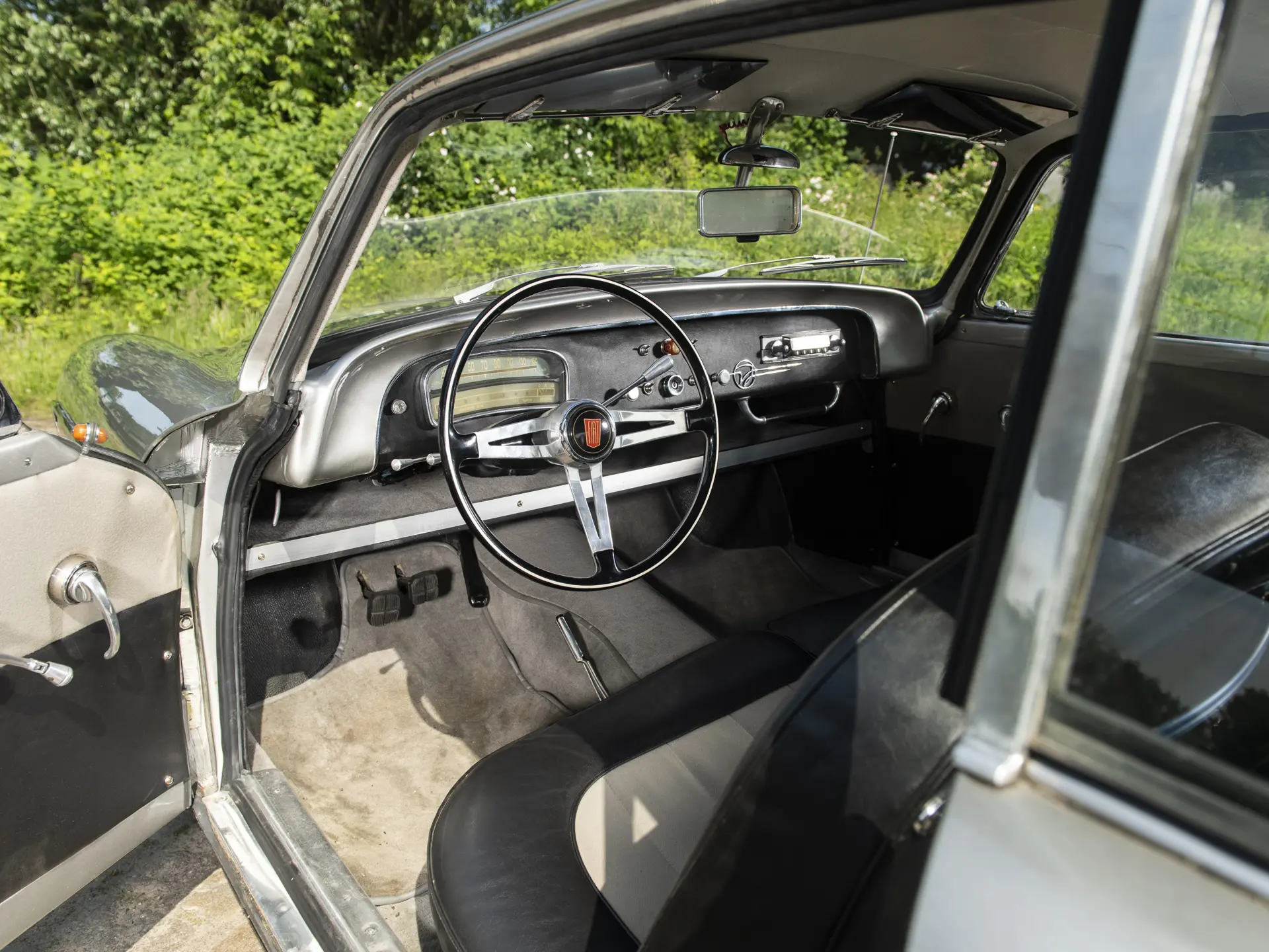 Cette Fiat 1100/103 E TV Désirée Coupé, exceptionnellement rare et carrossée par Vignale, se présente très bien, avec son intérieur bicolore accueillant qui s’accorde avec l’extérieur époustouflant. Elle est proposée avec deux jeux de roues : en acier pour le tourisme et en fil de fer Borrani, y compris la roue de secours, pour l’exposition du concours.