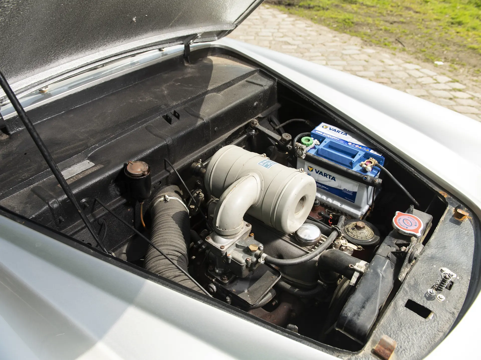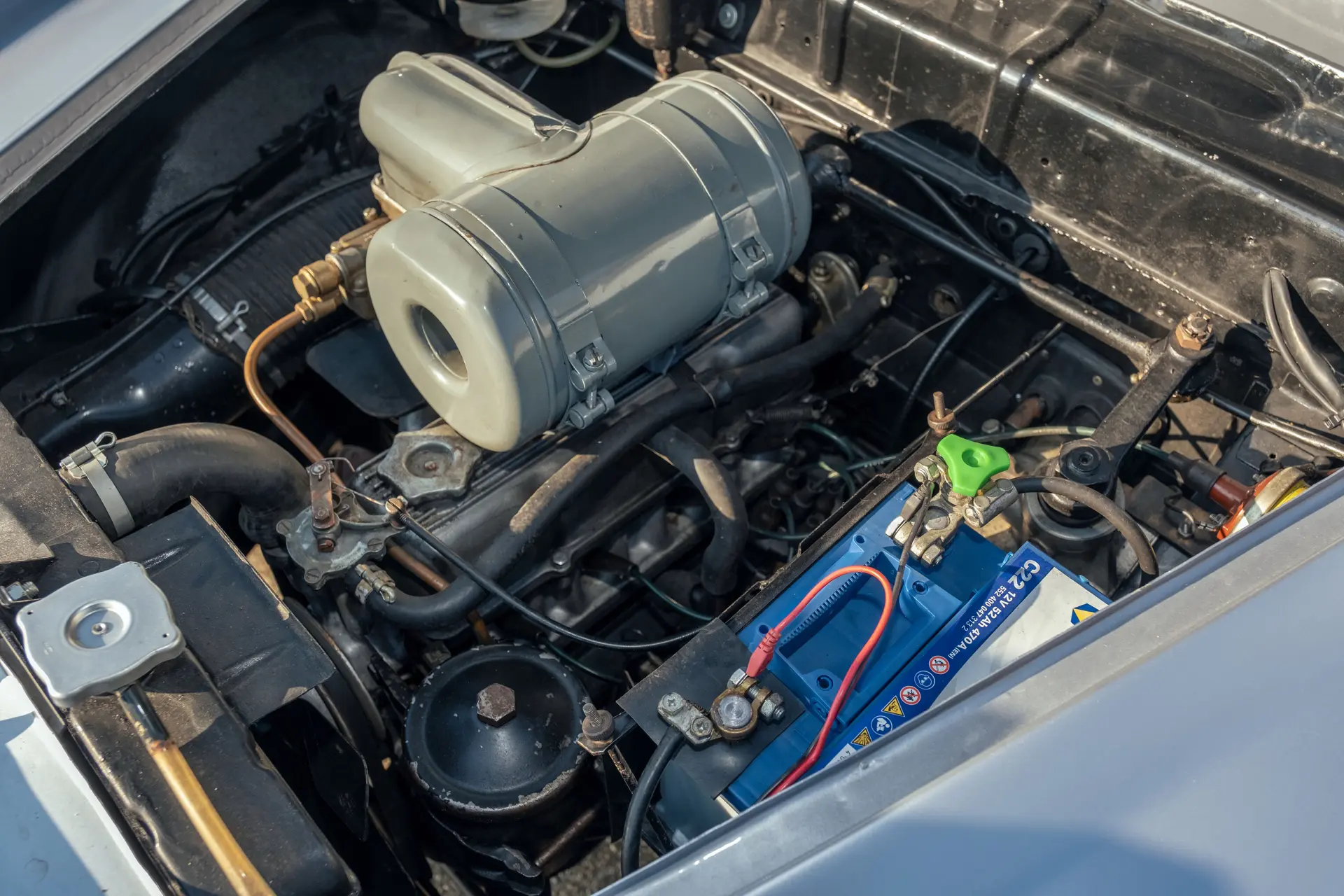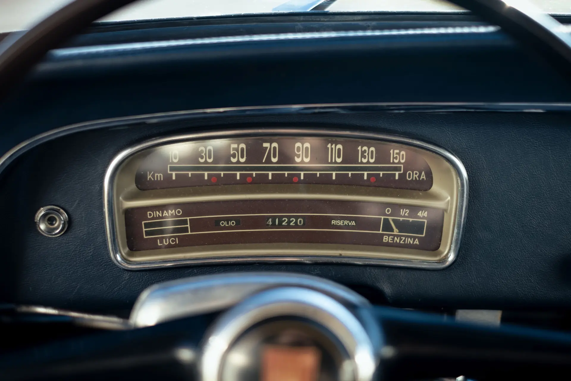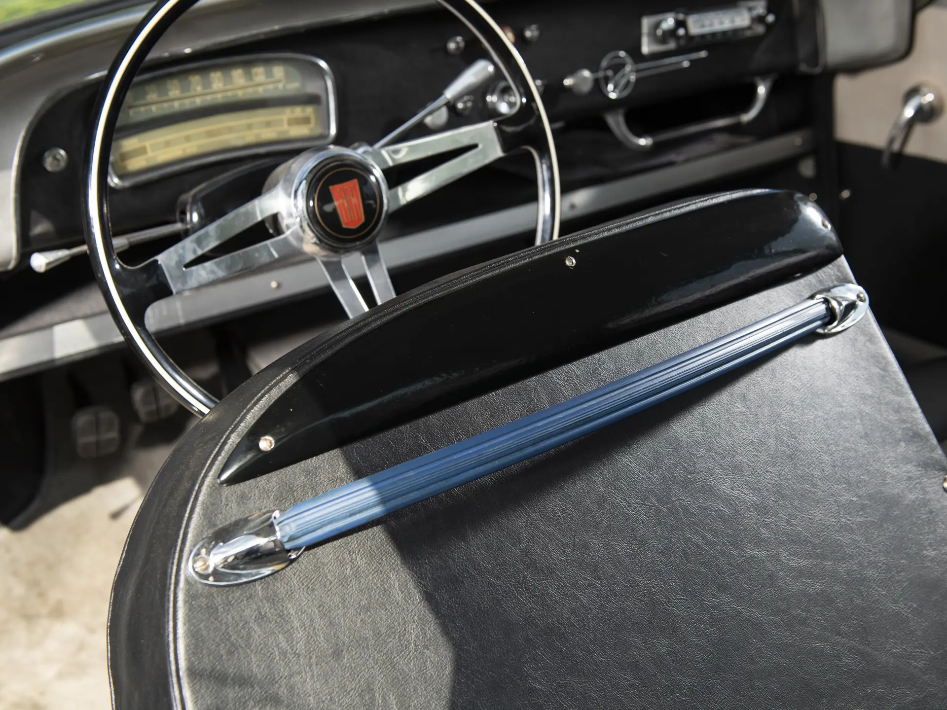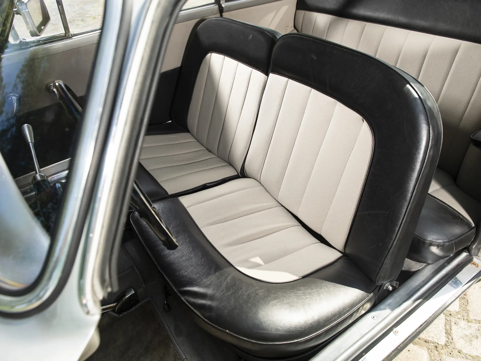 Cette Fiat 1100/103 E TV Désirée Coupé, exceptionnellement rare et carrossée par Vignale, se présente très bien, avec son intérieur bicolore accueillant qui s’accorde avec l’extérieur époustouflant. Elle est proposée avec deux jeux de roues : en acier pour le tourisme et en fil de fer Borrani, y compris la roue de secours, pour l’exposition du concours.