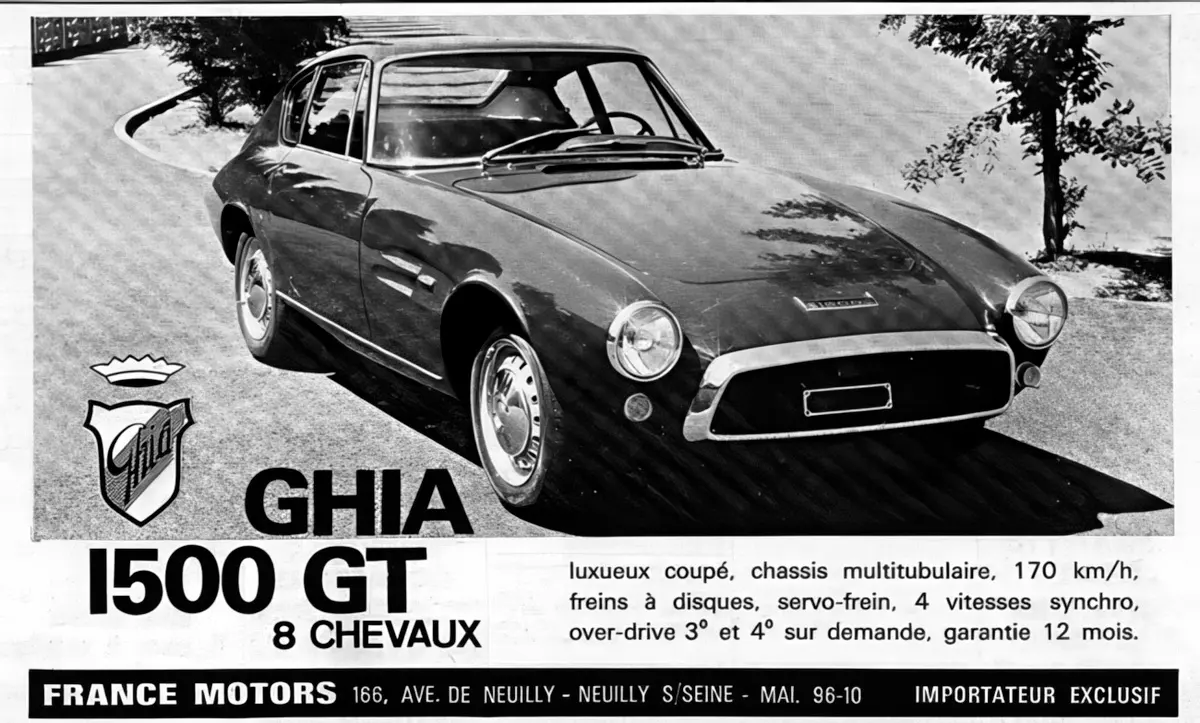 Lors du salon de Turin 1962, Ghia dévoile une voiture de son cru, une petite GT réalisée à partir d’une Fiat 1500 et produite par le constructeur italien OSI de 1962 à 1967 : la Ghia 1500 GT.