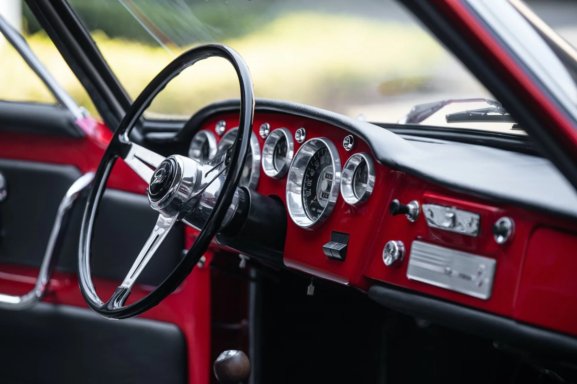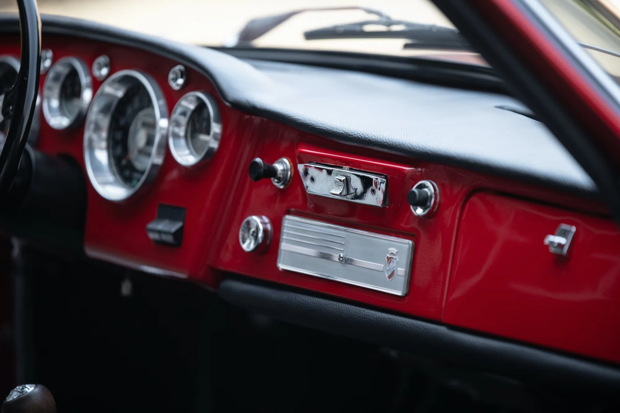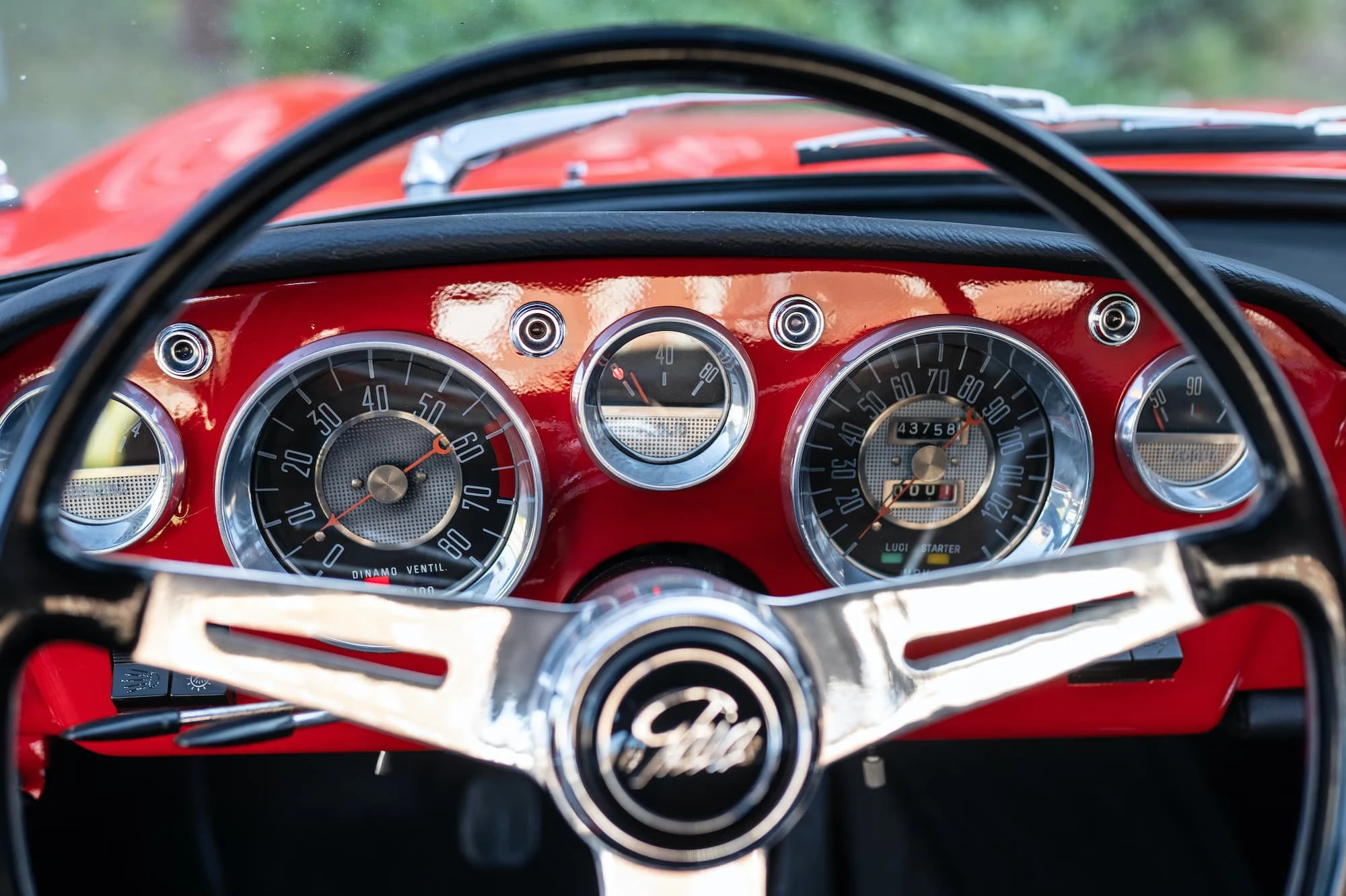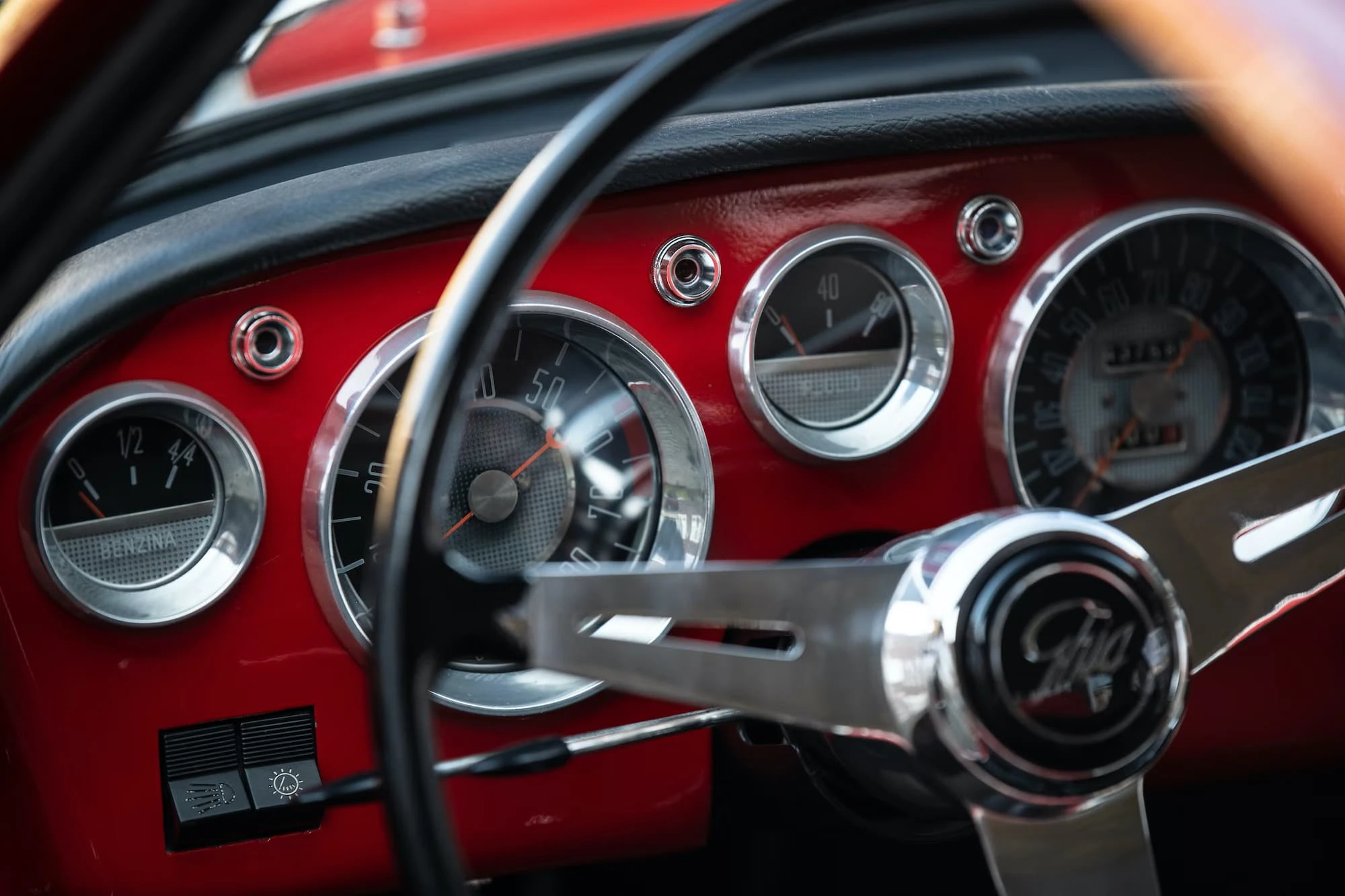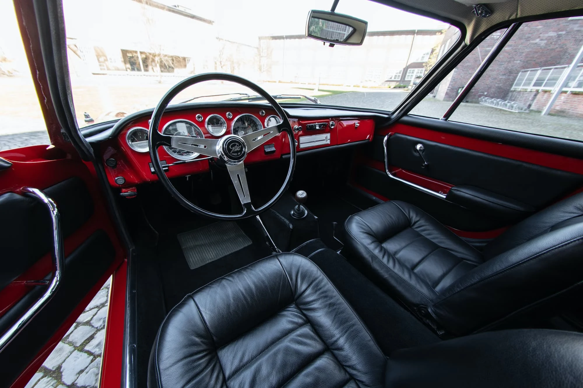 Les intérieurs, de style purement italien, sont soignés, ce qui se ressent sur le prix de la Ghia 1500 GT, plus élevé que ses principales rivales ; instrumentation complète, sellerie en similicuir noir pour garder un prix bas mais le cuir était toujours proposé en option, tout comme le volant Nardi, la radio Autovox, un klaxon tricolore, les ceintures de sécurité, l’overdrive Bianchi et les doubles échappements. Bref, une vraie GT à l’italienne à plus petite échelle. Le moteur en question était un 4 cylindres en ligne, 1 481 cc et une puissance de 67 CV et une boîte manuelle à quatre vitesses. Système de freinage mixte avec disques avant, tambours arrière avec servofrein. Vitesse maximale 170 Km/h.