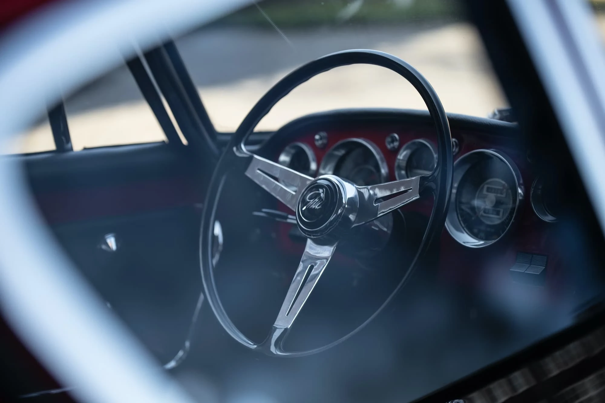 Cette version coupé repose sur la plateforme de la Fiat 1500 berline raccourcie avec un empattement de 234,5 cm au lieu de 242 cm. Le train avant comporte le fameux tube Gilco. La calandre caractéristique Ghia rappelle les autres projets du carrossiers.