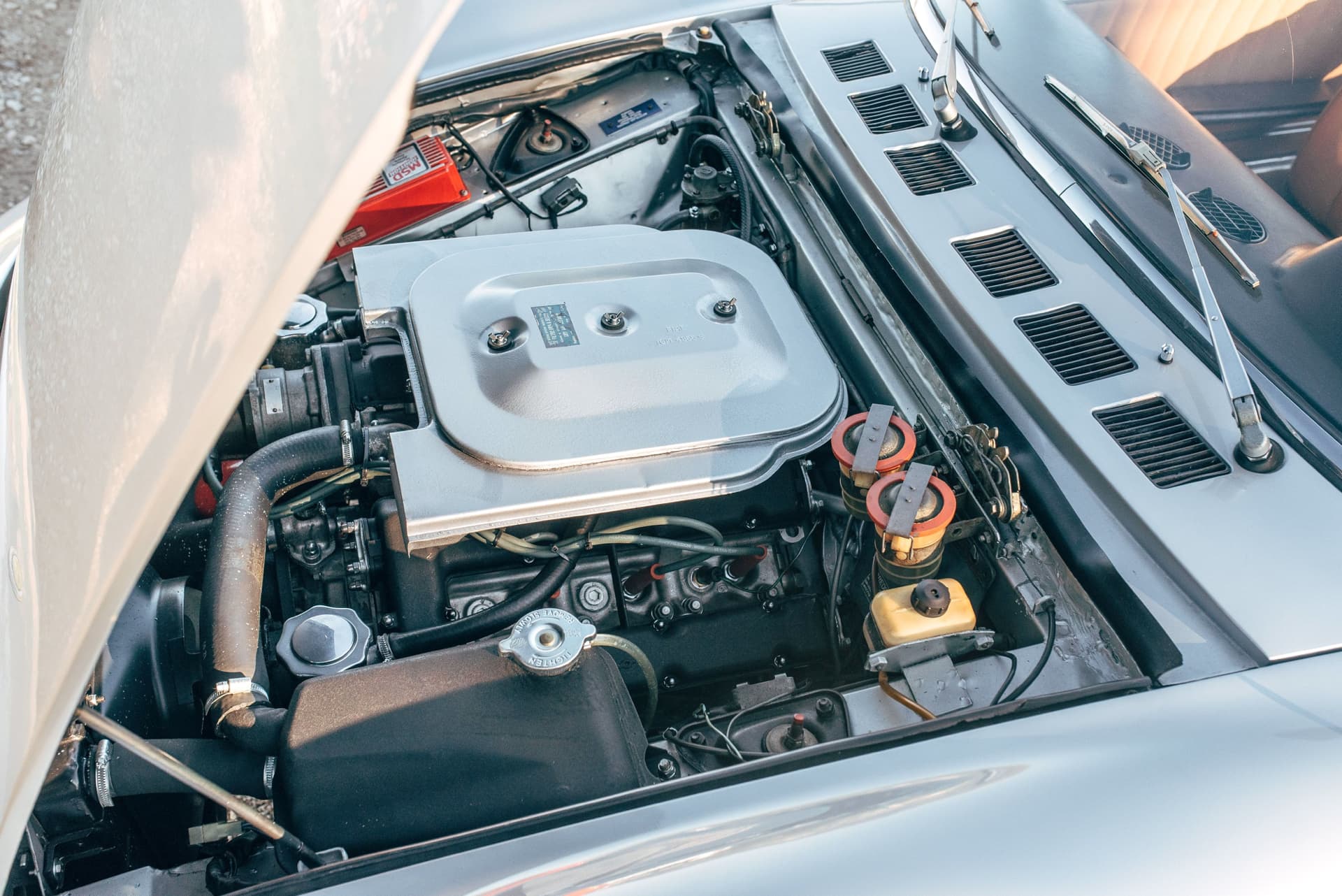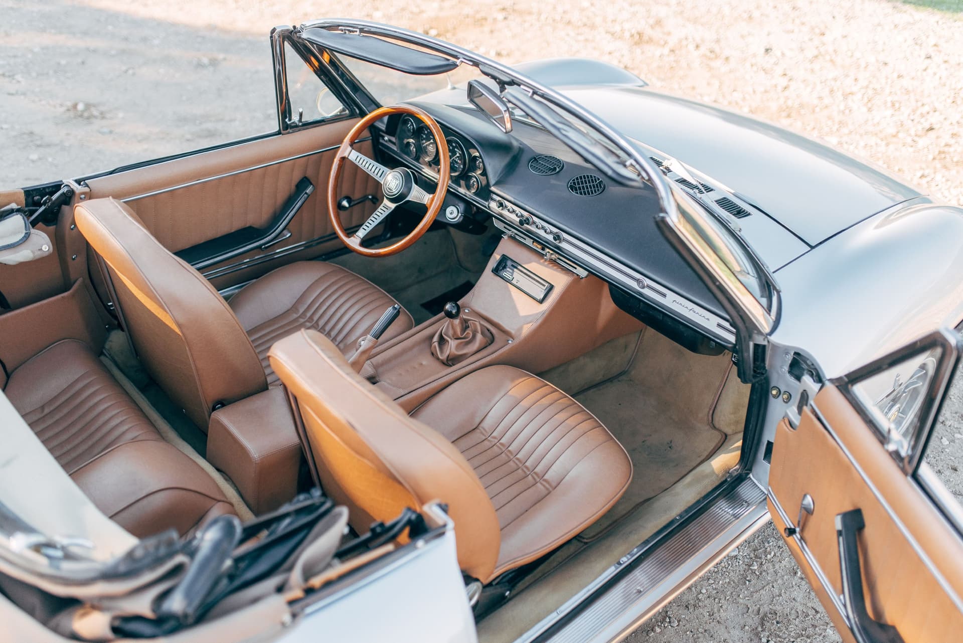 Produit en 2 litres à seulement 1 163 exemplaires, le Spider est devenu une voiture rare et très prisée par les collectionneurs, elle apparaît entre autres dans le film « Le Petit Baigneur » de 1968, avec Louis de Funès. Le modèle que nous vous proposons aujourd’hui est certainement l’un des plus beaux actuellement disponibles sur le marché. Avec de nombreuses factures d’entretien et une restauration complète faite dans les règles de l’art et s’élevant à plus de 80 000€, cette auto dans un état incroyable est matching numbers et matching colors. L’alliance entre le bloc moteur aluminium et l’échappement Ansa offrent une expérience de conduite très envoutante, le tout cheveux au vent.