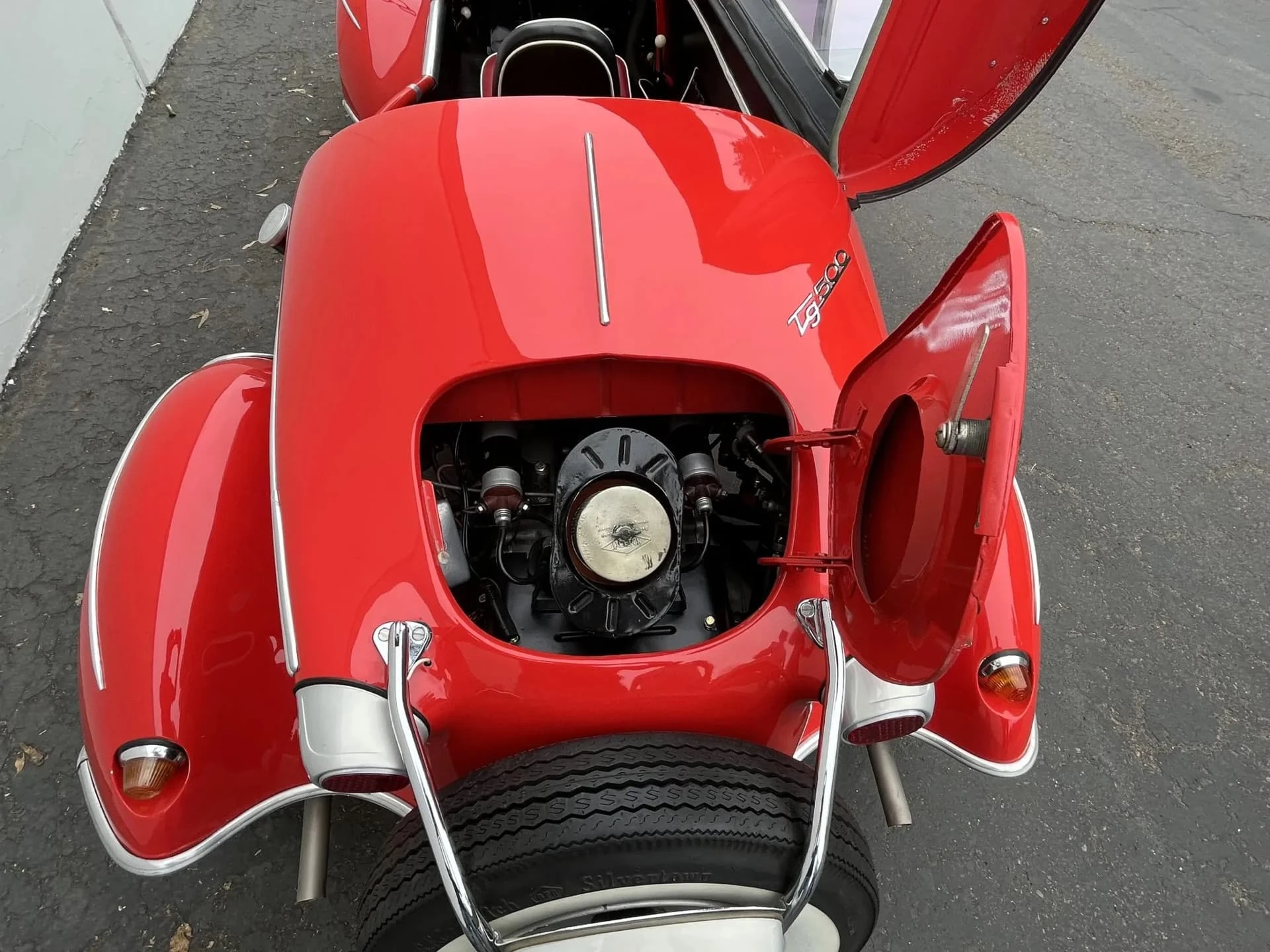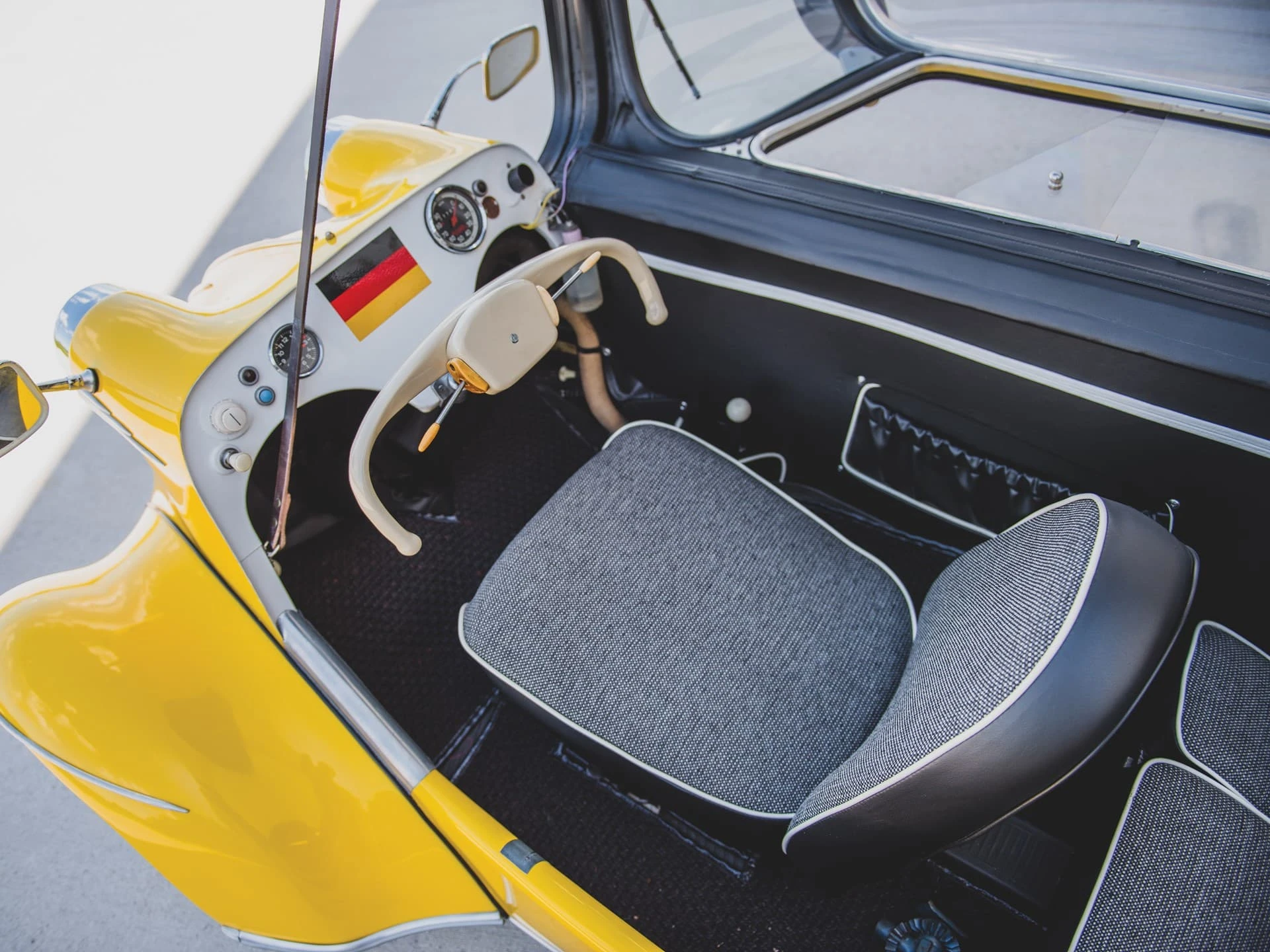 Une microcar puissante ? Non, le Tg 500 a été développé pour être un concurrent légitime des autres voitures de sport européennes d’après-guerre. Peu de gens l’ont prise au sérieux, mais ils auraient dû le faire : Le modèle était censé accélérer de 0 à 100 km/h par heure en 30 secondes et avait une vitesse de pointe de 125 km/h.