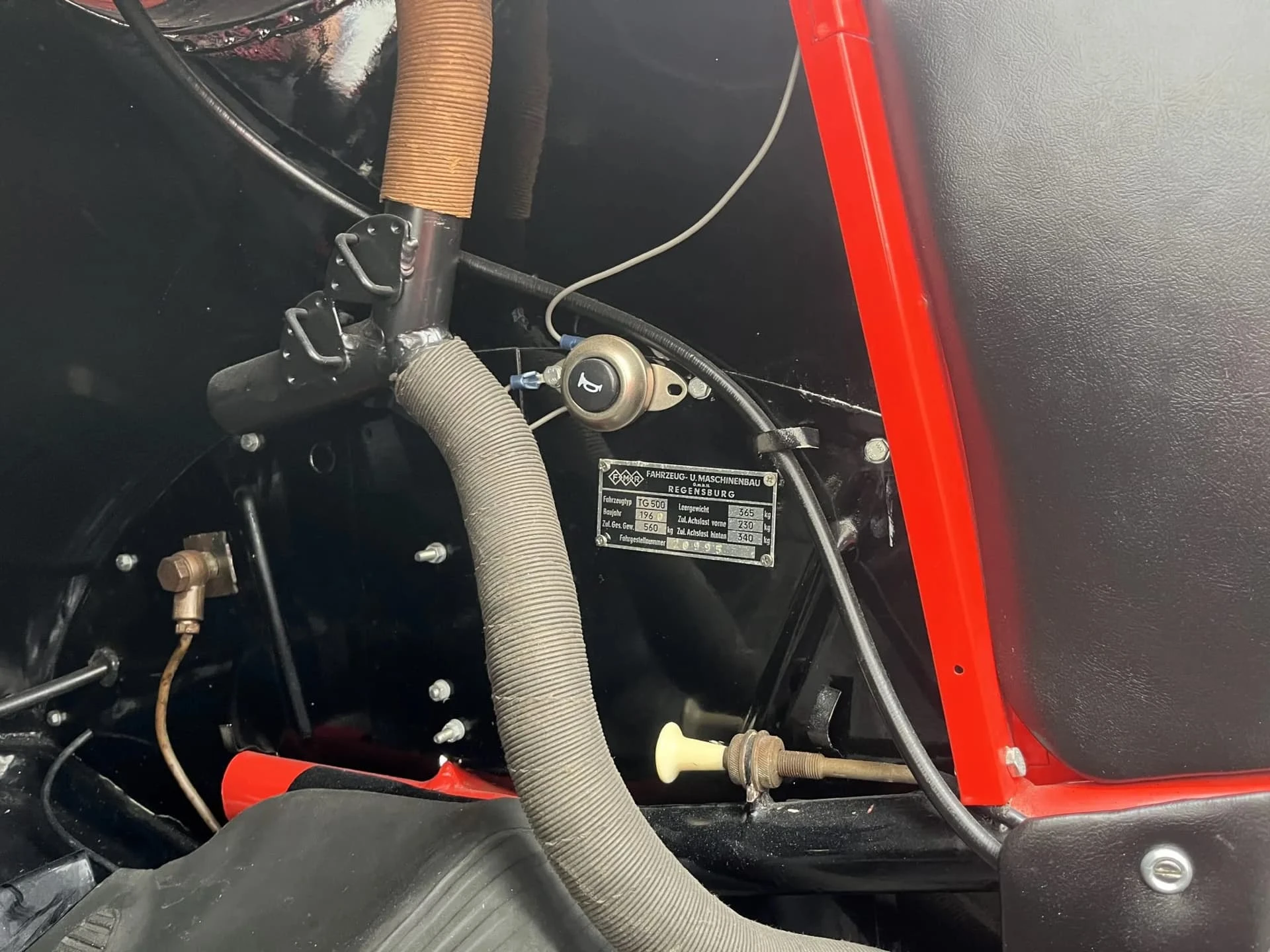 Basé sur la monocoque du Messerschmitt Kabinenroller, qui était par ailleurs une plate-forme pour les véhicules à trois roues, le Tg500 était une voiture à quatre roues équipée d’un moteur à deux temps en ligne droite. FMR avait repris la production du KR200 de Messerschmitt en 1956. Alors que le KR200 portait toujours le nom et le logo Messerschmitt, le Tg500 était badgé FMR.