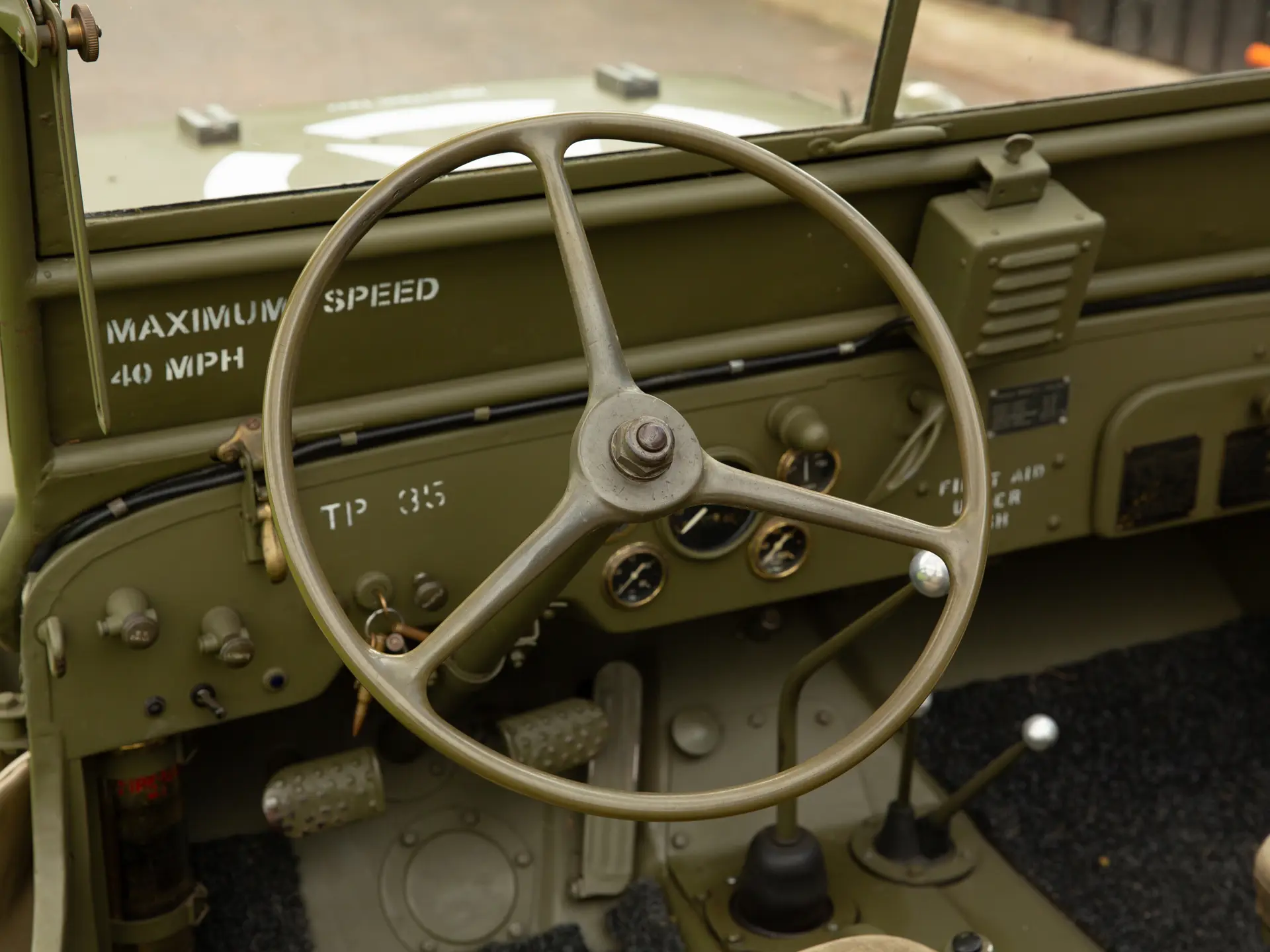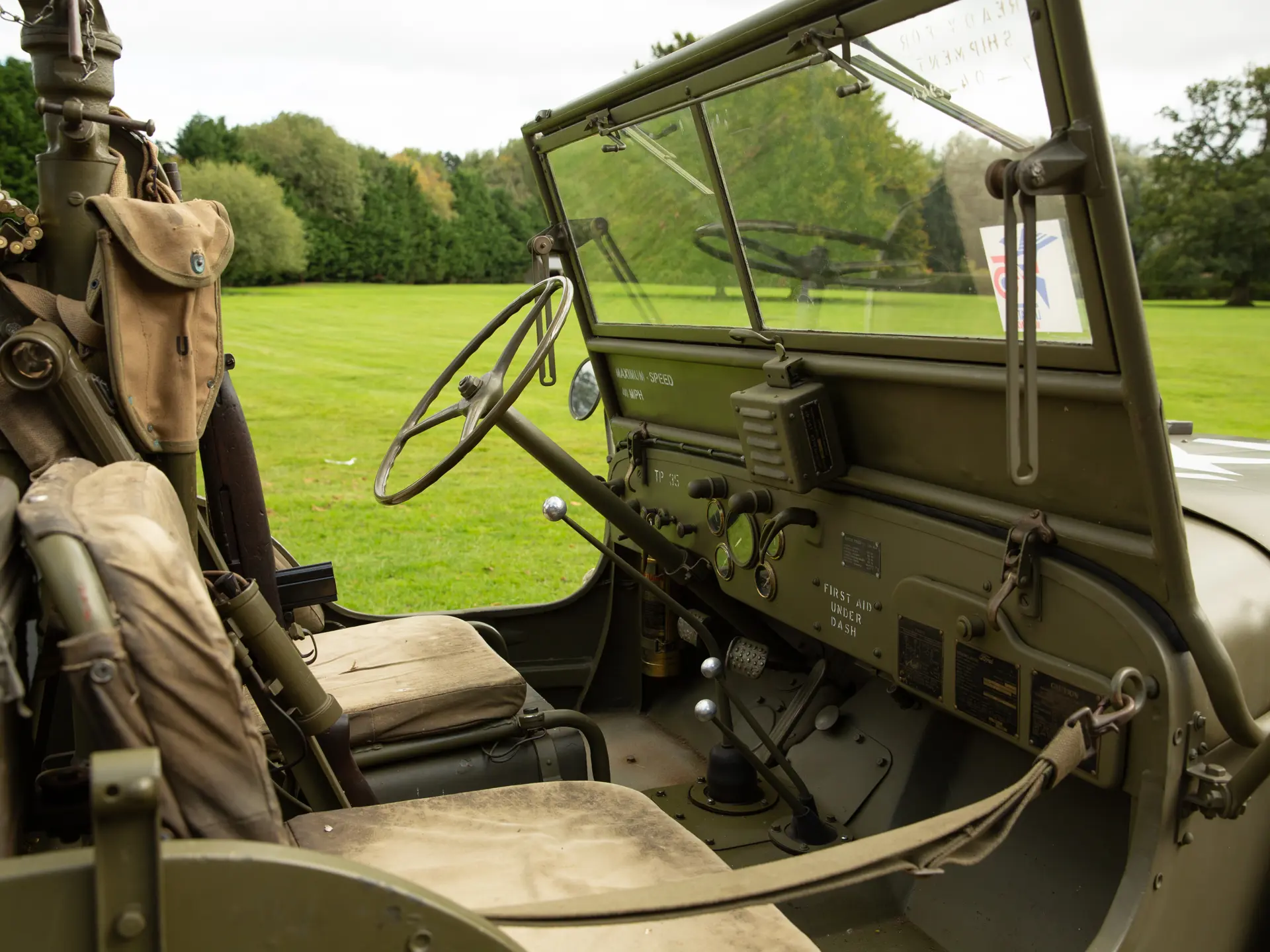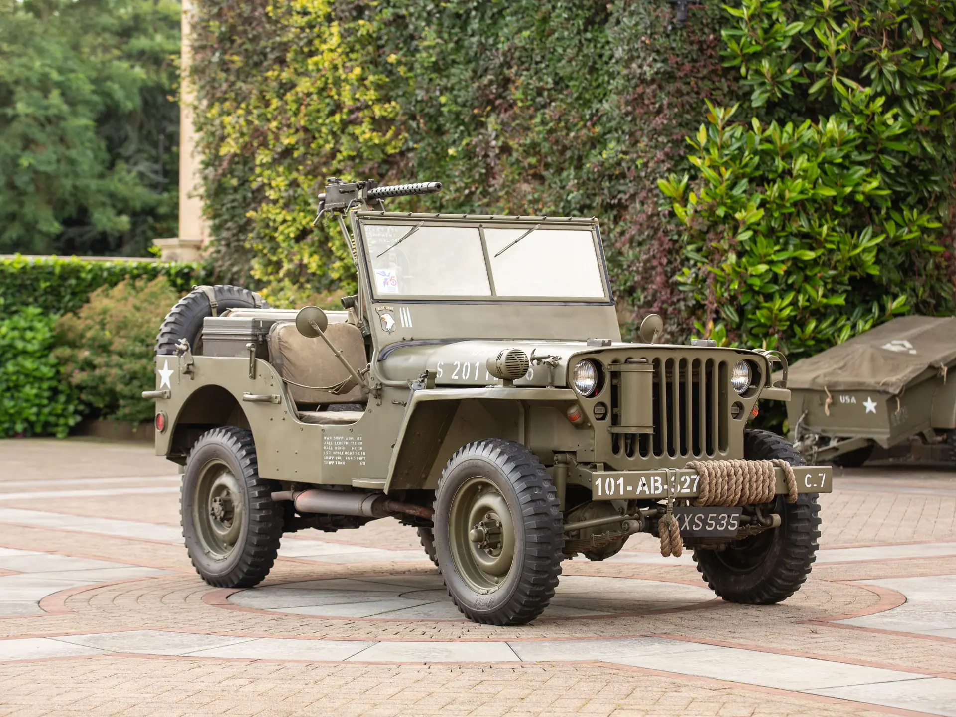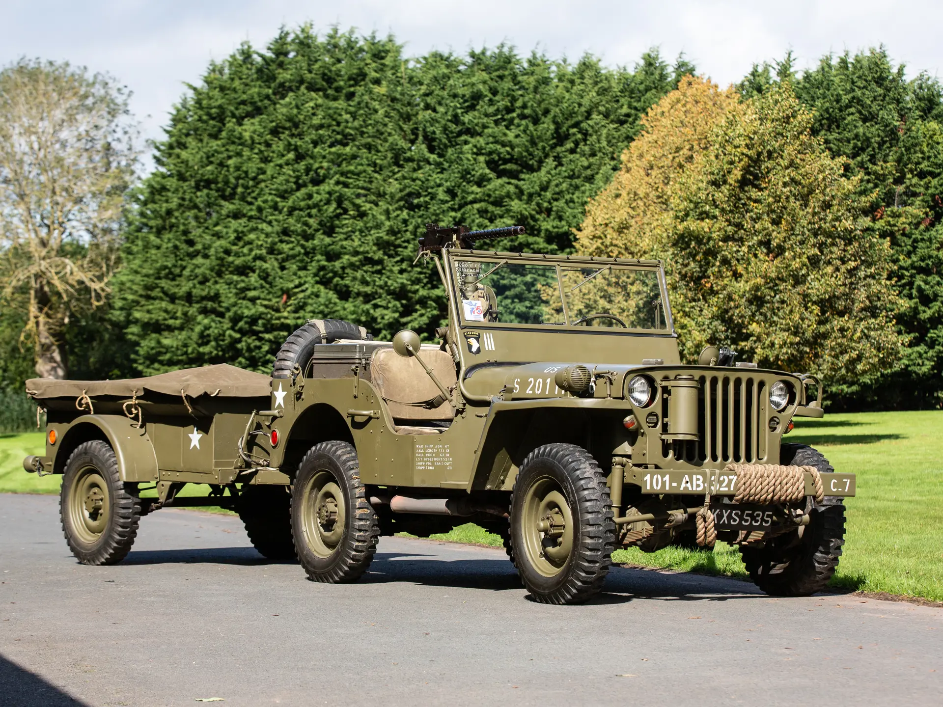 L’exemplaire présenté ntéressera sans aucun doute les collectionneurs et les passionnés de l’armée. Finie en vert armée avec la livrée appropriée, la Ford GPW est accompagnée de nombreux accessoires militaires pertinents, notamment des haches, des caisses rigides, une pelle, un câble de remorquage et une machine à tourelle. On sait que le 4×4 a été immatriculé aux Pays-Bas en 1996 et qu’il a rejoint peu après le musée Den Hartogh Ford, qui constituait alors l’une des plus grandes collections Ford au monde. Acquise par The Dean Kronsbein Collection (avec sa remorque de couleur assortie) lors de la dissolution du musée en 2018, la Ford a été fièrement conservée aux côtés d’autres 4×4 d’époque dans le garage soigneusement aménagé de l’expéditeur. Symbole de l’ingéniosité américaine et de la prospérité de l’esprit de guerre, la Ford GPW est un symbole du 20e siècle..