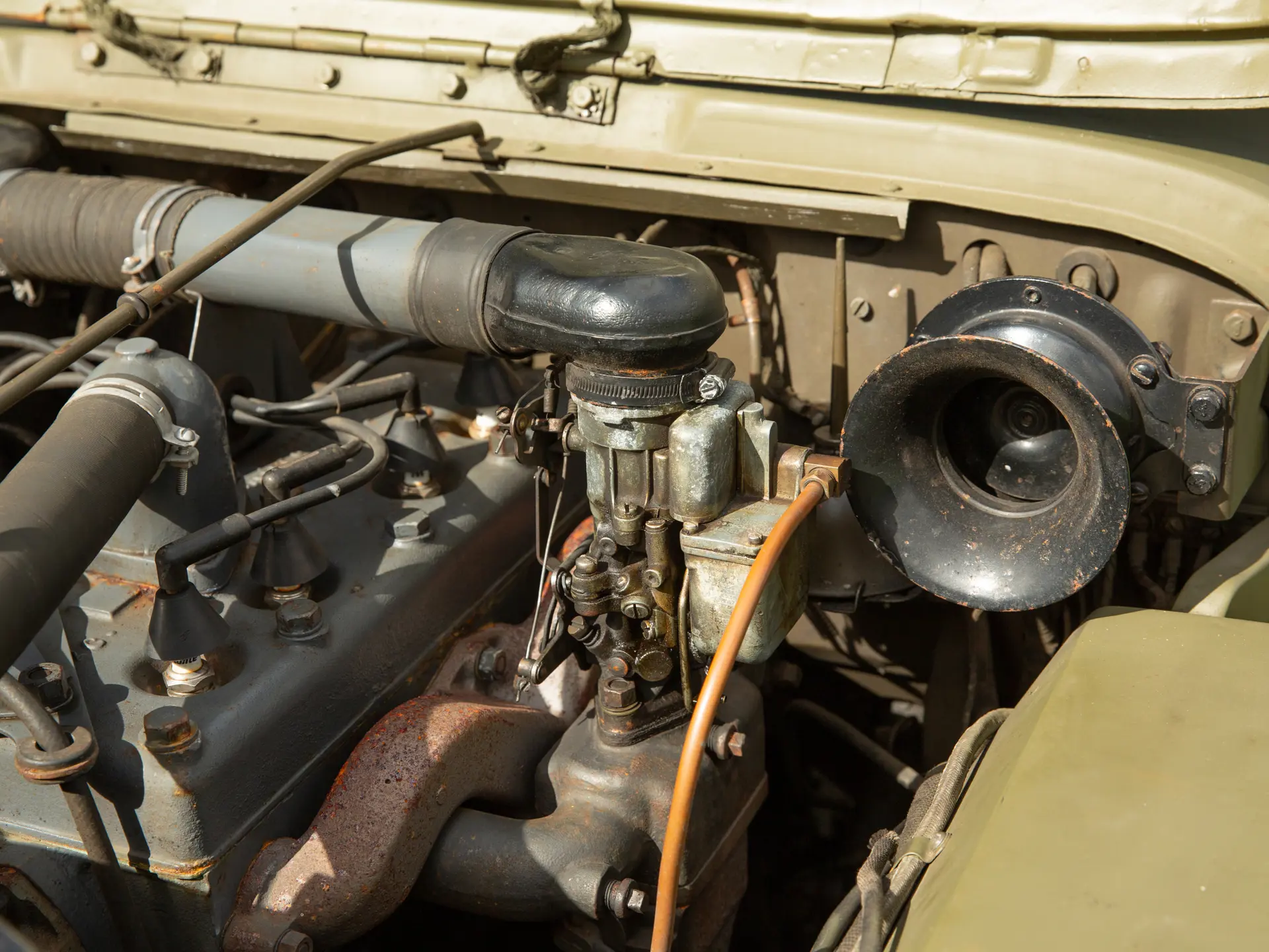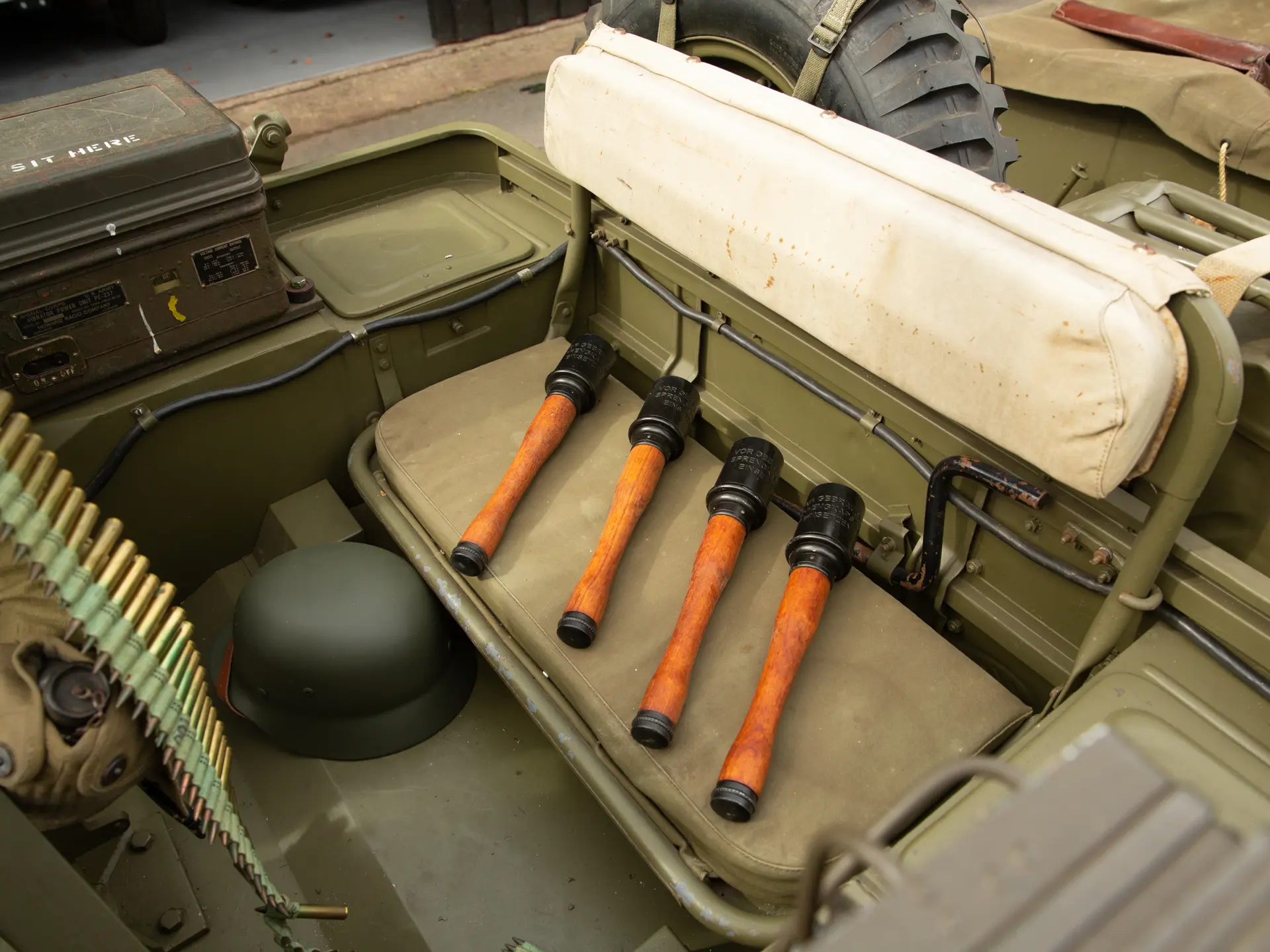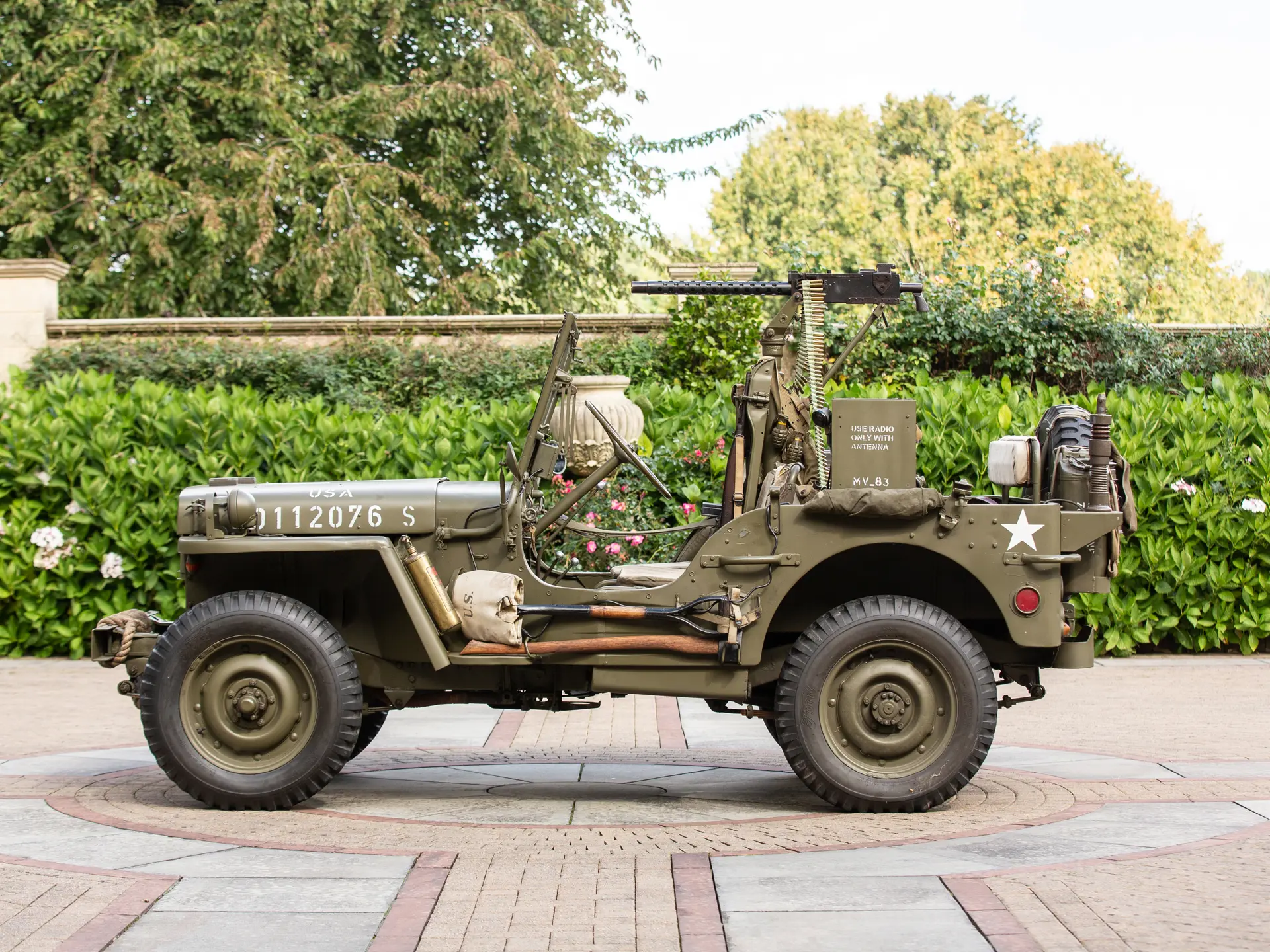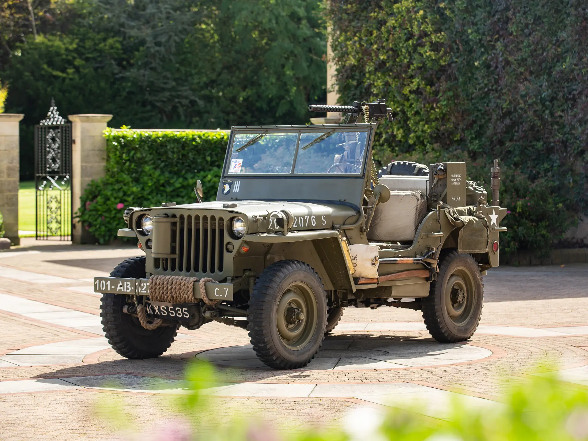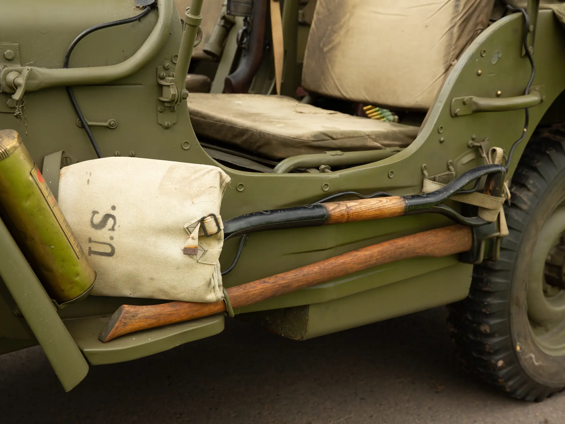 L’exemplaire présenté ntéressera sans aucun doute les collectionneurs et les passionnés de l’armée. Finie en vert armée avec la livrée appropriée, la Ford GPW est accompagnée de nombreux accessoires militaires pertinents, notamment des haches, des caisses rigides, une pelle, un câble de remorquage et une machine à tourelle. On sait que le 4×4 a été immatriculé aux Pays-Bas en 1996 et qu’il a rejoint peu après le musée Den Hartogh Ford, qui constituait alors l’une des plus grandes collections Ford au monde. Acquise par The Dean Kronsbein Collection (avec sa remorque de couleur assortie) lors de la dissolution du musée en 2018, la Ford a été fièrement conservée aux côtés d’autres 4×4 d’époque dans le garage soigneusement aménagé de l’expéditeur. Symbole de l’ingéniosité américaine et de la prospérité de l’esprit de guerre, la Ford GPW est un symbole du 20e siècle..