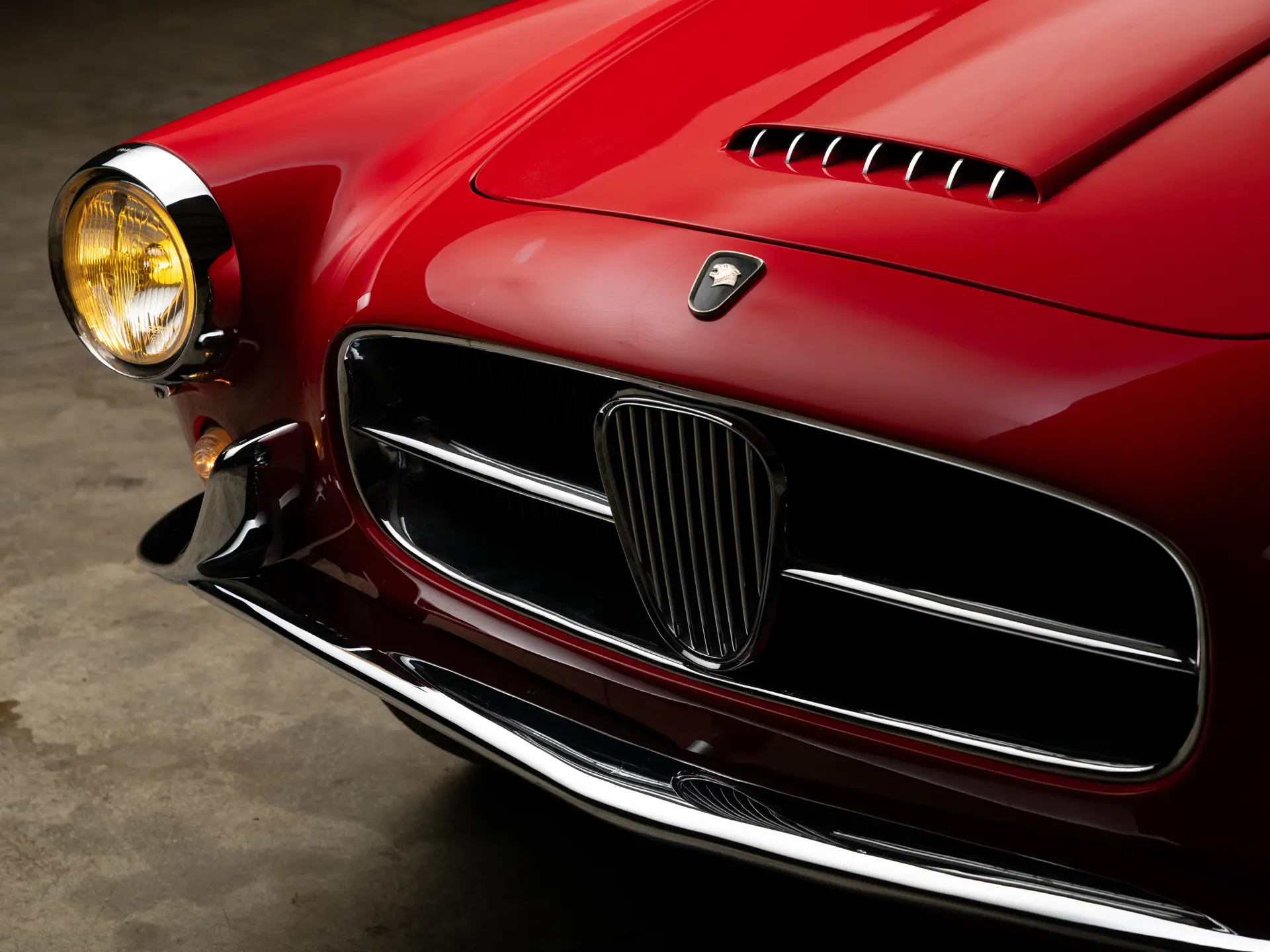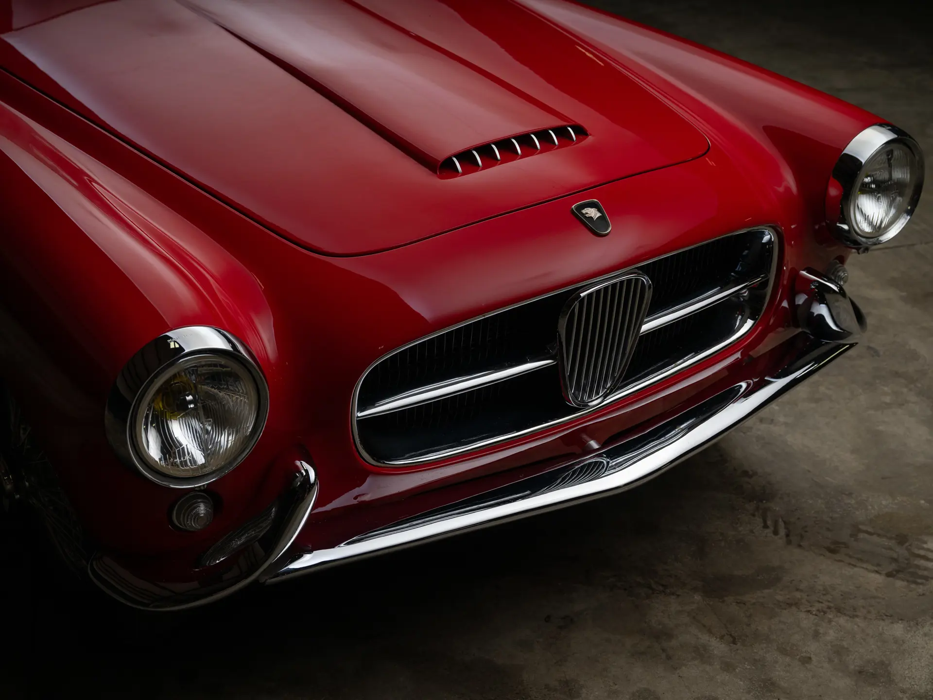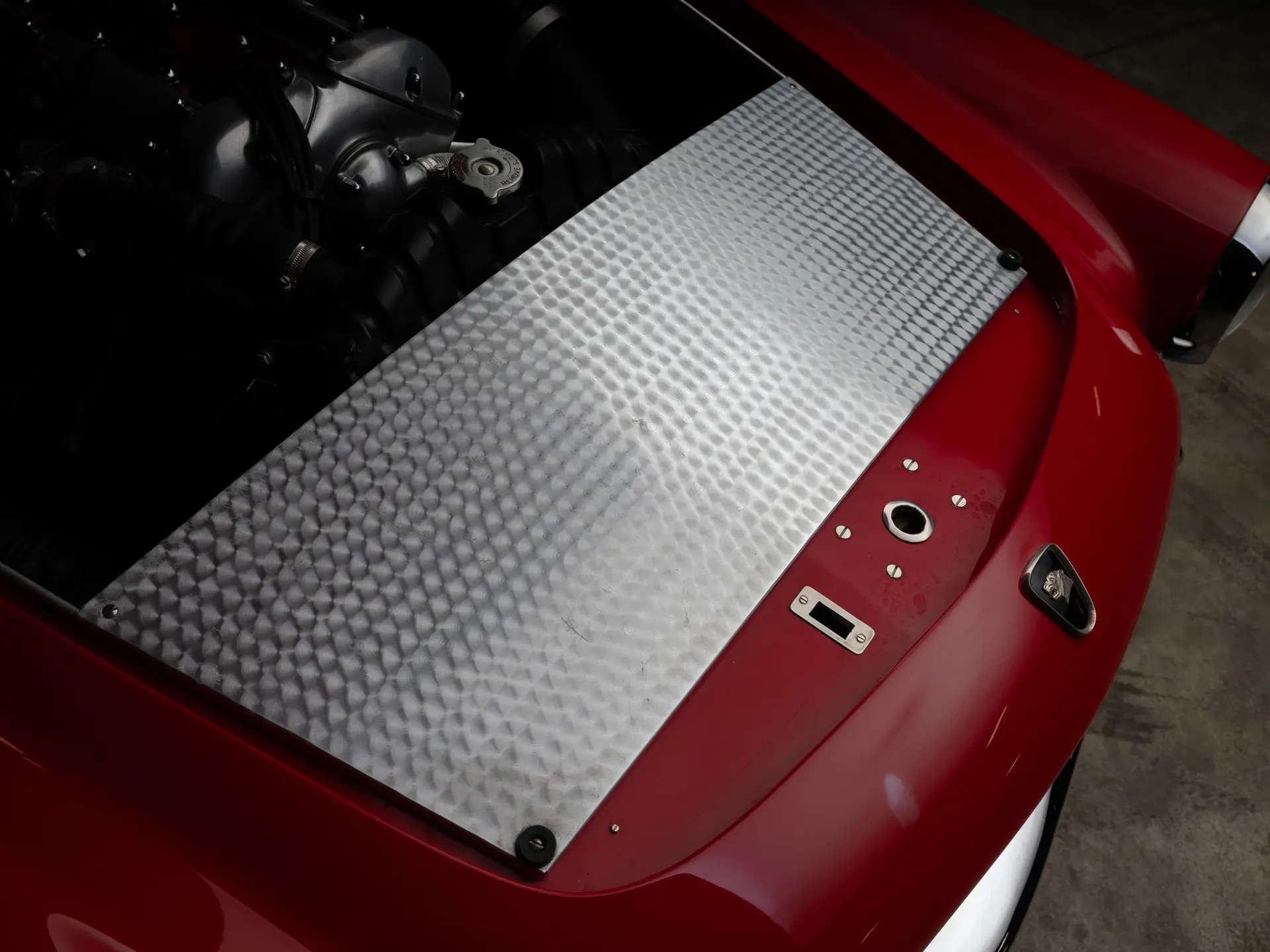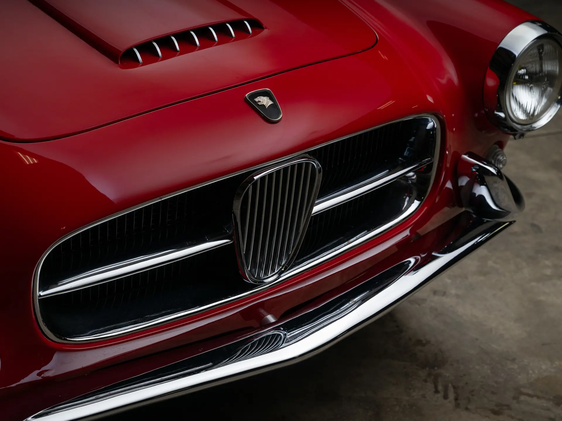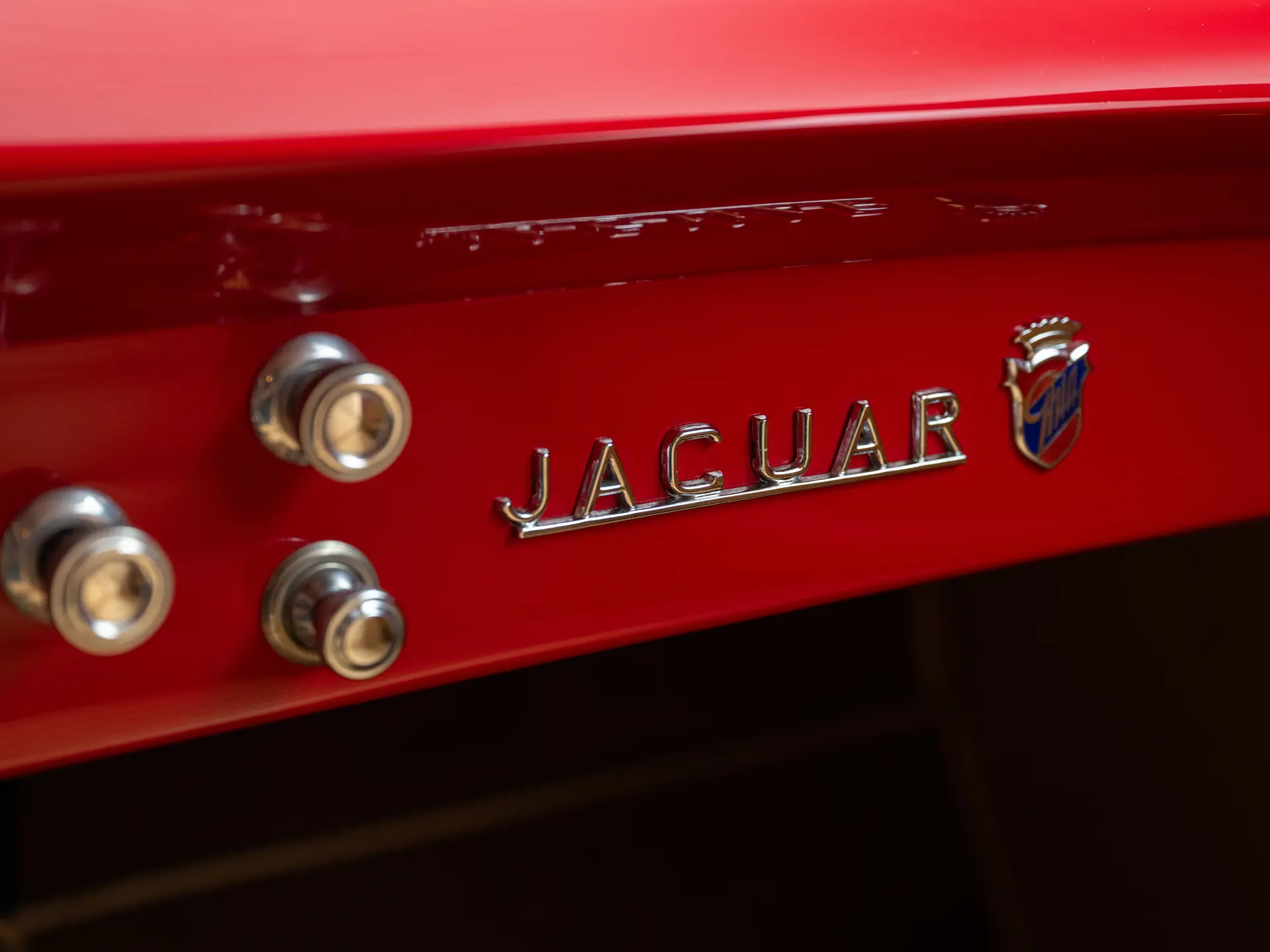 Le fait que Ghia soit l’un des carrossiers italiens à créer des carrosseries spéciales pour le XK 140 n’est pas une surprise : sa superbe carrosserie Supersonic, signée Giovanni Savonuzzi, avait été appliquée au châssis du XK 120 avec beaucoup d’effet. Le successeur du XK 140 conservera les proportions spectaculaires du Supersonic (capot long et pont court), mais il sera clairement modernisé. Ses flancs sont plus nets, ses ailerons arrière sont plus grands et sa ligne de toit semble plus haute, avec beaucoup de verre de tous les côtés de l’habitacle. En prime, la carrosserie en aluminium de Ghia était plus légère que la carrosserie en acier typique des Jaguar. Un emblème subtil sur le capot et l’inscription sur le coffre étaient les seuls indices extérieurs de la présence d’un châssis Jaguar sous la carrosserie.