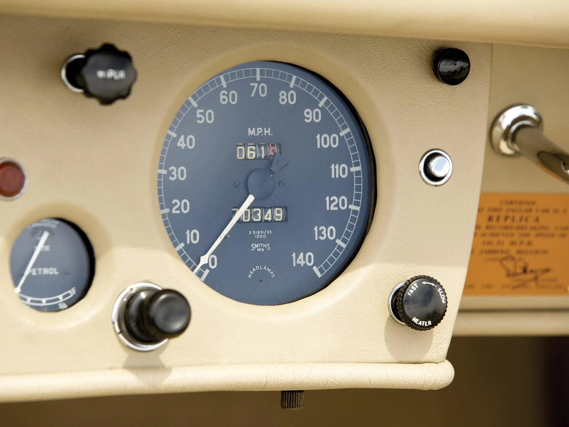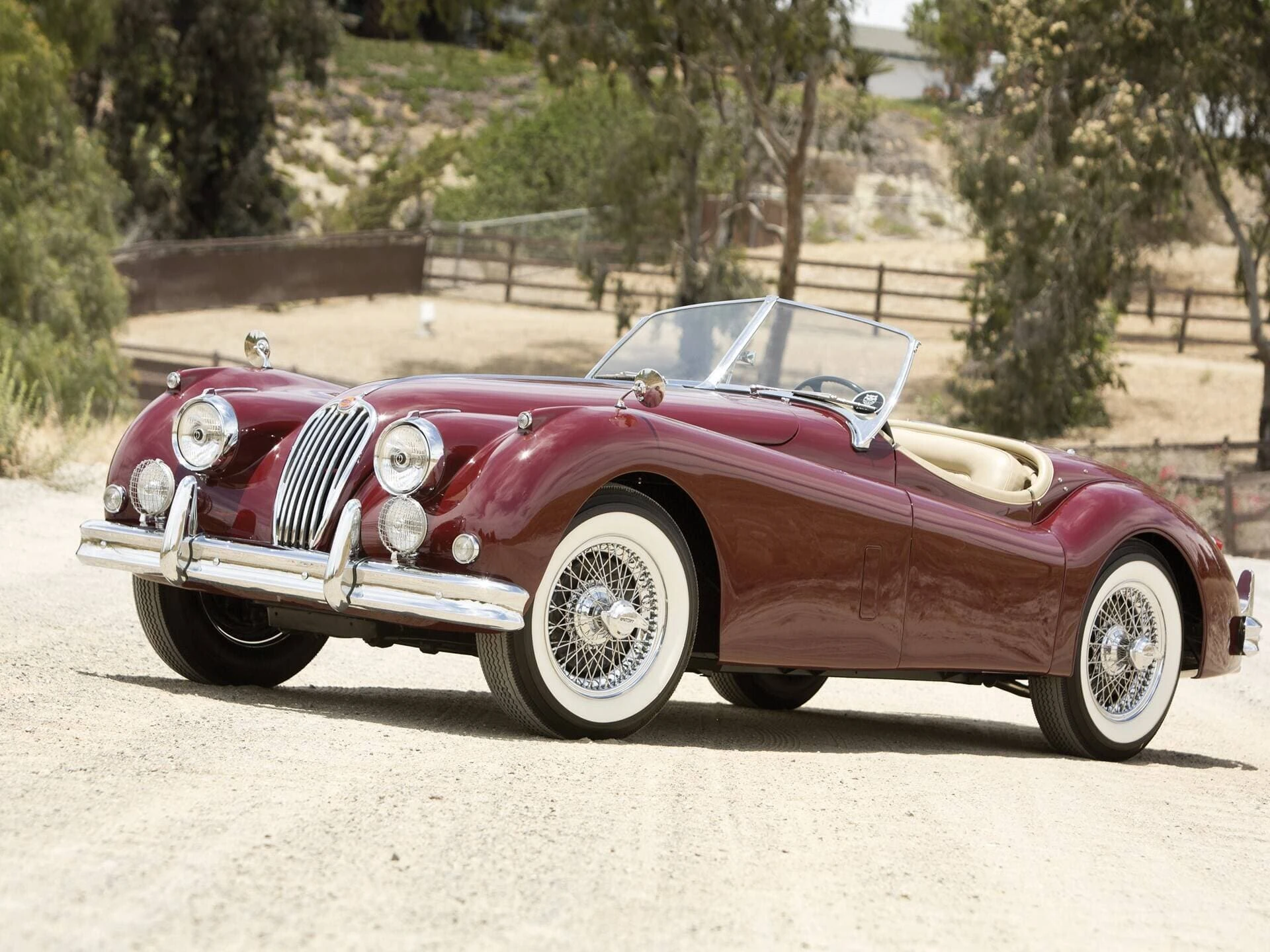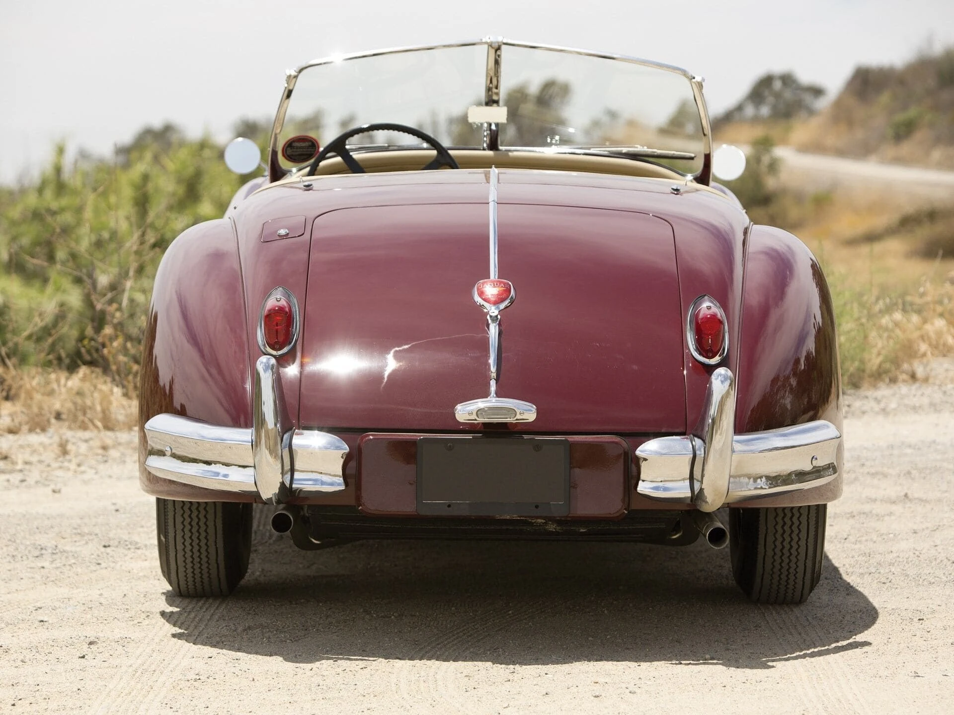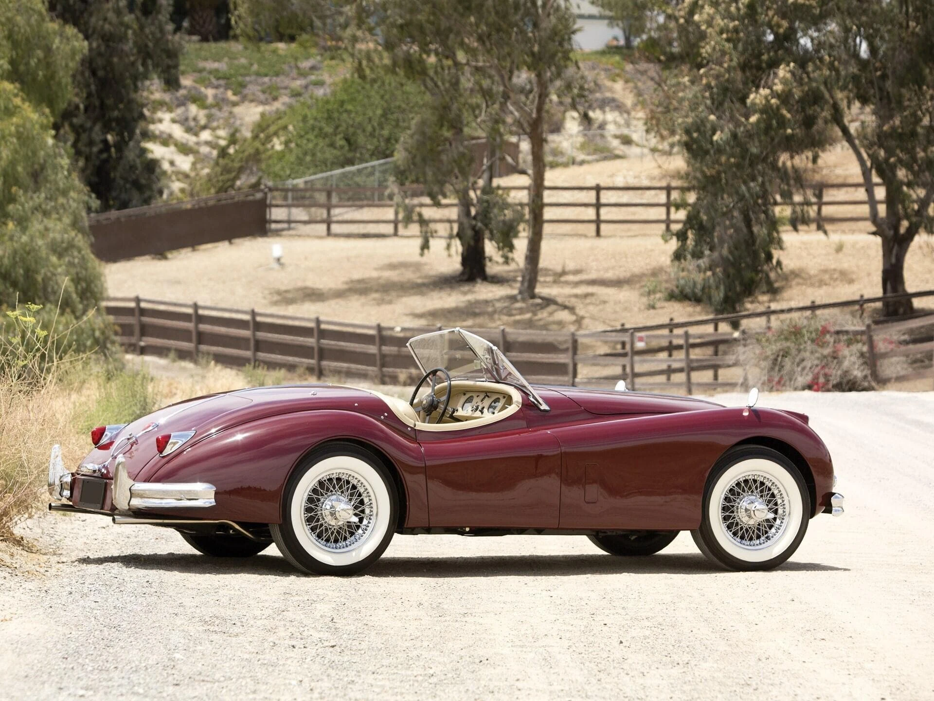 La XK140 était déjà l’une des voitures de série les plus rapides au monde lorsqu’elle a été introduite en 1954 pour succéder au modèle XK120 sortant. La version MC (« Modified with C head », également appelé spécifications SE en Europe) du XK140 était équipée de culasses dérivées de la course, de deux carburateurs SU 8 plus gros, de barres de torsion robustes et d’un système d’échappement double pour des performances considérablement améliorées et une puissance de 213 ch. Le moteur était repositionné trois pouces vers l’avant sur le châssis, offrant plus d’espace pour les passagers et de l’espace pour la batterie dans le puits d’aile avant et libérant la zone derrière les sièges pour un strapontin ou un espace de rangement supplémentaire.