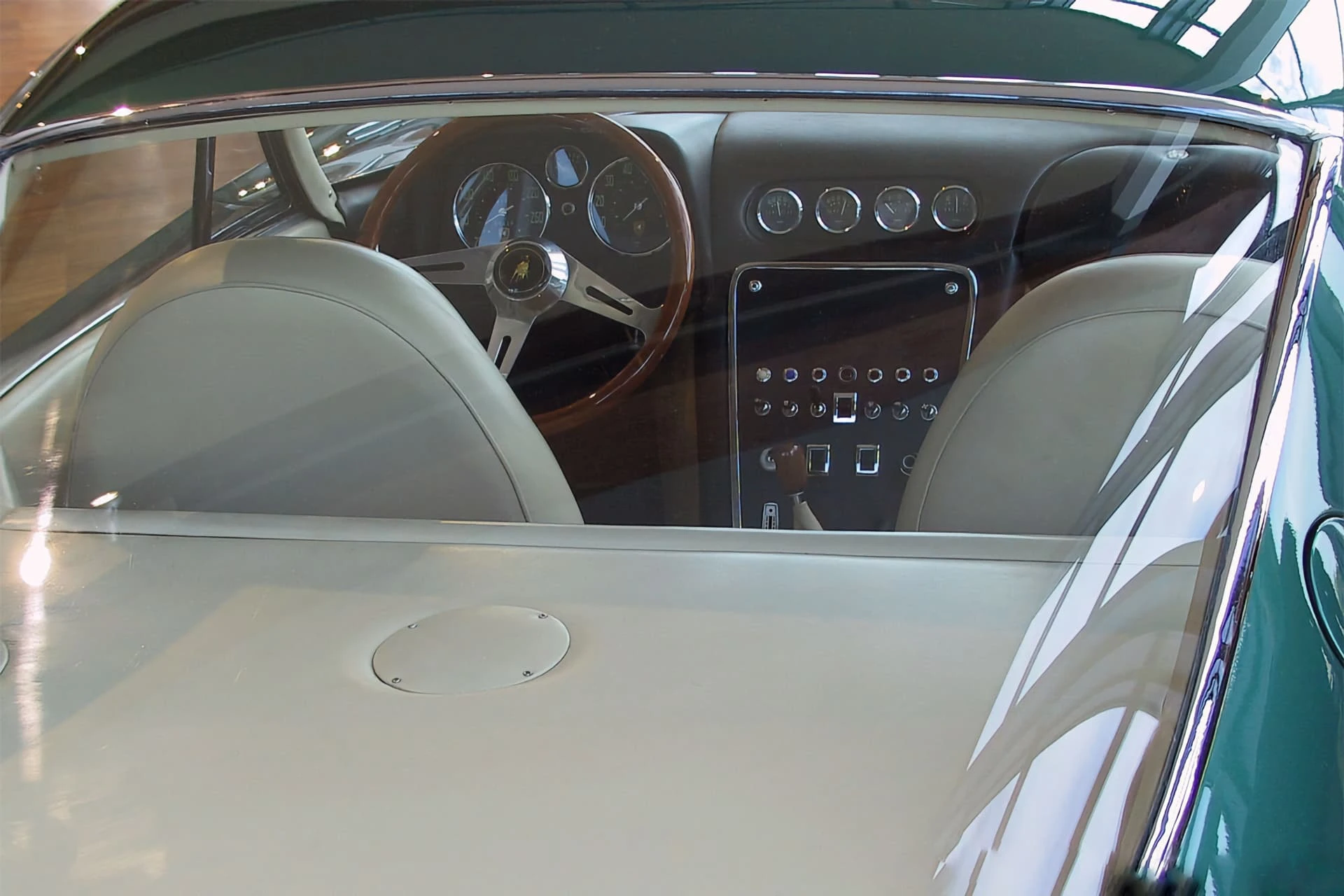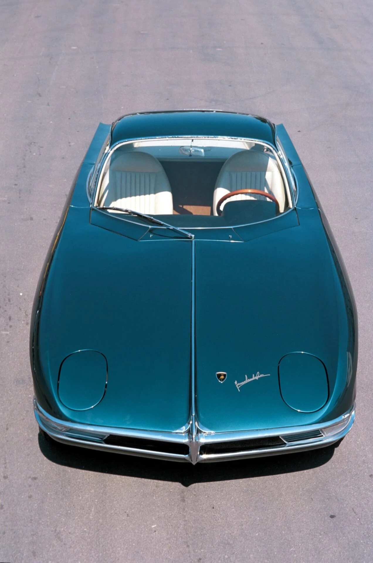 Pour la petite histoire, la carrosserie ayant été sculptée séparément par Franco Scaglione, les ingénieurs ont réalisé trop tard qu’elle ne s’accorderait pas avec le moteur. Le capot bas et les lignes fluides avaient un aspect absolument génial, mais ne laissaient pas beaucoup d’espace aux ingénieurs pour travailler. Dans l’urgence de finir la voiture pour le salon, Lamborghini a simplement placé quelques briques dans le compartiment moteur et fermé le capot.