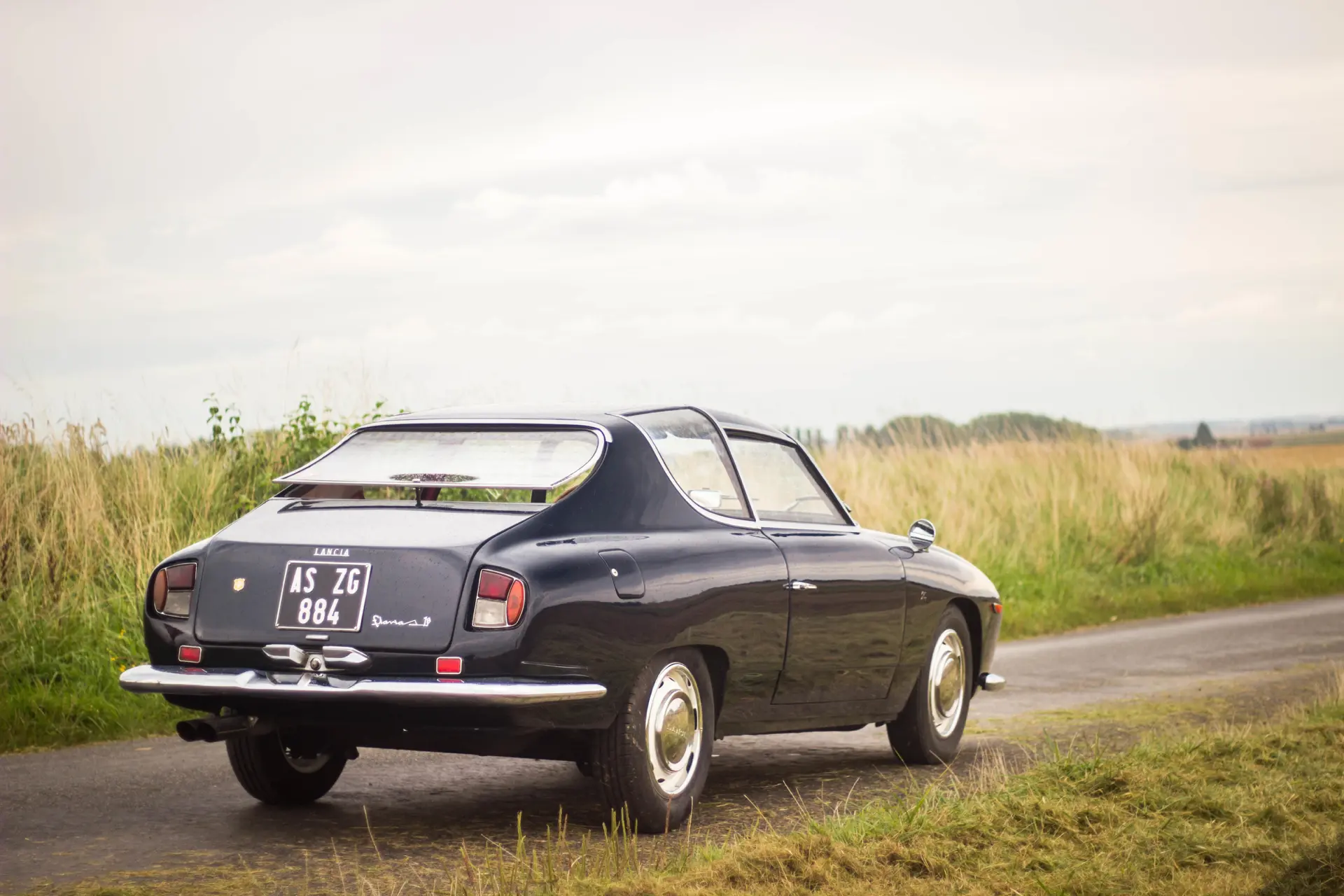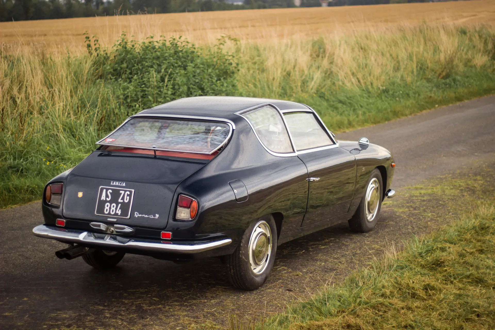 Lancée en 1961, la berline Flavia a maintenu la réputation enviable de Lancia en matière d’ingénierie automobile avancée et innovante. Conçue par Antonio Fessia et inspirée de son prototype Cemsa de 1947, la Flavia était la première voiture de série italienne à utiliser une traction avant. Placé bien en avant des roues avant, le moteur était un quatre cylindres opposés horizontalement à soupapes en tête de 1 488 cc ; la suspension était indépendante à l’avant et par essieu à poutre à l’arrière, et il y avait des freins à disque à double circuit et servo-assistés aux quatre roues. La berline a été rejointe par le coupé à empattement plus court de style Pininfarina en 1962, ce dernier servant de base à une version cabriolet de Vignale. Simultanément, Lancia et Zagato ont exposé la Flavia Sport lors du Salon de Genève de 1962, son design non conventionnel d’Ercole Spada présentant une surprenante calandre avant découpée et des vitres arrière incurvées. Fidèle à la tradition de Zagato de construire des modèles légers, son coupé Flavia Sport arborait une carrosserie entièrement en alliage.
