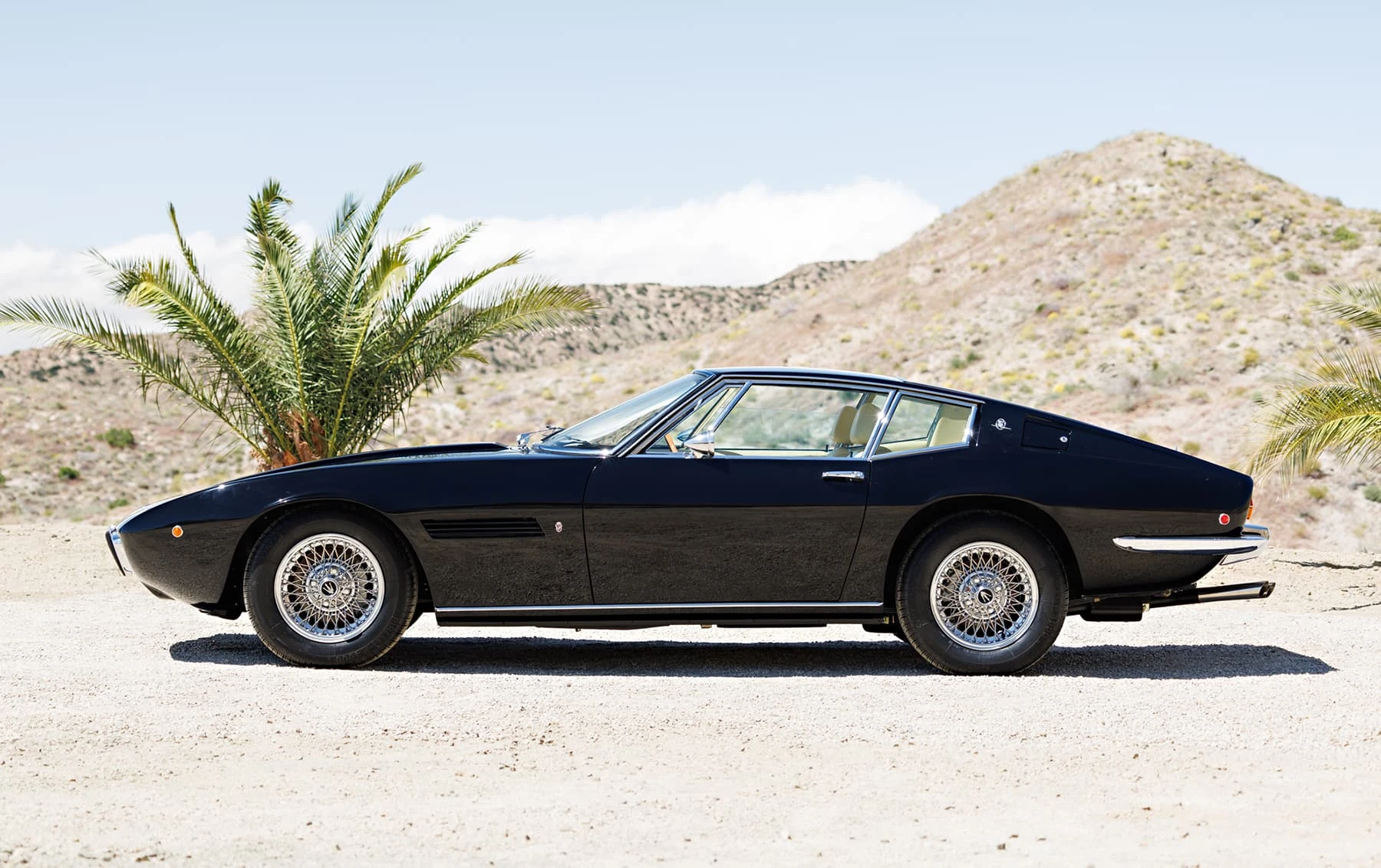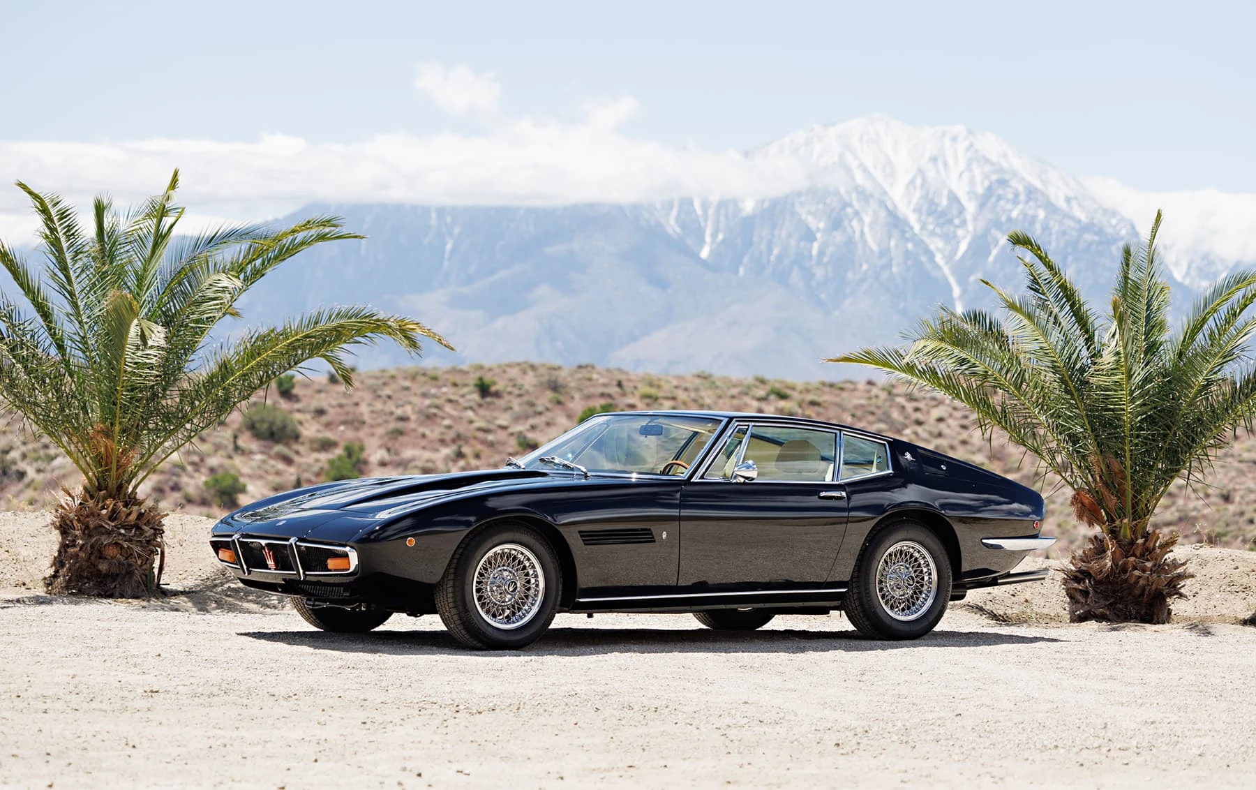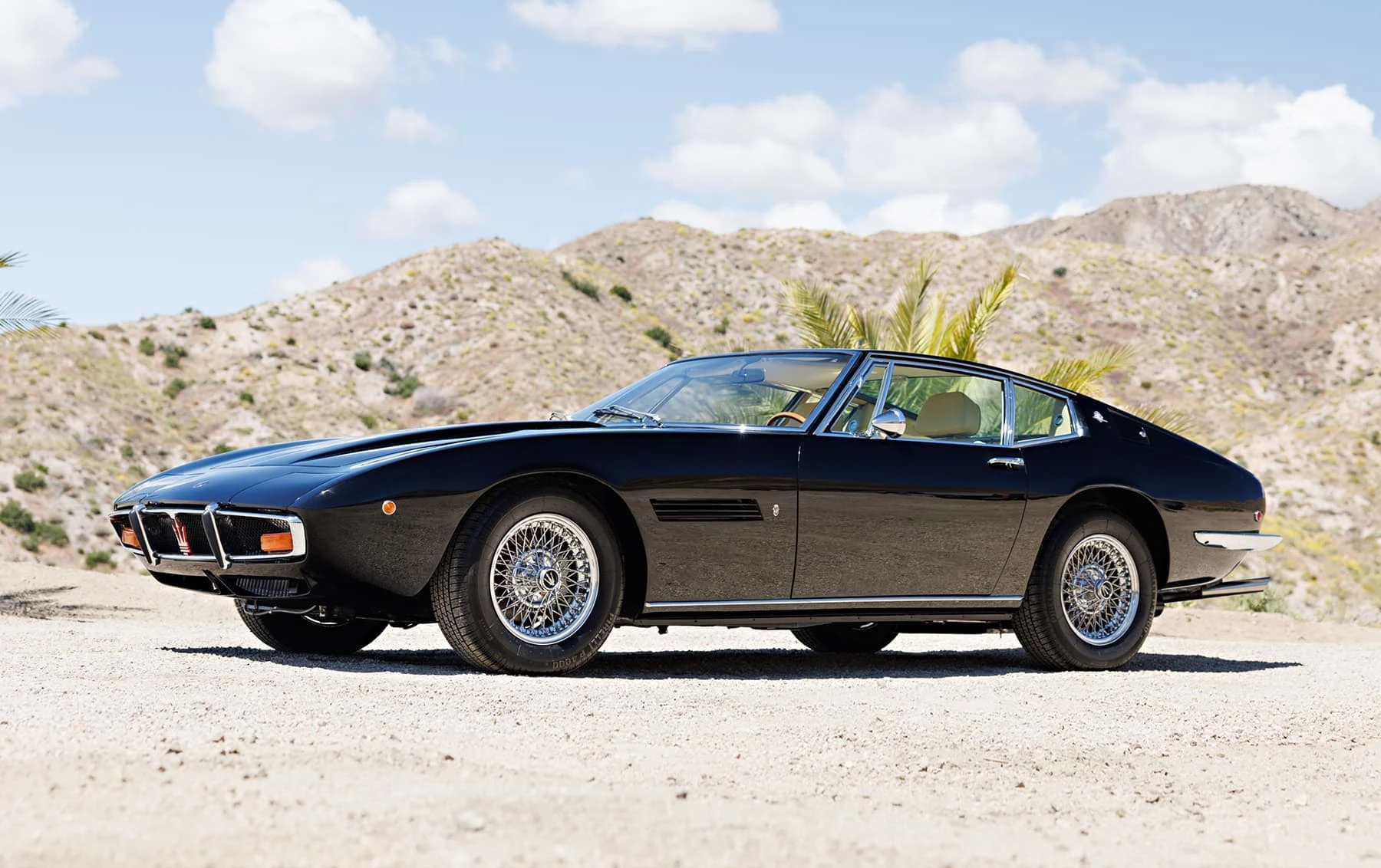 Comme ses sœurs Mistral et plus tard Khamsin, la Ghibli porte le nom d’un vent violent. Dévoilée au salon de l’automobile de Turin en 1966, ses belles lignes fluides ont été dessinées par Giorgetto Giugiaro, alors designer en chef de Ghia. Le style est long, bas et large, avec des phares cachés et une grille de calandre bien marquée par l’emblème du trident de la firme, préfigurant le style des Maserati à venir dans les années 1970. Produite à partir de 1967, la Ghibli s’est rapidement imposée comme une concurrente de taille face à ses principales rivales, la Ferrari 275 GTB et la Lamborghini 400 GT.