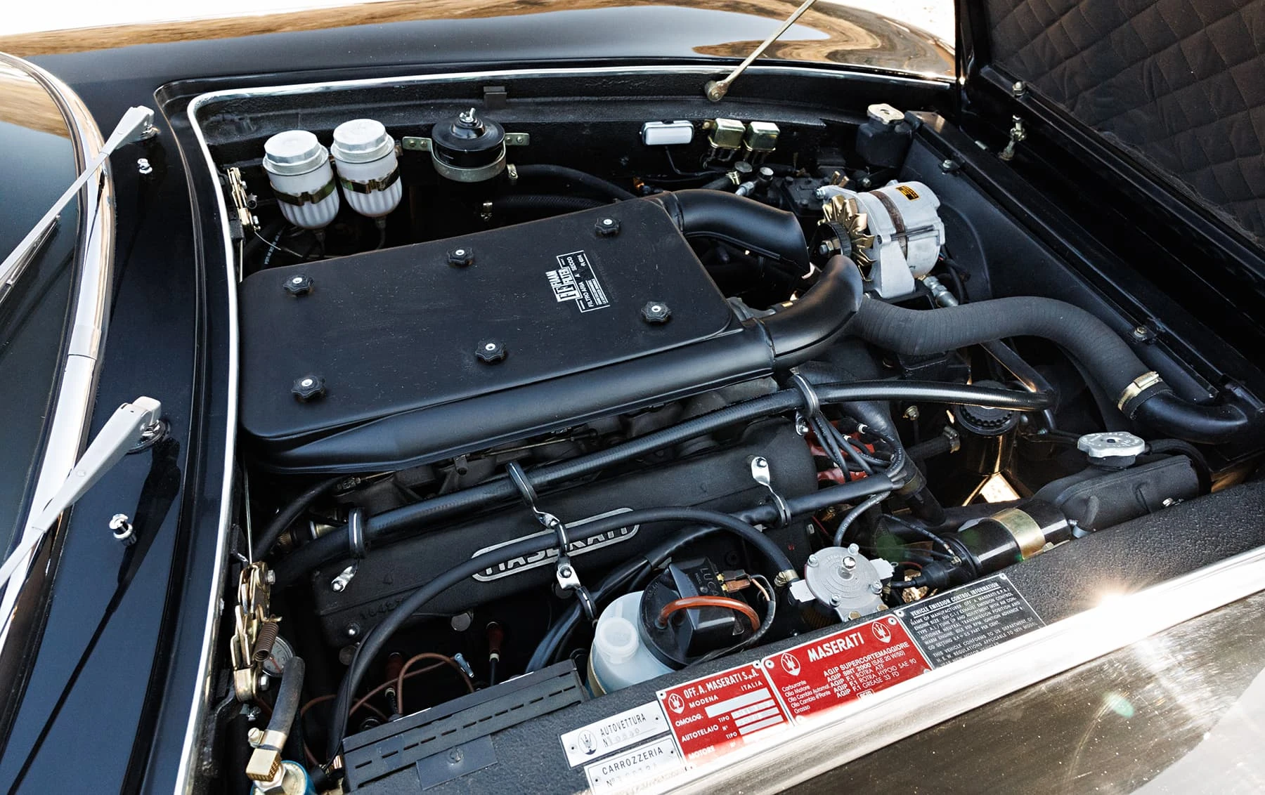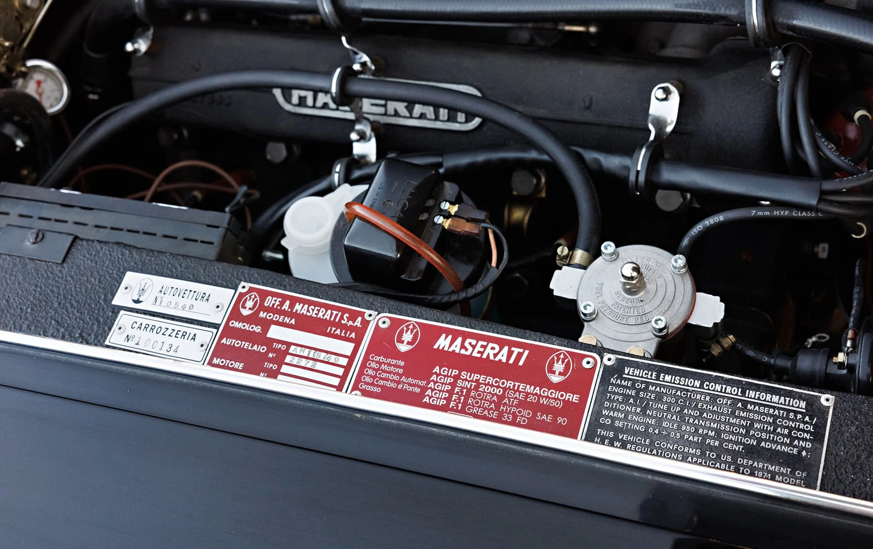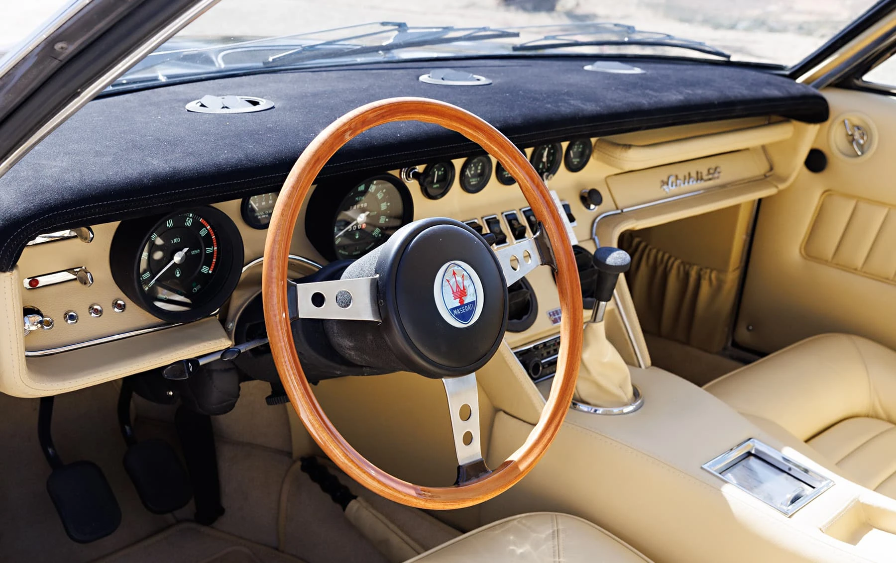 Maserati a relevé le défi en 1970 avec l’introduction du modèle SS, doté d’un moteur de 4,9 litres de 335 chevaux avec allumage commandé et quatre carburateurs Weber 42 DCNF. À sa sortie, il s’agissait de la voiture la plus rapide jamais produite par Maserati, avec une vitesse maximale de 182 km/h. Au total, seuls 1 170 coupés et 125 spiders ont été produits sur l’ensemble du cycle de production. Seuls 413 Ghiblis étaient des coupés SS 4,9 litres avec conduite à gauche.