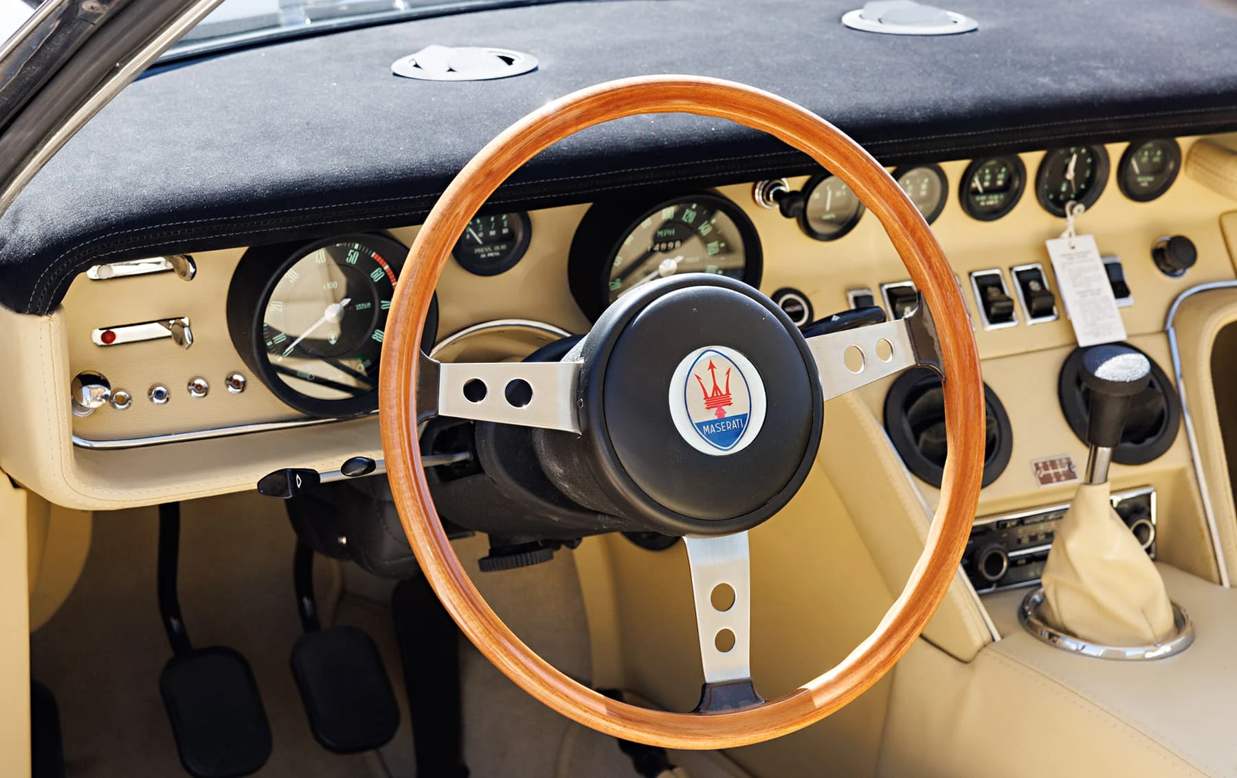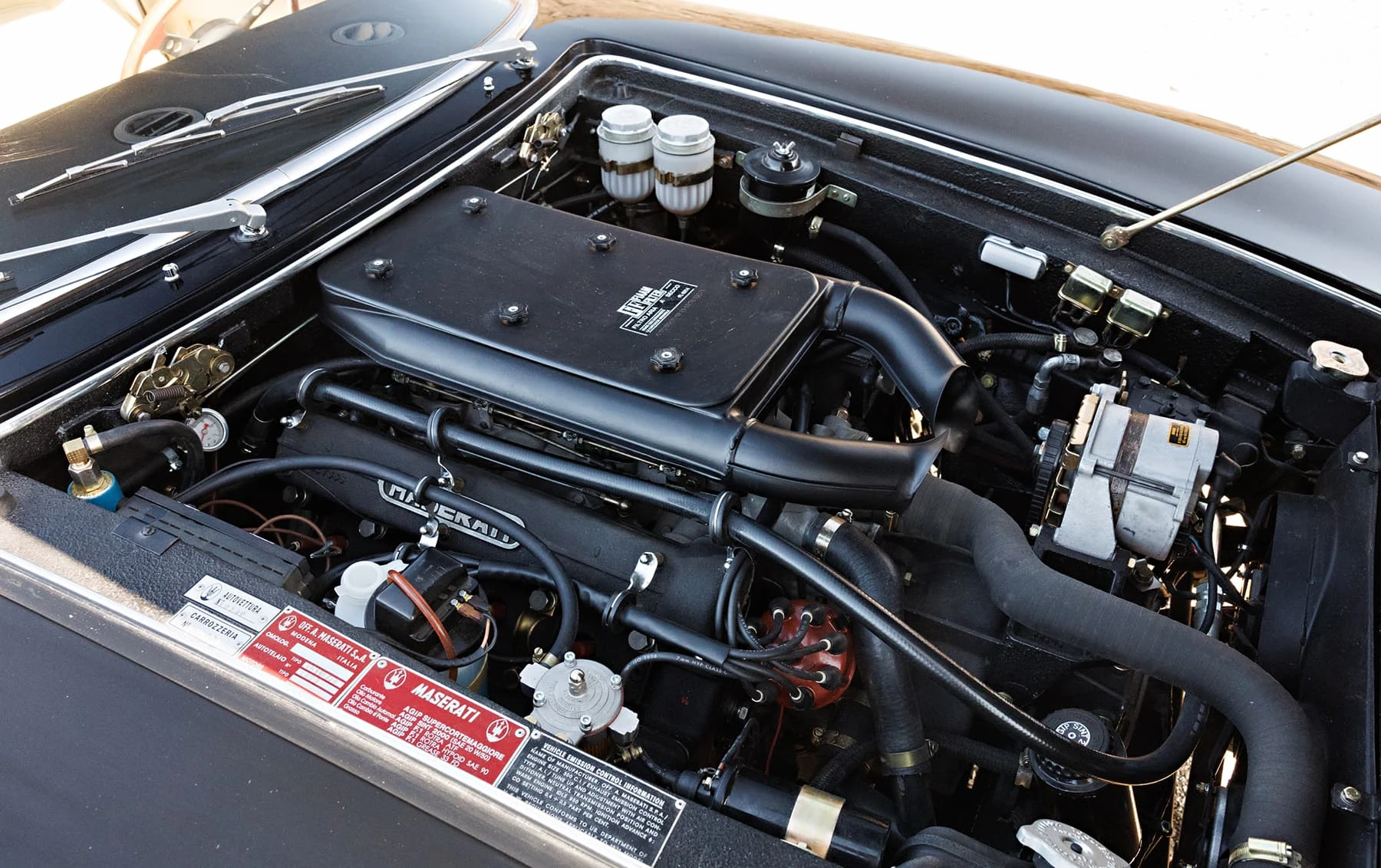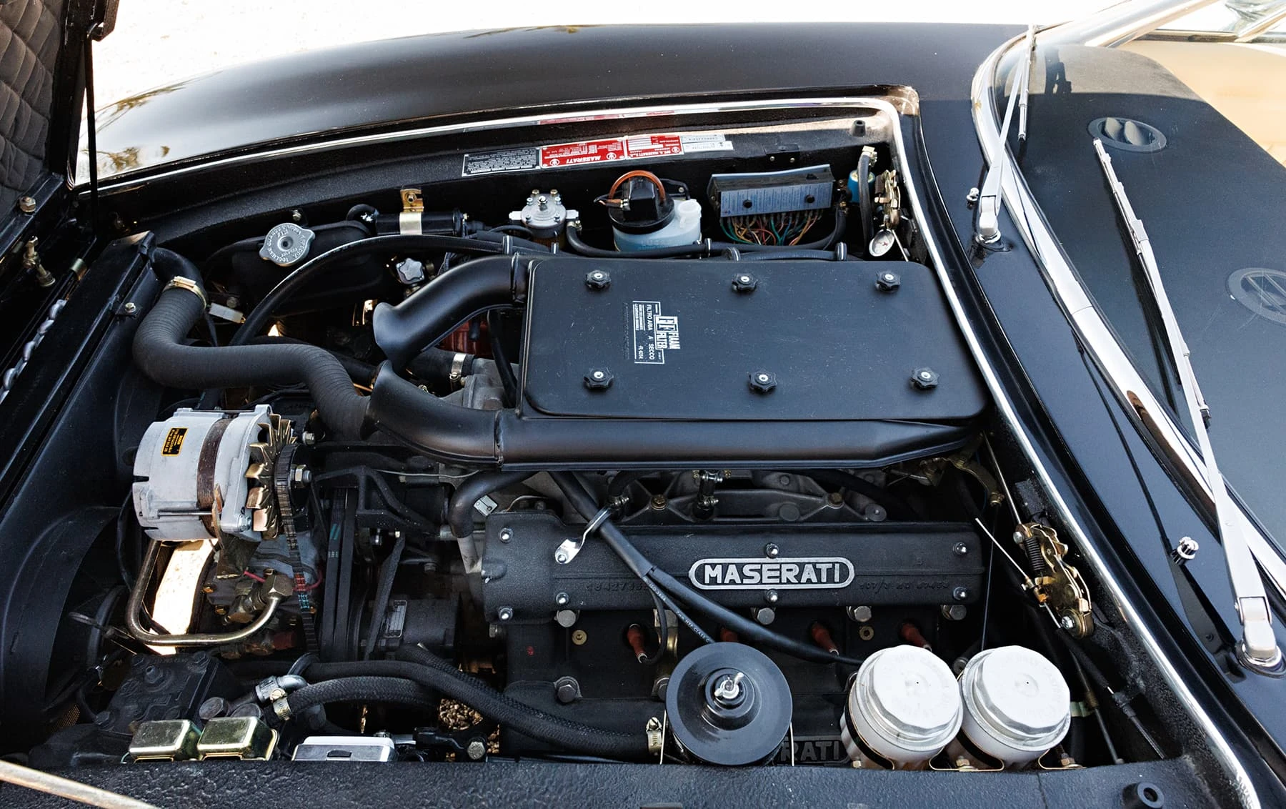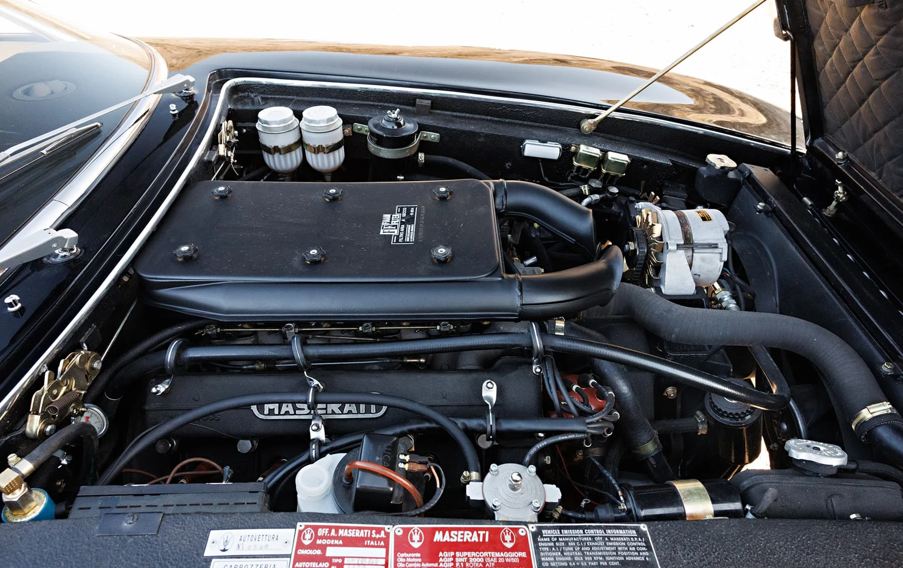 Maserati a relevé le défi en 1970 avec l’introduction du modèle SS, doté d’un moteur de 4,9 litres de 335 chevaux avec allumage commandé et quatre carburateurs Weber 42 DCNF. À sa sortie, il s’agissait de la voiture la plus rapide jamais produite par Maserati, avec une vitesse maximale de 182 km/h. Au total, seuls 1 170 coupés et 125 spiders ont été produits sur l’ensemble du cycle de production. Seuls 413 Ghiblis étaient des coupés SS 4,9 litres avec conduite à gauche.