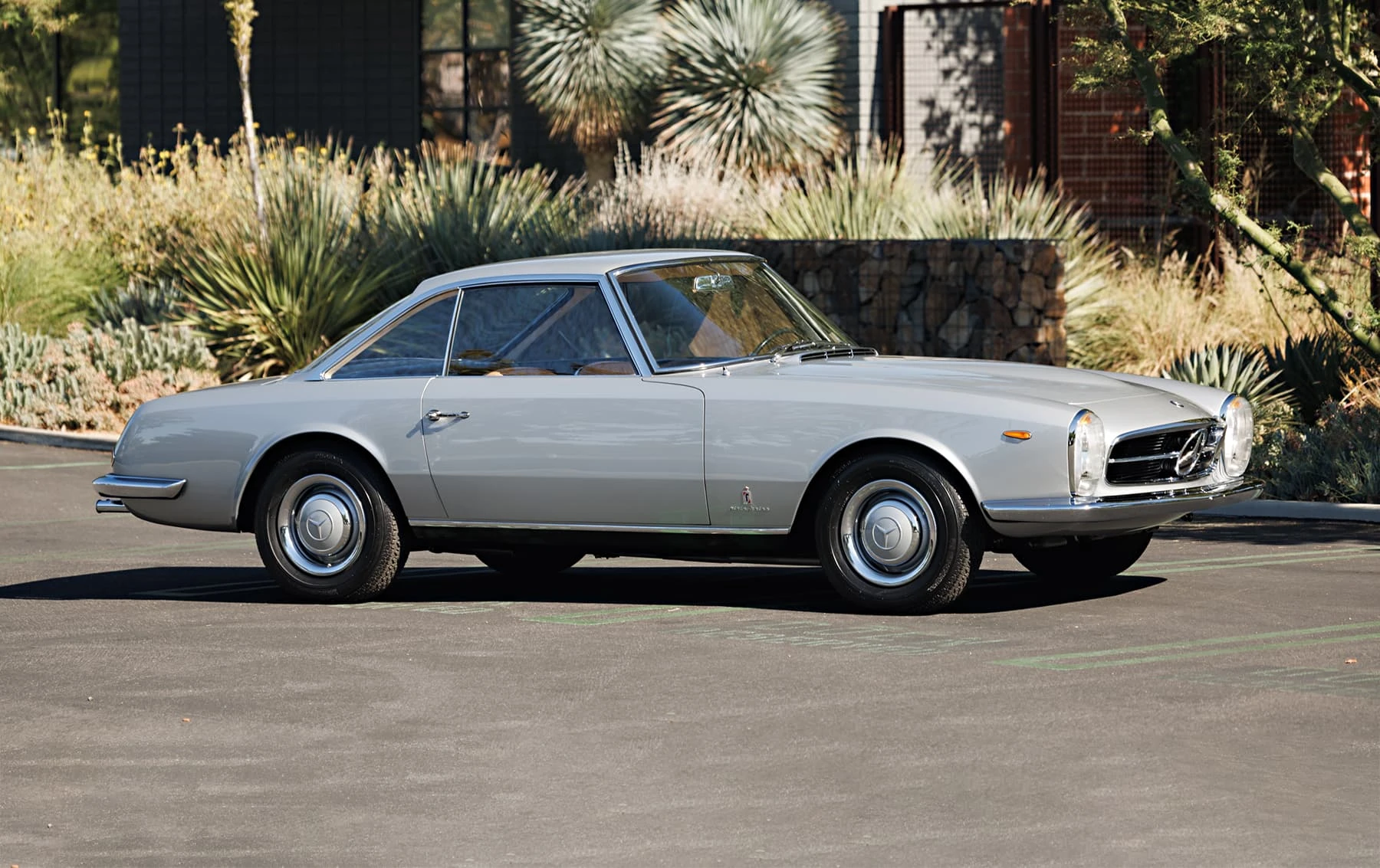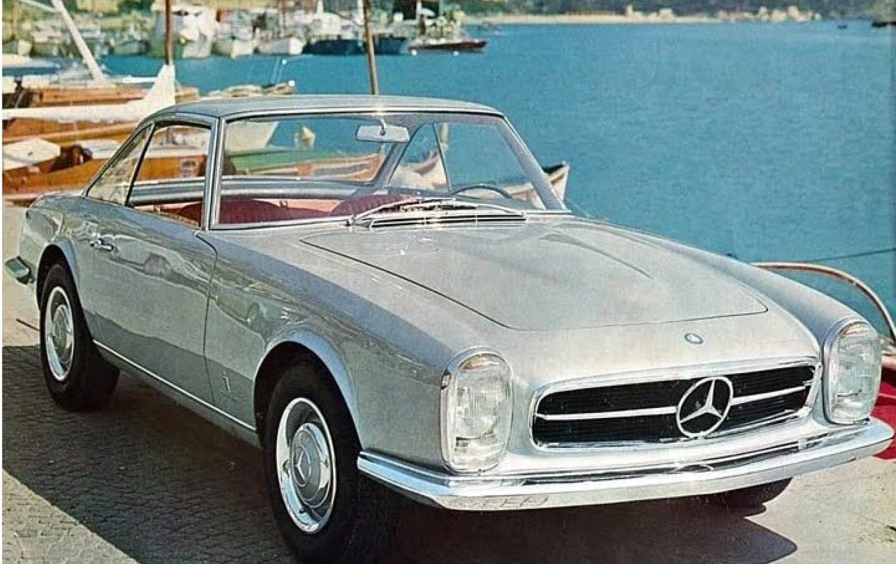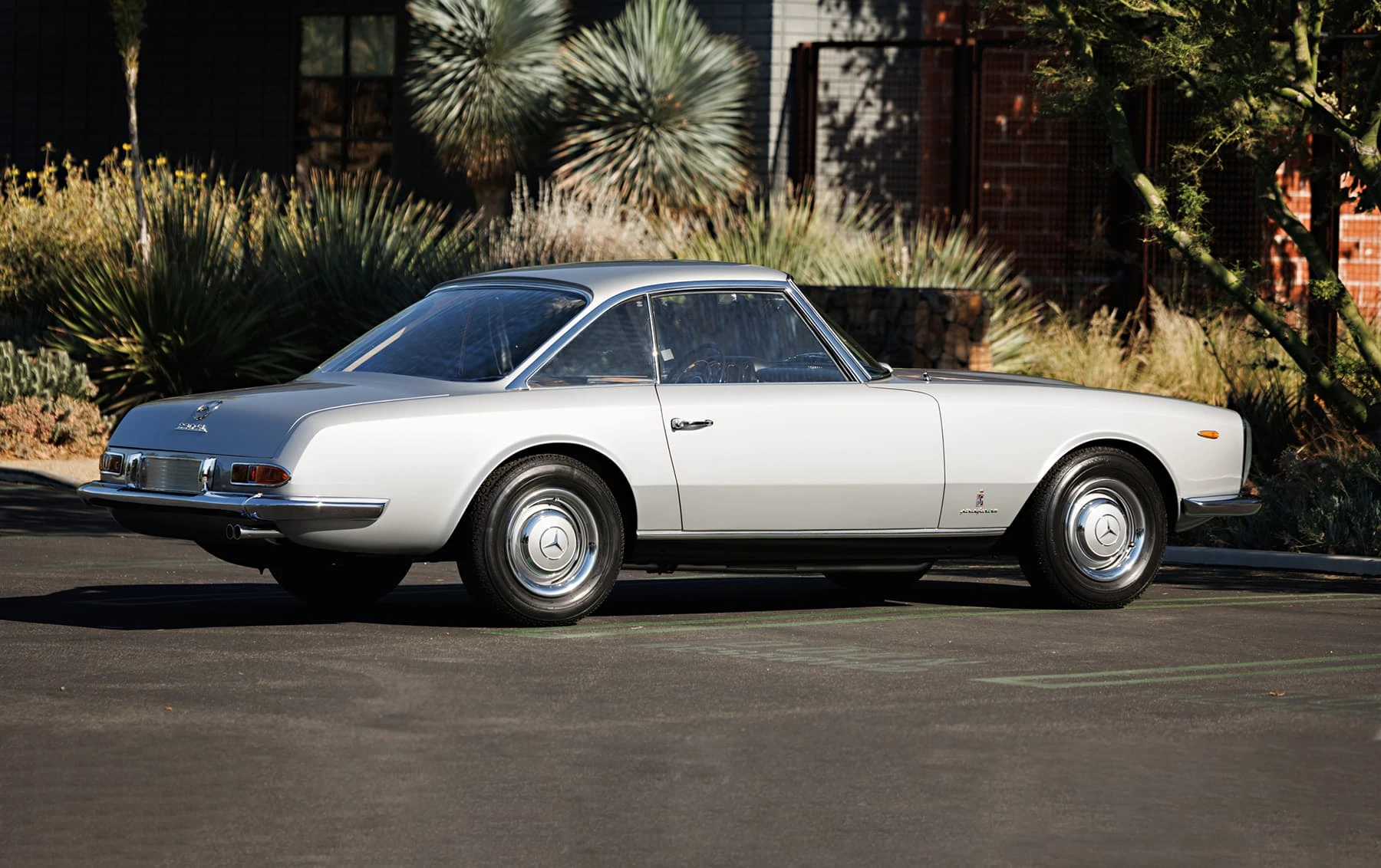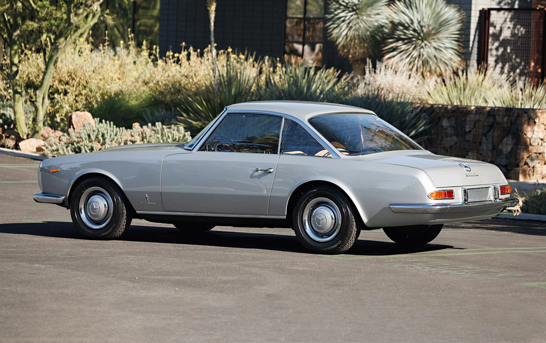 Deux mois seulement après la première mondiale de la nouvelle W113 230SL Karl Wilfert, chef du département carrosserie de l’usine de Sindelfingen, reçoit une lettre de Pininfarina lui demandant d’autoriser la création d’une nouvelle coupé basé sur le W113.. De manière quelque peu inhabituelle, Mercedes-Benz a approuvé le projet et a fourni une voiture au célèbre carrossier de Turin, en précisant que la voiture finie devait conserver l’image de marque générale de l’entreprise. En interne, Pininfaina a choisi Tom Tjaarda, 29 ans, né aux États-Unis, qui avait récemment terminé le design de la Ferrari 330 GT 2+2, pour diriger le projet. Conservant les proportions générales de la voiture de série, M. Tjaarda a magistralement réimaginé le SL comme un coupé gracieux, replaçant la calandre sur un nez allongé – avec une inclinaison plus agressive vers l’avant – entre les phares de série du marché européen. Les flancs sont biseautés au niveau de la ceinture de caisse, avec un angle plus élevé et plus prononcé au niveau des bas de caisse. Les ailes arrière et le couvercle de coffre reçoivent un traitement plus anguleux, tandis que le panneau arrière présente des feux arrière de taille réduite et un pare-chocs arrière sculpté en trois parties, commun aux véhicules de l’époque construits par Modenese.