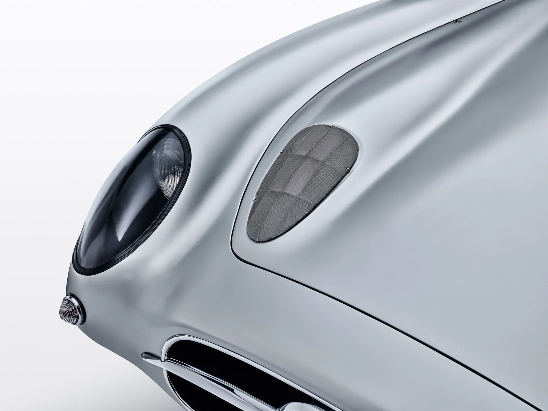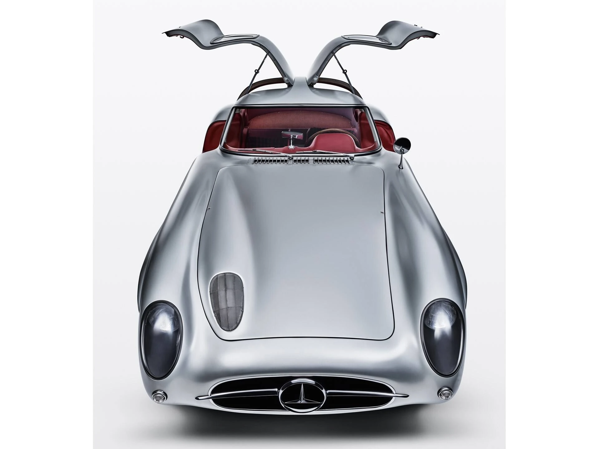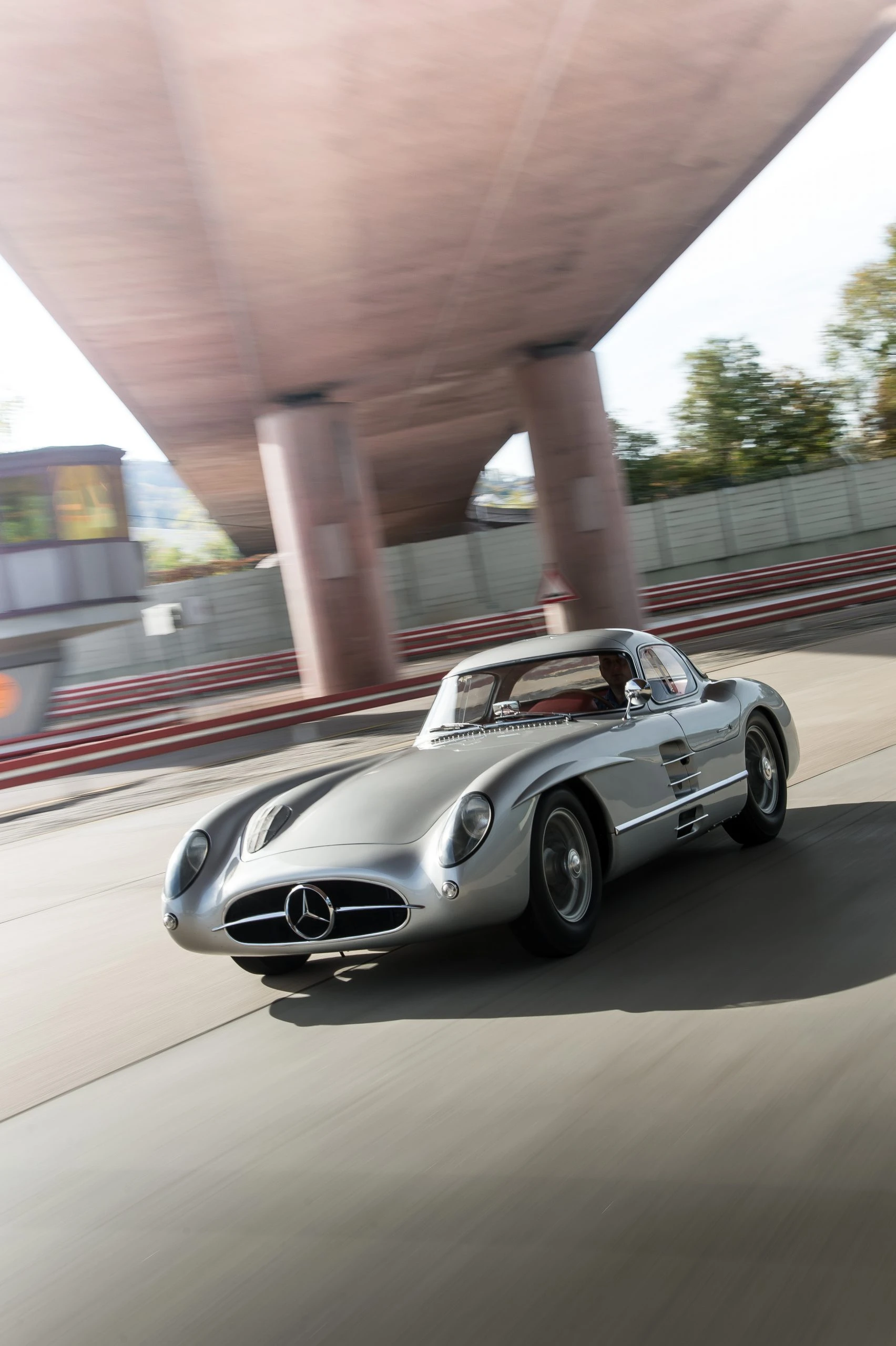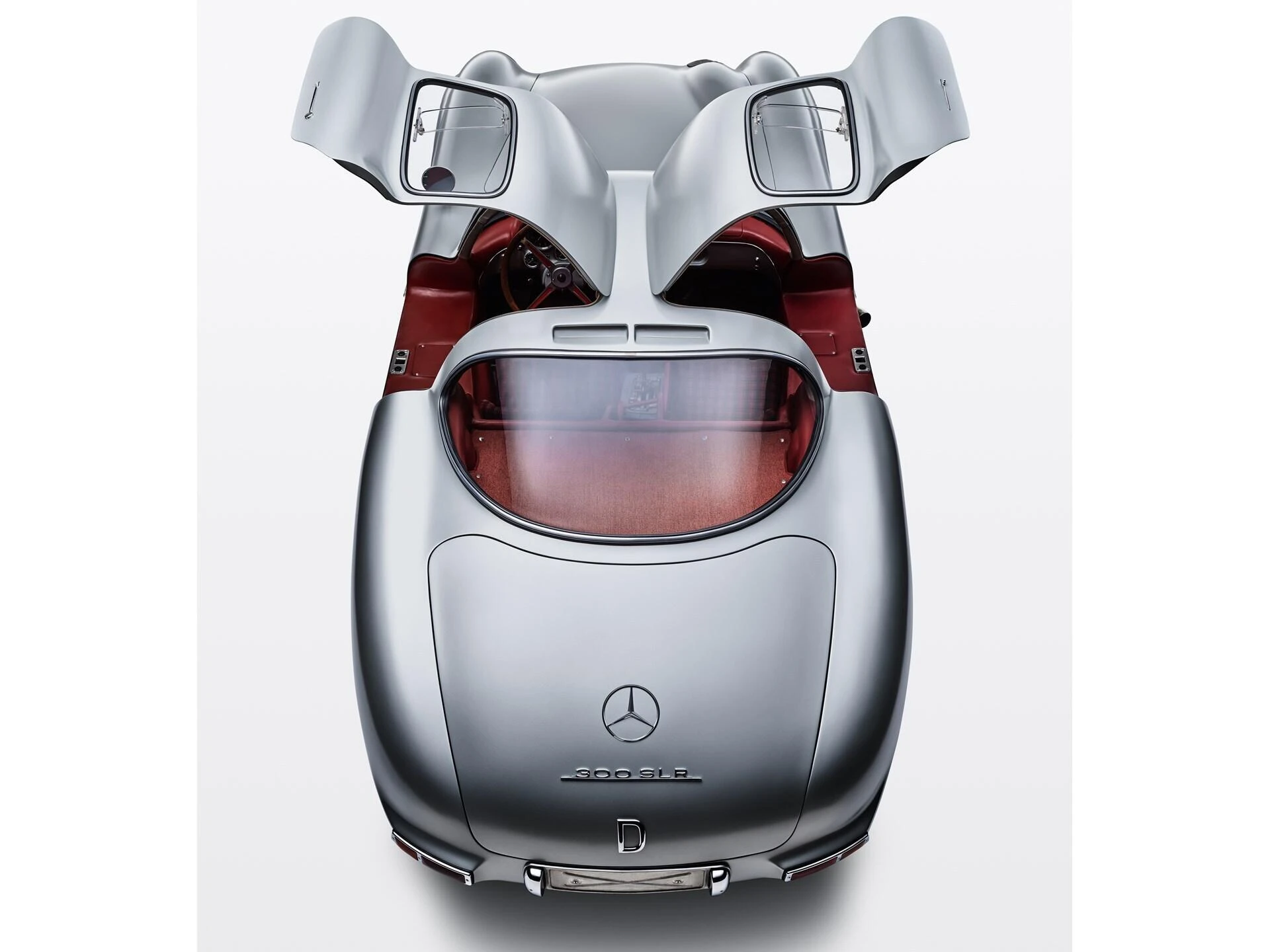 Ce coupé, habillé en tôles d’aluminium et doté du même moteur que ses sœurs, était la plus rapide des autos de route au monde à sa sortie, capable d’une vitesse de pointe de 290 km/h en 1955. Sur une structure tubulaire, l’étoile d’argent est apposée au nez devant son long compartiment moteur qui n’en finit pas de s’allonger devant son habitacle biplace, et avec ses portières qui s’ouvrent en papillon ; c’était le nec plus ultra des ateliers courses de Mercedes.