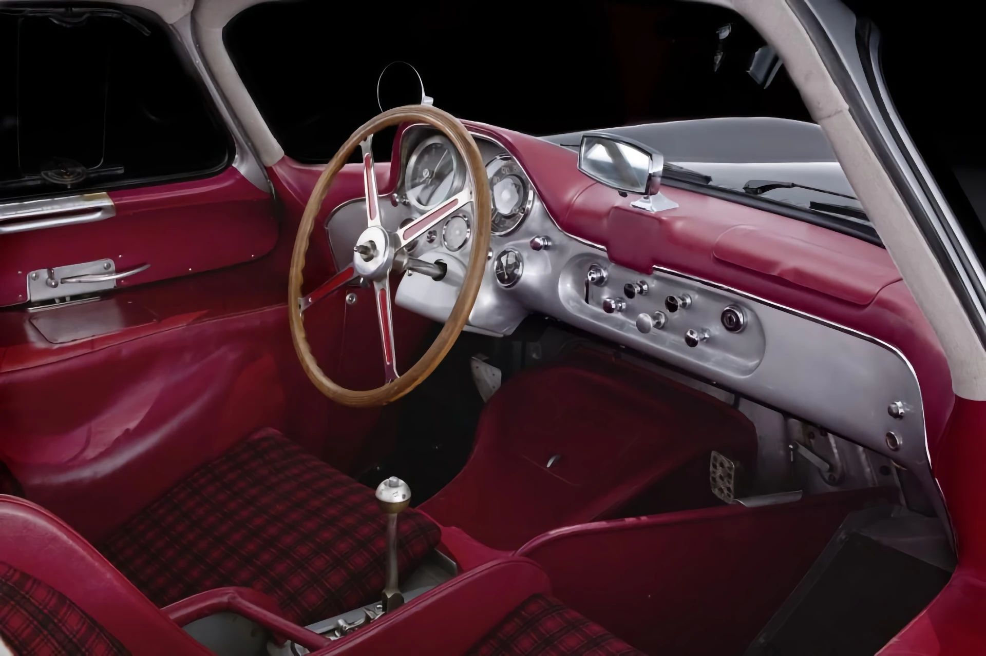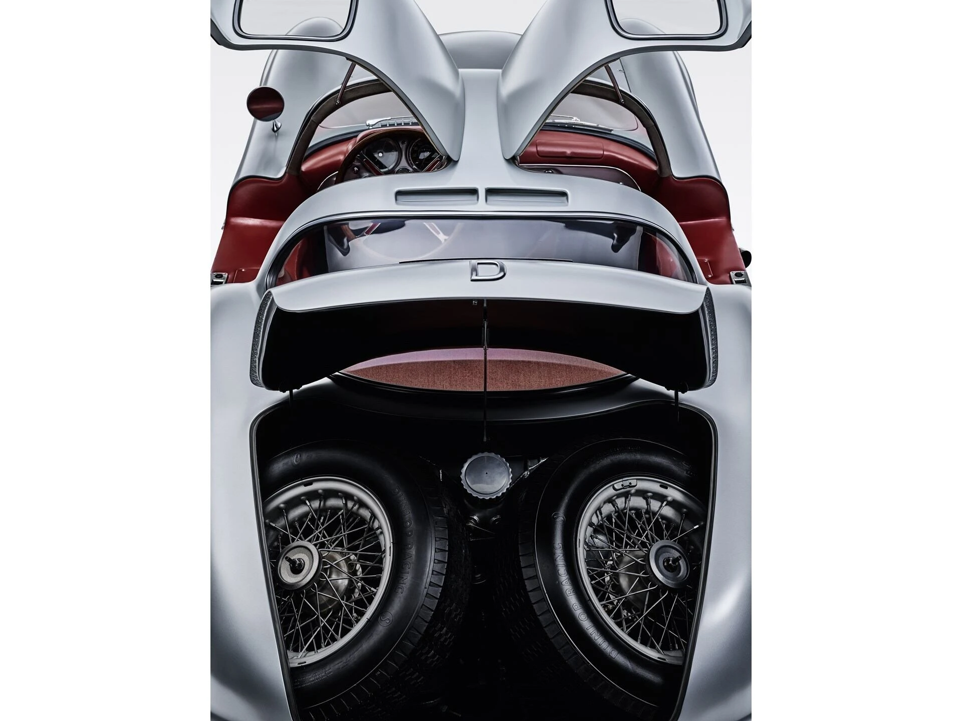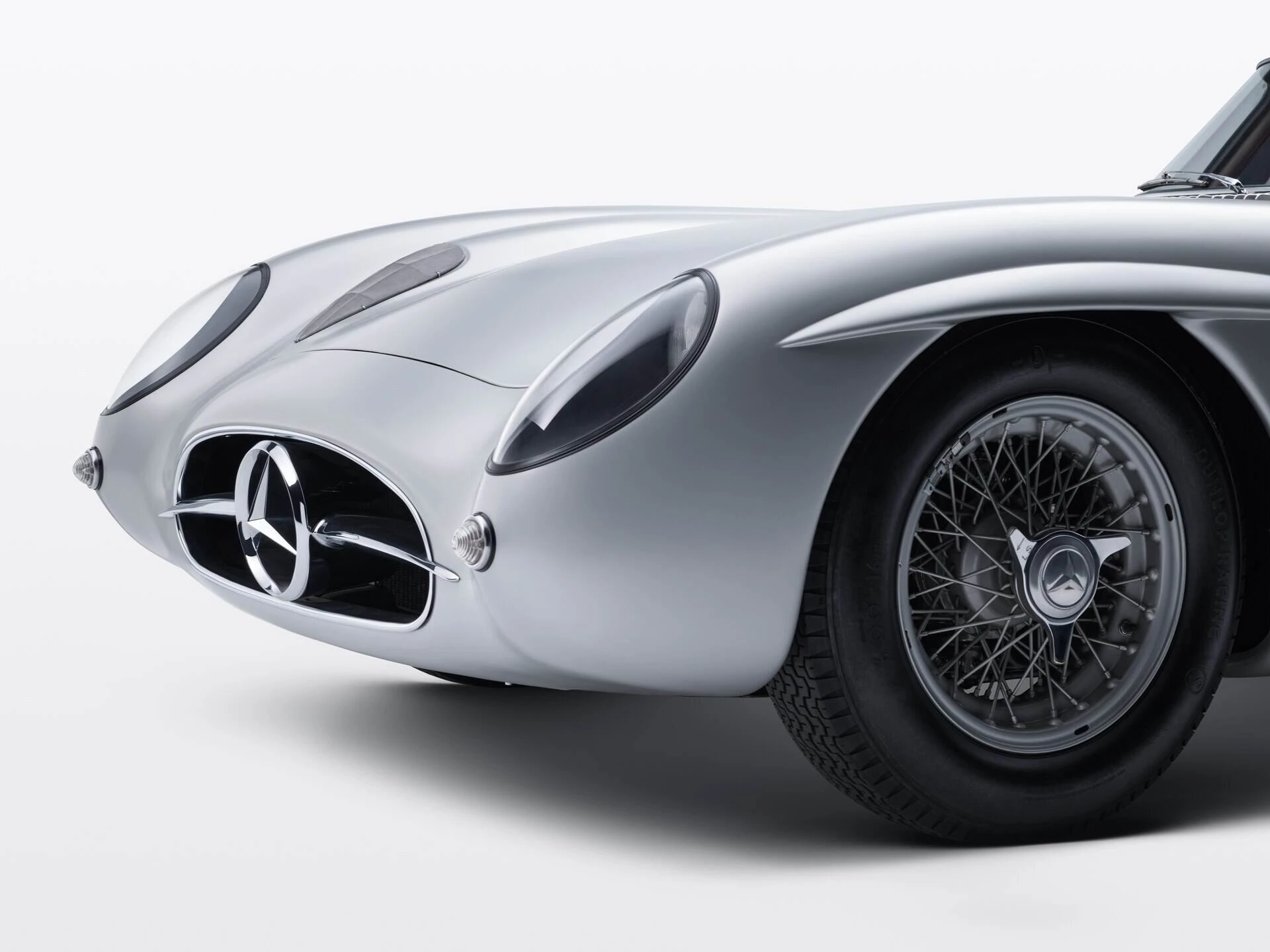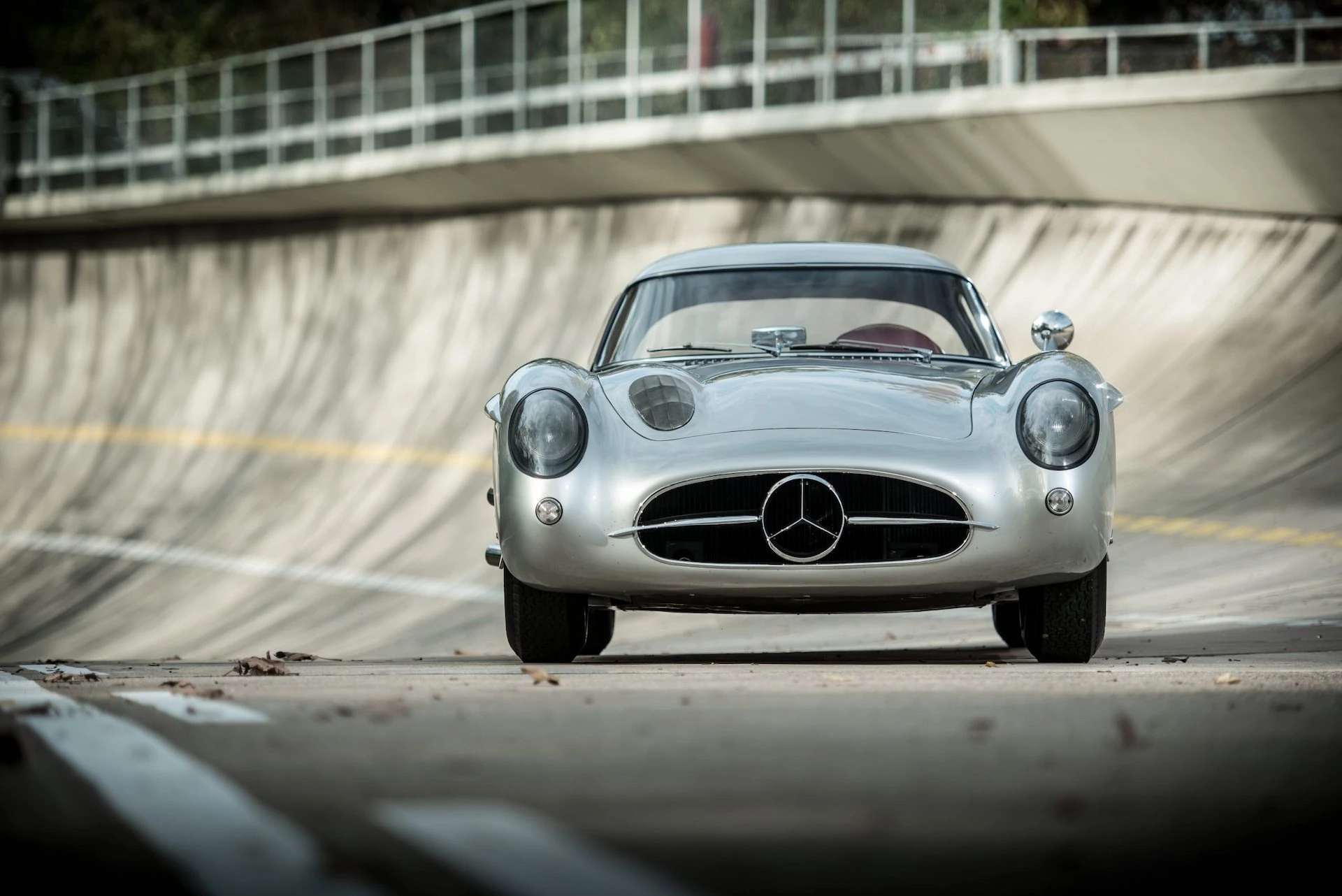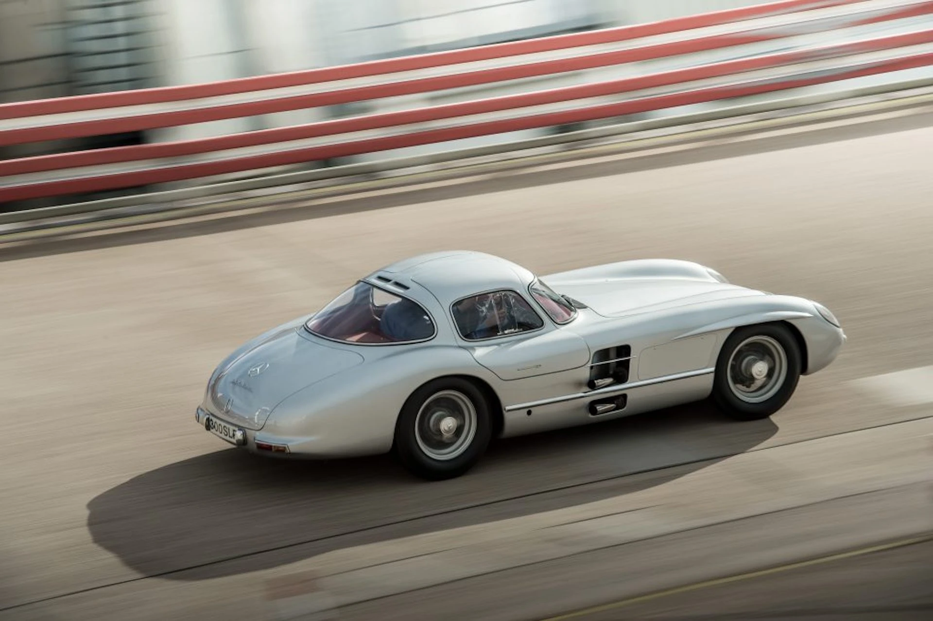 Ce coupé, habillé en tôles d’aluminium et doté du même moteur que ses sœurs, était la plus rapide des autos de route au monde à sa sortie, capable d’une vitesse de pointe de 290 km/h en 1955. Sur une structure tubulaire, l’étoile d’argent est apposée au nez devant son long compartiment moteur qui n’en finit pas de s’allonger devant son habitacle biplace, et avec ses portières qui s’ouvrent en papillon ; c’était le nec plus ultra des ateliers courses de Mercedes.