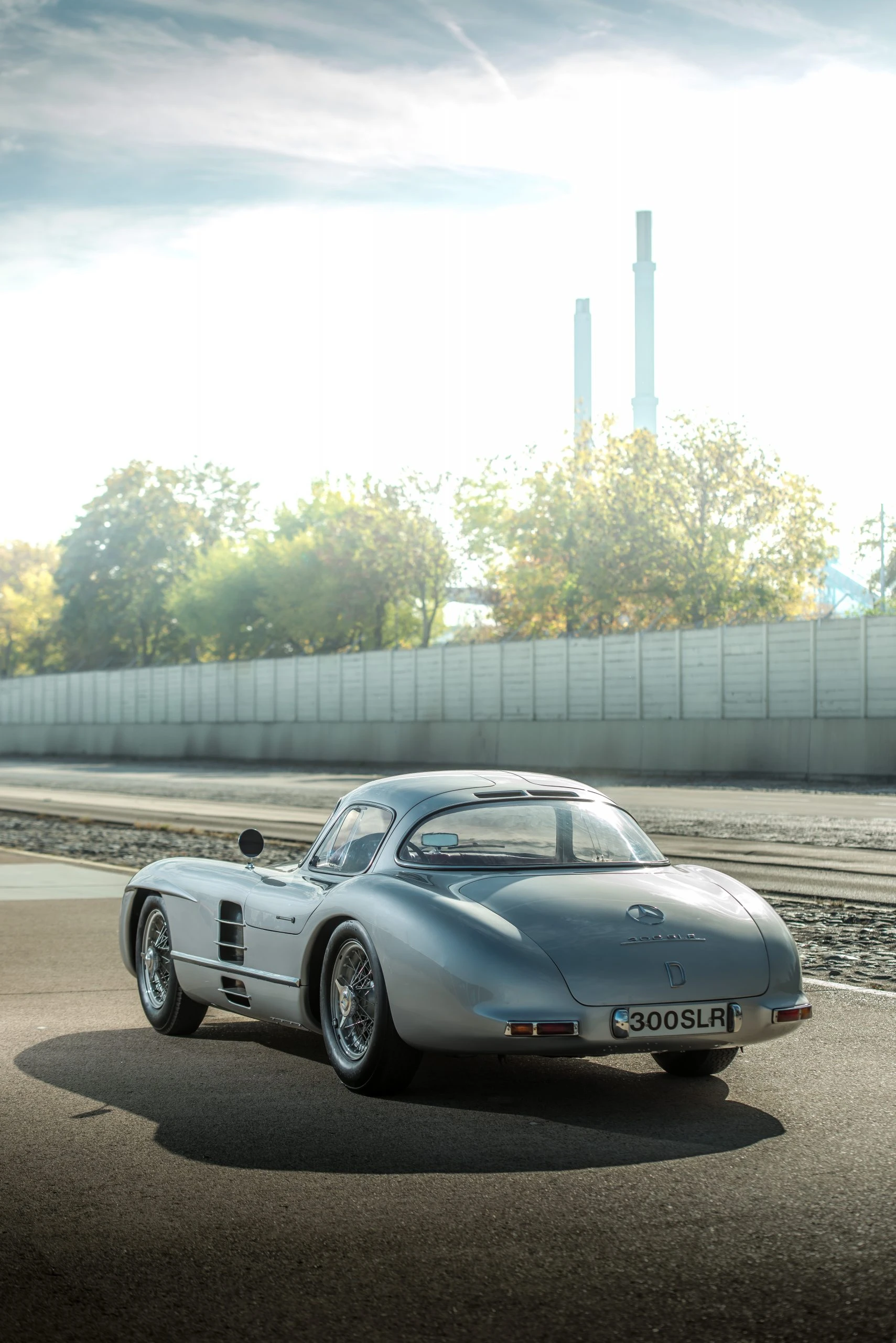 Mercedes a développé cette version ‘coupé’ du modèle de course 300 SLR en 1955. Deux exemplaires ont été réalisés. La version Grand Prix du même modèle a remporté le championnat Formule 1 en 1954 et 1955, pilotée par Juan Manuel Fangio ; la version barquette de sport est celle pilotée par Sir Stirling Moss à la victoire des Mille Miglia 1955, la course la plus fabuleuse de l’histoire.
