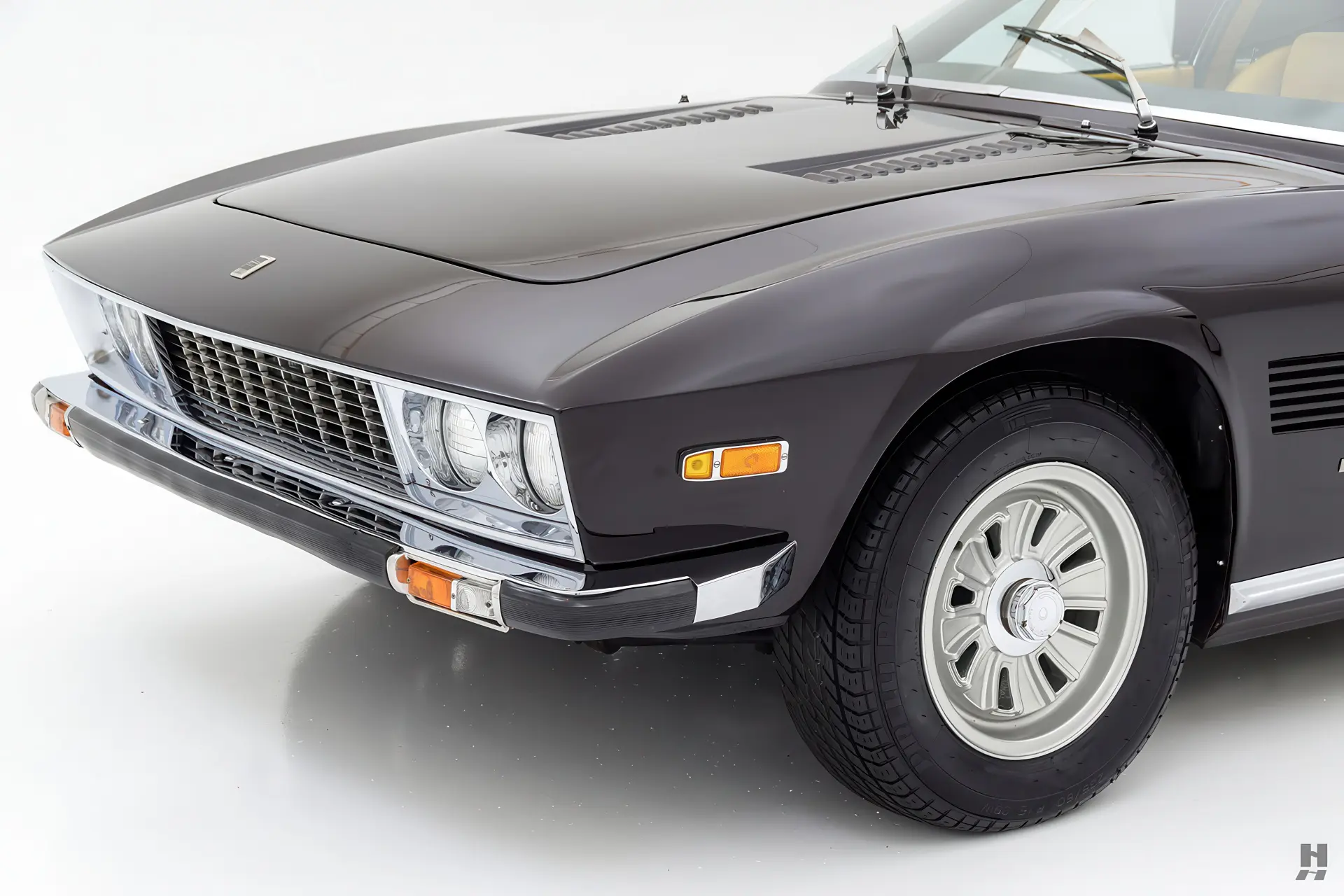 Cette berline Monteverdi 375/4 porte le numéro de châssis 3007 ; un exemple frappant de début de production de cette super-berline rare et très exclusive. Une voiture très originale, elle bénéficie d’un rafraîchissement cosmétique récent dans une belle peinture aubergine métallisée foncée sur un intérieur en cuir beige biscuit attrayant. Longue, basse et élégante, la 375/4 est une véritable vedette parmi les hybrides euro-américains du début des années 1970. La couleur métallique sombre et subtile convient très bien aux lignes nettes de la carrosserie. La peinture est appliquée sur des panneaux de carrosserie droits et nets. Les finitions brillantes sont sobres, la calandre, les pare-chocs et les encadrements de vitres étant tous en bon état, et la voiture roule sur un ensemble de roues en alliage moulé d’origine à verrouillage central, fabriquées spécifiquement pour ces voitures. Monteverdi a construit ses voitures selon un très haut niveau de qualité, et compte tenu de leur exclusivité, elles ont une présence presque mythique aujourd’hui.