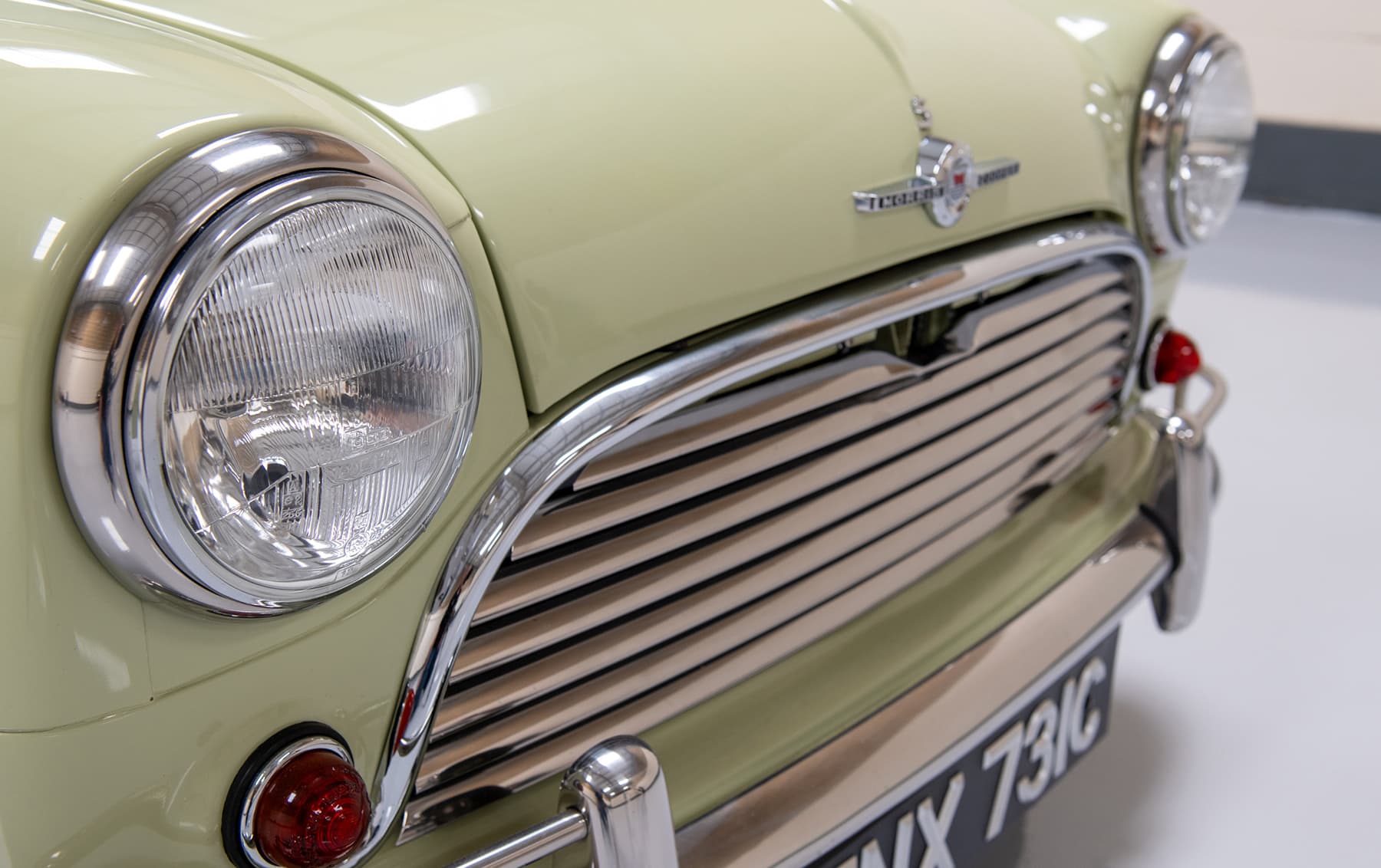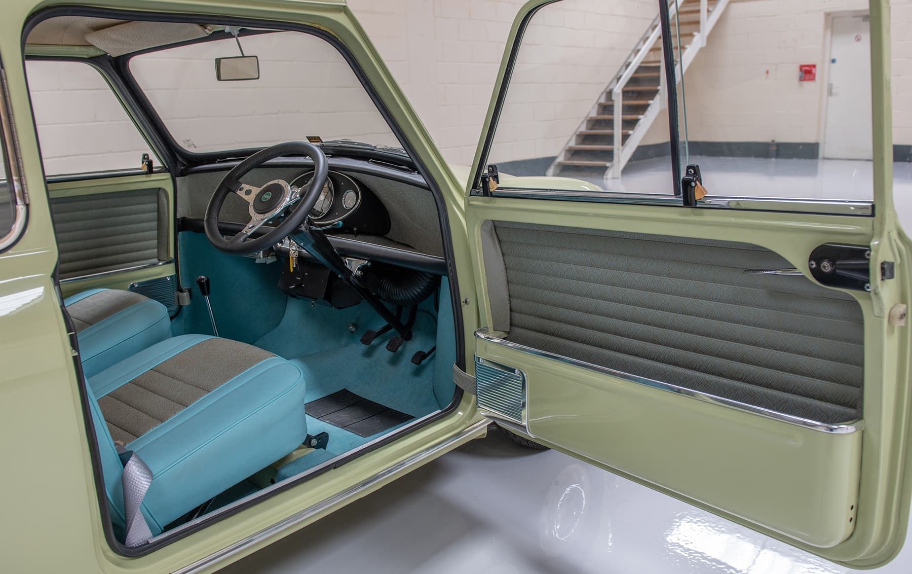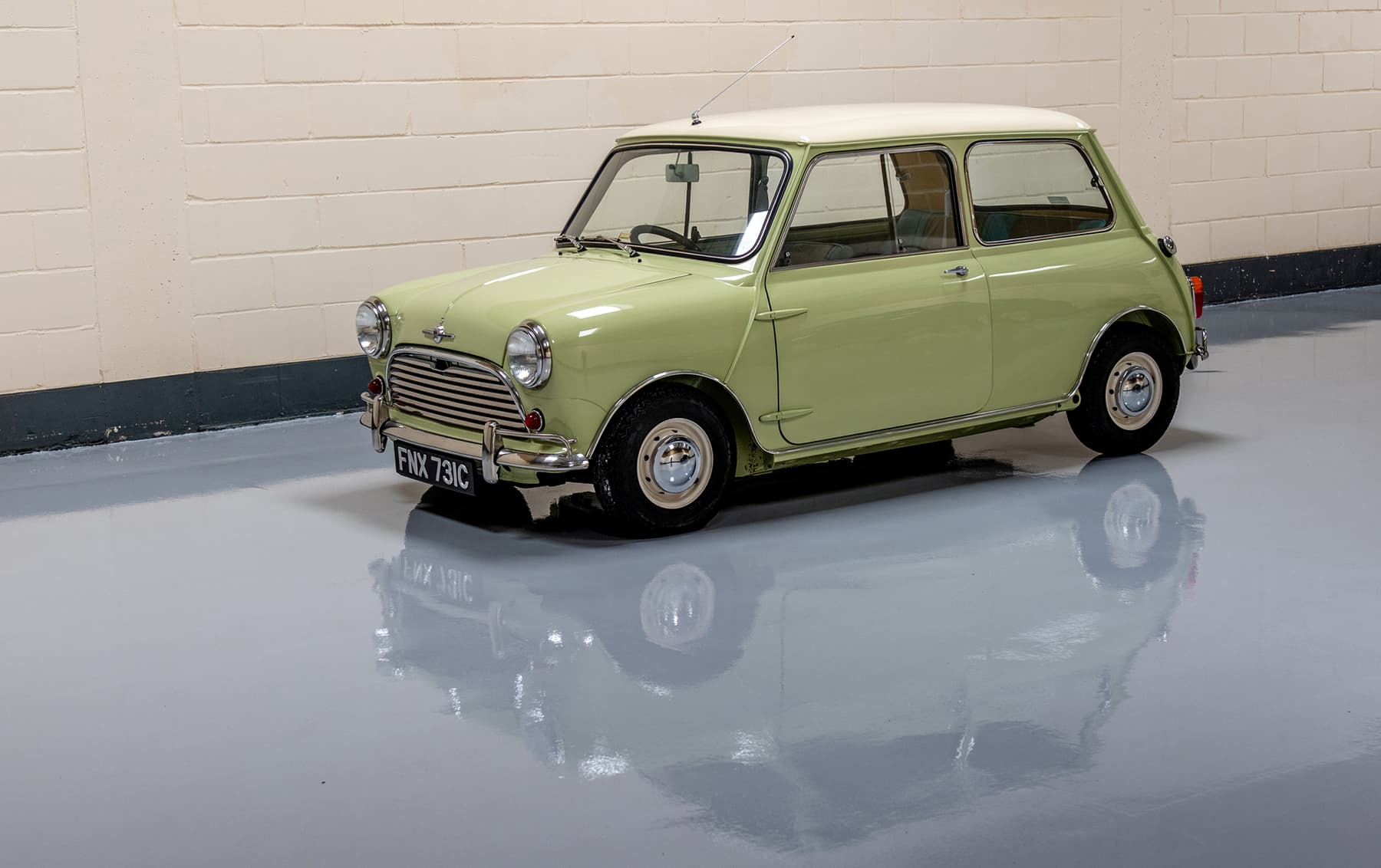 Finie depuis l’origine dans la combinaison de couleurs incroyablement rare de Fiesta Yellow avec un toit Old English White et un intérieur Powder Blue, elle est accompagnée de son carnet de bord buff, de son certificat BMIHT et de son volant d’origine. Proposé à l’occasion du 60ème anniversaire du modèle, il s’agit d’un exemple exceptionnel de la célèbre Mini Cooper S.