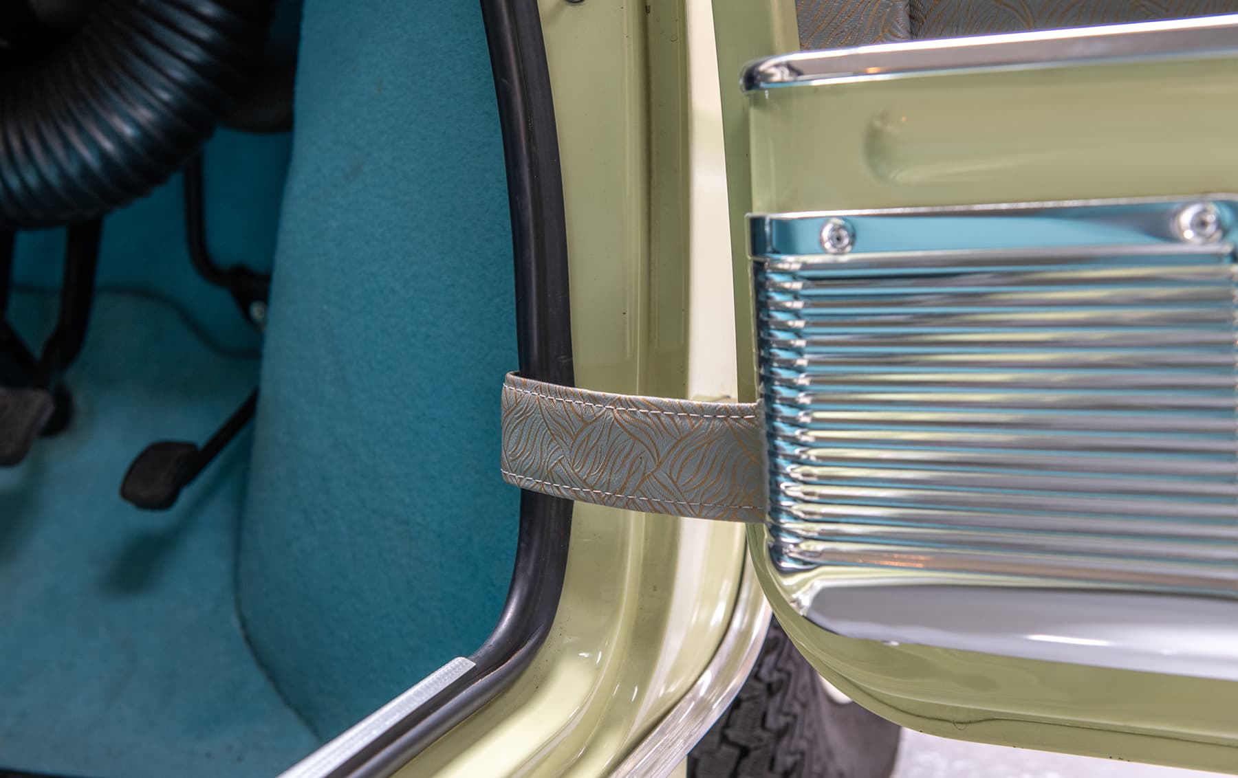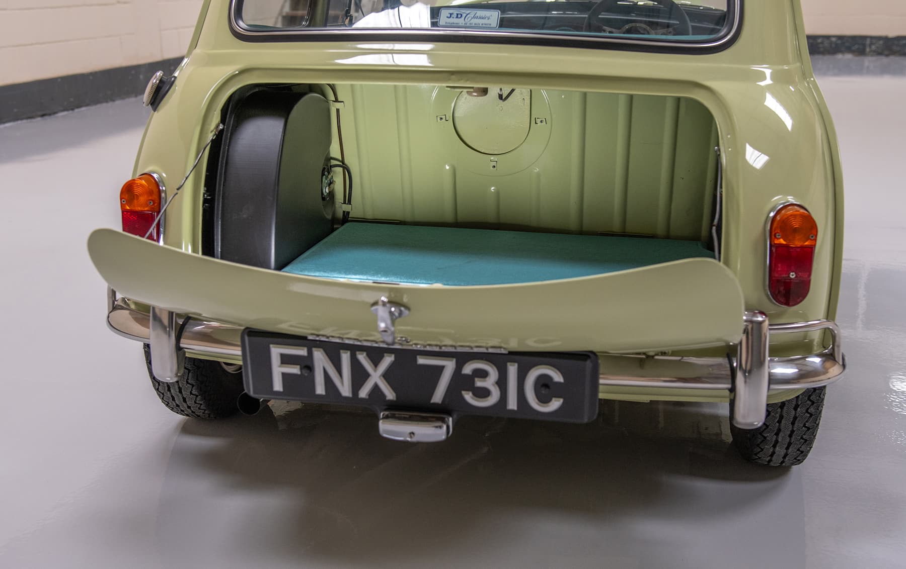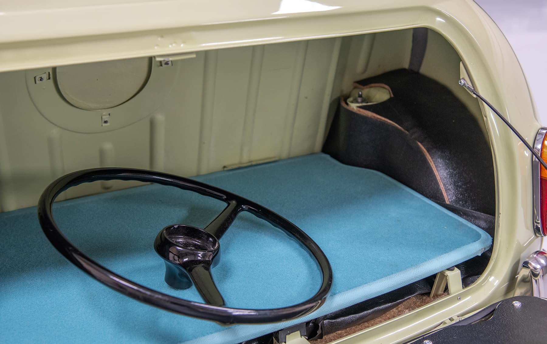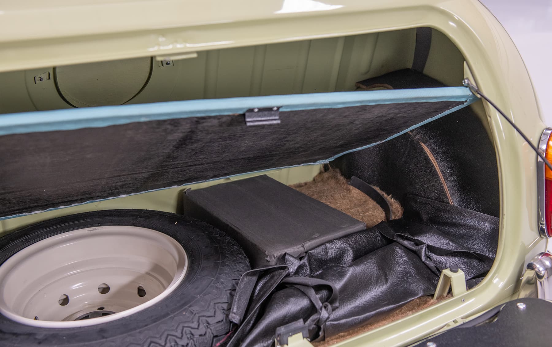 Finie depuis l’origine dans la combinaison de couleurs incroyablement rare de Fiesta Yellow avec un toit Old English White et un intérieur Powder Blue, elle est accompagnée de son carnet de bord buff, de son certificat BMIHT et de son volant d’origine. Proposé à l’occasion du 60ème anniversaire du modèle, il s’agit d’un exemple exceptionnel de la célèbre Mini Cooper S.