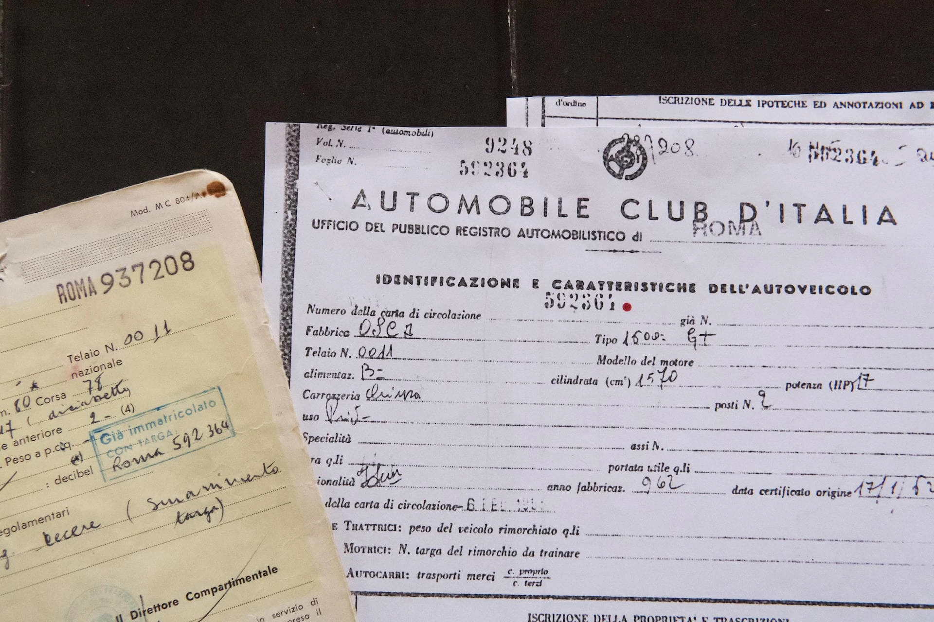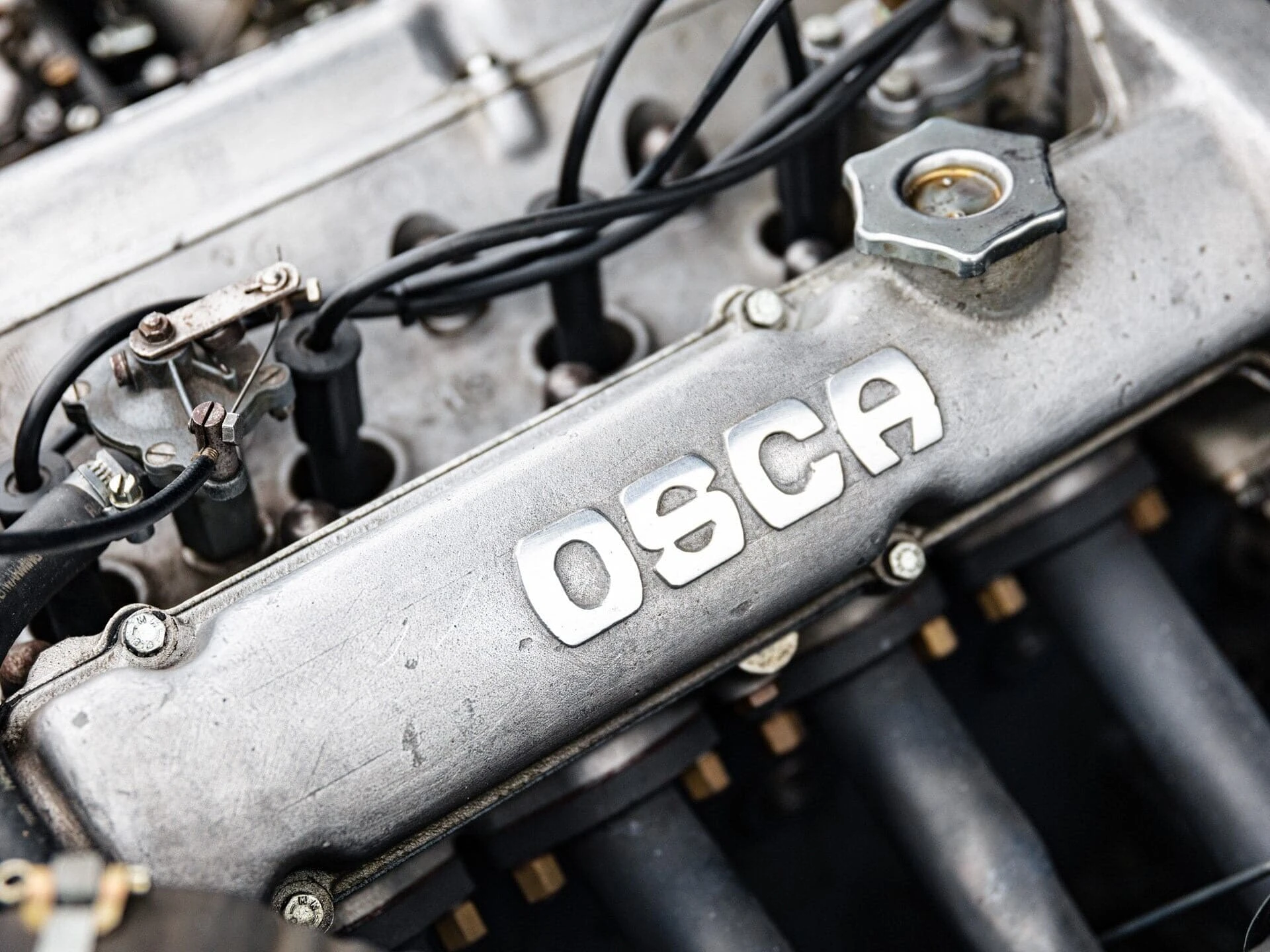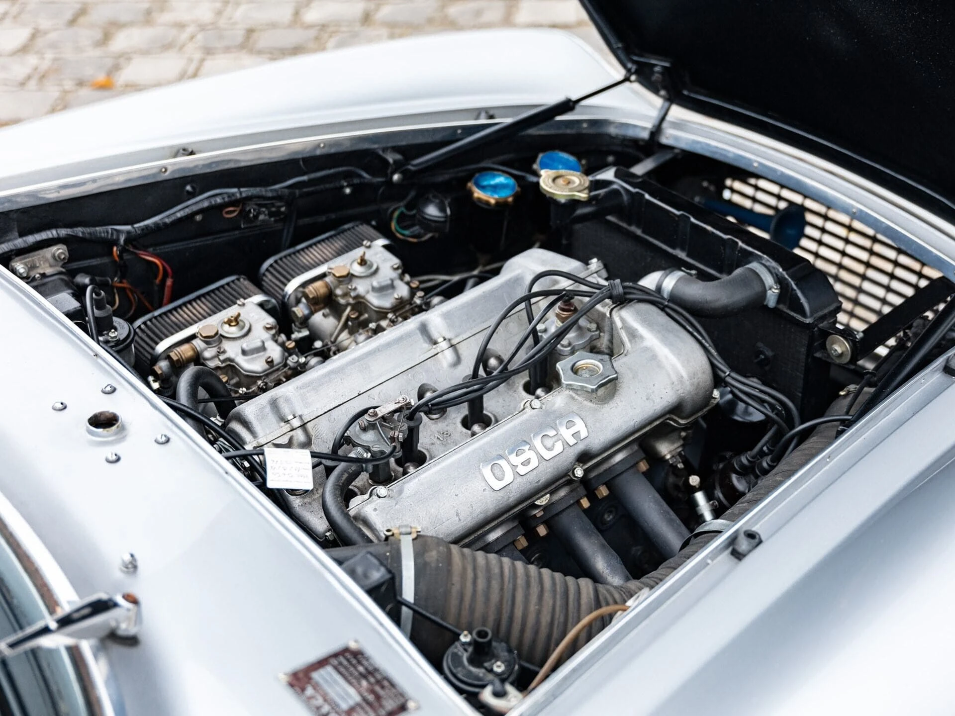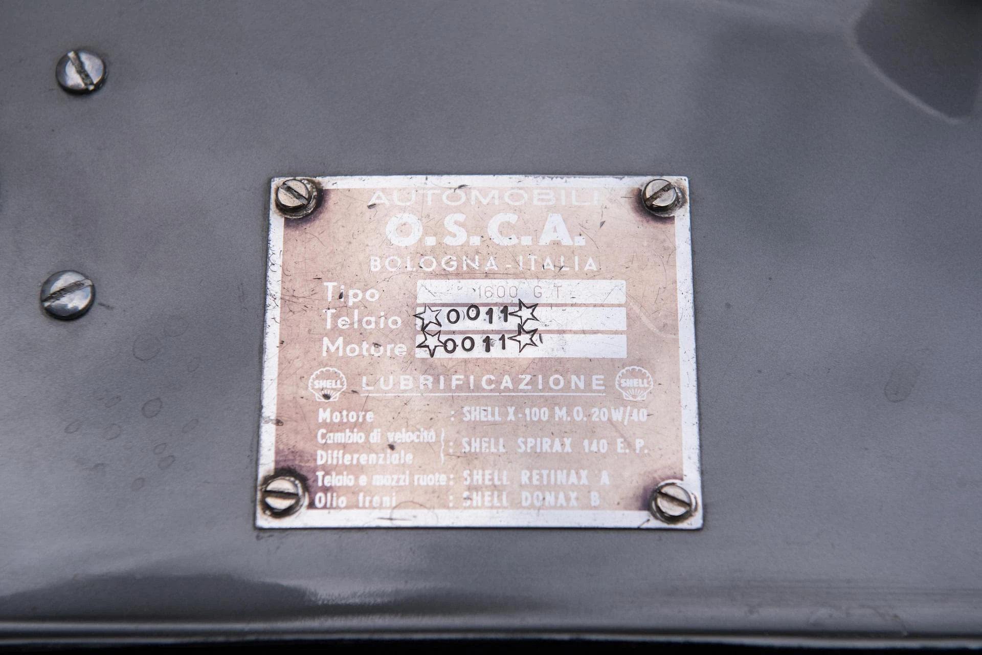 La voiture présentée ici, châssis 0097, est une rare version Zagato, immatriculée dans son tout premier livret sous la marque « Oscar »… au lieu d’Osca, le constructeur de voitures de course n’étant pas connu de l’administration.