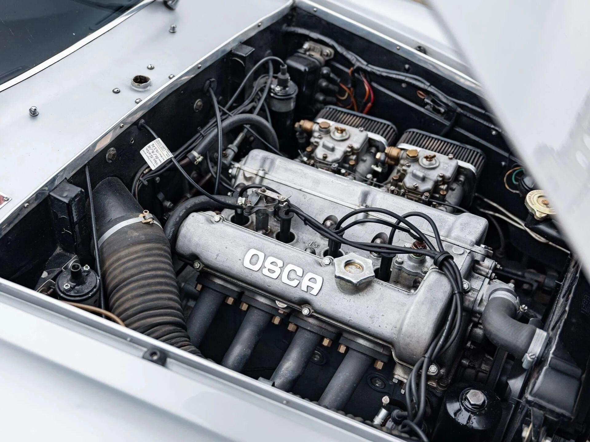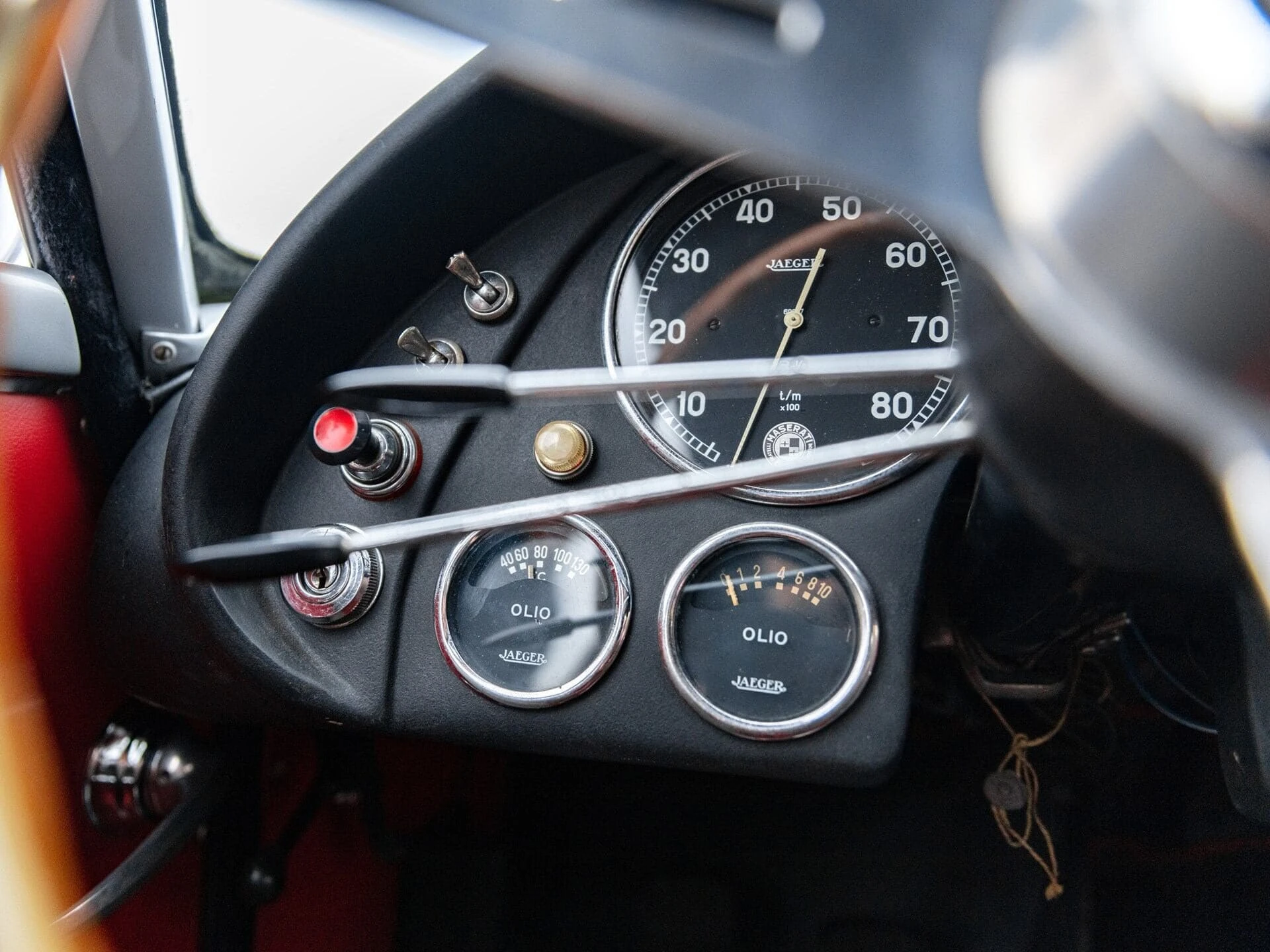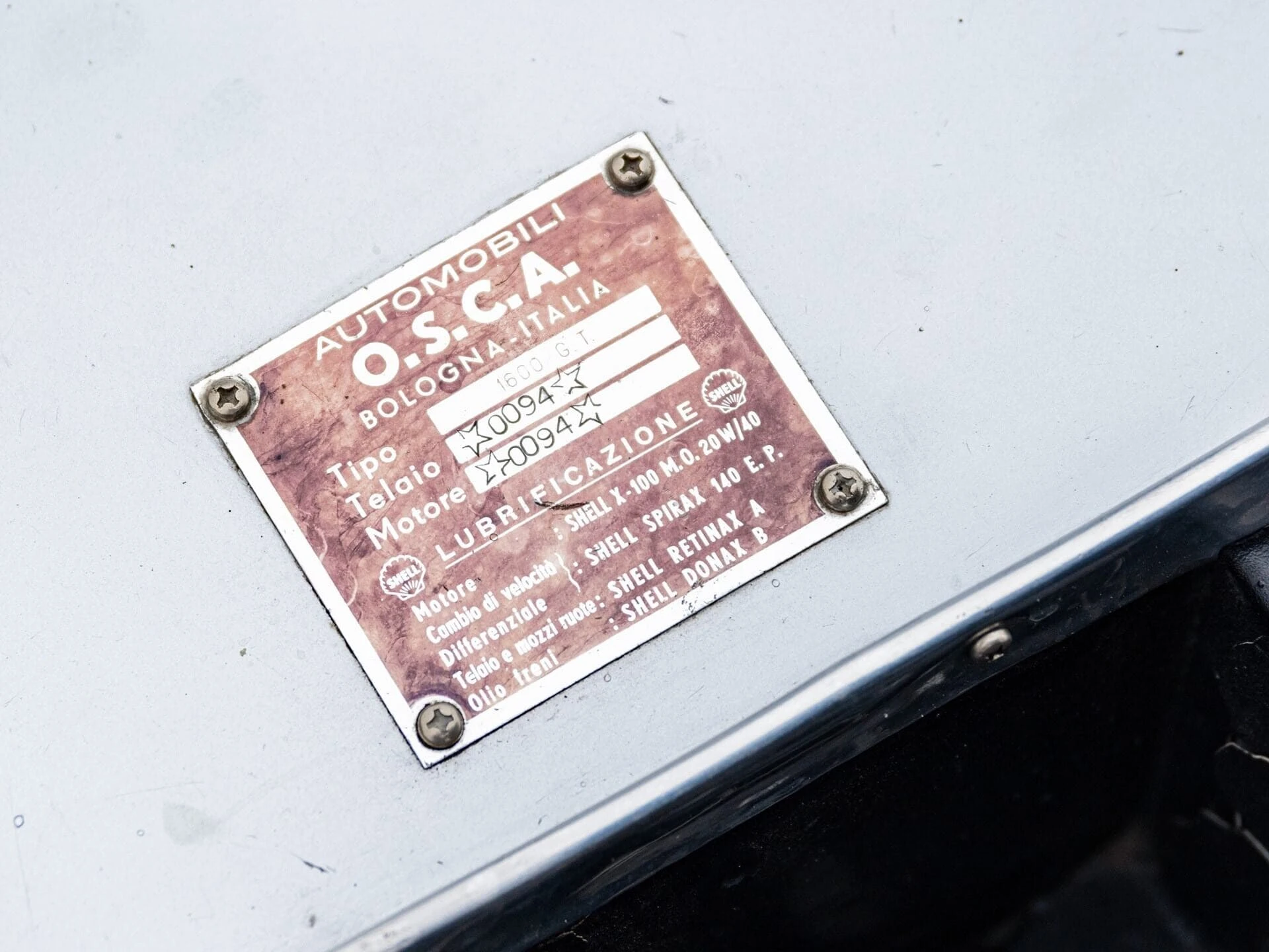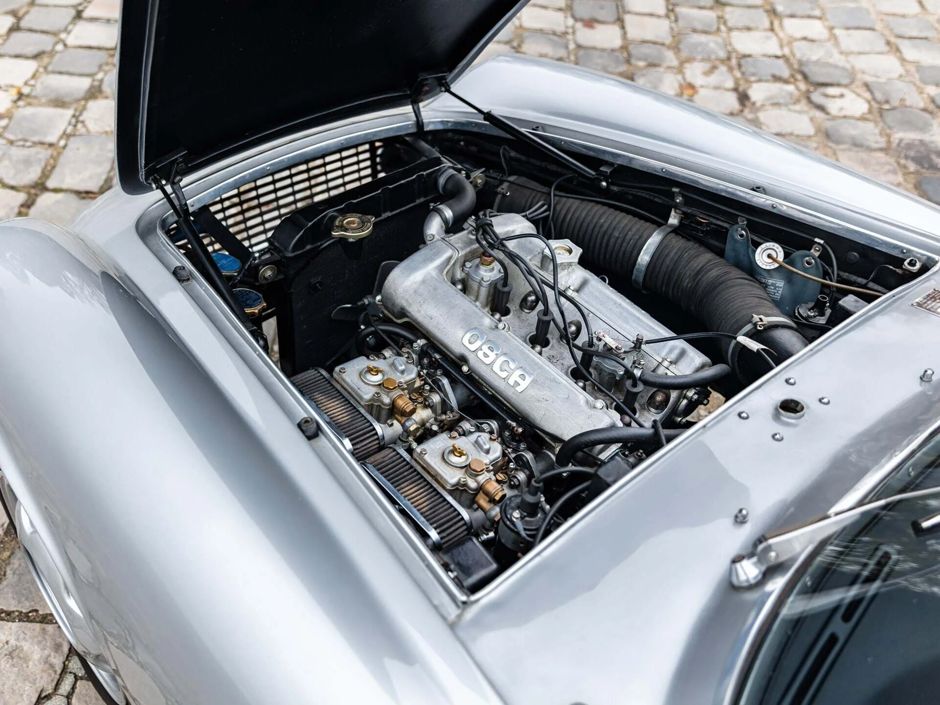 La voiture présentée ici, châssis 0097, est une rare version Zagato, immatriculée dans son tout premier livret sous la marque « Oscar »… au lieu d’Osca, le constructeur de voitures de course n’étant pas connu de l’administration.