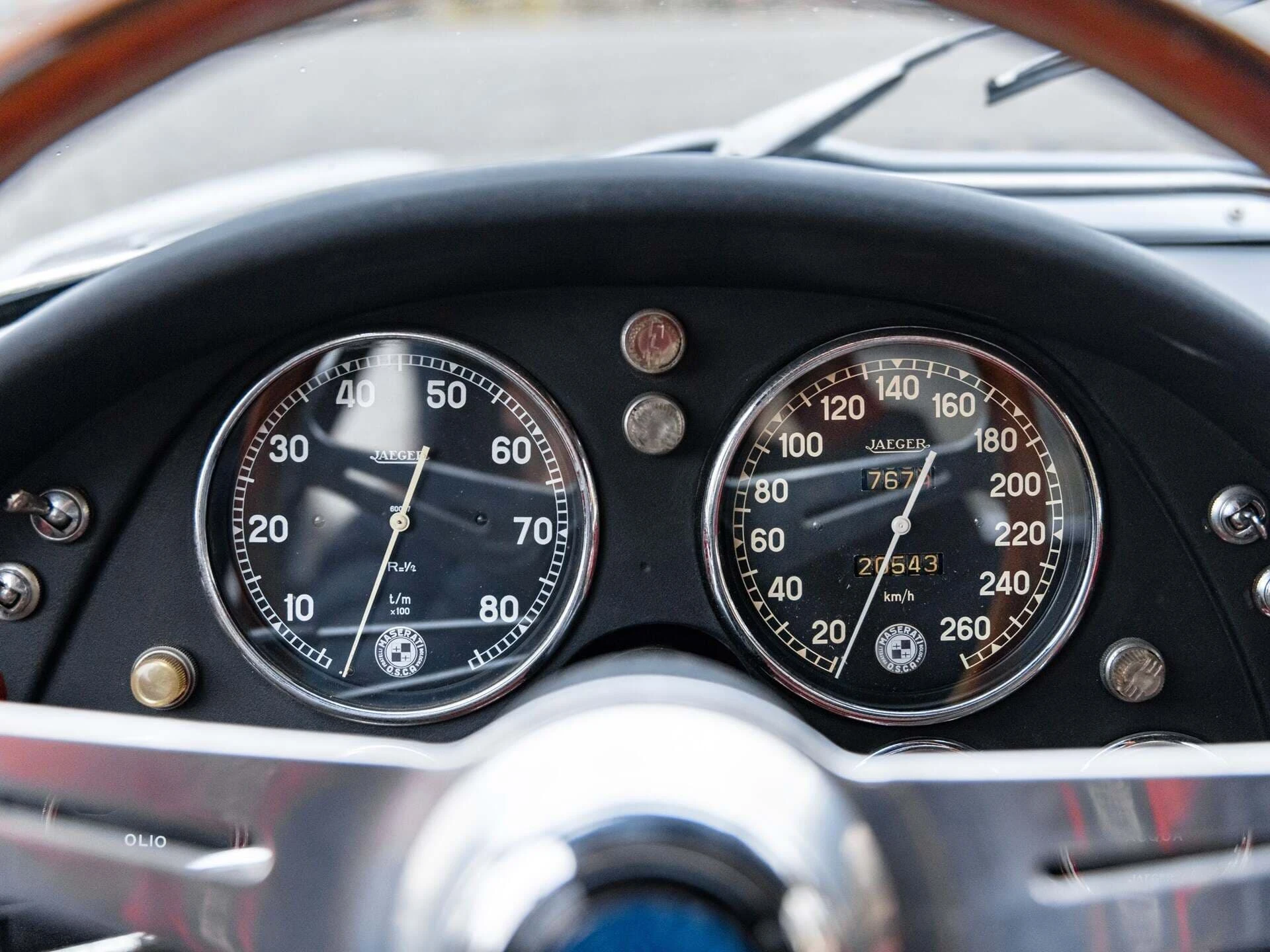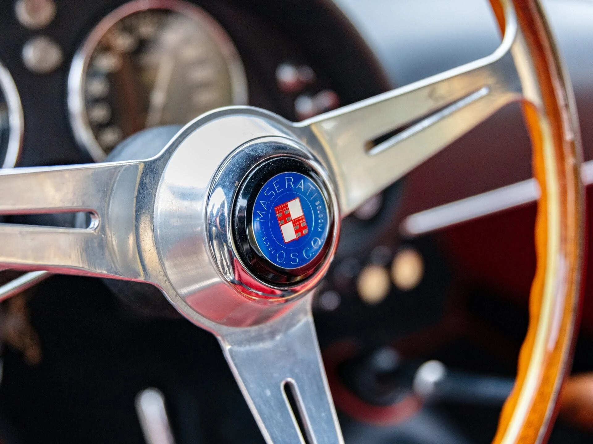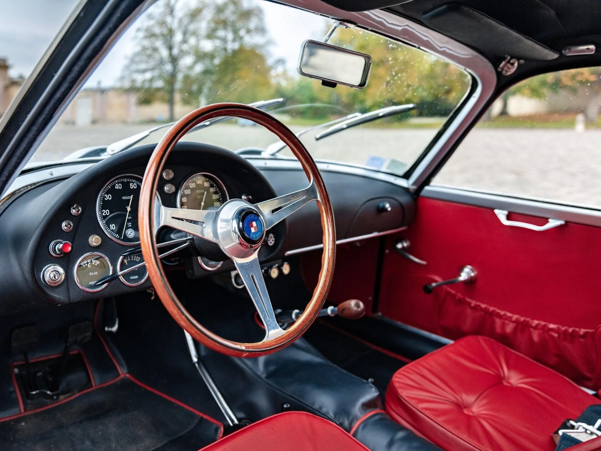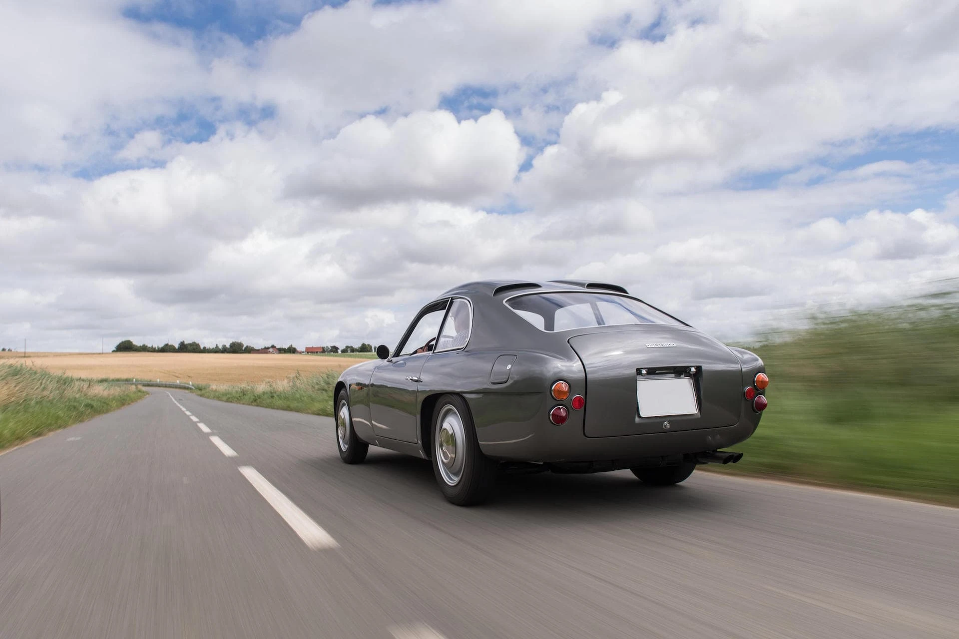 La voiture présentée ici, châssis 0097, est une rare version Zagato, immatriculée dans son tout premier livret sous la marque « Oscar »… au lieu d’Osca, le constructeur de voitures de course n’étant pas connu de l’administration.