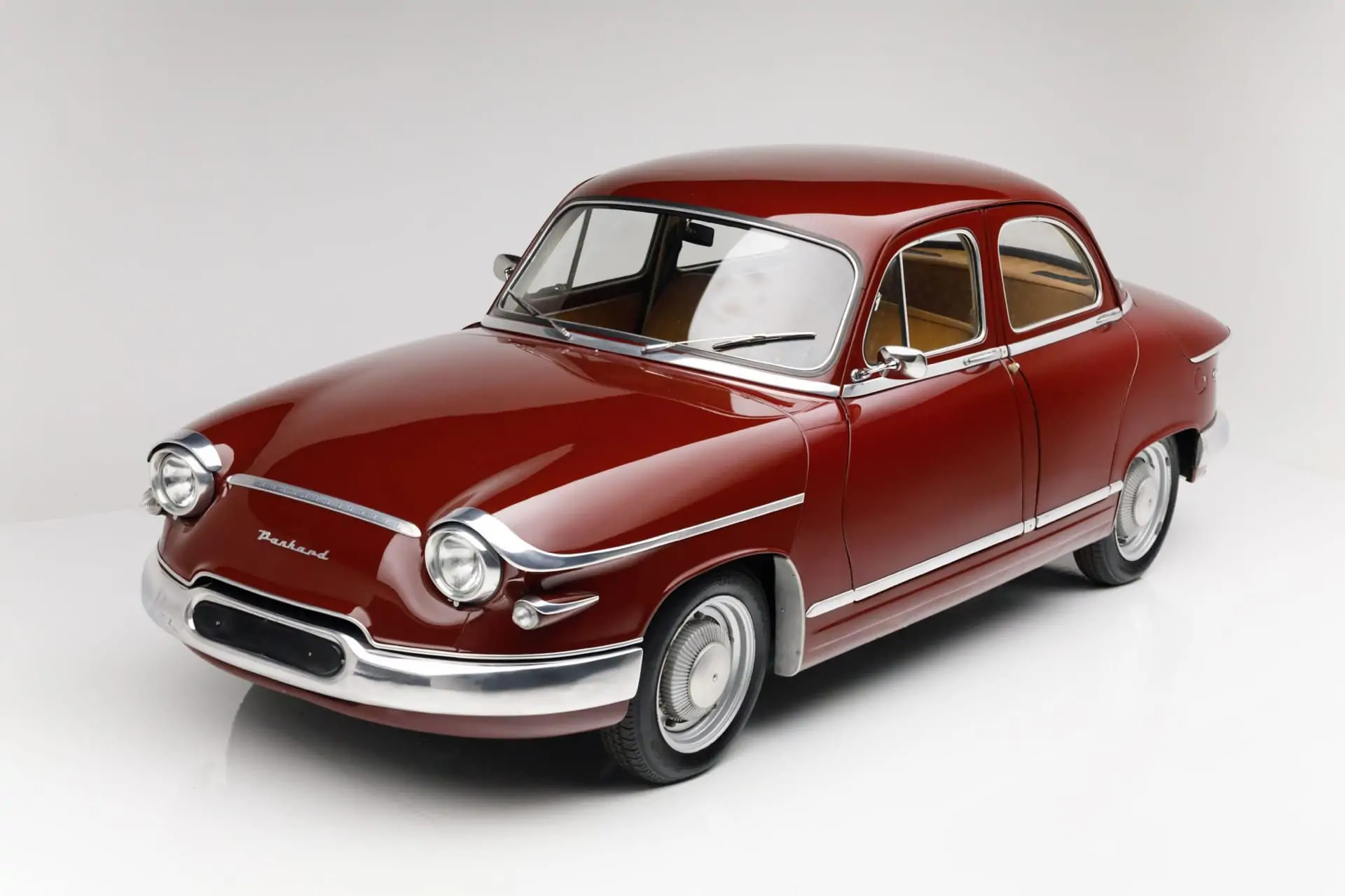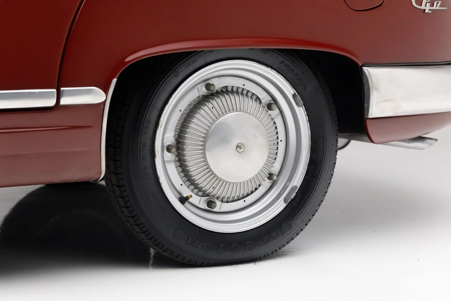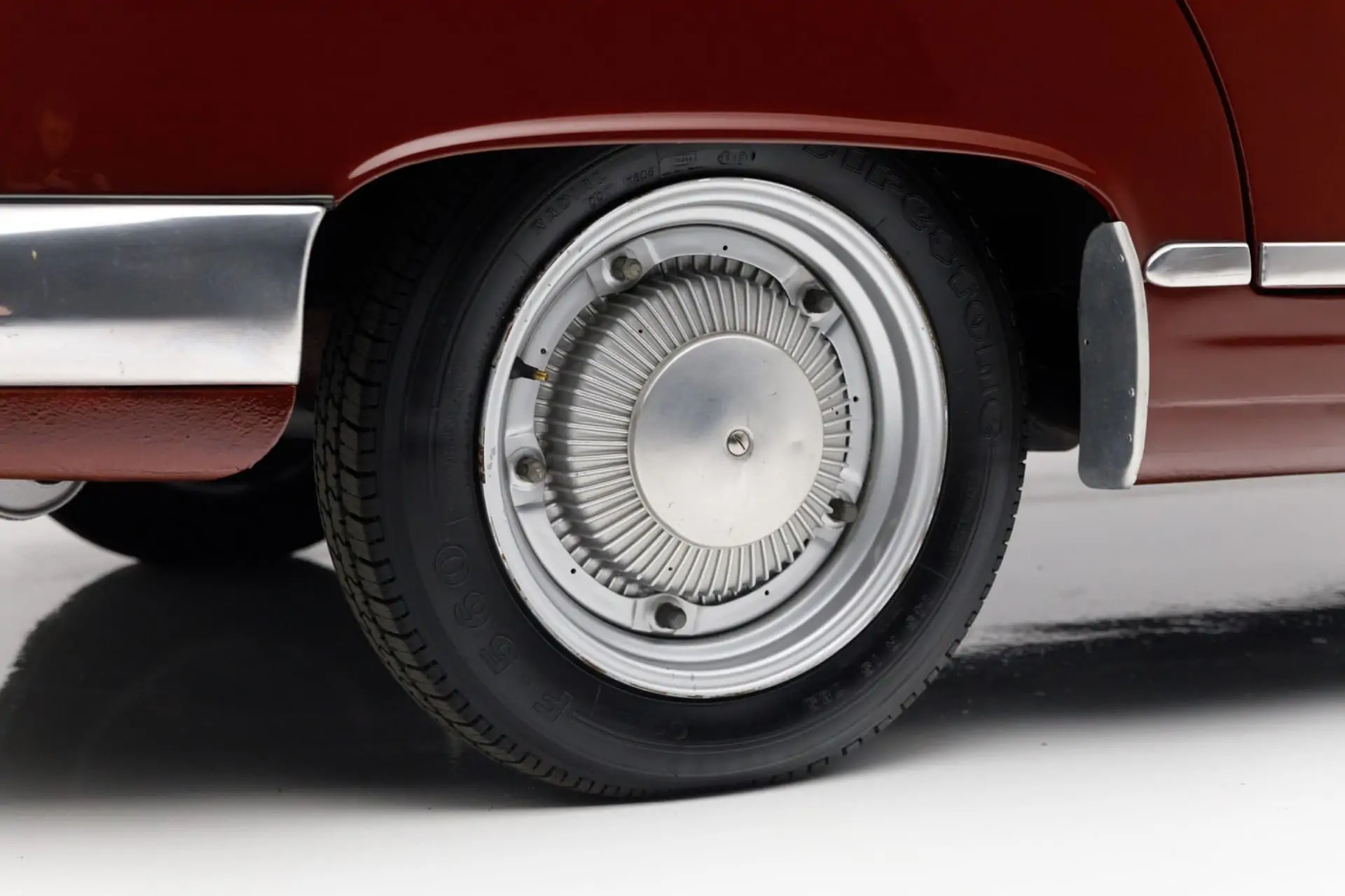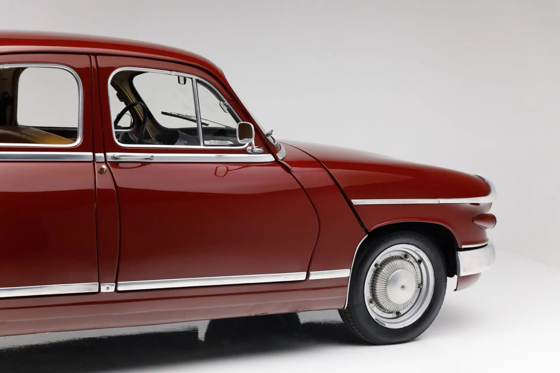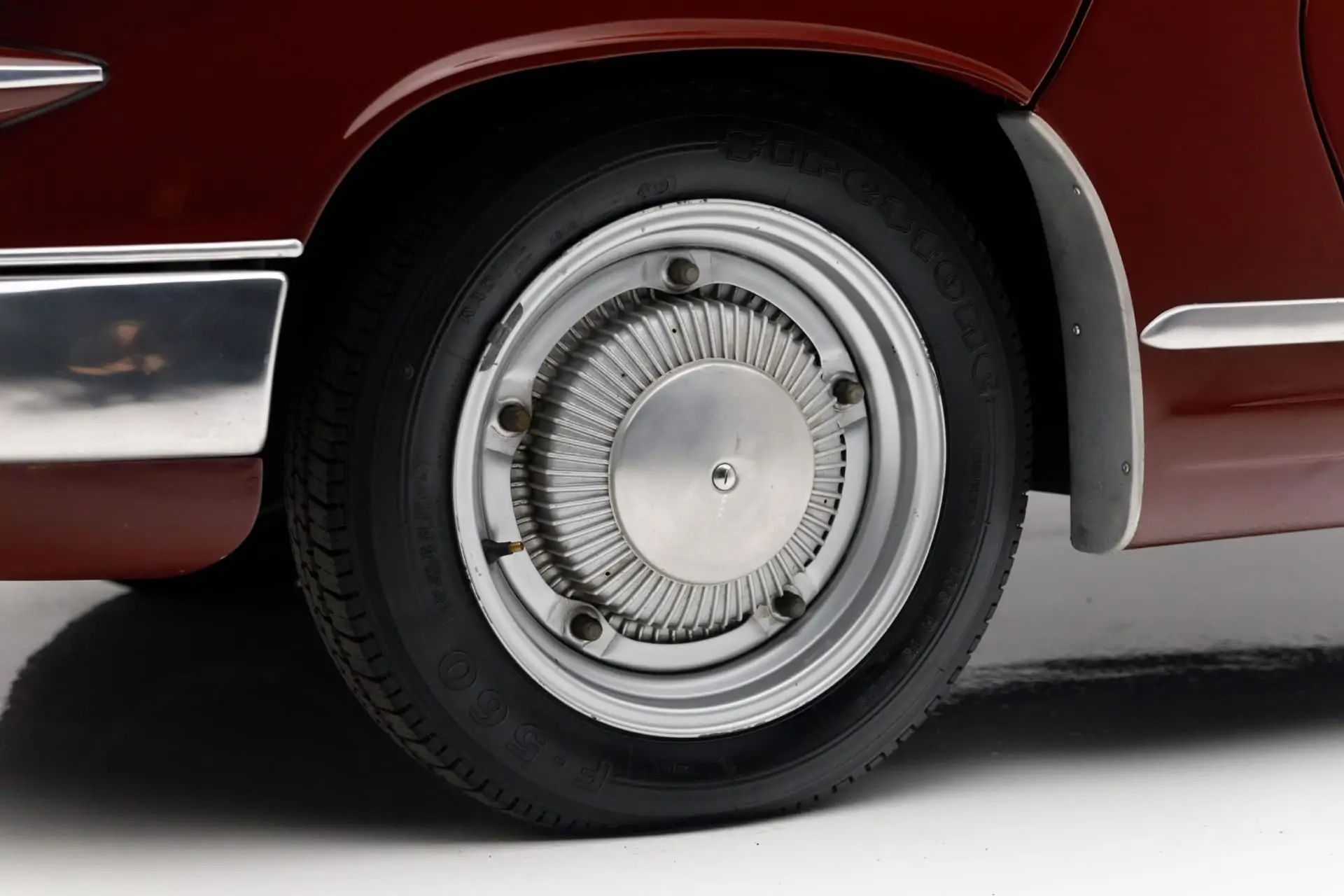 Partageant une grande partie de son design avec la Dyna Z, la PL17 a fait ses débuts en 1959 et présente un capot et un couvercle de coffre à clapet, ainsi que des pare-chocs et des éléments extérieurs brillants en aluminium. Cet exemplaire est peint en bordeaux et possède des portes avant à charnière, introduites pour l’année-modèle 1961.
