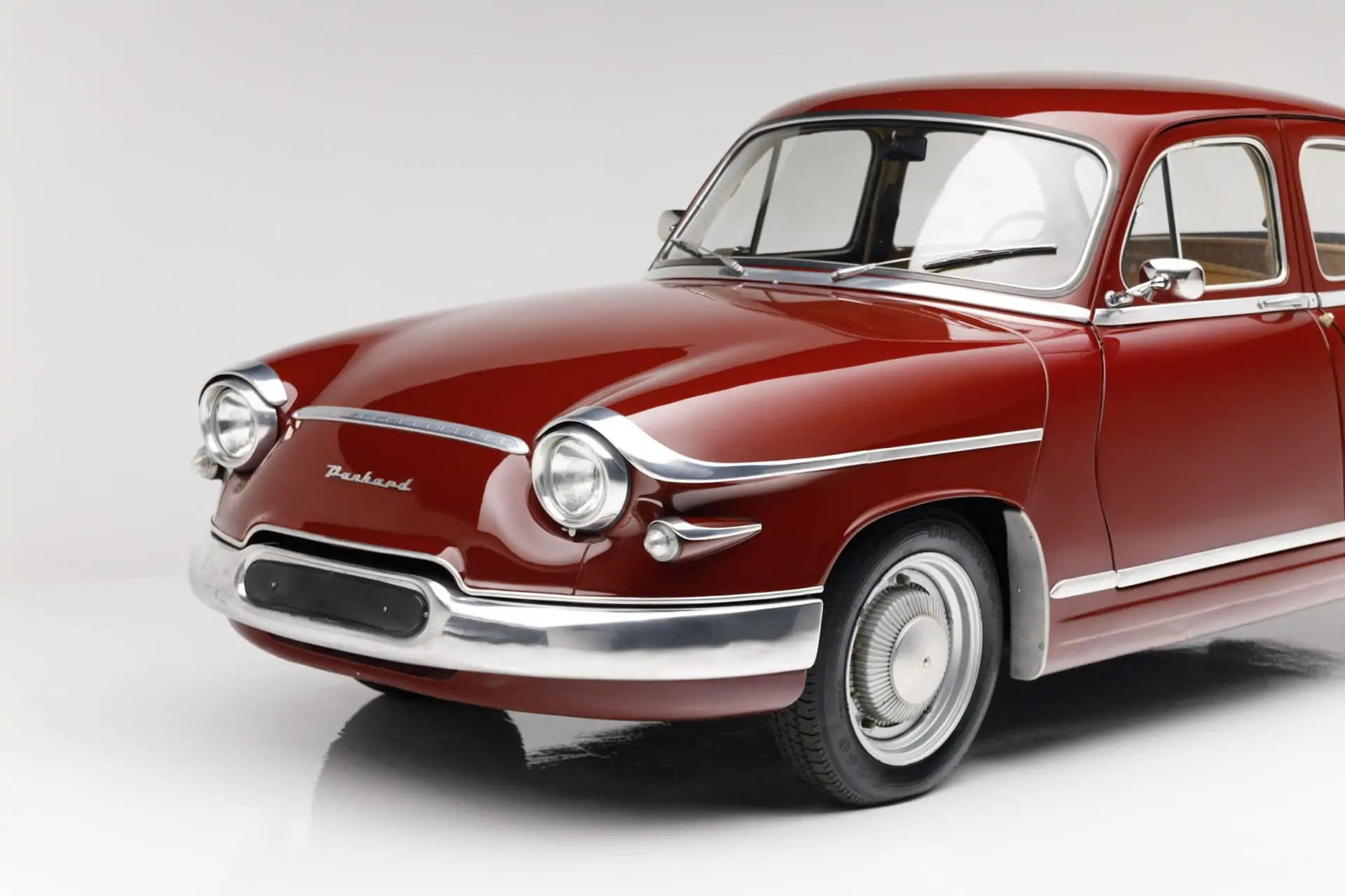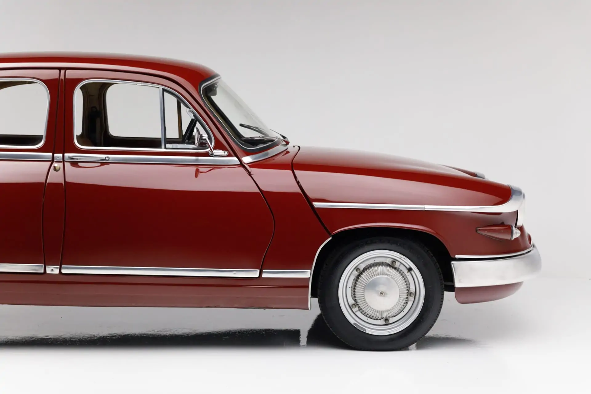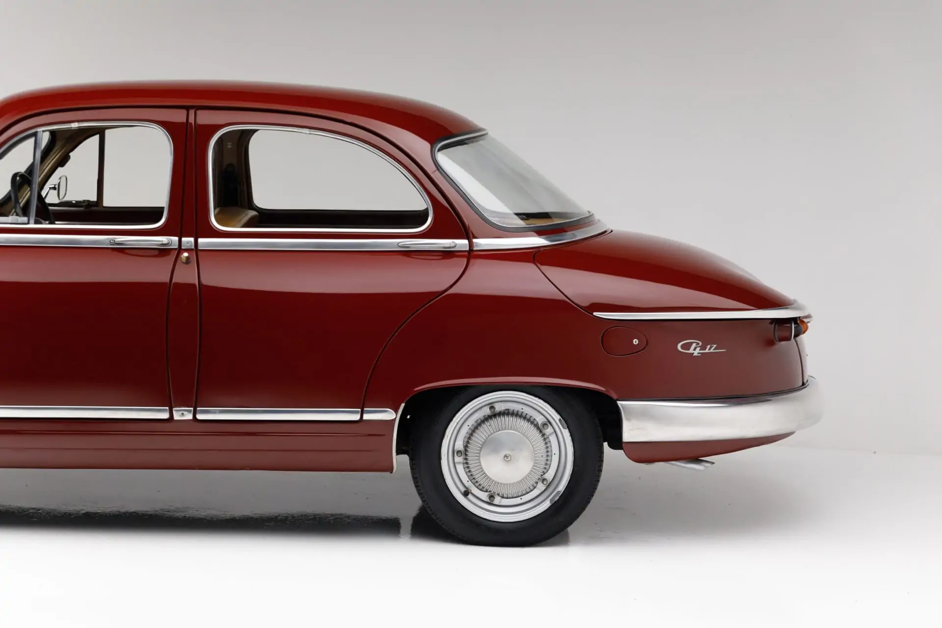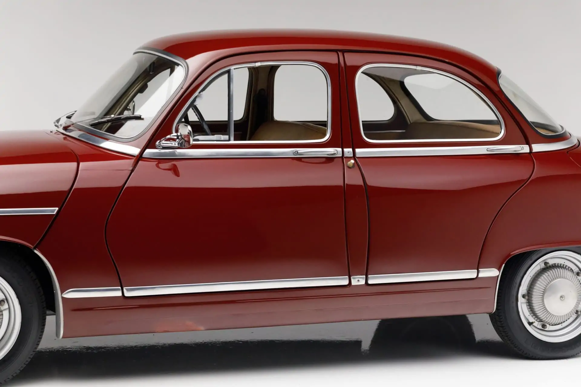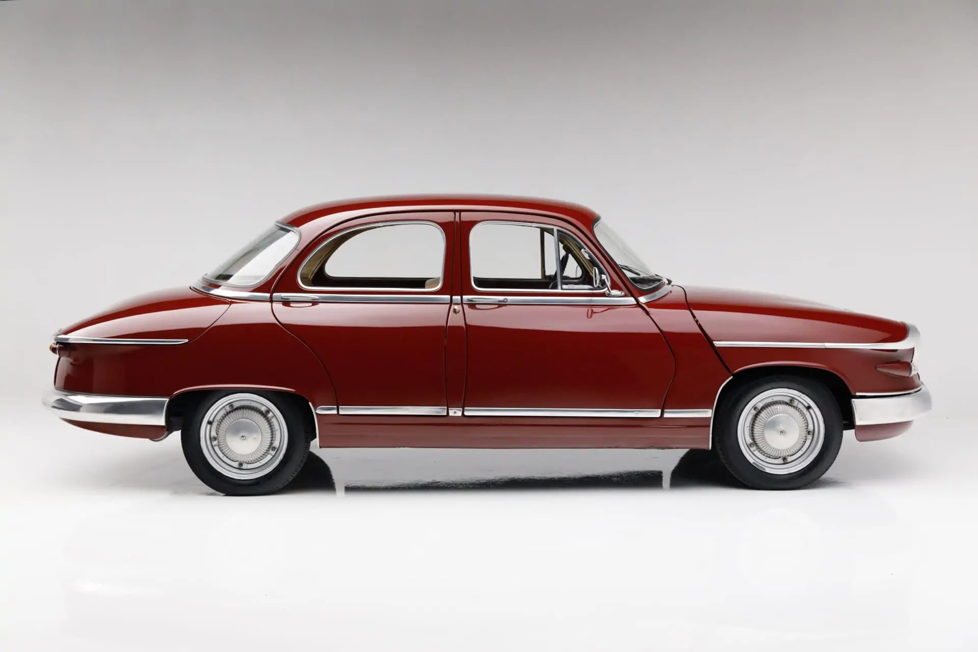 Partageant une grande partie de son design avec la Dyna Z, la PL17 a fait ses débuts en 1959 et présente un capot et un couvercle de coffre à clapet, ainsi que des pare-chocs et des éléments extérieurs brillants en aluminium. Cet exemplaire est peint en bordeaux et possède des portes avant à charnière, introduites pour l’année-modèle 1961.