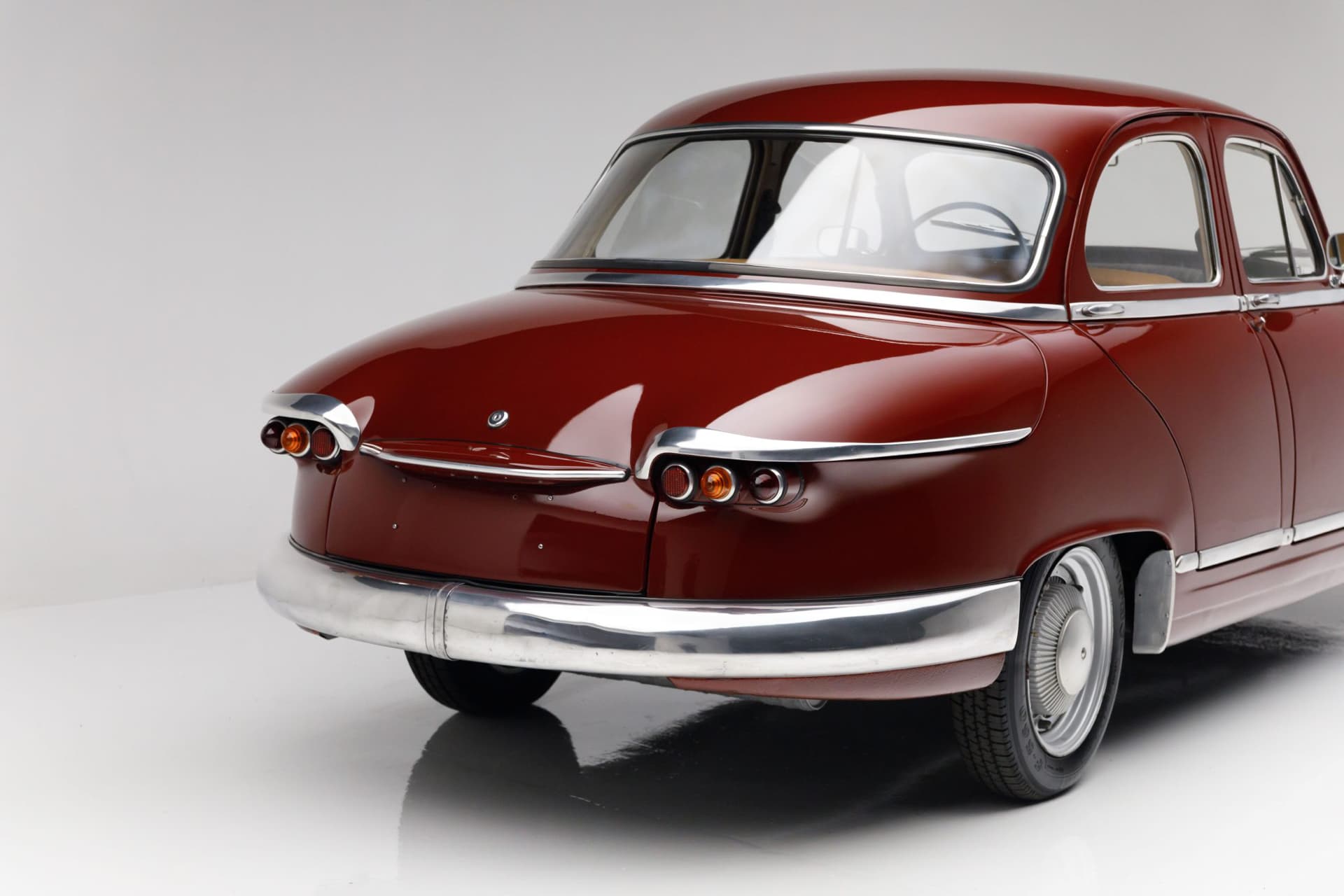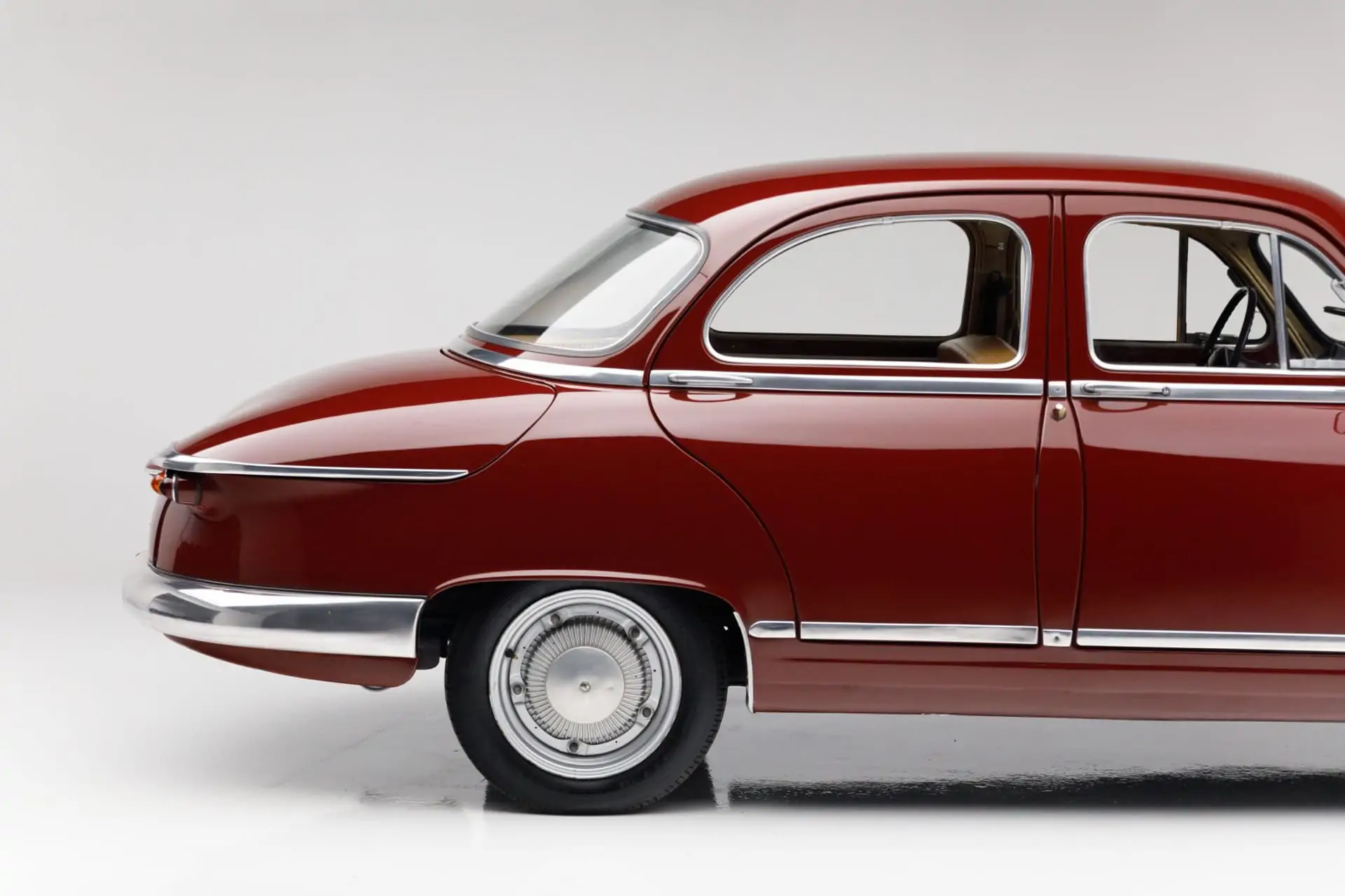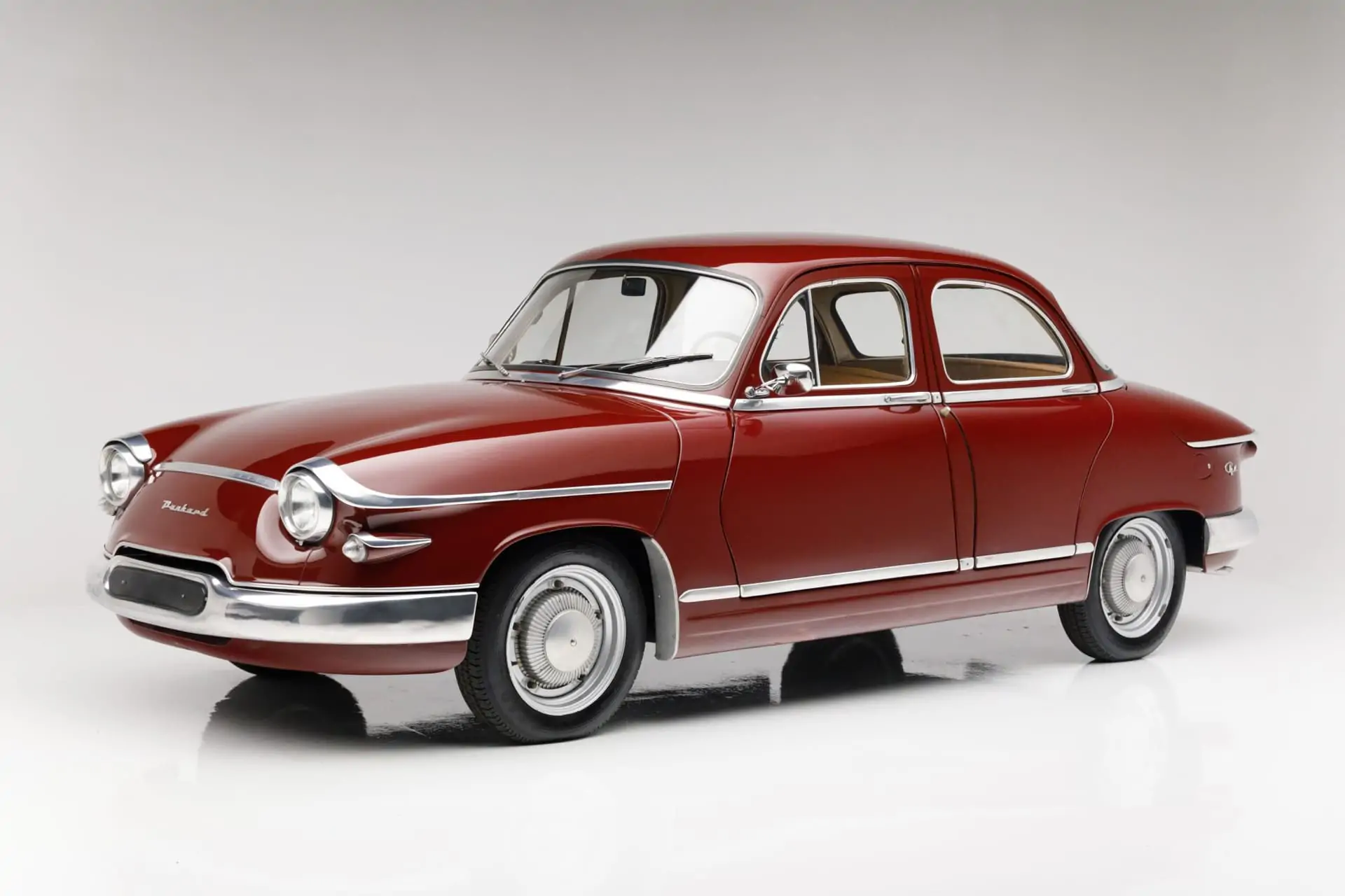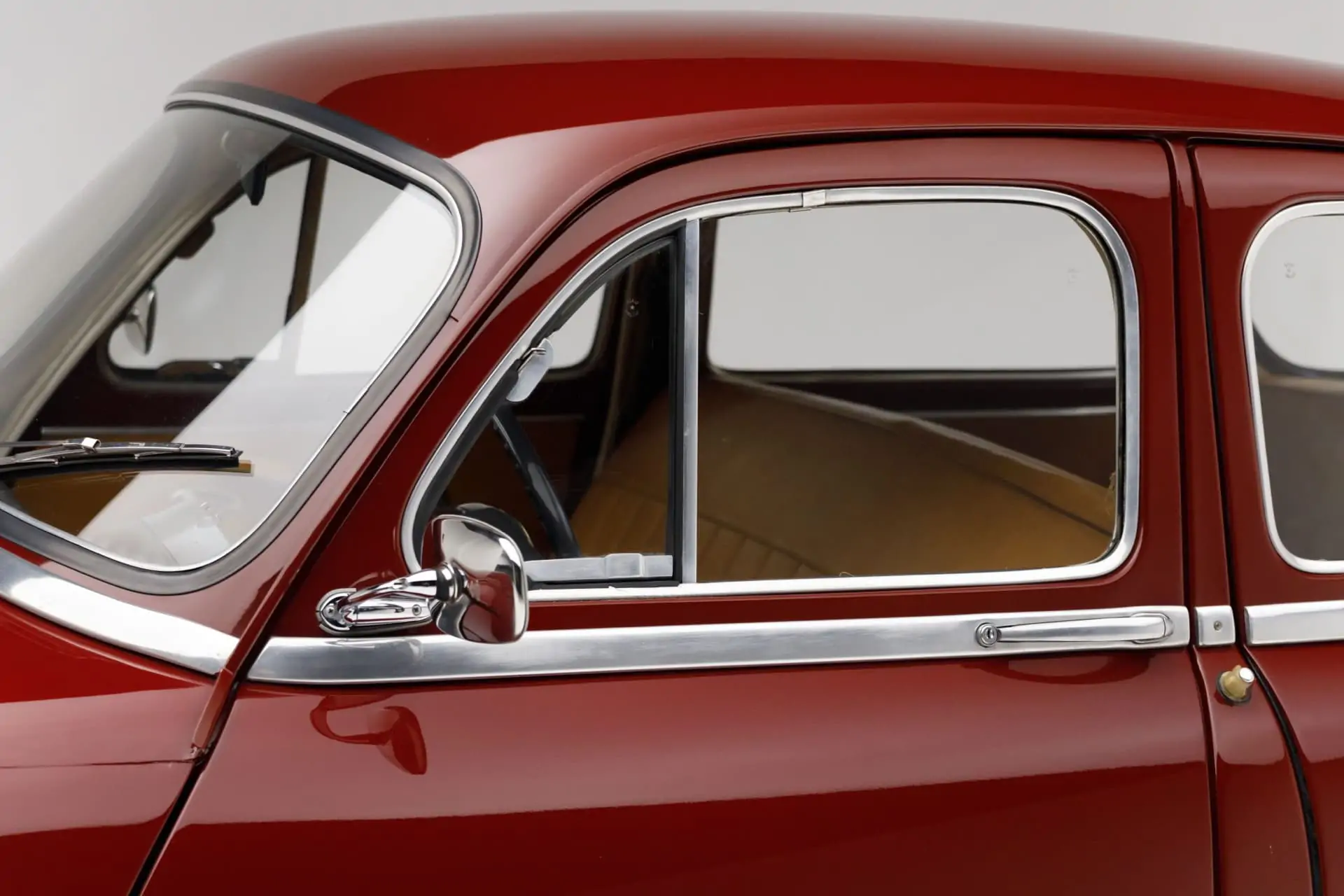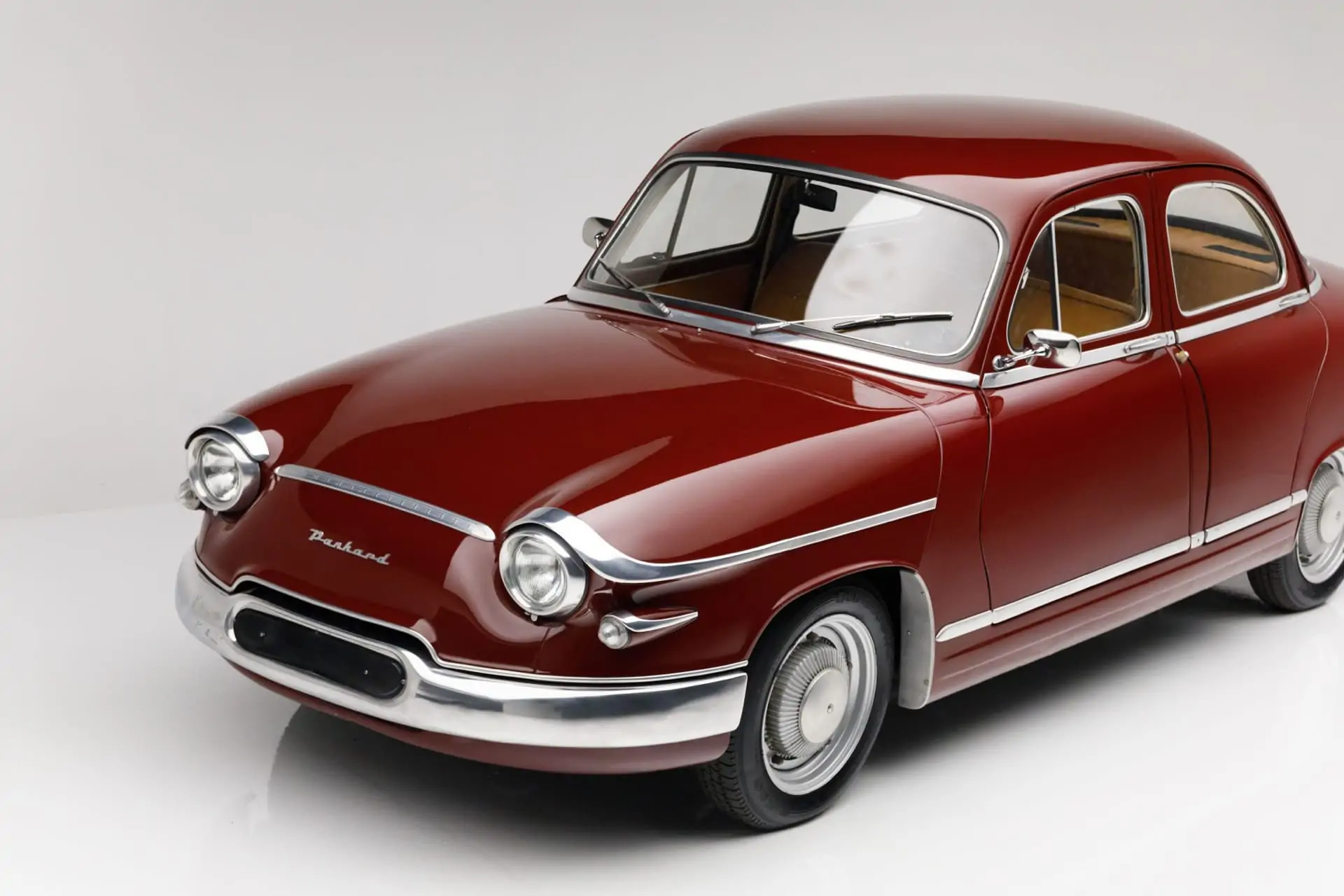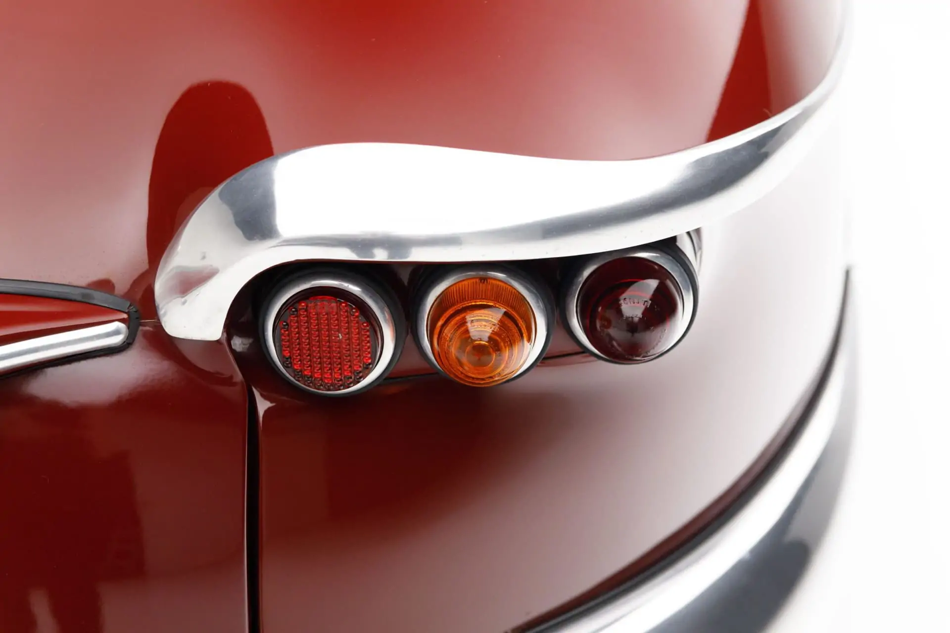 Partageant une grande partie de son design avec la Dyna Z, la PL17 a fait ses débuts en 1959 et présente un capot et un couvercle de coffre à clapet, ainsi que des pare-chocs et des éléments extérieurs brillants en aluminium. Cet exemplaire est peint en bordeaux et possède des portes avant à charnière, introduites pour l’année-modèle 1961.