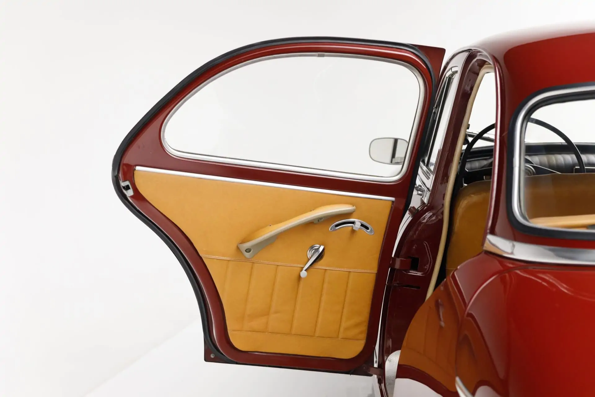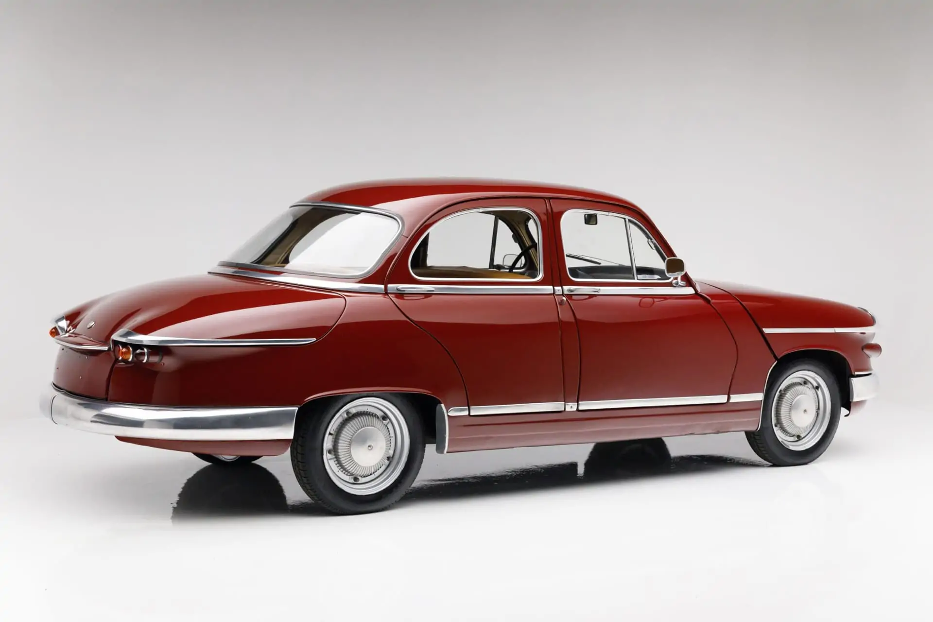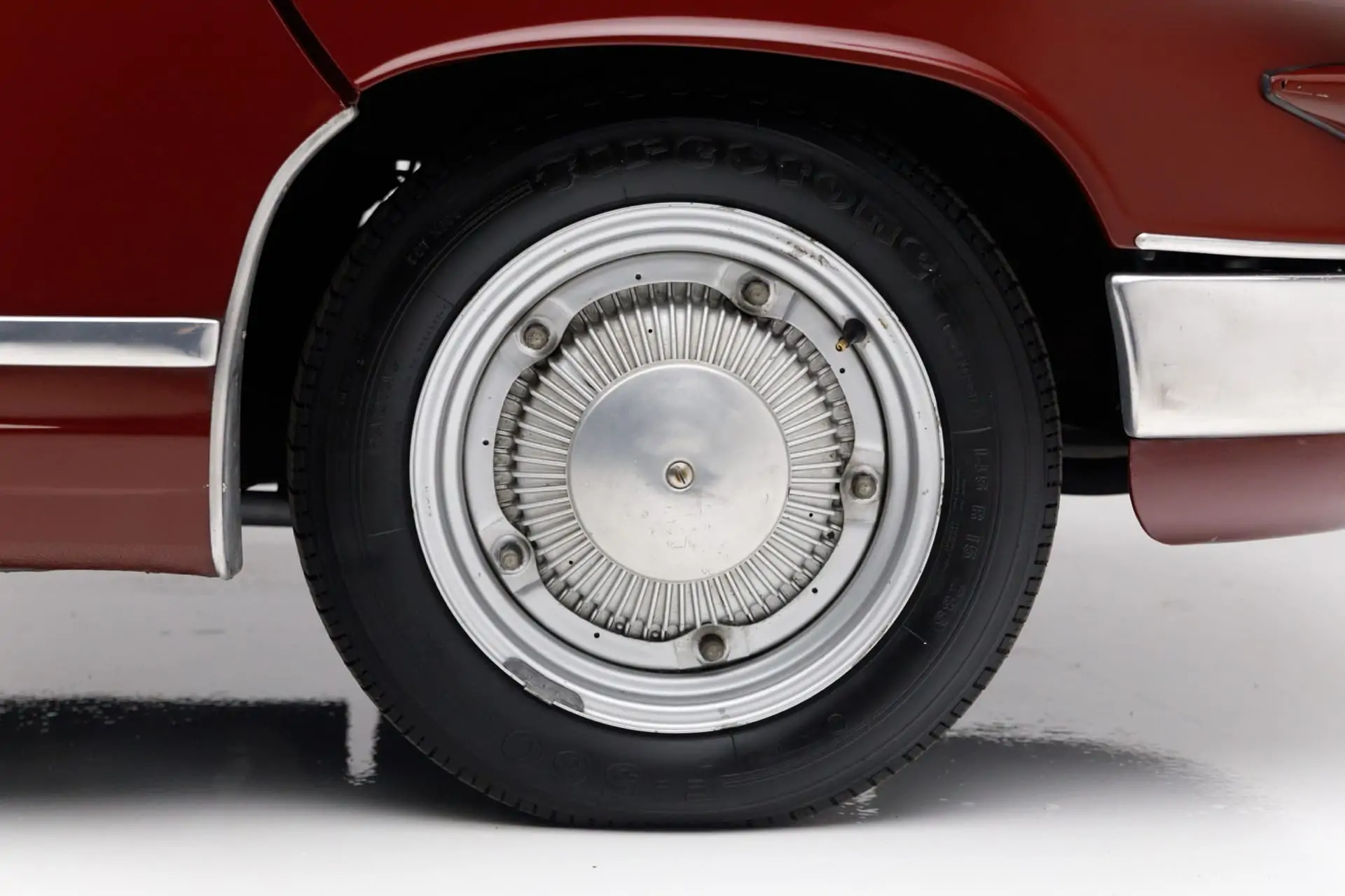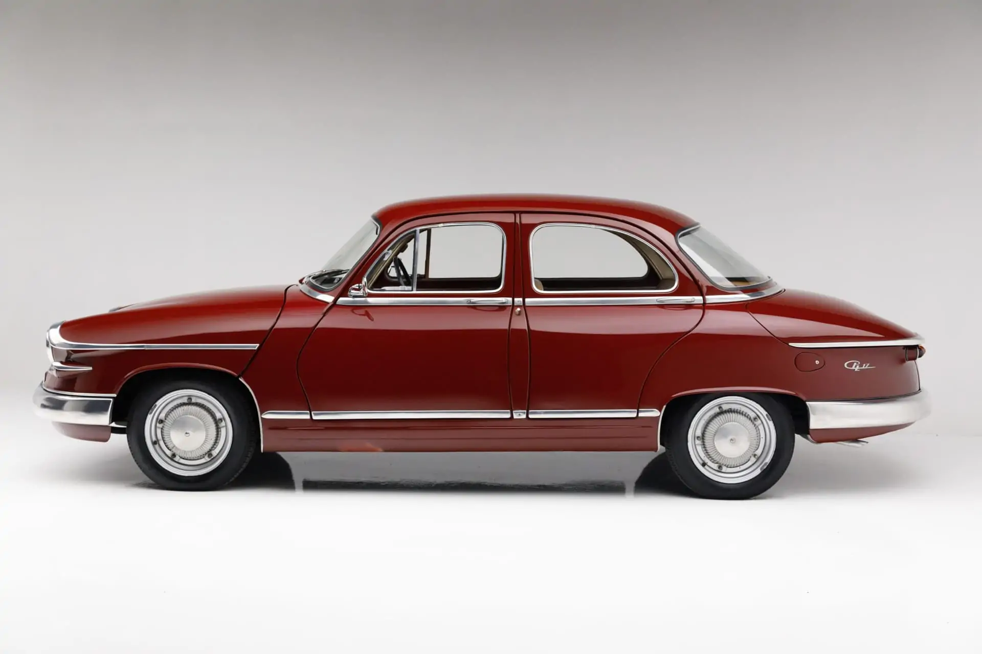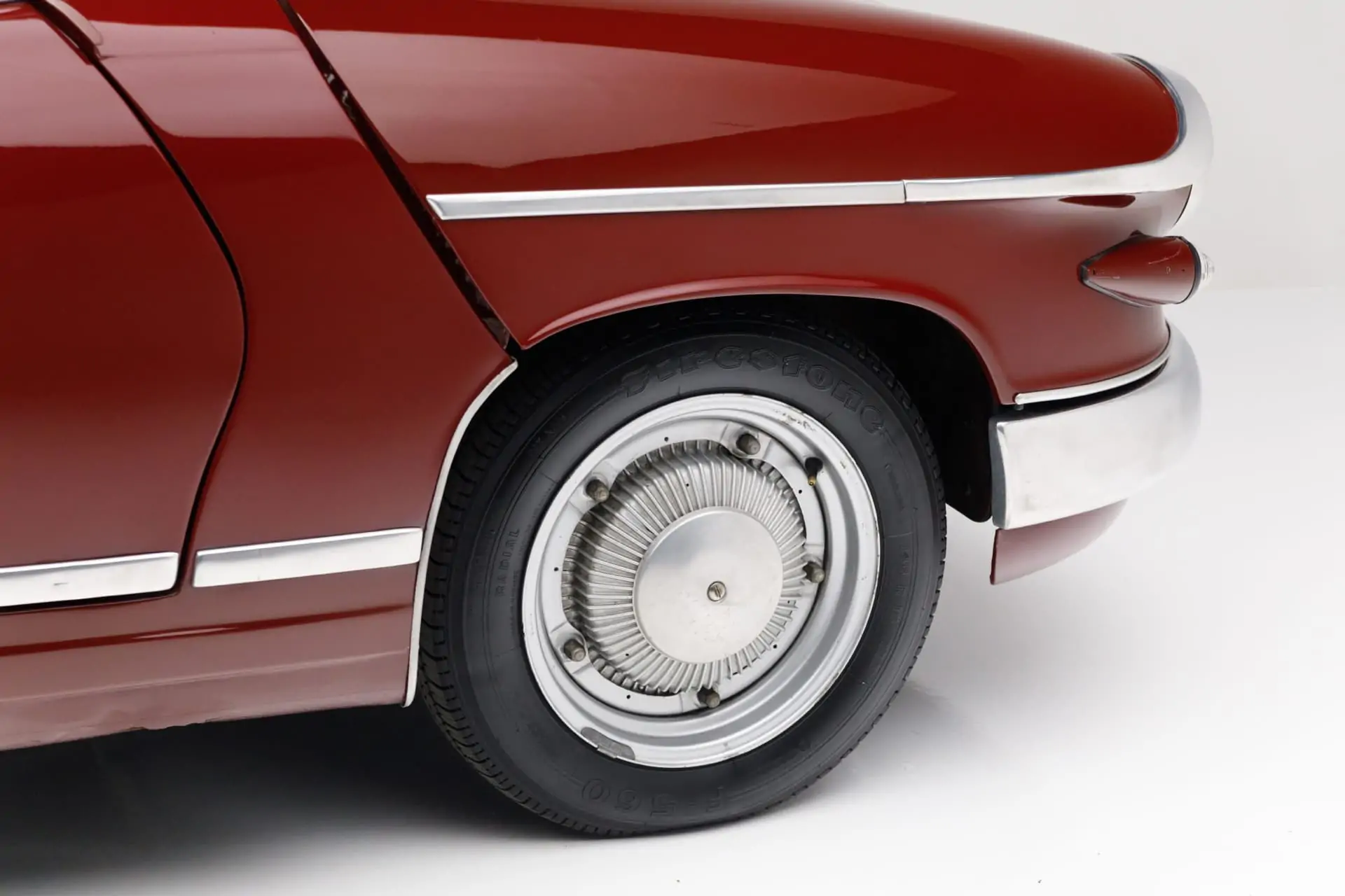 Partageant une grande partie de son design avec la Dyna Z, la PL17 a fait ses débuts en 1959 et présente un capot et un couvercle de coffre à clapet, ainsi que des pare-chocs et des éléments extérieurs brillants en aluminium. Cet exemplaire est peint en bordeaux et possède des portes avant à charnière, introduites pour l’année-modèle 1961.