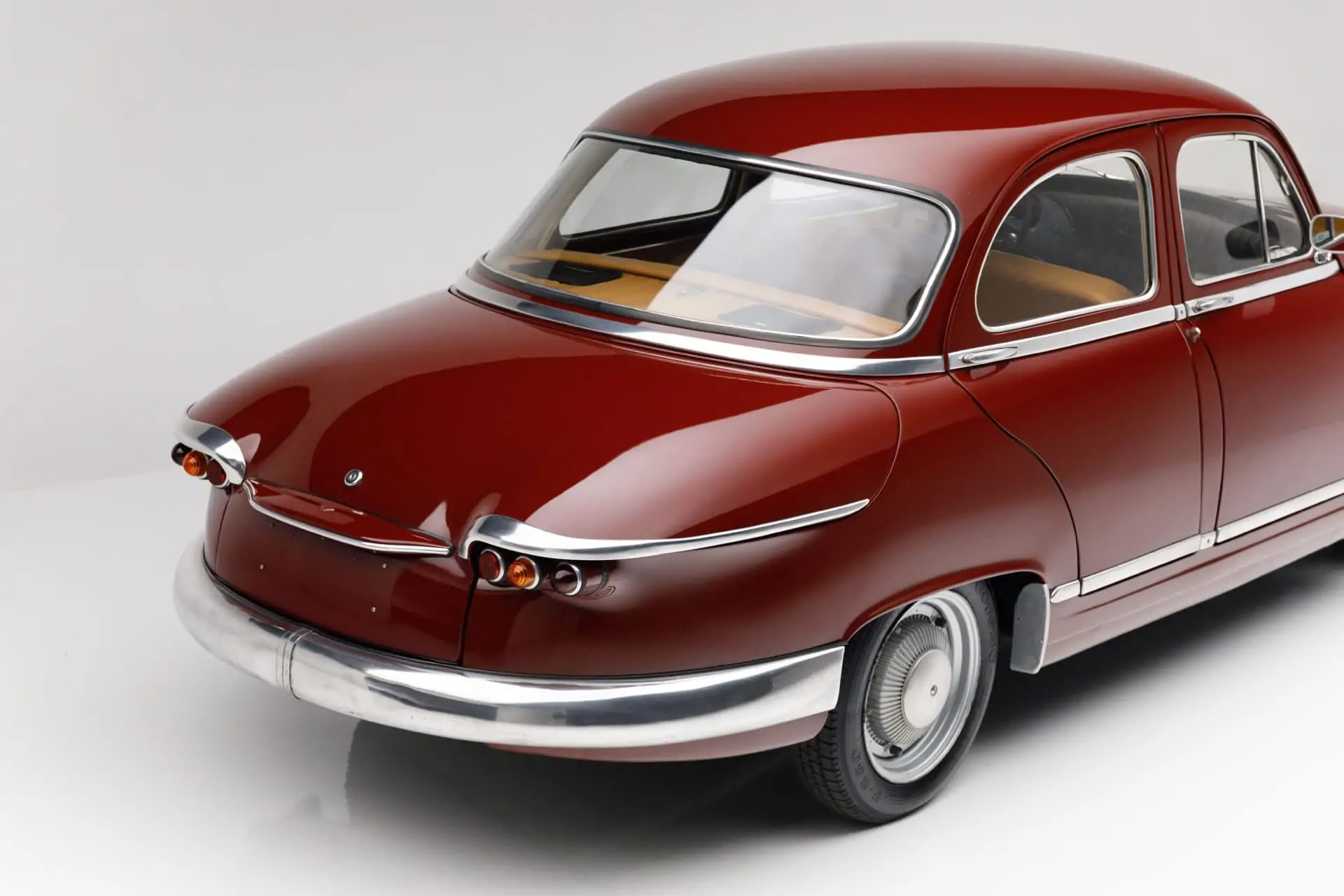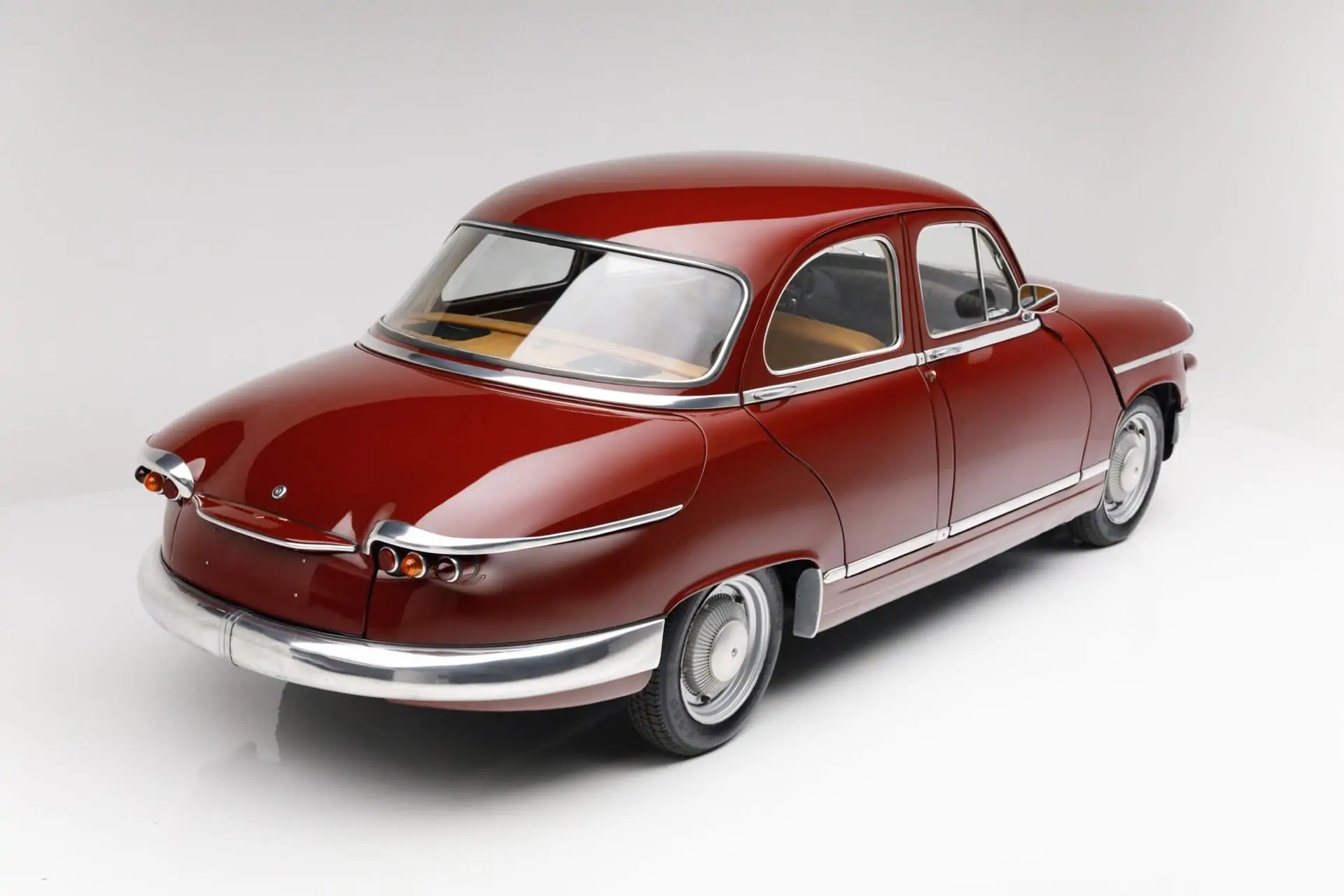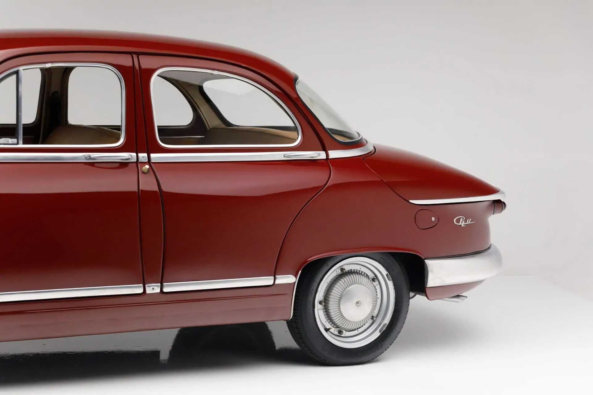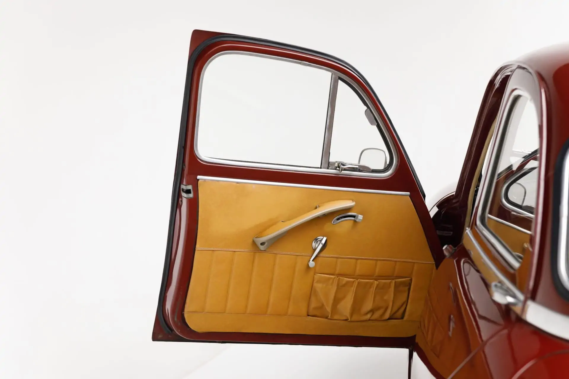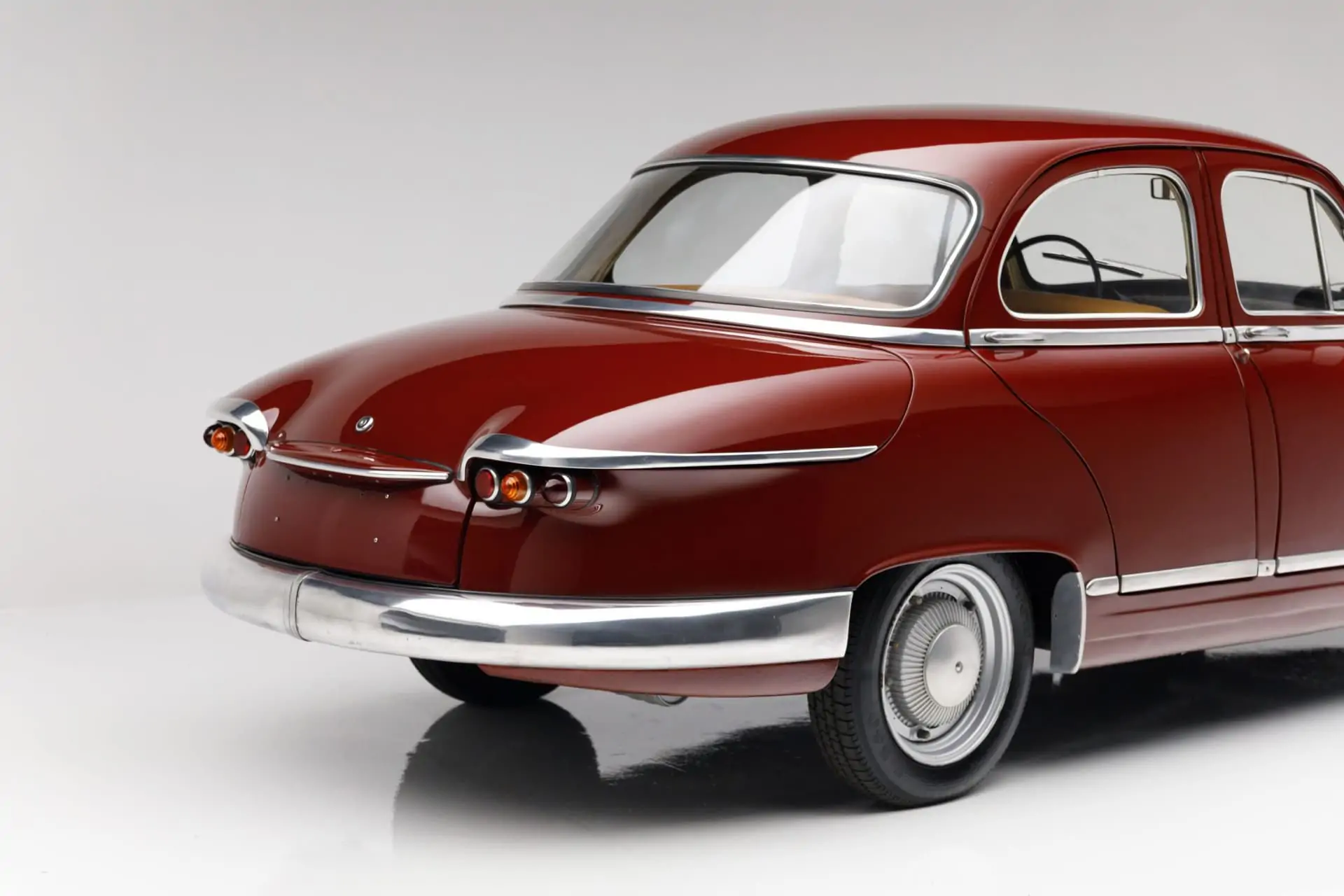 Partageant une grande partie de son design avec la Dyna Z, la PL17 a fait ses débuts en 1959 et présente un capot et un couvercle de coffre à clapet, ainsi que des pare-chocs et des éléments extérieurs brillants en aluminium. Cet exemplaire est peint en bordeaux et possède des portes avant à charnière, introduites pour l’année-modèle 1961.