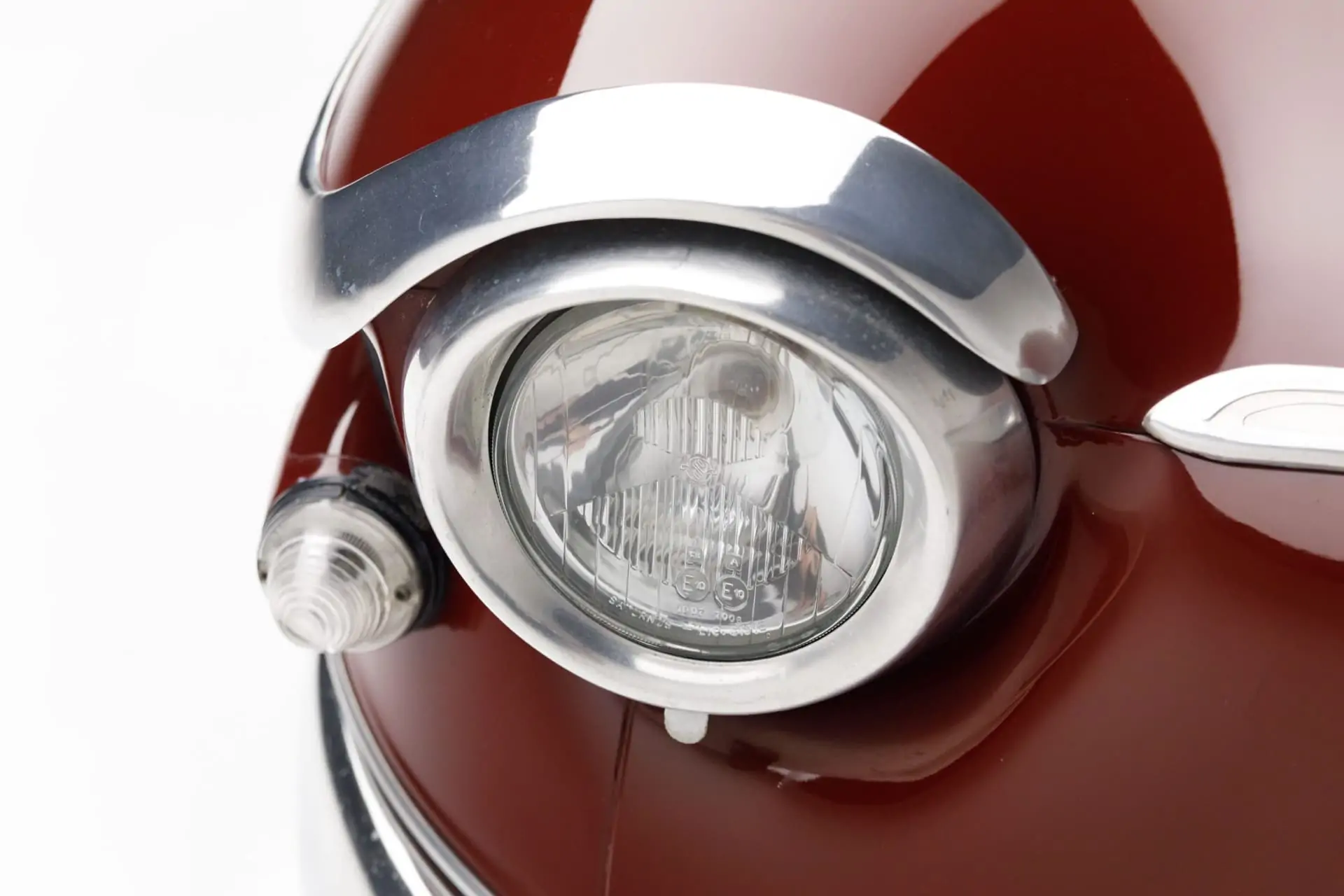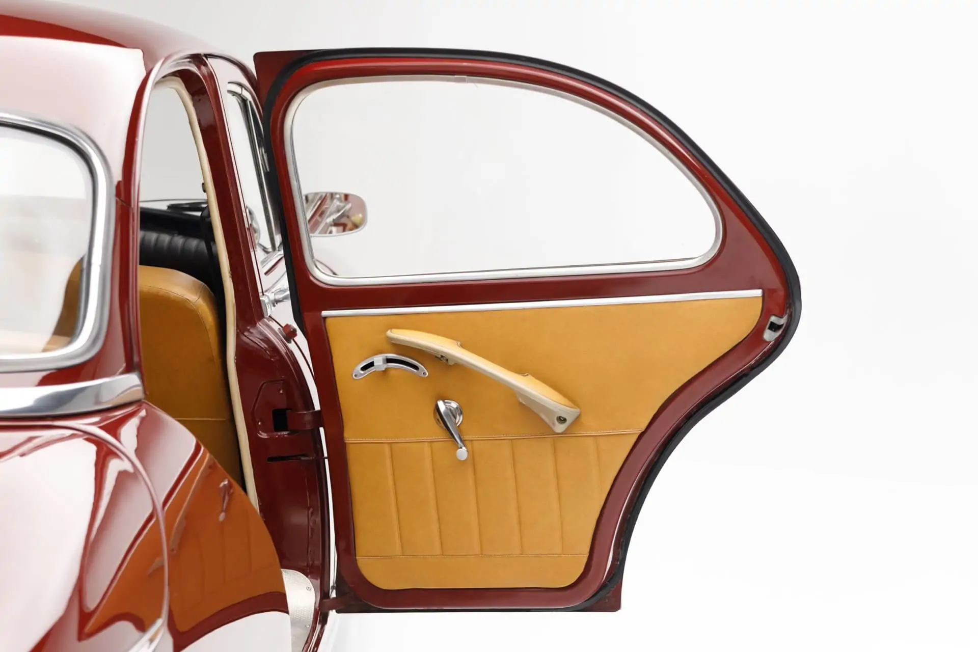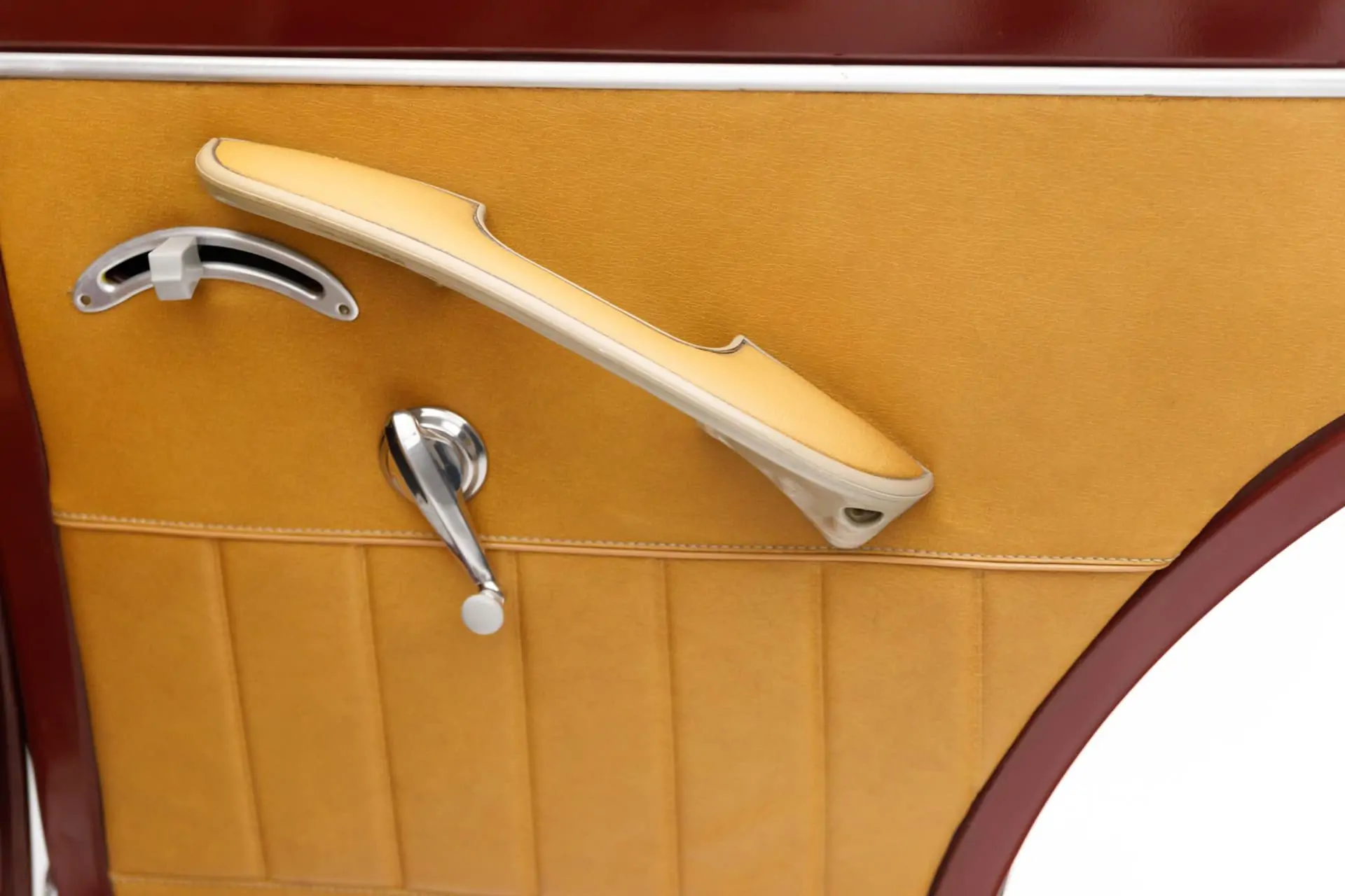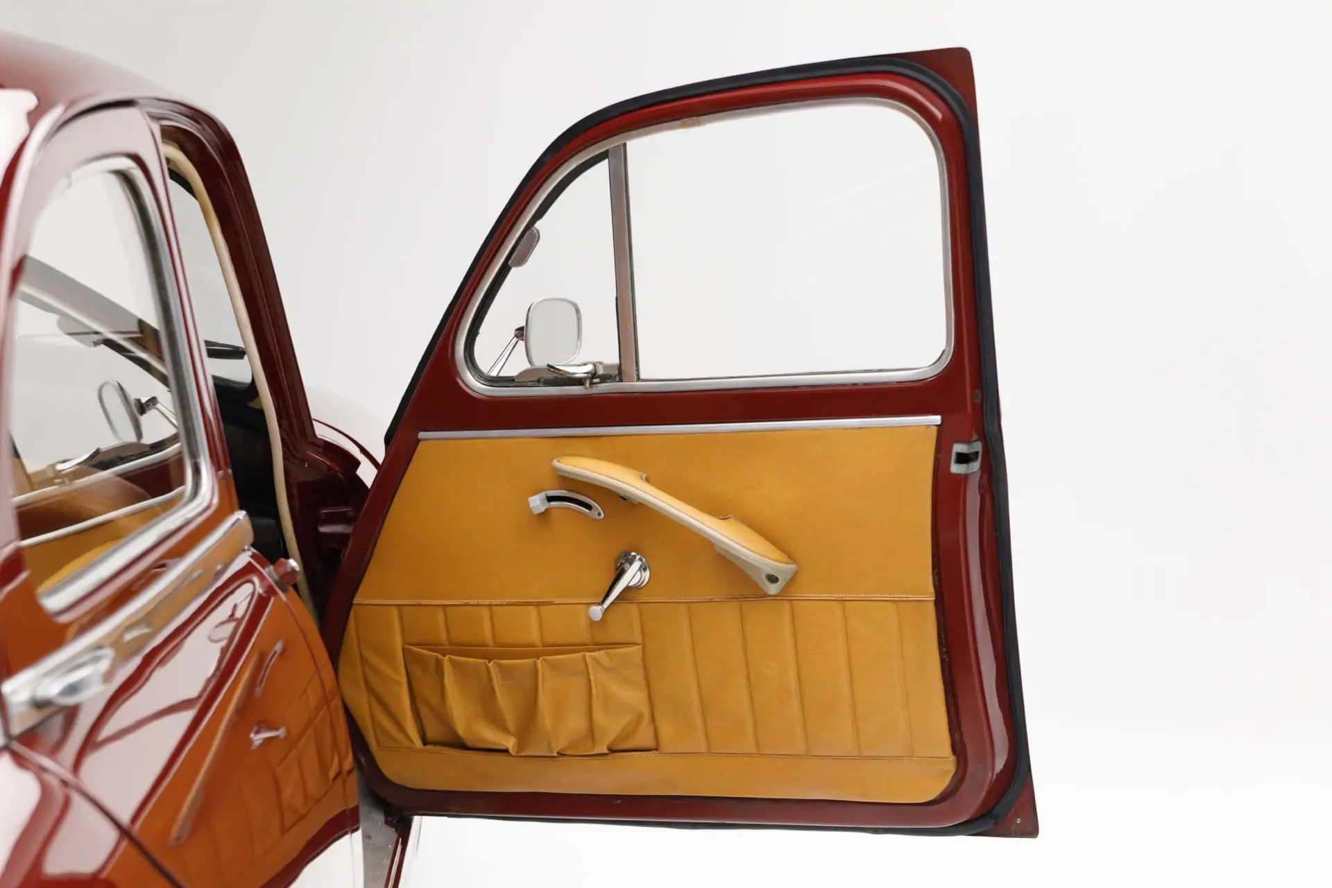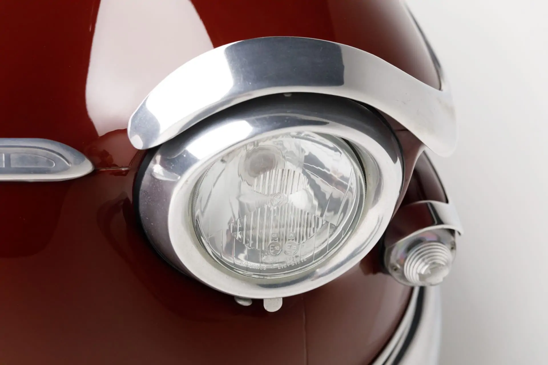 Partageant une grande partie de son design avec la Dyna Z, la PL17 a fait ses débuts en 1959 et présente un capot et un couvercle de coffre à clapet, ainsi que des pare-chocs et des éléments extérieurs brillants en aluminium. Cet exemplaire est peint en bordeaux et possède des portes avant à charnière, introduites pour l’année-modèle 1961.