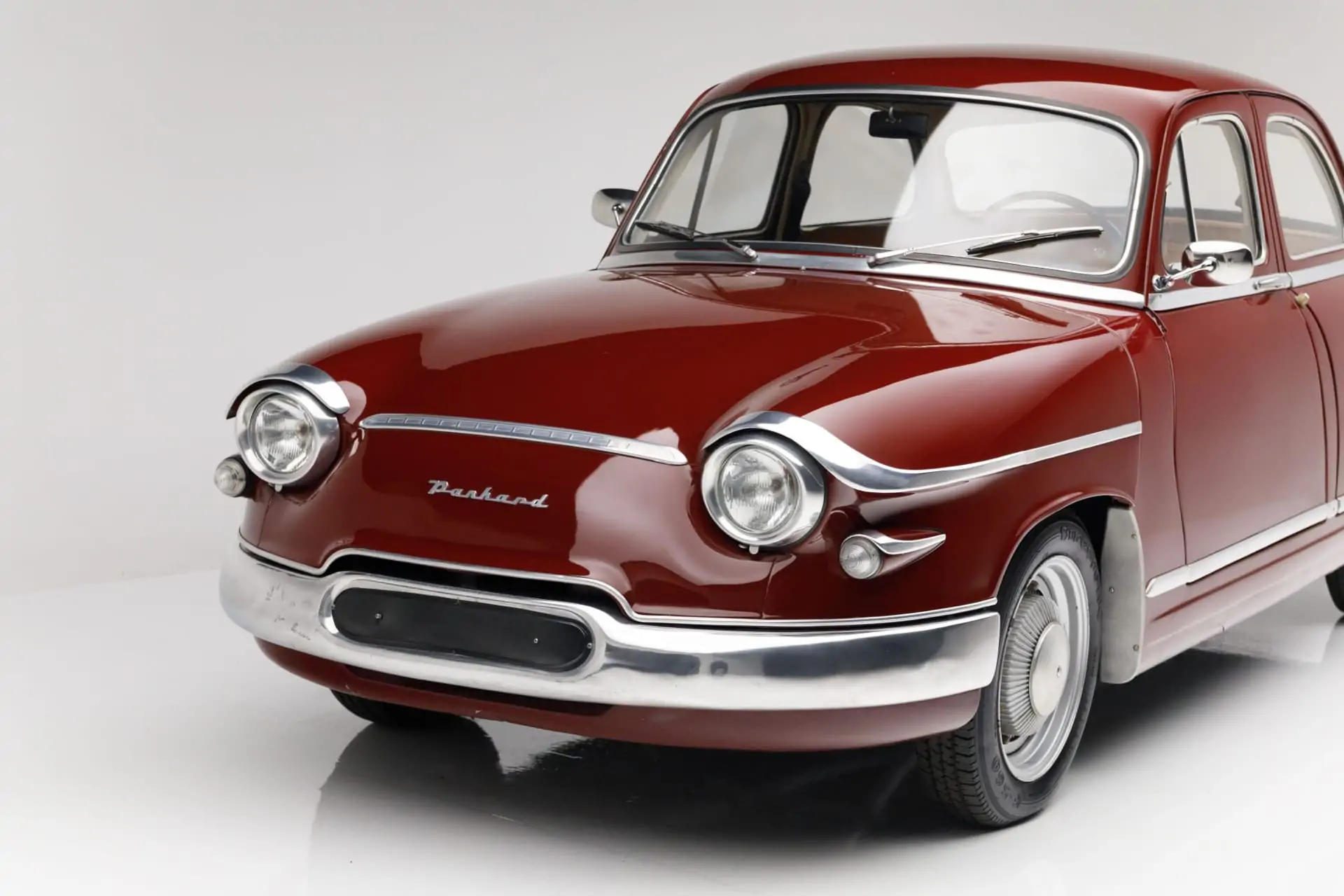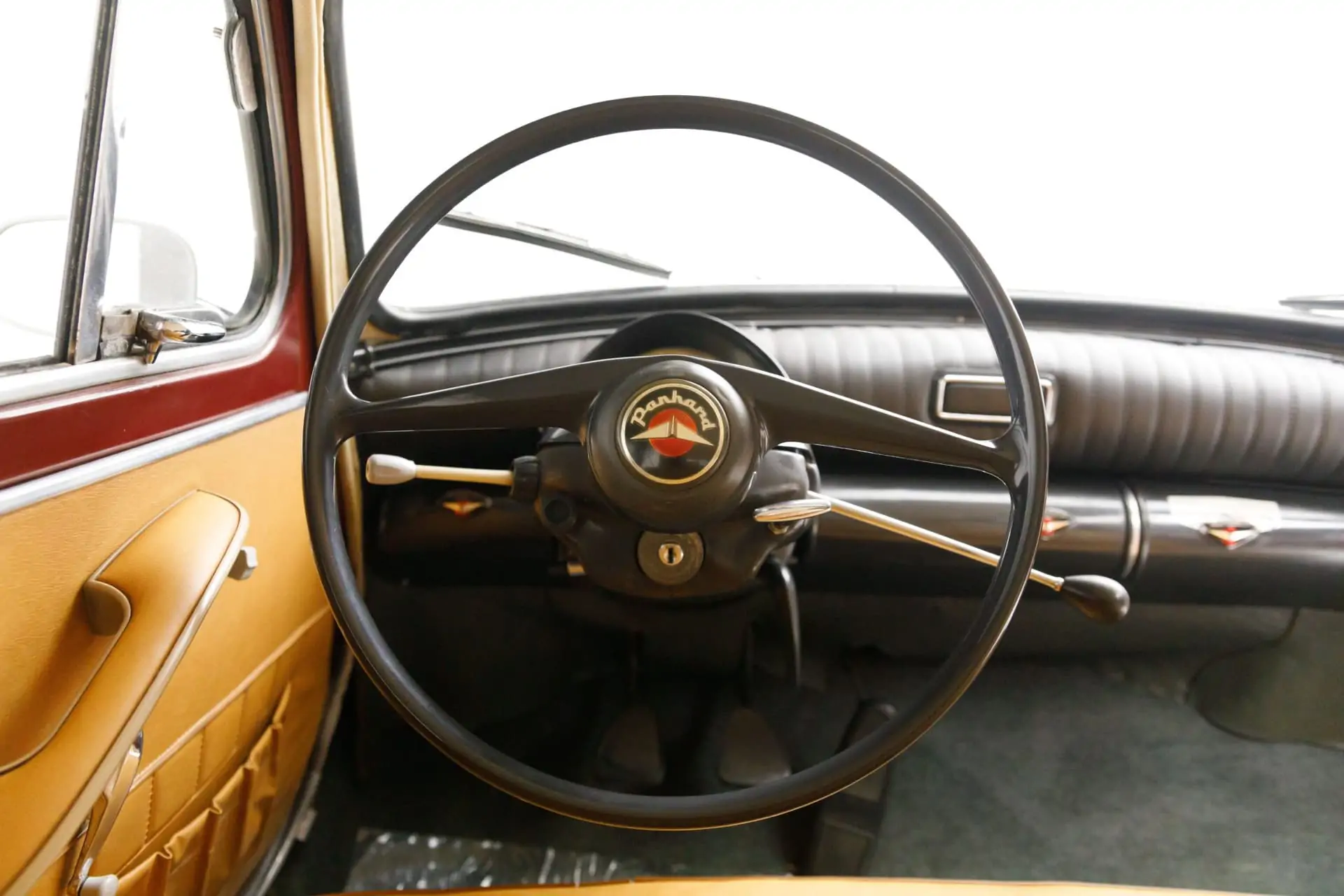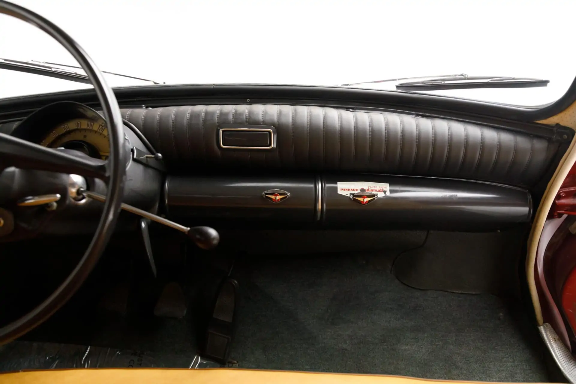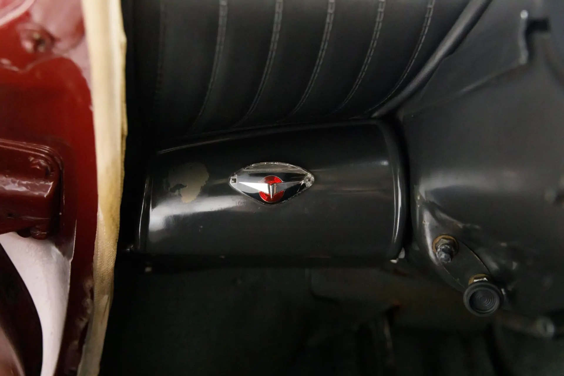 Cette Panhard PL17 de 1961 aurait été importée aux États-Unis depuis la Belgique par un ancien propriétaire et a passé du temps dans la collection du Maine Classic Car Museum jusqu’à l’acquisition par le concessionnaire vendeur en janvier 2024. Finie en bordeaux sur une sellerie tan, la voiture est propulsée par un bicylindre à plat de 848 cc qui entraîne les roues avant par l’intermédiaire d’une boîte de vitesses manuelle à quatre rapports. L’équipement additionnel comprend des éléments extérieurs en aluminium, des roues de 15 pouces, des freins à tambour à ailettes, une suspension avant indépendante à ressorts à lames, une suspension arrière à barre de torsion et un seul carburateur Zenith.