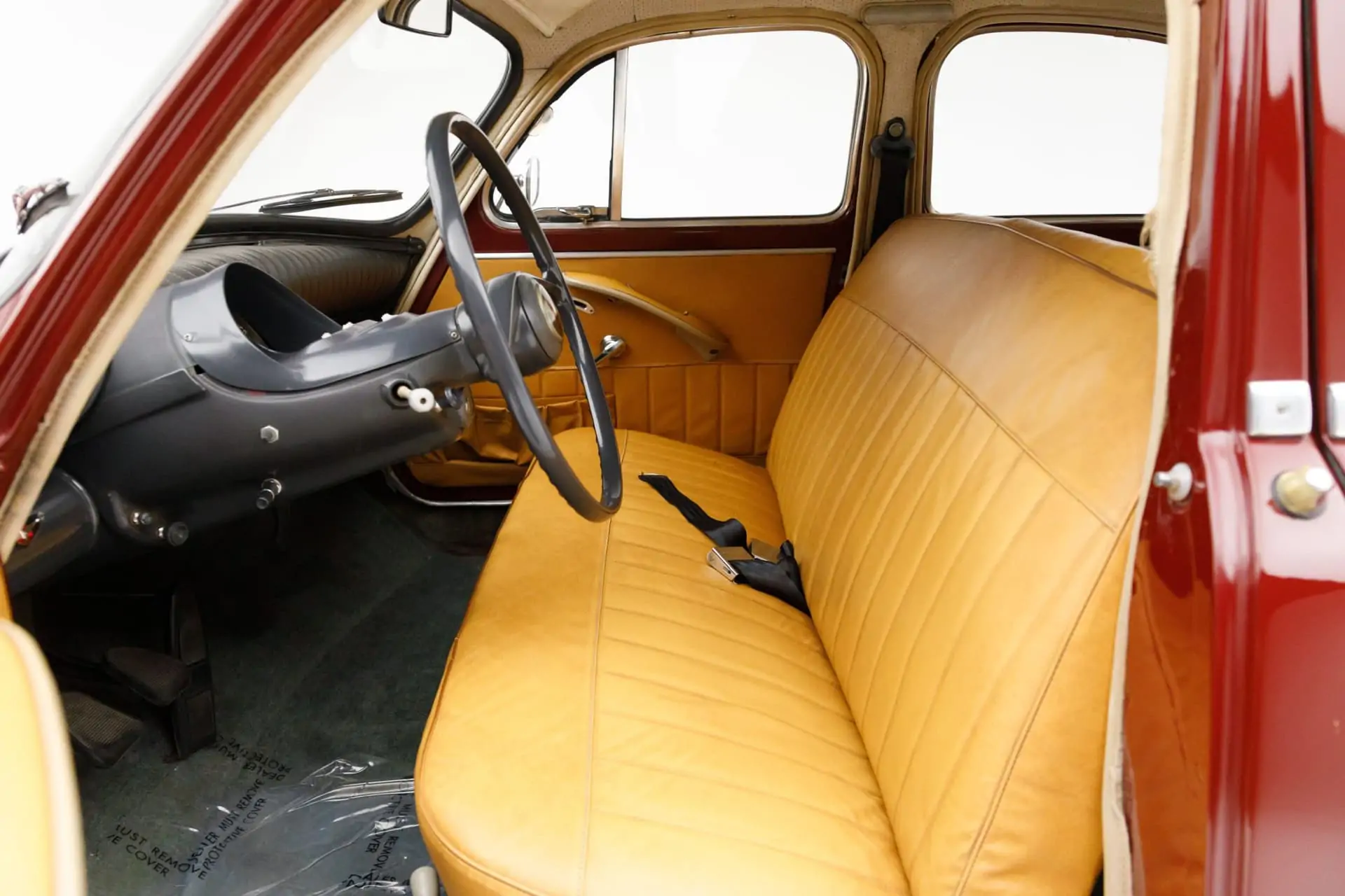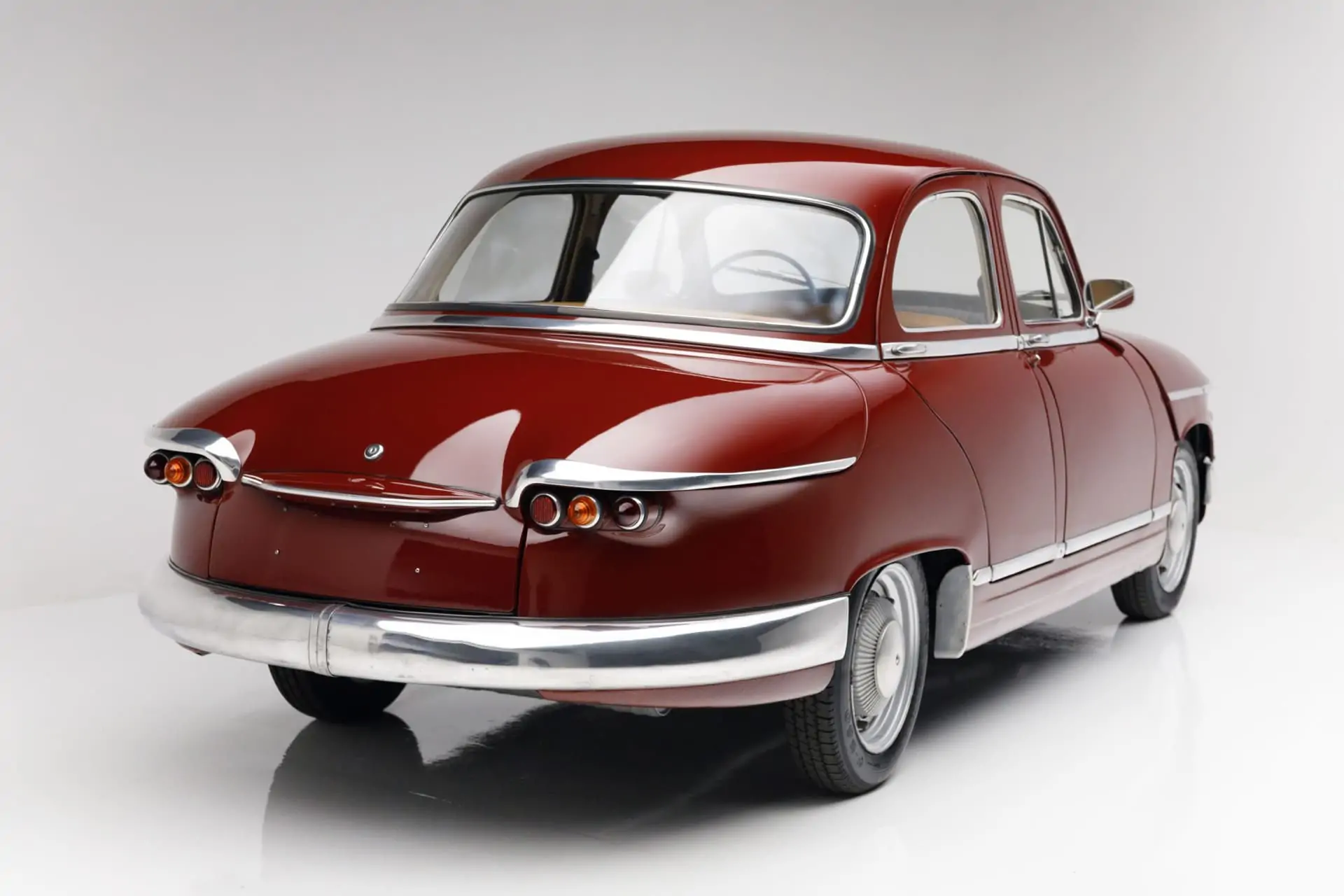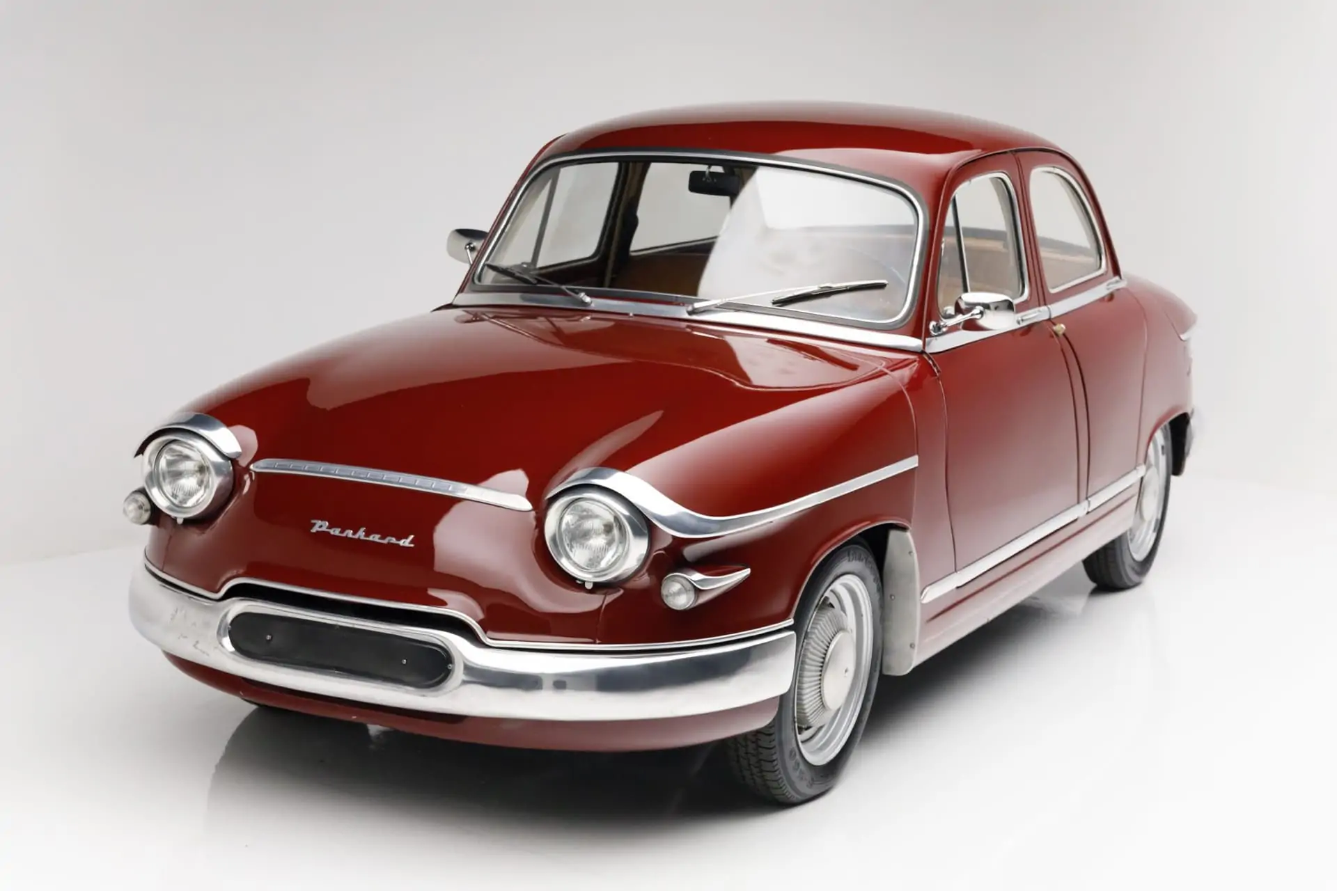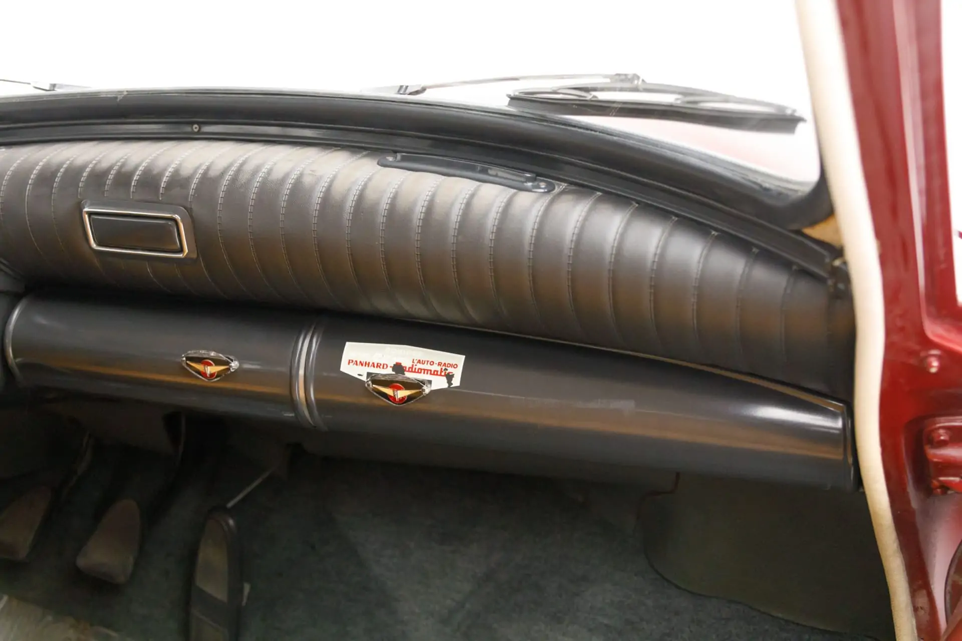 Cette Panhard PL17 de 1961 aurait été importée aux États-Unis depuis la Belgique par un ancien propriétaire et a passé du temps dans la collection du Maine Classic Car Museum jusqu’à l’acquisition par le concessionnaire vendeur en janvier 2024. Finie en bordeaux sur une sellerie tan, la voiture est propulsée par un bicylindre à plat de 848 cc qui entraîne les roues avant par l’intermédiaire d’une boîte de vitesses manuelle à quatre rapports. L’équipement additionnel comprend des éléments extérieurs en aluminium, des roues de 15 pouces, des freins à tambour à ailettes, une suspension avant indépendante à ressorts à lames, une suspension arrière à barre de torsion et un seul carburateur Zenith.