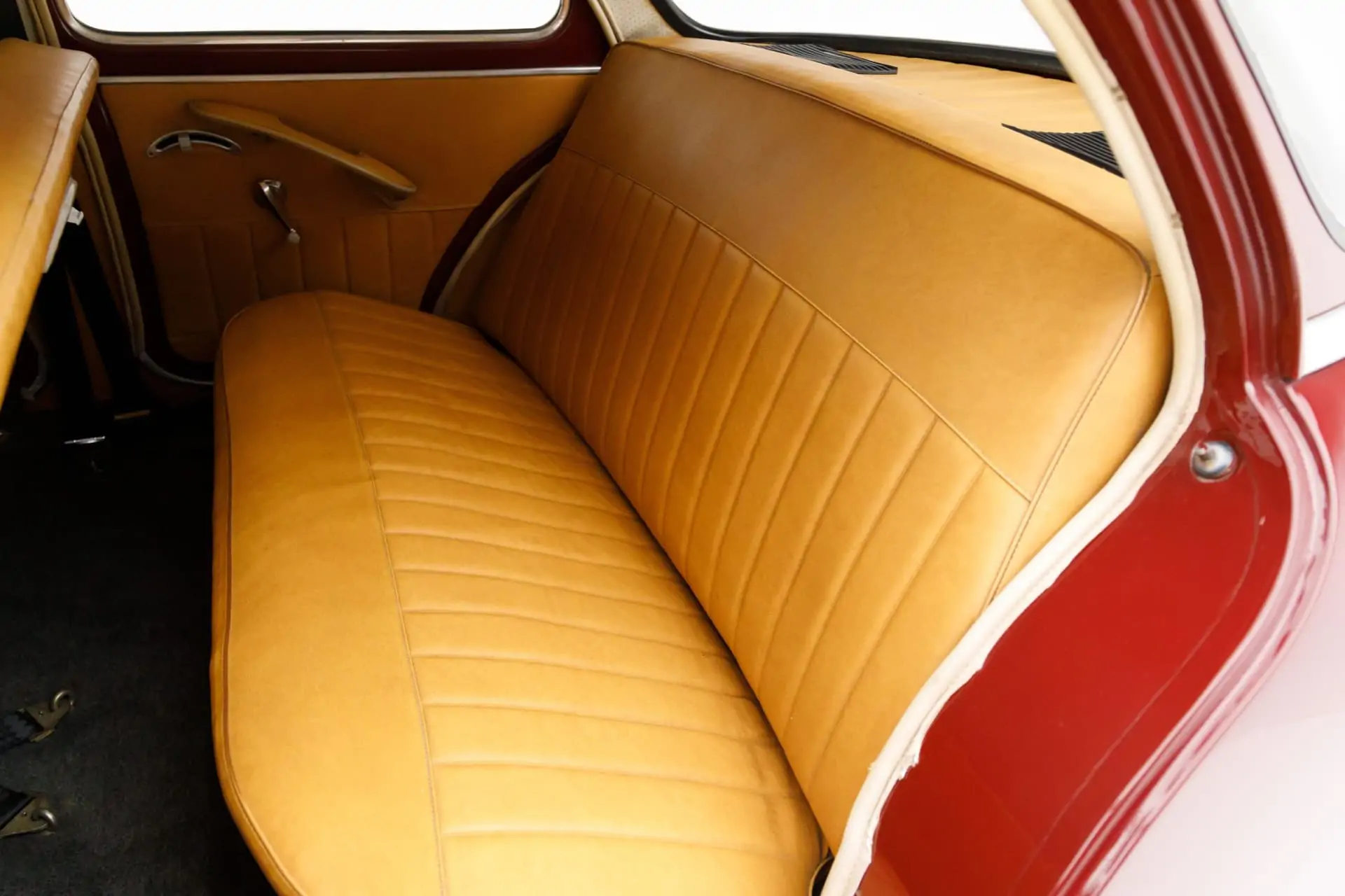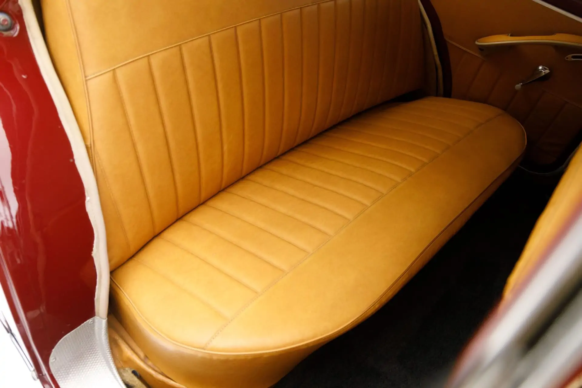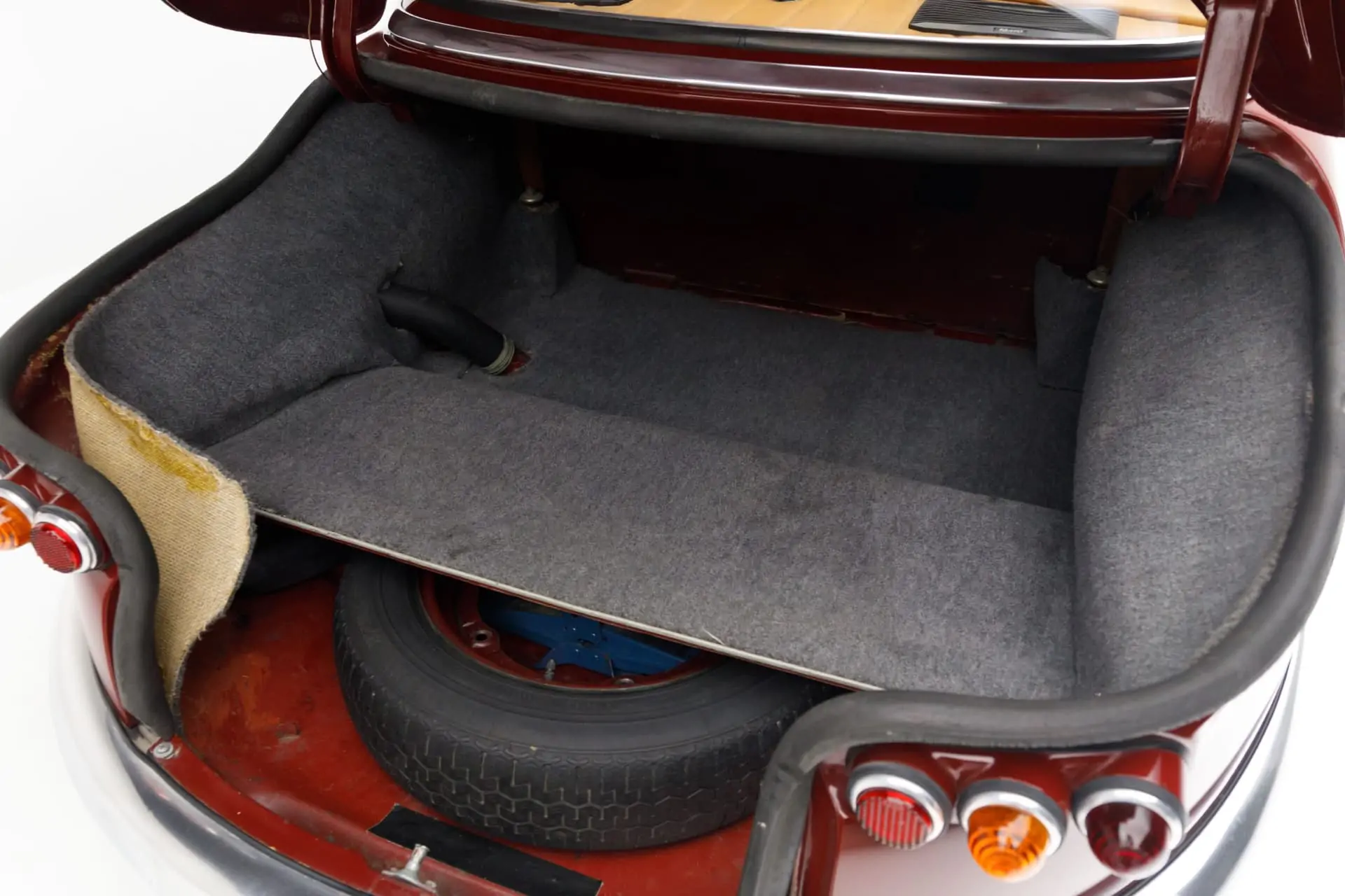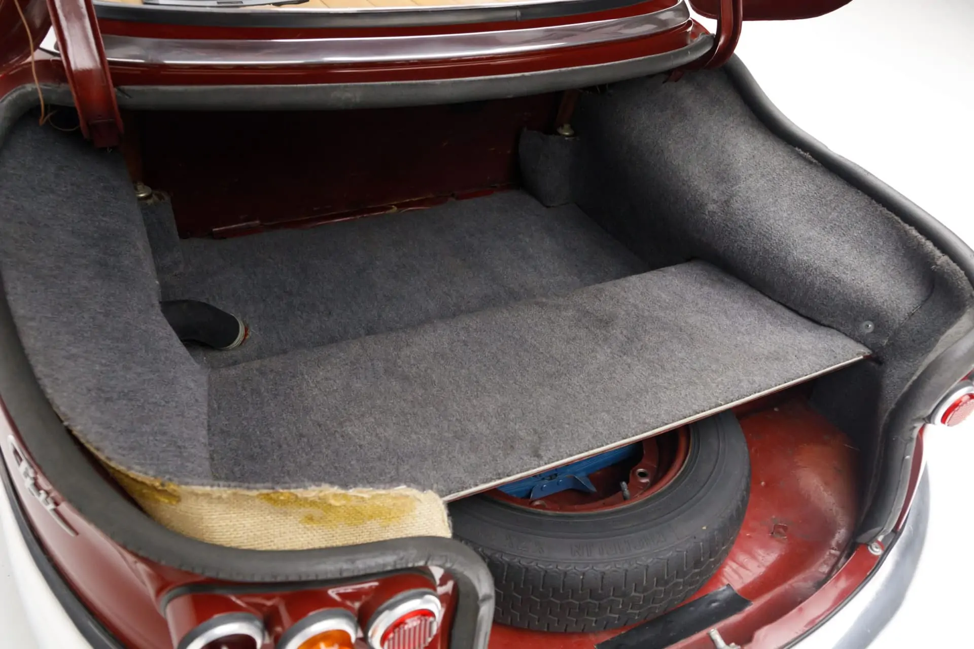 Cette Panhard PL17 de 1961 aurait été importée aux États-Unis depuis la Belgique par un ancien propriétaire et a passé du temps dans la collection du Maine Classic Car Museum jusqu’à l’acquisition par le concessionnaire vendeur en janvier 2024. Finie en bordeaux sur une sellerie tan, la voiture est propulsée par un bicylindre à plat de 848 cc qui entraîne les roues avant par l’intermédiaire d’une boîte de vitesses manuelle à quatre rapports. L’équipement additionnel comprend des éléments extérieurs en aluminium, des roues de 15 pouces, des freins à tambour à ailettes, une suspension avant indépendante à ressorts à lames, une suspension arrière à barre de torsion et un seul carburateur Zenith.
