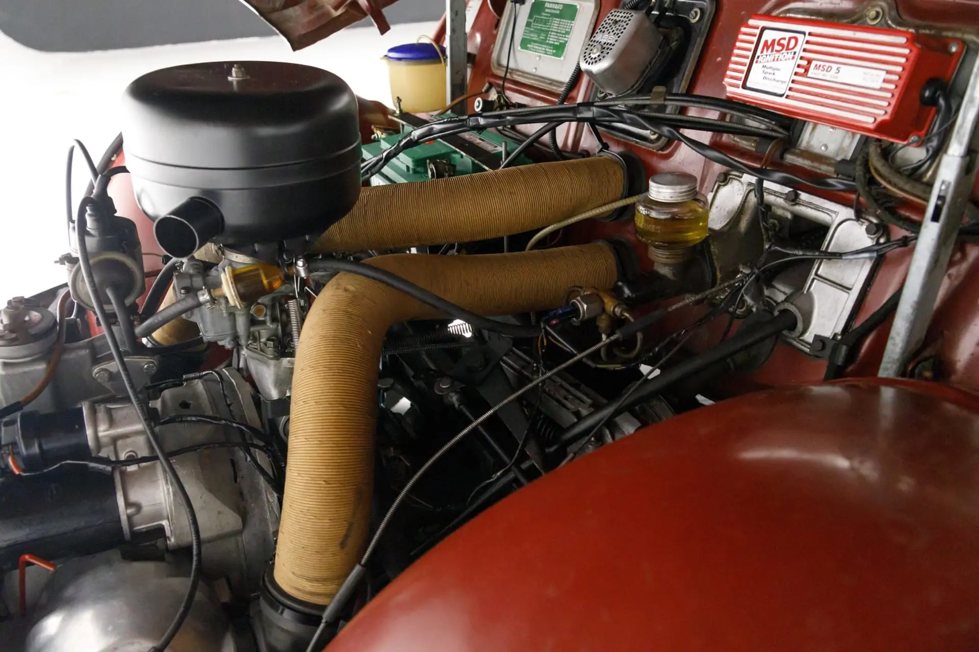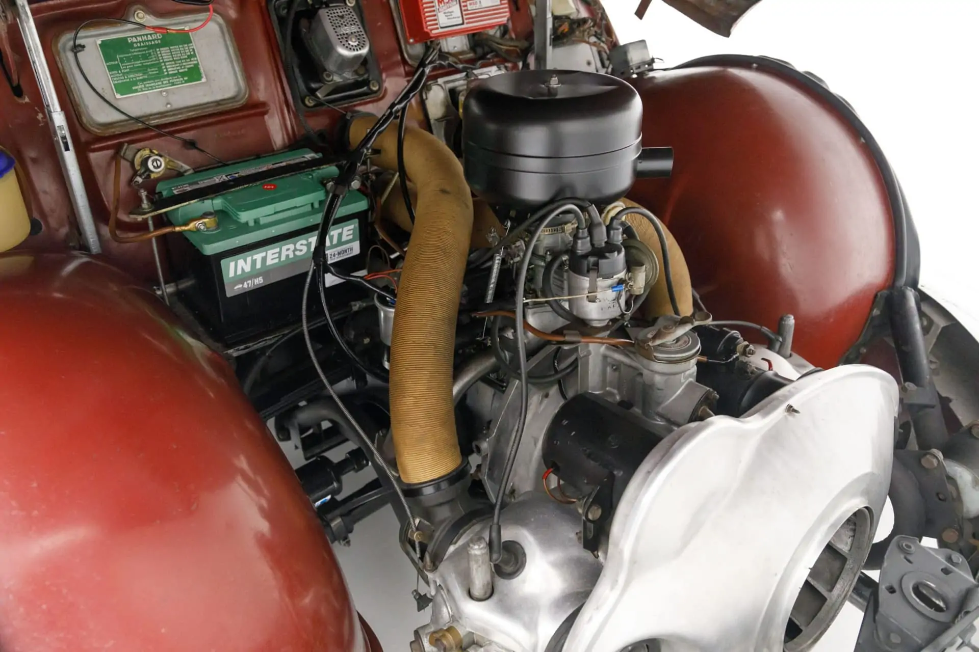 Le bicylindre à plat de 848 cc refroidi par air est équipé de roulements à rouleaux pour les paliers principaux et les bielles, ainsi que de ressorts de soupapes à barre de torsion, de culbuteurs à flotteur hydraulique et de culbuteurs à rouleaux. Les autres équipements comprennent un carburateur Zenith à tirage descendant, un carénage de ventilateur en aluminium, un système électrique de 12 volts et un module d’allumage MSD. La puissance est transmise aux roues avant par l’intermédiaire d’une boîte de vitesses manuelle à quatre rapports.