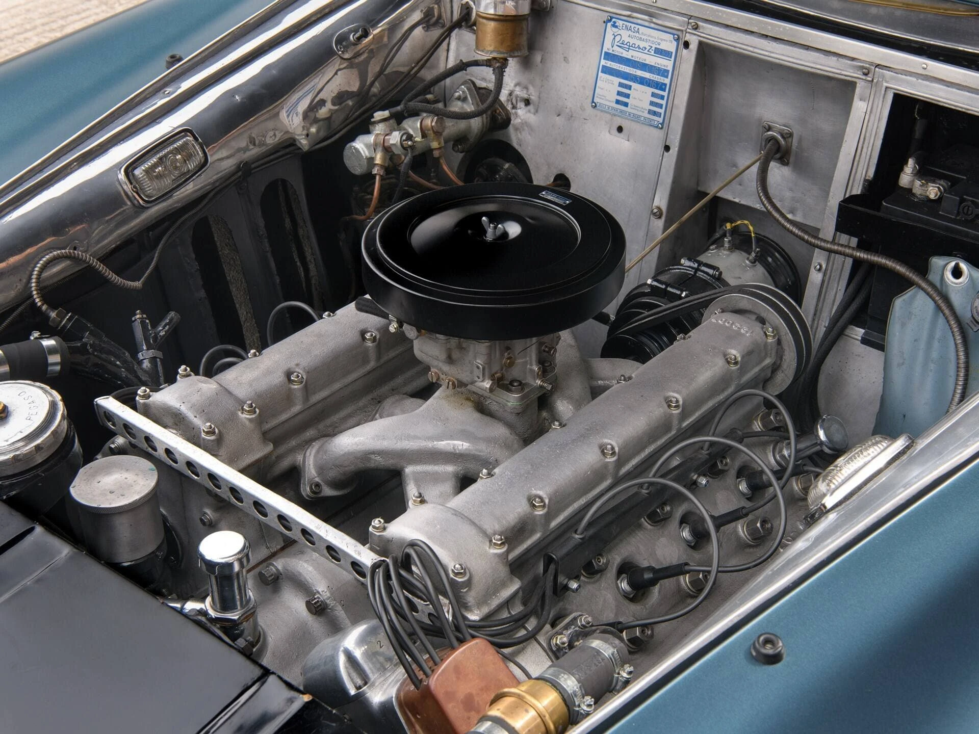 Ce magnifique exemplaire, numéro de châssis 67, est un rare exemplaire de série II bénéficiant du moteur de 3,2 litres de la plus grosse cylindrée. Livrée neuve avec carrosserie Superleggera par Touring (la même carrosserie entièrement d’origine qu’elle porte aujourd’hui), cette Z-102 était immatriculée NA 11-095 avec son premier propriétaire, un riche associé de Franco et propriétaire d’Urra SAE à Pampelune.