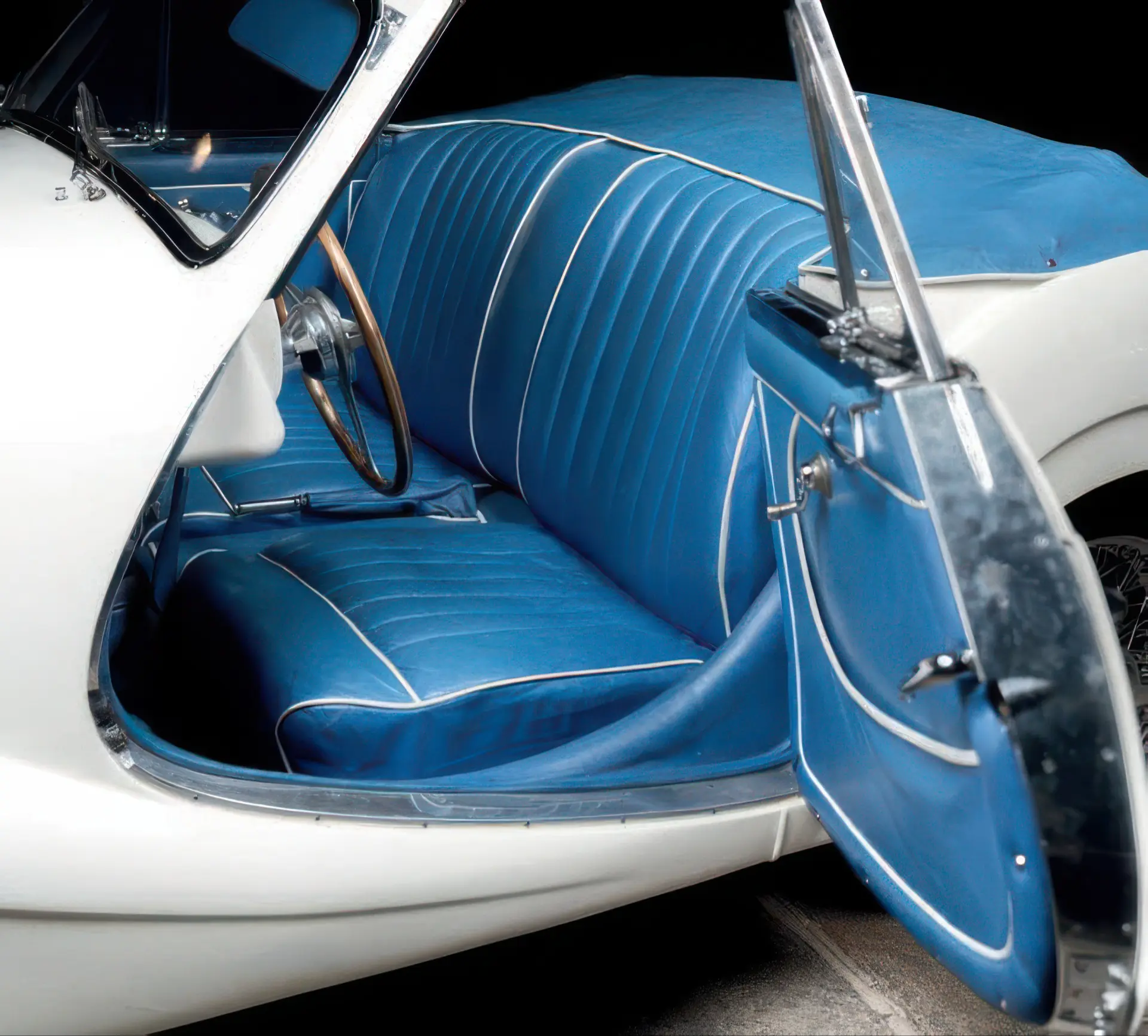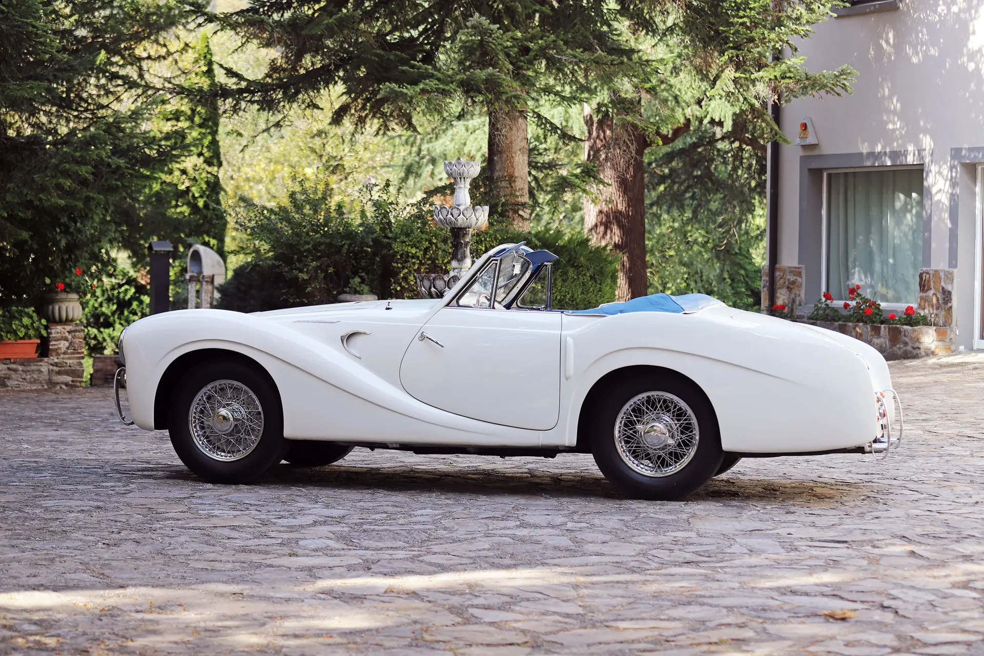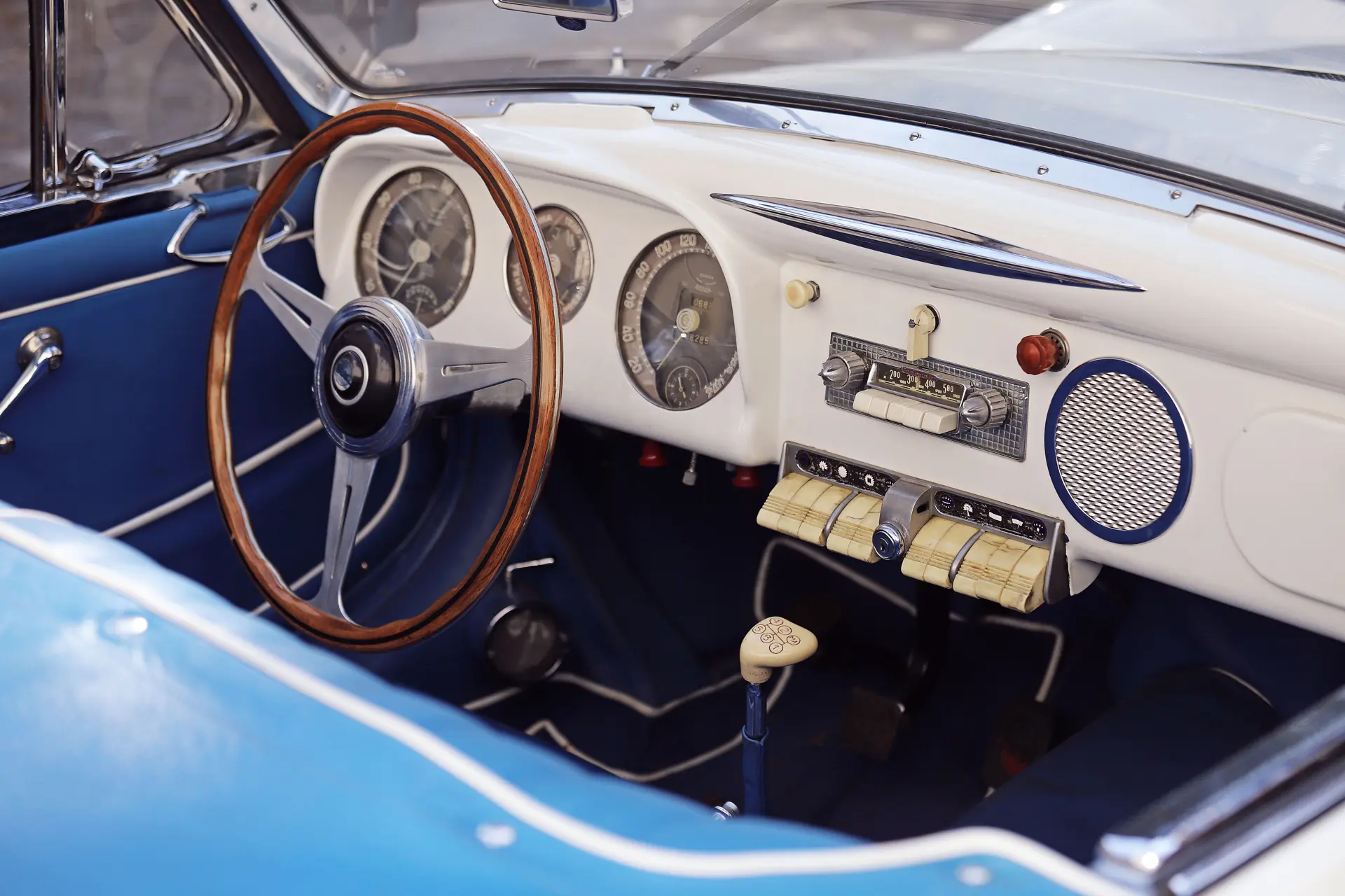 Cette deuxième auto, née bleu métallisée, avec intérieur bleu assorti, motorisée par un moteur 2,8 l à simple carburateur sera ensuite vendue à un riche client madrilène, immatriculée M-109.179, une immatriculation qu’elle porte encore à ce jour… Elle aura entre 1955 et 1975 deux autres propriétaires espagnols, avant d’être achetée en 1976 par un grand collectionneur barcelonais de la première heure, Monsieur W. A.-J. Repeinte en blanc, elle sera l’un des joyaux de sa collection, et il fera à son volant le tour des plus beaux événements.