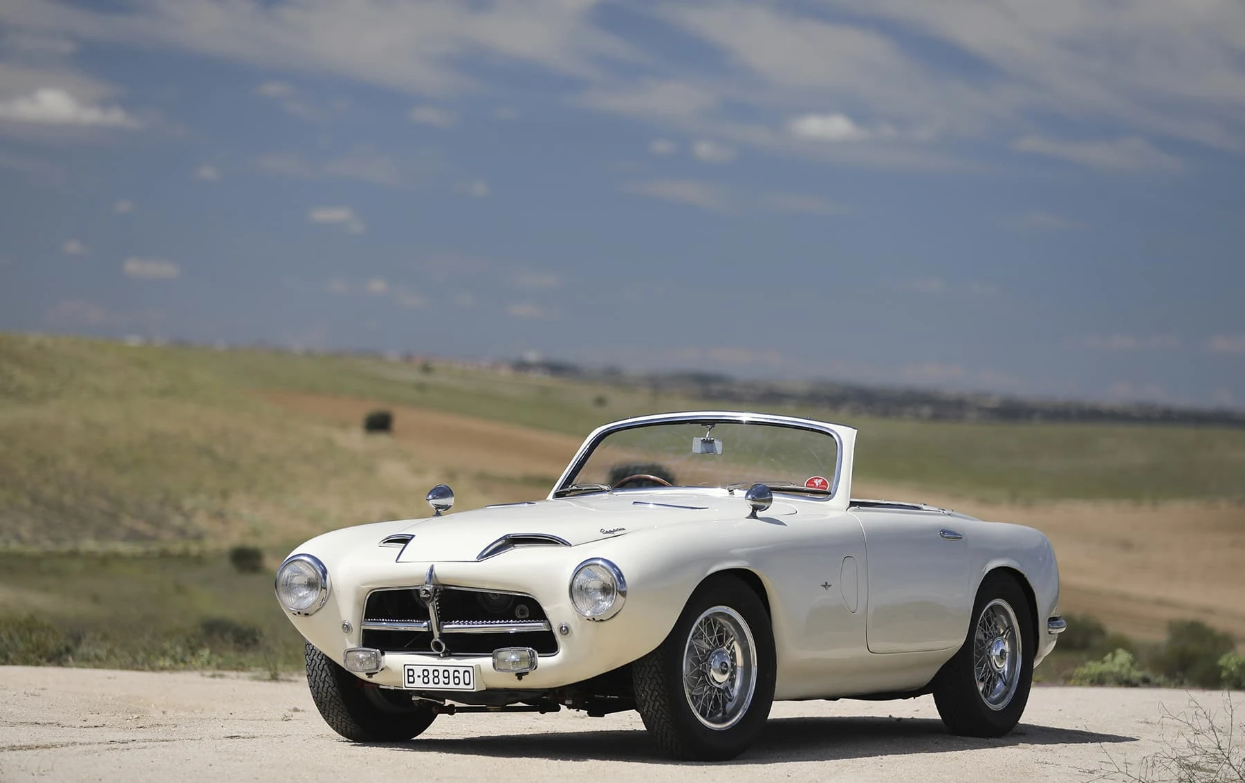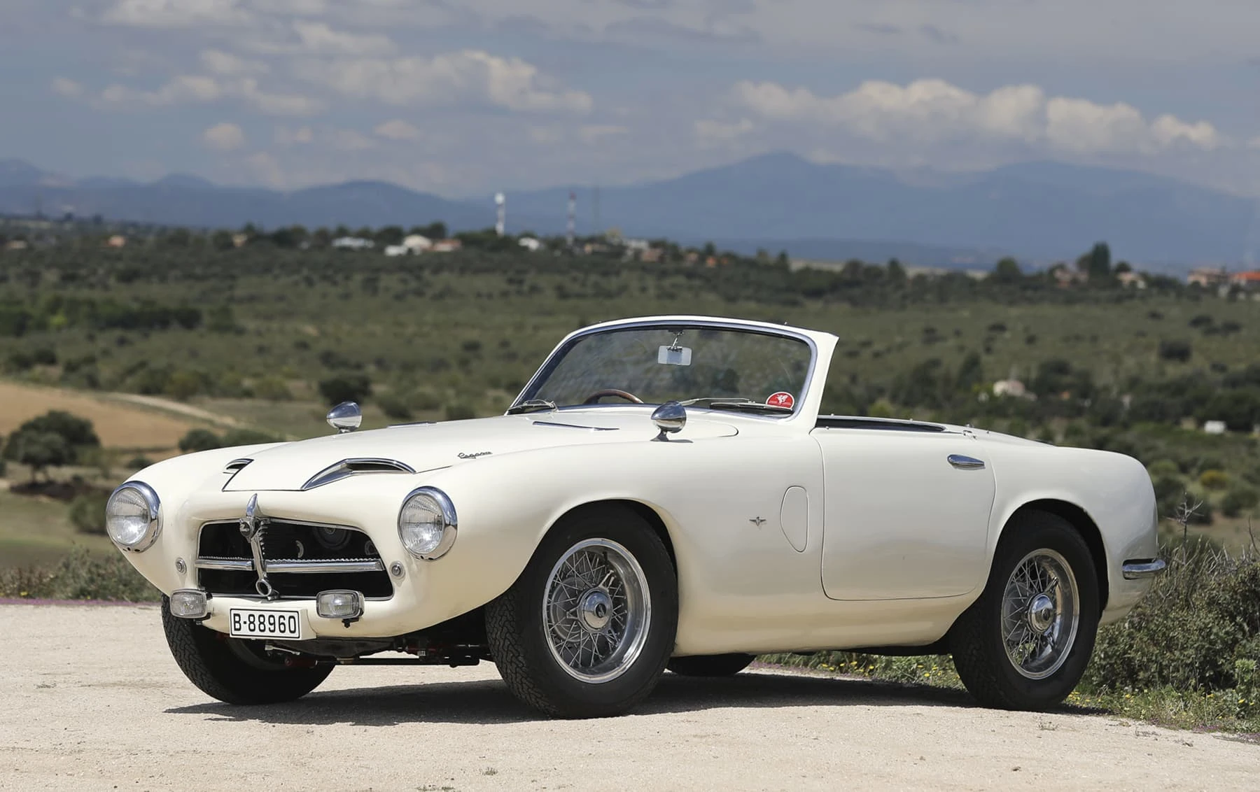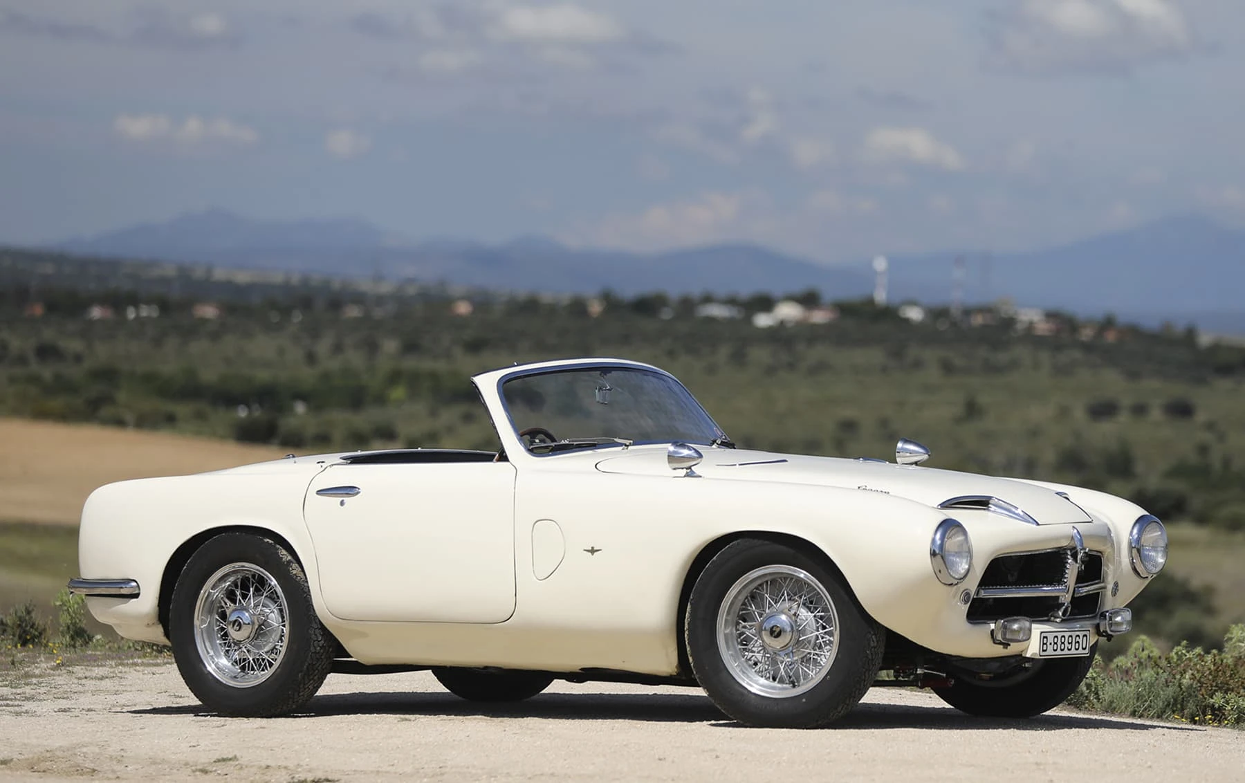 Dévoilée au salon de l’automobile de Paris en 1951, la Pegaso Z-102 était une voiture de sport de classe mondiale, construite par une société mère improbable, ENASA (Empresa Nacional de Autocamiones S.A.), un fabricant de camions commerciaux basé à Barcelone. Avec son moteur V8 de 2 814 cc (240 ch à 7 000 t/mn) entièrement en aluminium à double arbre à cames en tête et valve desmodromique à carter sec et son essieu arrière De Dion, la Z-102 était une voiture de sport dont le coût n’avait pas d’importance, conçue pour la course. Conçue par l’ancien directeur technique d’Alfa Romeo, Wilfredo Ricart, la Pegaso était incroyablement prometteuse et a participé aux 24 heures du Mans et à la Carrera Panamericana, mais au final, moins de 84 exemplaires de la Z-102 ont été construits.