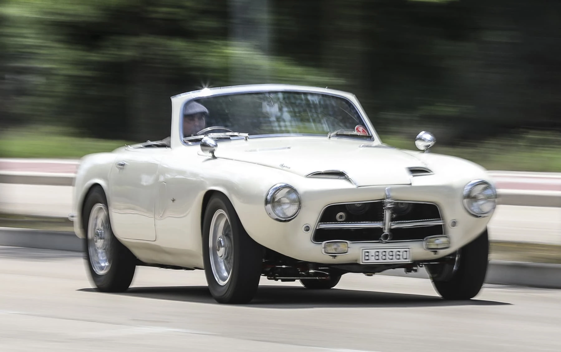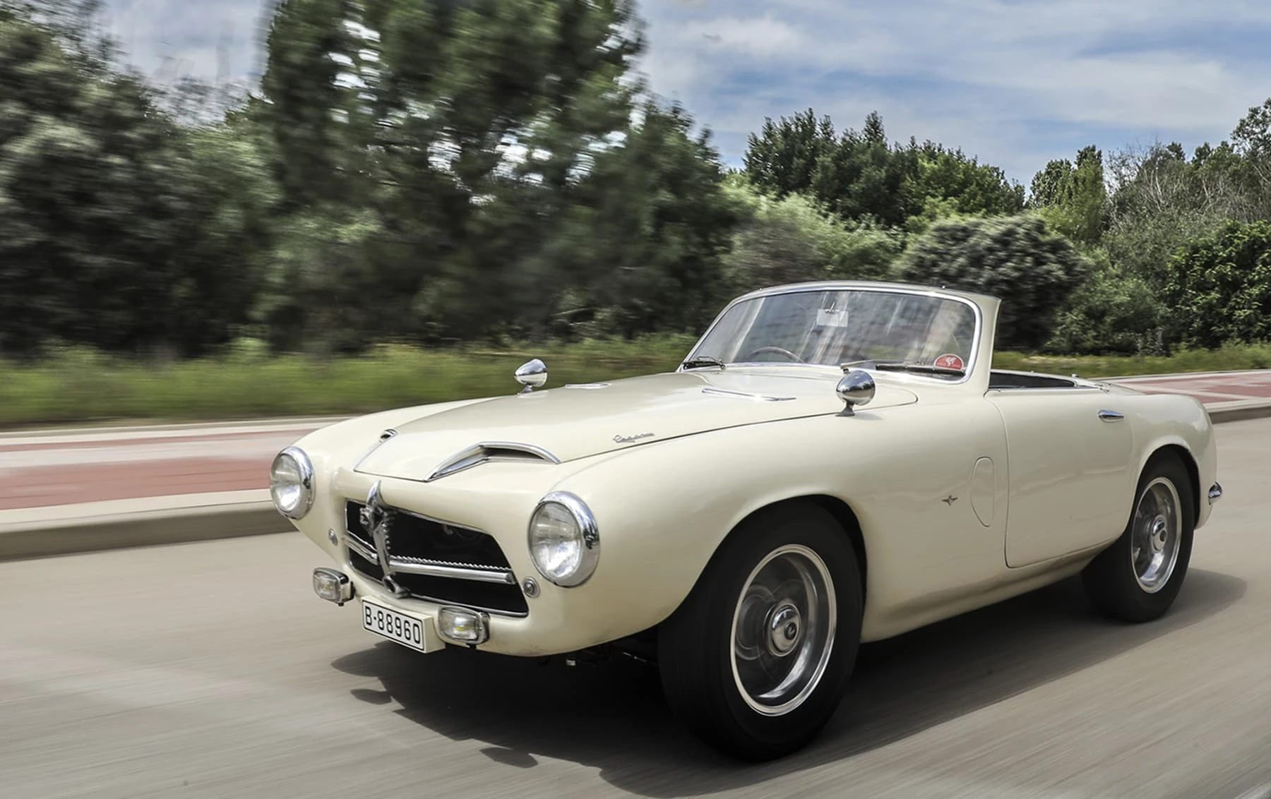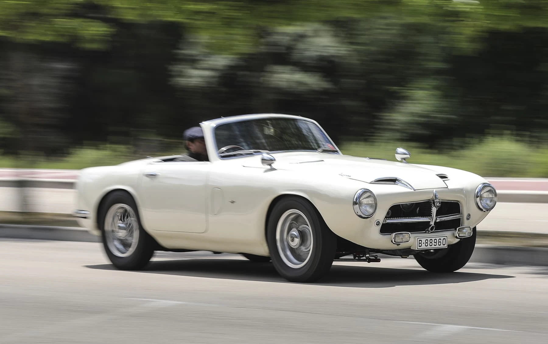 Dévoilée au salon de l’automobile de Paris en 1951, la Pegaso Z-102 était une voiture de sport de classe mondiale, construite par une société mère improbable, ENASA (Empresa Nacional de Autocamiones S.A.), un fabricant de camions commerciaux basé à Barcelone. Avec son moteur V8 de 2 814 cc (240 ch à 7 000 t/mn) entièrement en aluminium à double arbre à cames en tête et valve desmodromique à carter sec et son essieu arrière De Dion, la Z-102 était une voiture de sport dont le coût n’avait pas d’importance, conçue pour la course. Conçue par l’ancien directeur technique d’Alfa Romeo, Wilfredo Ricart, la Pegaso était incroyablement prometteuse et a participé aux 24 heures du Mans et à la Carrera Panamericana, mais au final, moins de 84 exemplaires de la Z-102 ont été construits.