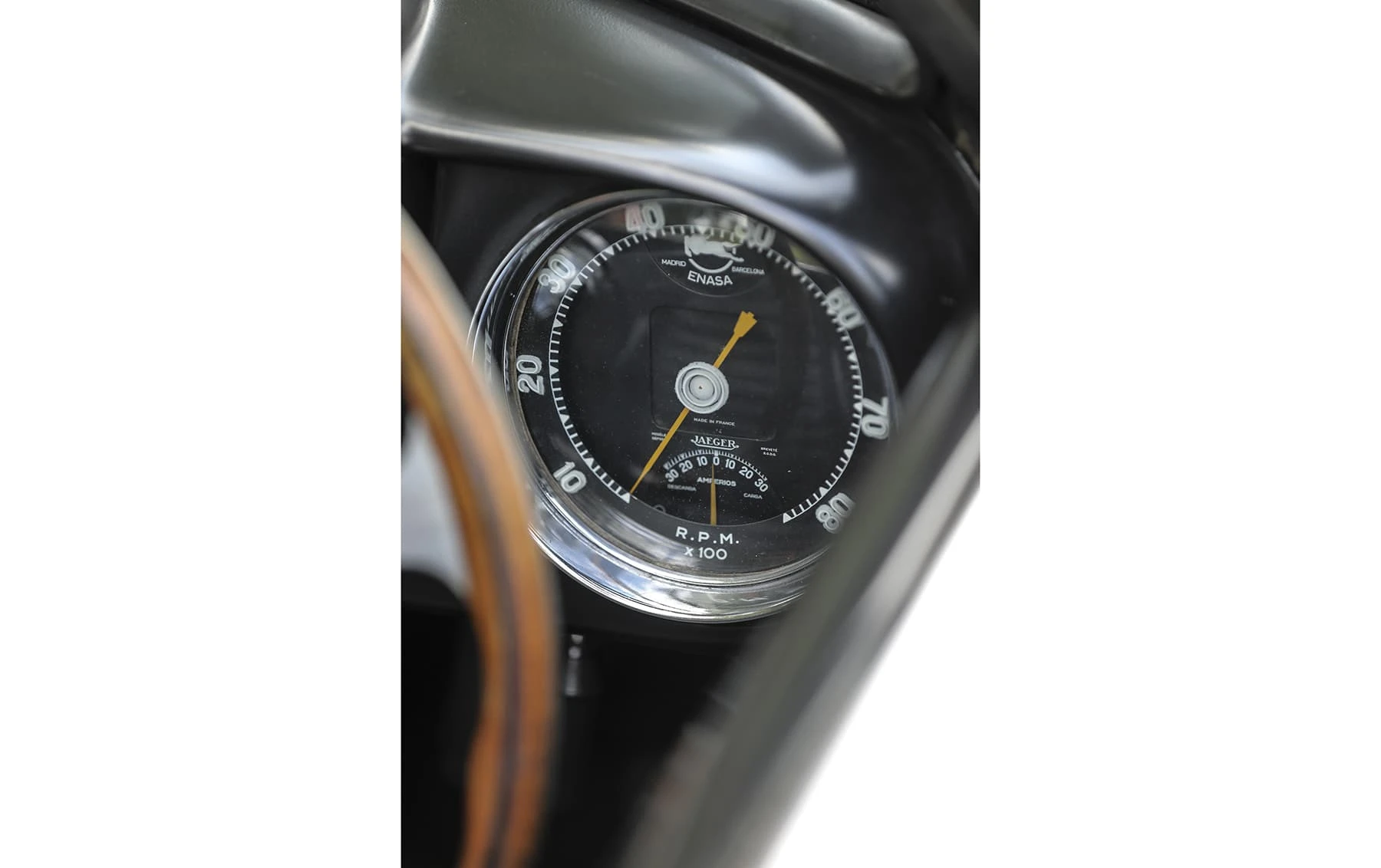 Héritier de l’une des plus grandes familles textiles d’Espagne, Enrique Coma-Cros a consacré sa vie à la course automobile, que ce soit au volant de cette même Pegaso ou en fondant Escudería Montjuich, une écurie de course privée basée à Barcelone qui a fait courir des Ferrari et des Porsche lors d’épreuves de conduite de haut niveau dans toute l’Europe dans les années 1960. Pegaso est une marque à laquelle il s’est particulièrement intéressé, publiant le livre Ricart-Pegaso : La Pasión del Automóvil, qui retrace l’histoire de la firme et de son concepteur. Coma-Cros a acheté cette voiture à Sr. Trinxet en 1959. Il a possédé de nombreuses Pegasos et aurait toujours remarqué que celle-ci était de loin la meilleure qu’il ait jamais conduite.