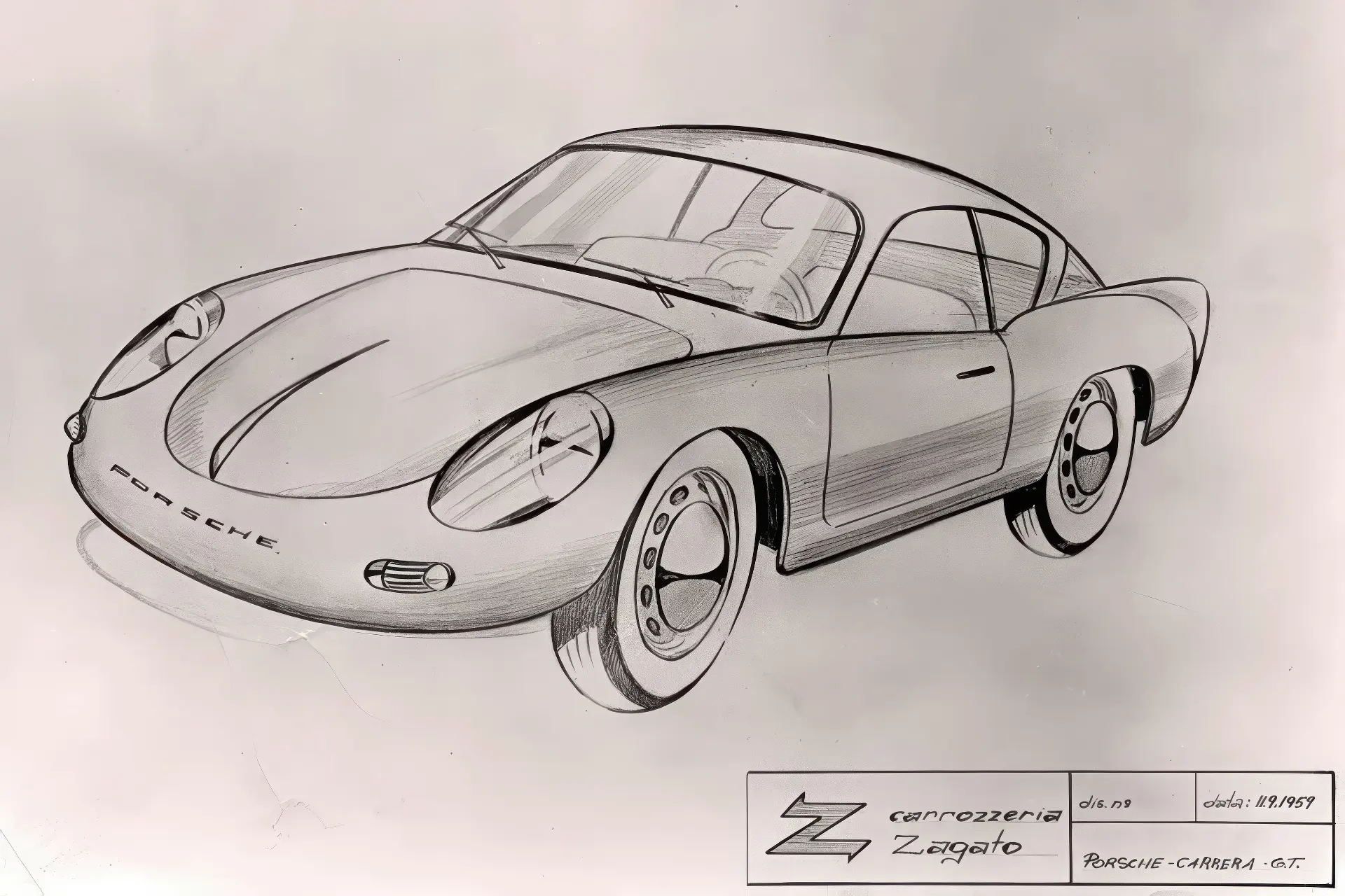Les dessins de ce coupé 356 Zagato sont finalisés en 1959 mais ne seront jamais réalisés à l’époque, pour des raisons qui restent floues (priorités industrielles, coûts, programmes compétition déjà engagés).