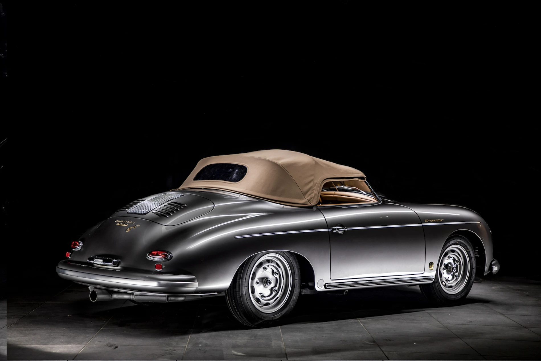 Le capot renferme deux « flat-fours » : le premier est un modèle standard restauré et le deuxième est préparé pour la course sur circuit privé. Le volant est un Porsche d’époque en aluminium et en bois et, chose rare, la voiture est fournie avec un toit rigide en plus de la capote pliante.