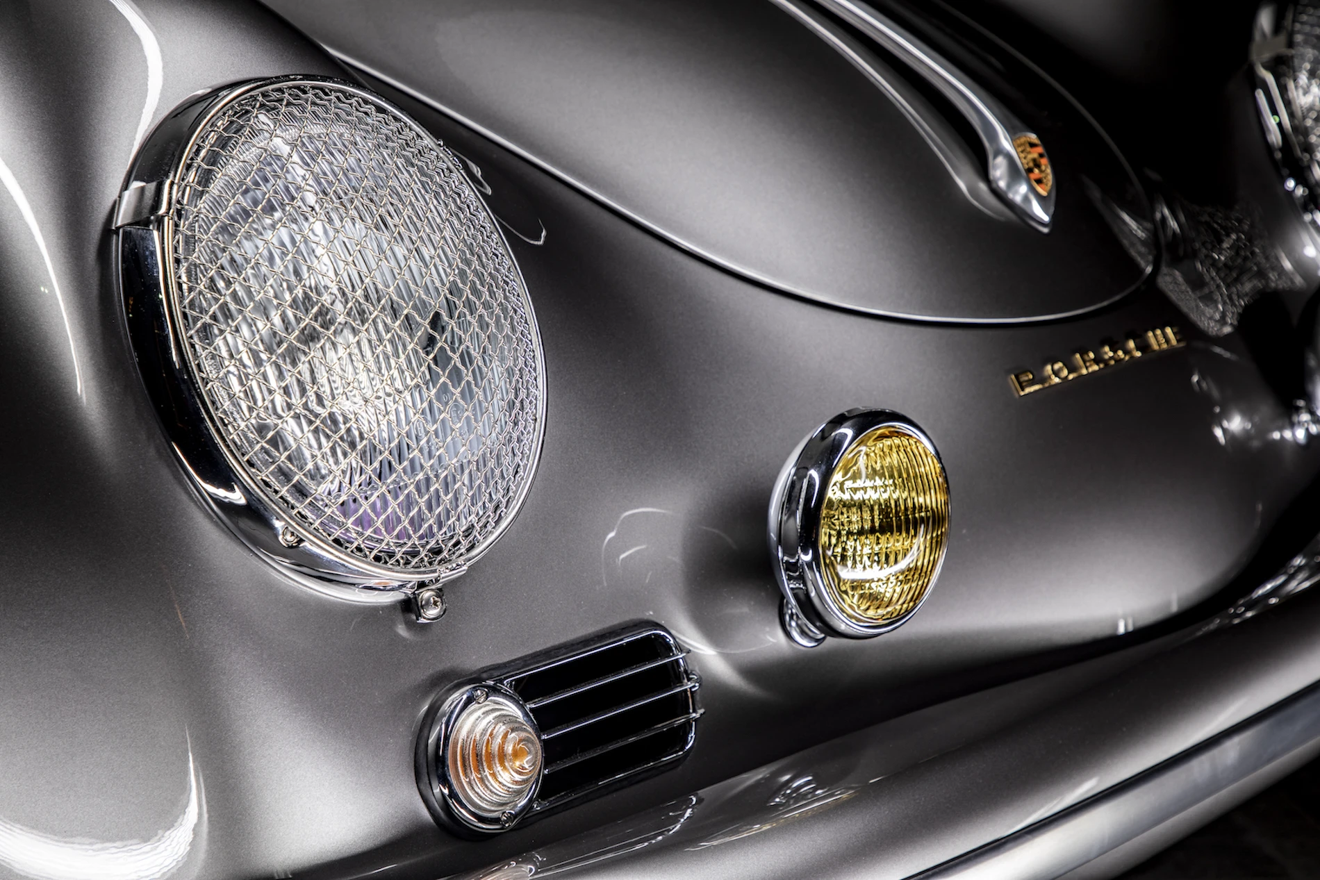 La Porsche 356 Speedster présenté ci-dessous date de 1958 et a été entièrement restaurée par Serge Heitz à LÈGE CAP FERRET. Sa carrosserie arbore néanmoins quelques équipements qui ne sont pas d’origine : des grilles de type rallye pour protéger les phares, un pare-choc avant GT et une ligne d’échappement de style Carrera avec une sortie en position centrale.