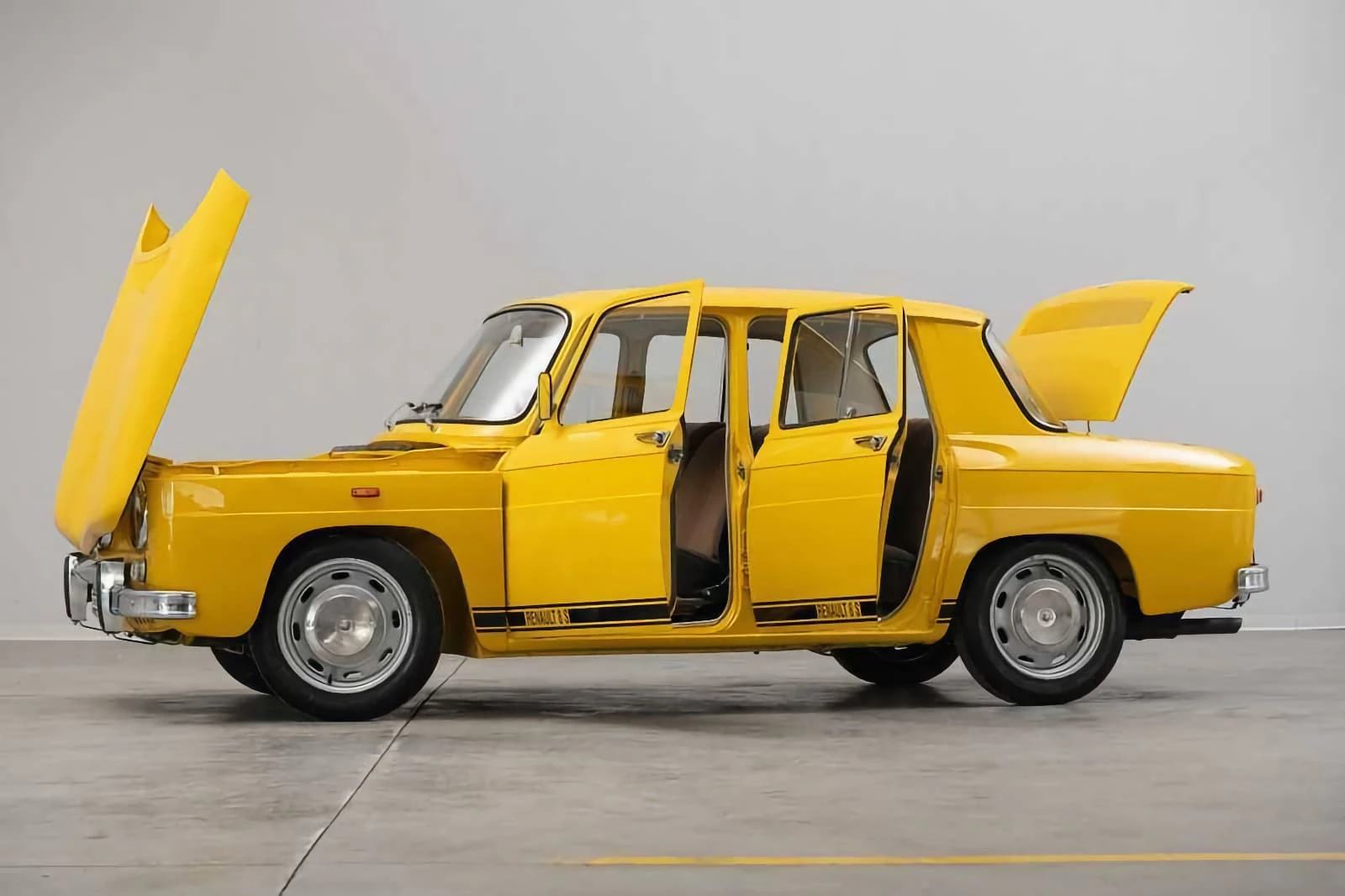 La R8 S est supprimée en 1971 à Flins, mais sera encore produite et vendue jusqu’en 1976 par la filiale Fasa-Renault en Espagne. Elle est sortie en peinture unie en jaune, blanc et rouge.