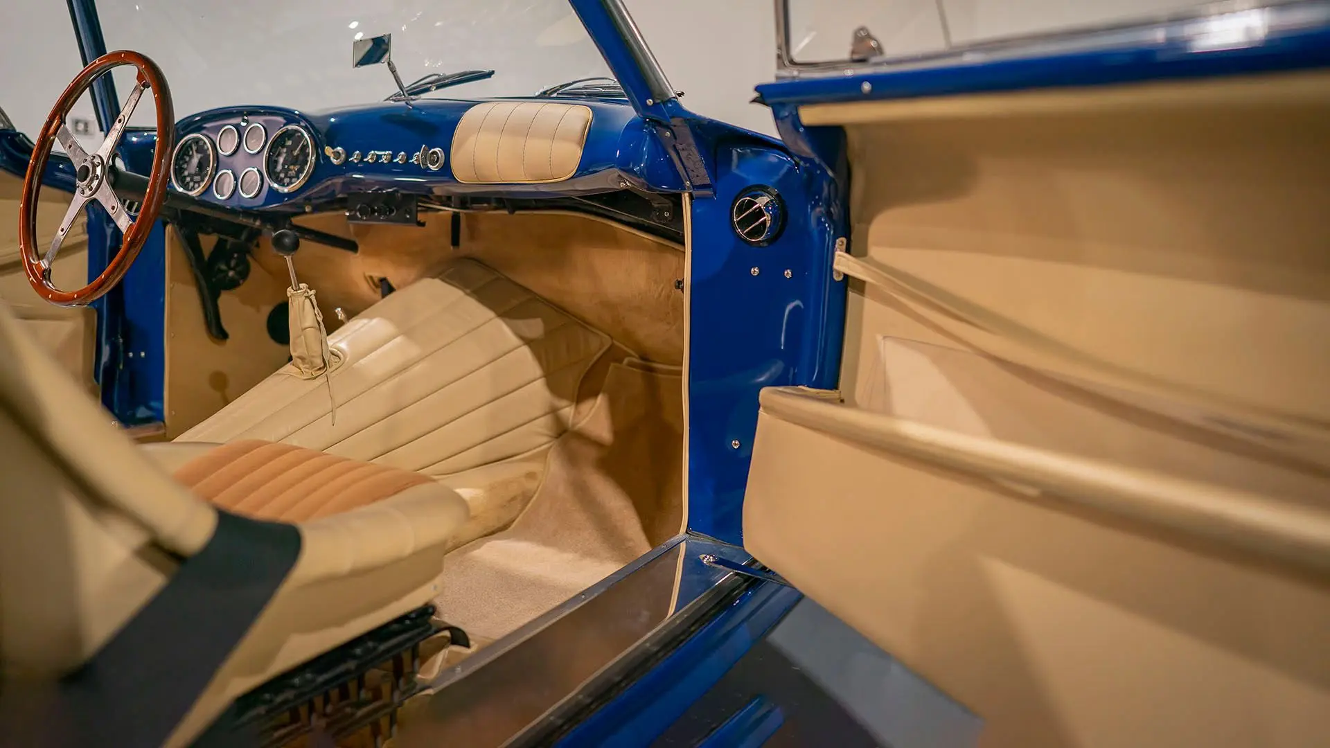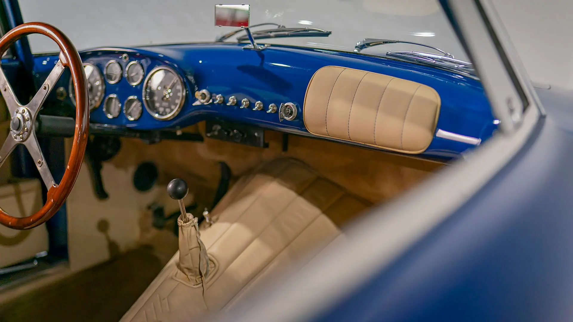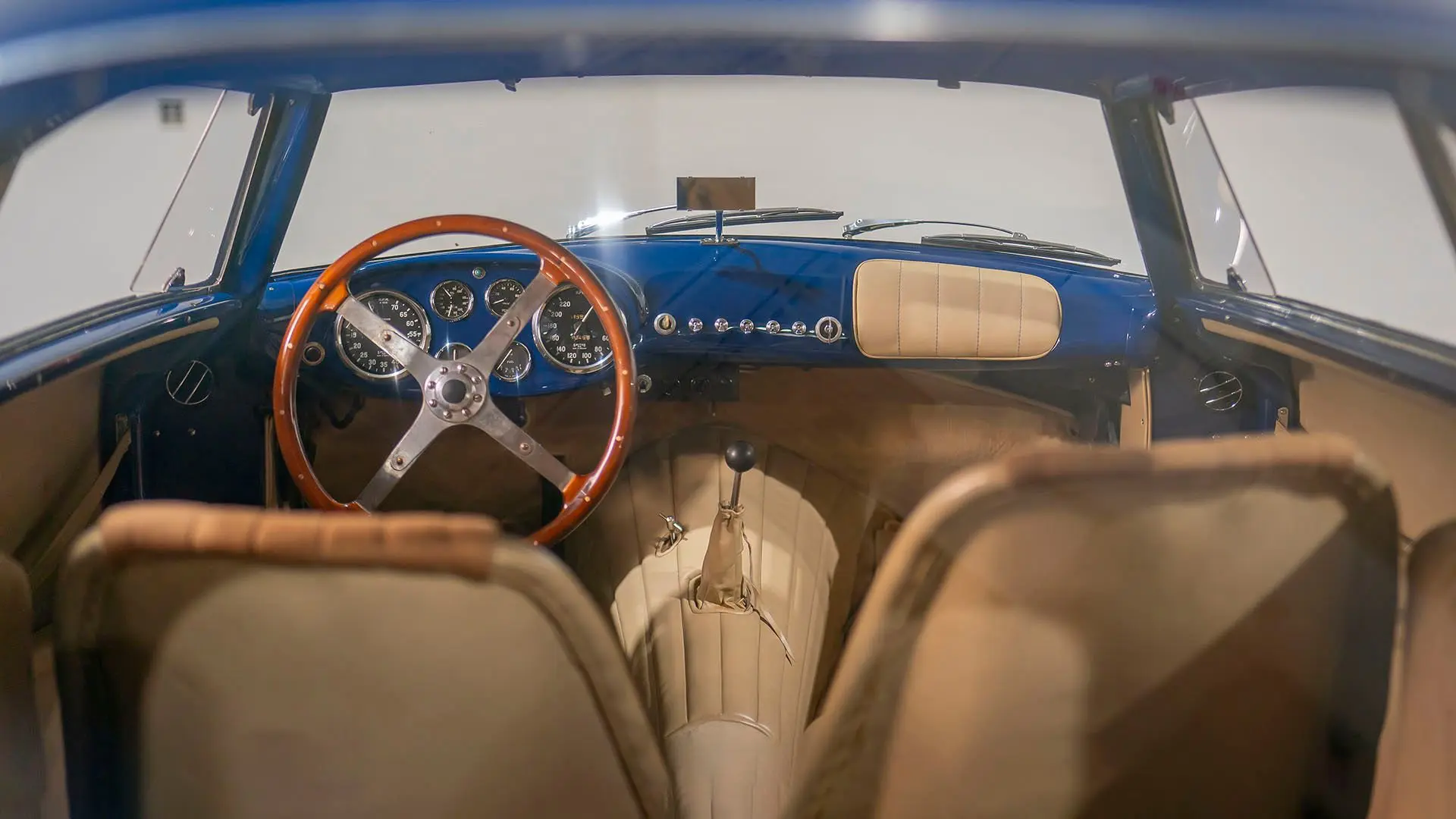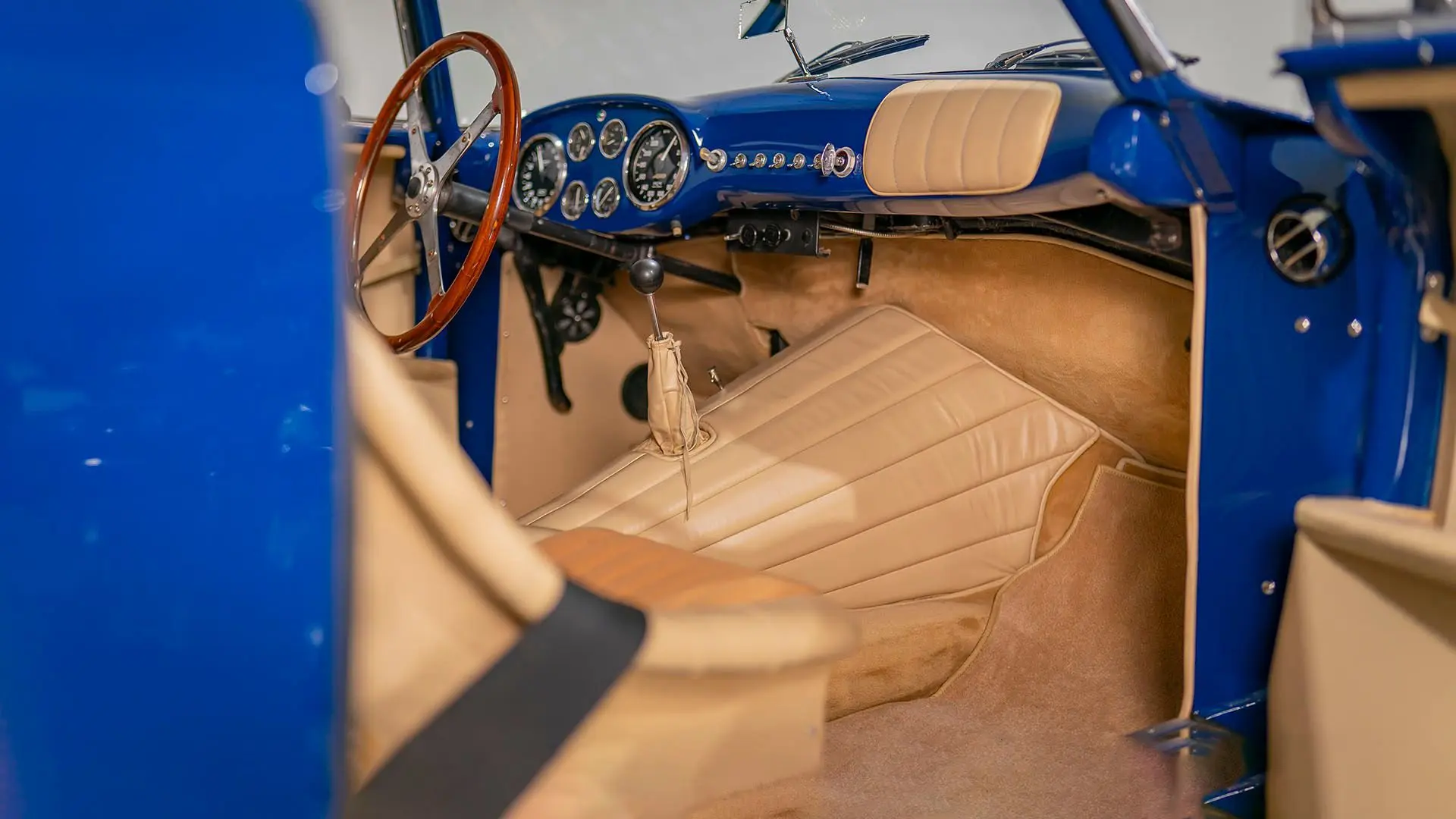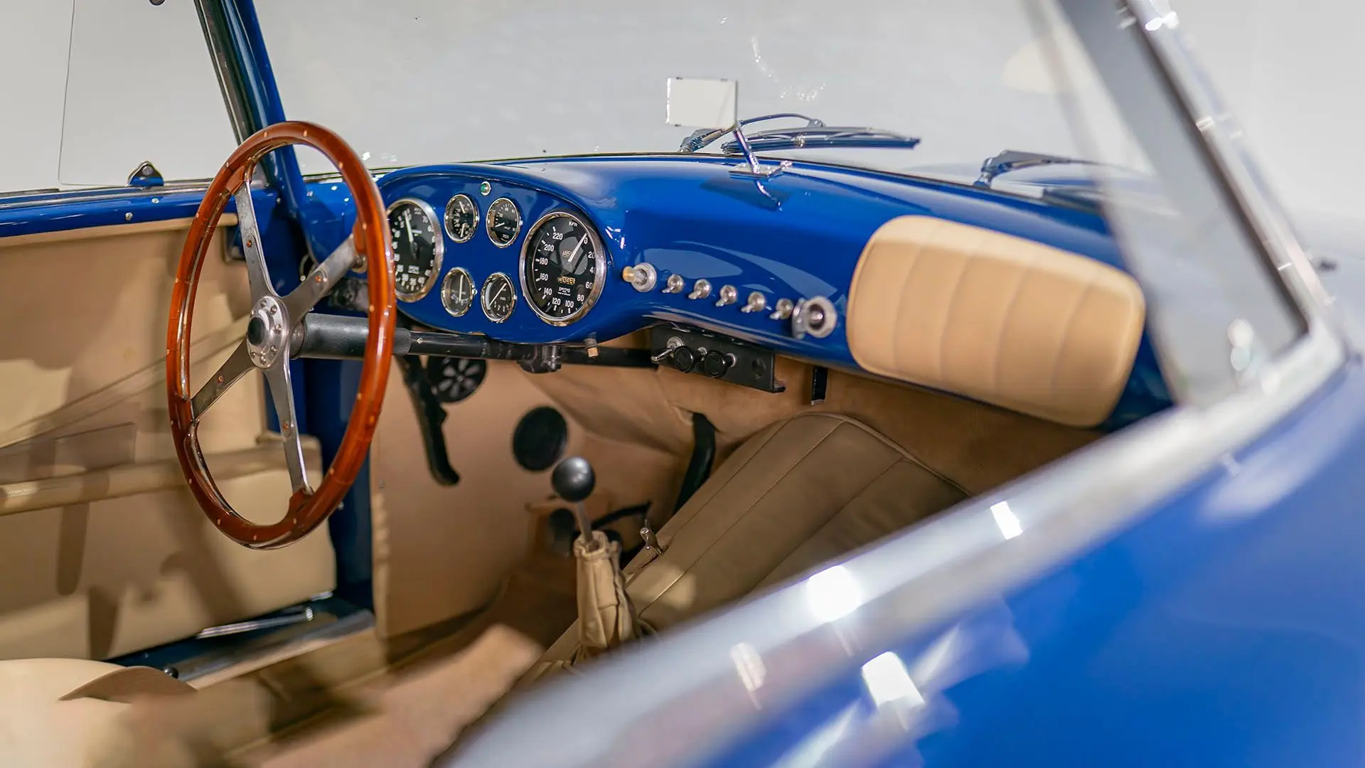 Après plusieurs années de recherche et de préparation, Walker entreprit de démonter la voiture pour une restauration complète. Au cours de ce travail de plusieurs années, il découvrit plusieurs vestiges de sa peinture bleu foncé et de sa sellerie en cuir beige d’origine. Ces vestiges furent soigneusement reproduits et ornent encore la voiture aujourd’hui. Gardien exigeant, Walker décida de conserver intacte une grande partie du charme Balbo artisanal de la CS072. C’est pourquoi cette importante Siata présente encore un visage plein de caractère et des touches authentiques, non restaurées, telles que ses soudures d’origine, ses badges émaillés imparfaits et sa tôle taillée artisanalement. Néanmoins, les détails restent particulièrement soignés, avec notamment de belles jantes à rayons Borrani polies, chaussées de pneus Pirelli Cinturato HS, qui confèrent à la belle carrosserie de berlinette Balbo une touche d’époque, fidèle à l’image de cette Siata livrée neuve.