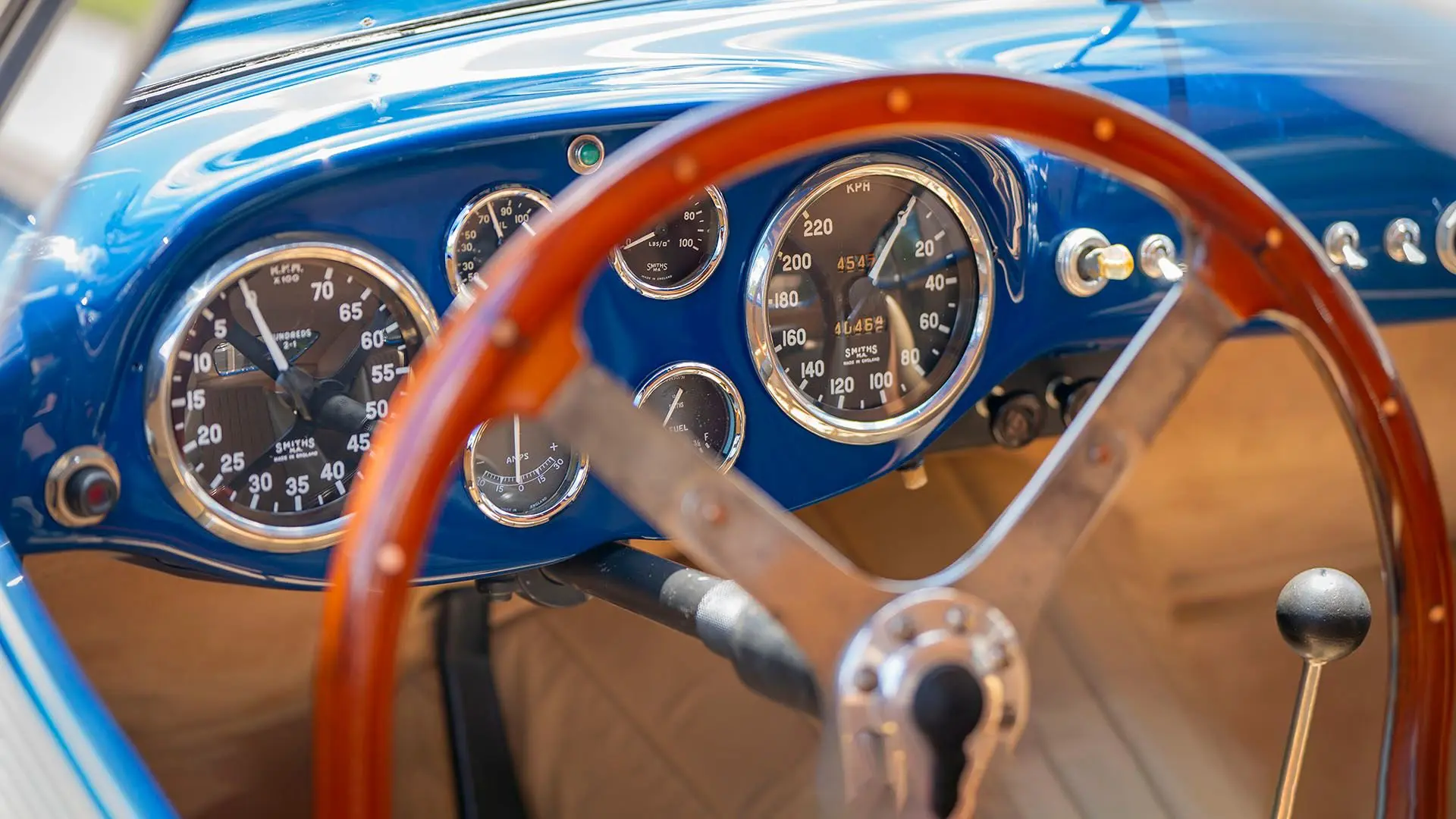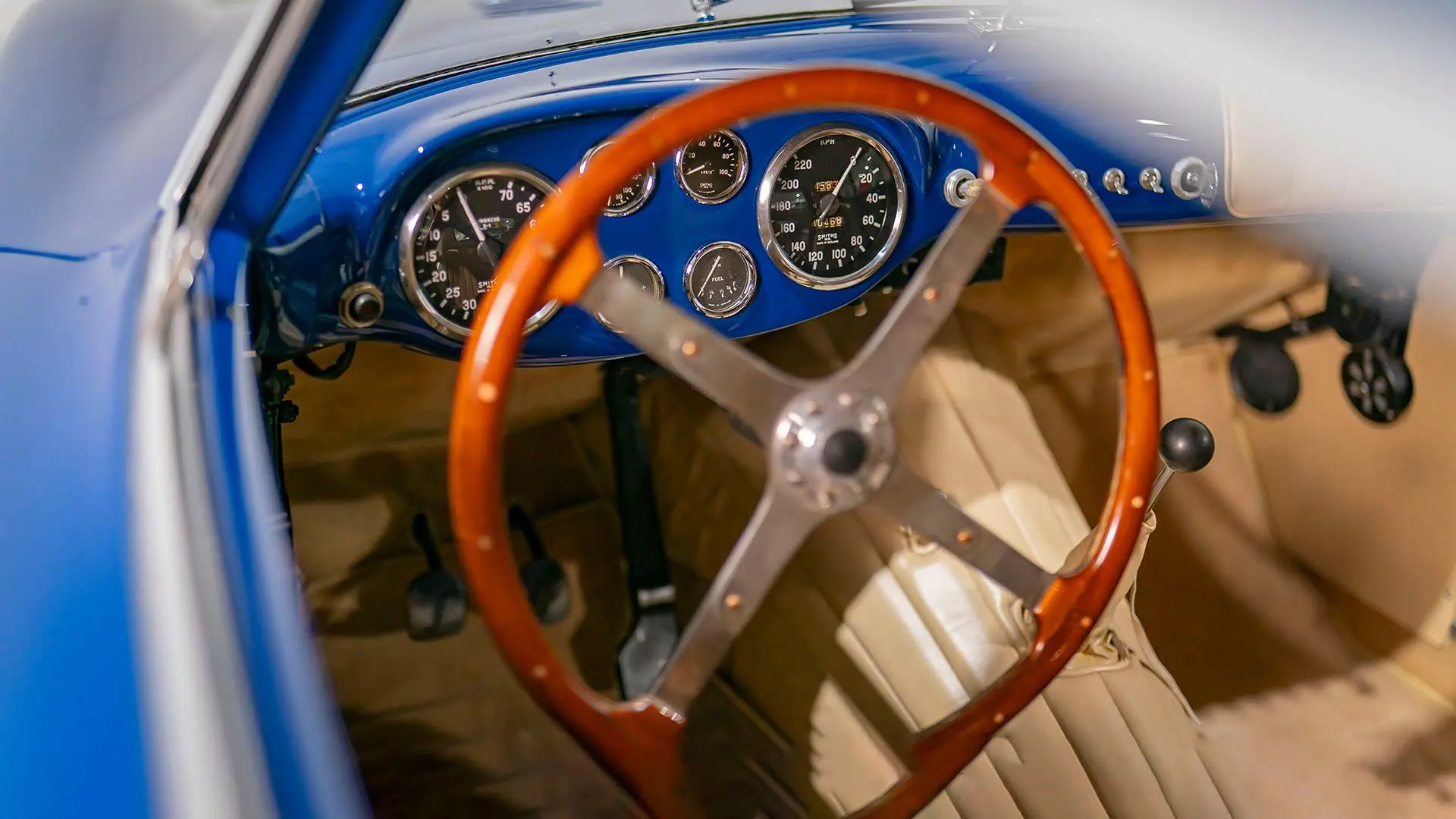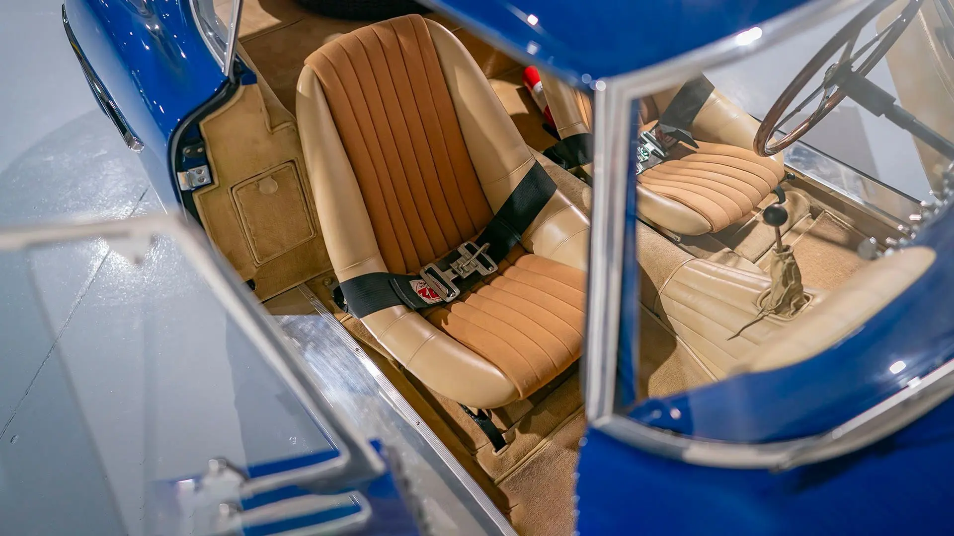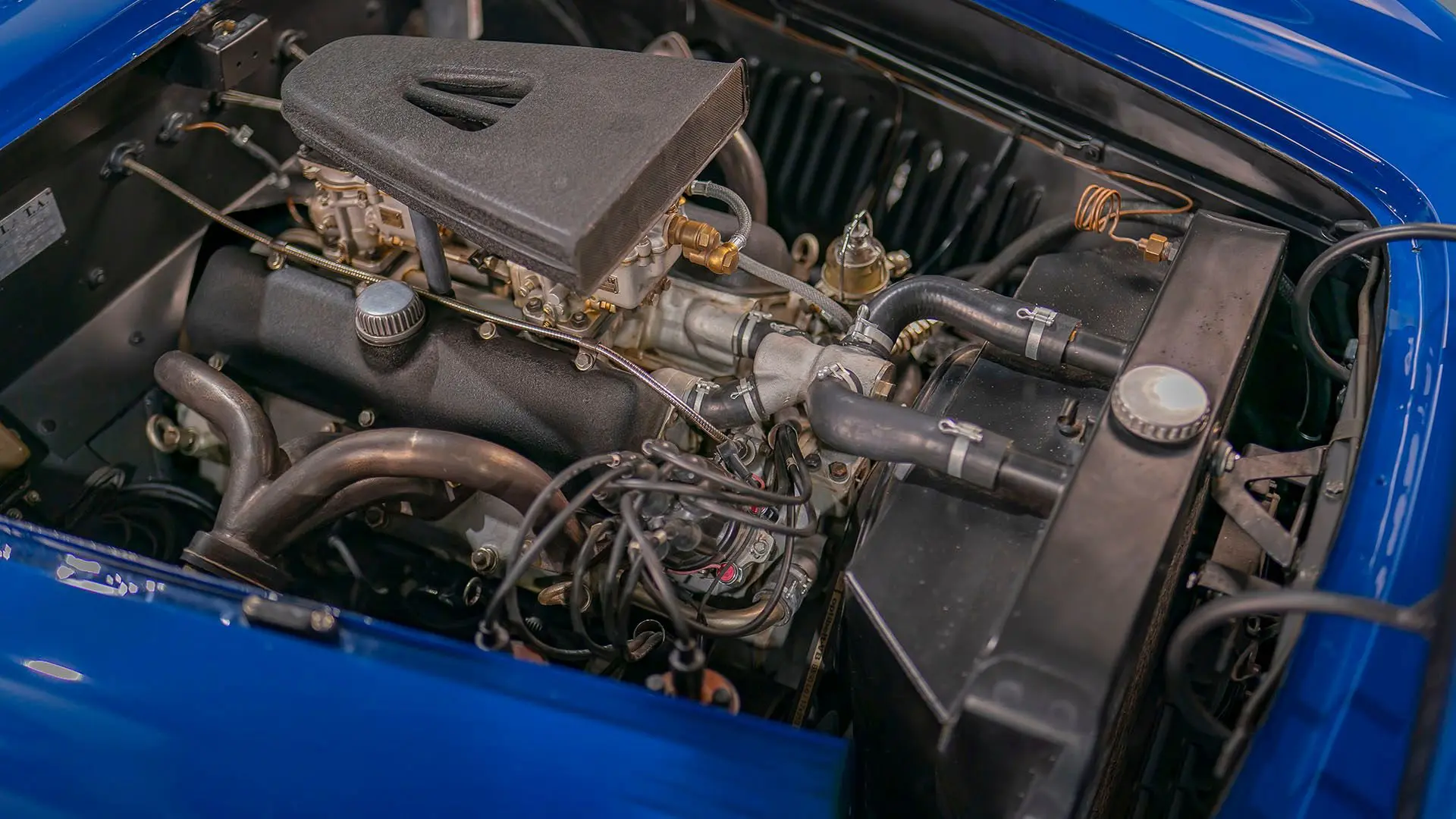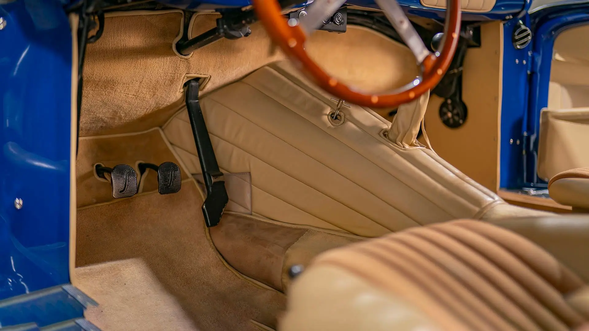 Après plusieurs années de recherche et de préparation, Walker entreprit de démonter la voiture pour une restauration complète. Au cours de ce travail de plusieurs années, il découvrit plusieurs vestiges de sa peinture bleu foncé et de sa sellerie en cuir beige d’origine. Ces vestiges furent soigneusement reproduits et ornent encore la voiture aujourd’hui. Gardien exigeant, Walker décida de conserver intacte une grande partie du charme Balbo artisanal de la CS072. C’est pourquoi cette importante Siata présente encore un visage plein de caractère et des touches authentiques, non restaurées, telles que ses soudures d’origine, ses badges émaillés imparfaits et sa tôle taillée artisanalement. Néanmoins, les détails restent particulièrement soignés, avec notamment de belles jantes à rayons Borrani polies, chaussées de pneus Pirelli Cinturato HS, qui confèrent à la belle carrosserie de berlinette Balbo une touche d’époque, fidèle à l’image de cette Siata livrée neuve.