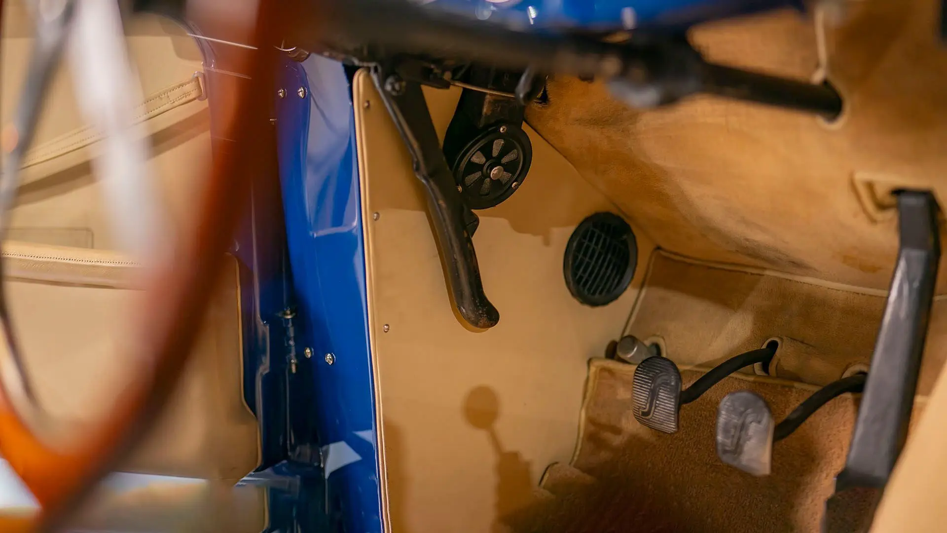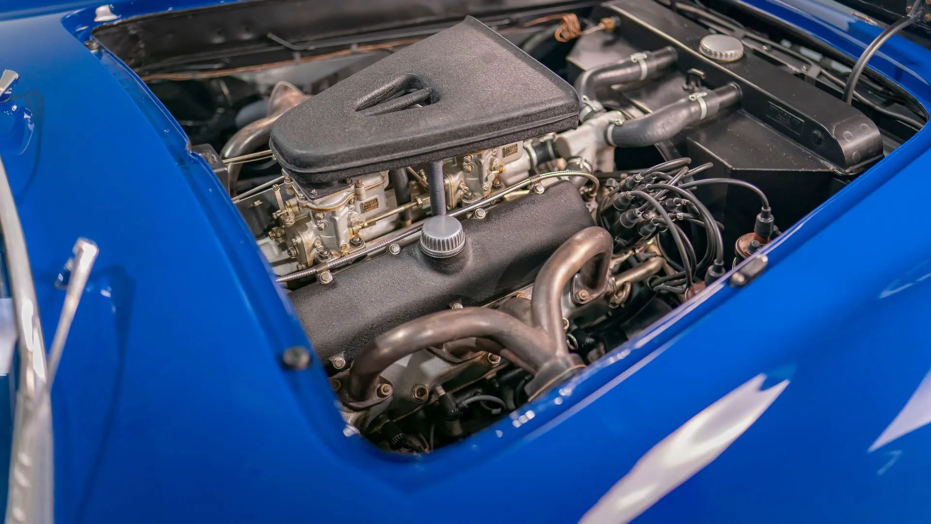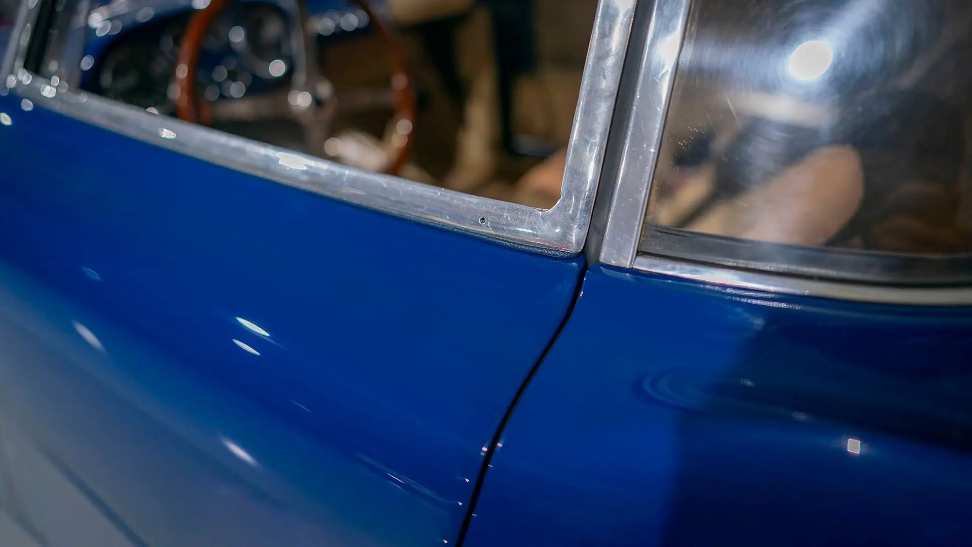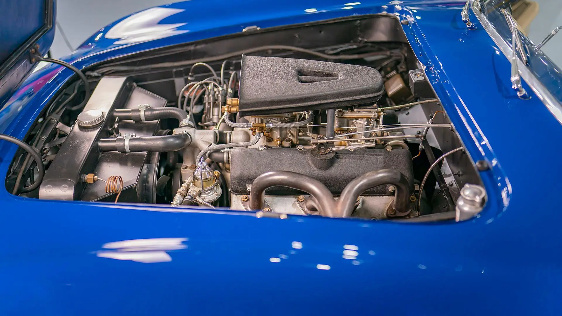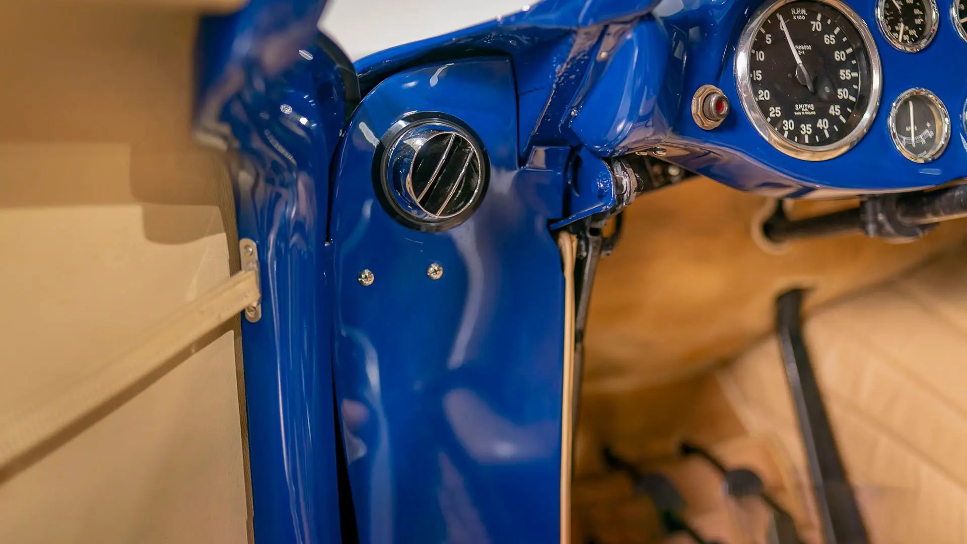 Après plusieurs années de recherche et de préparation, Walker entreprit de démonter la voiture pour une restauration complète. Au cours de ce travail de plusieurs années, il découvrit plusieurs vestiges de sa peinture bleu foncé et de sa sellerie en cuir beige d’origine. Ces vestiges furent soigneusement reproduits et ornent encore la voiture aujourd’hui. Gardien exigeant, Walker décida de conserver intacte une grande partie du charme Balbo artisanal de la CS072. C’est pourquoi cette importante Siata présente encore un visage plein de caractère et des touches authentiques, non restaurées, telles que ses soudures d’origine, ses badges émaillés imparfaits et sa tôle taillée artisanalement. Néanmoins, les détails restent particulièrement soignés, avec notamment de belles jantes à rayons Borrani polies, chaussées de pneus Pirelli Cinturato HS, qui confèrent à la belle carrosserie de berlinette Balbo une touche d’époque, fidèle à l’image de cette Siata livrée neuve.